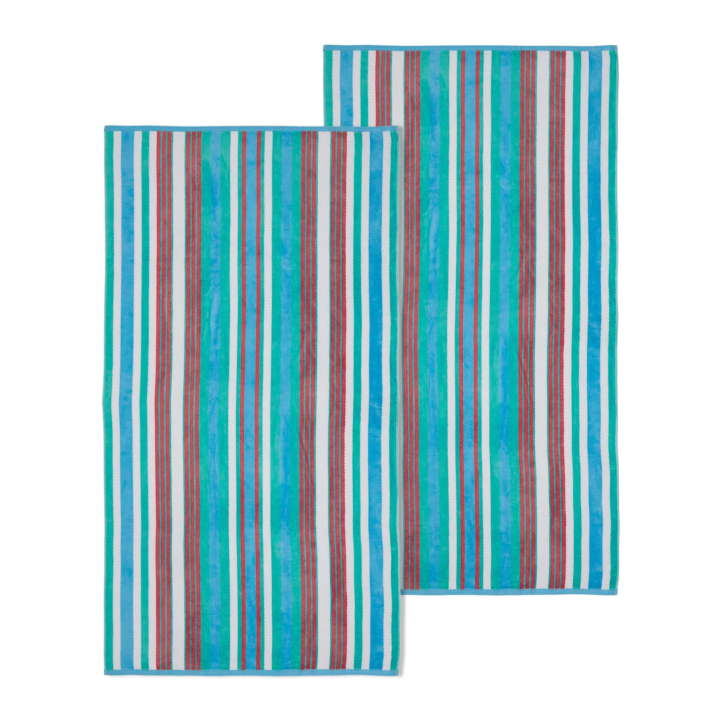 Relax this summer with the Rope Oversized Beach Towel Set. These plush, luxurious towels are crafted from Cotton with 2-ply yarn which makes them ultra-absorbent and soft to the touch. On one side, a soft velour repels water and sand and on the reverse, an absorbent terry keeps you cozy and warm. These large rope striped beach towels measure 34†x 64â€. Available as a set of 2, these towels are ideal for shower spaces, the beach, sitting poolside or relaxing outdoors.
