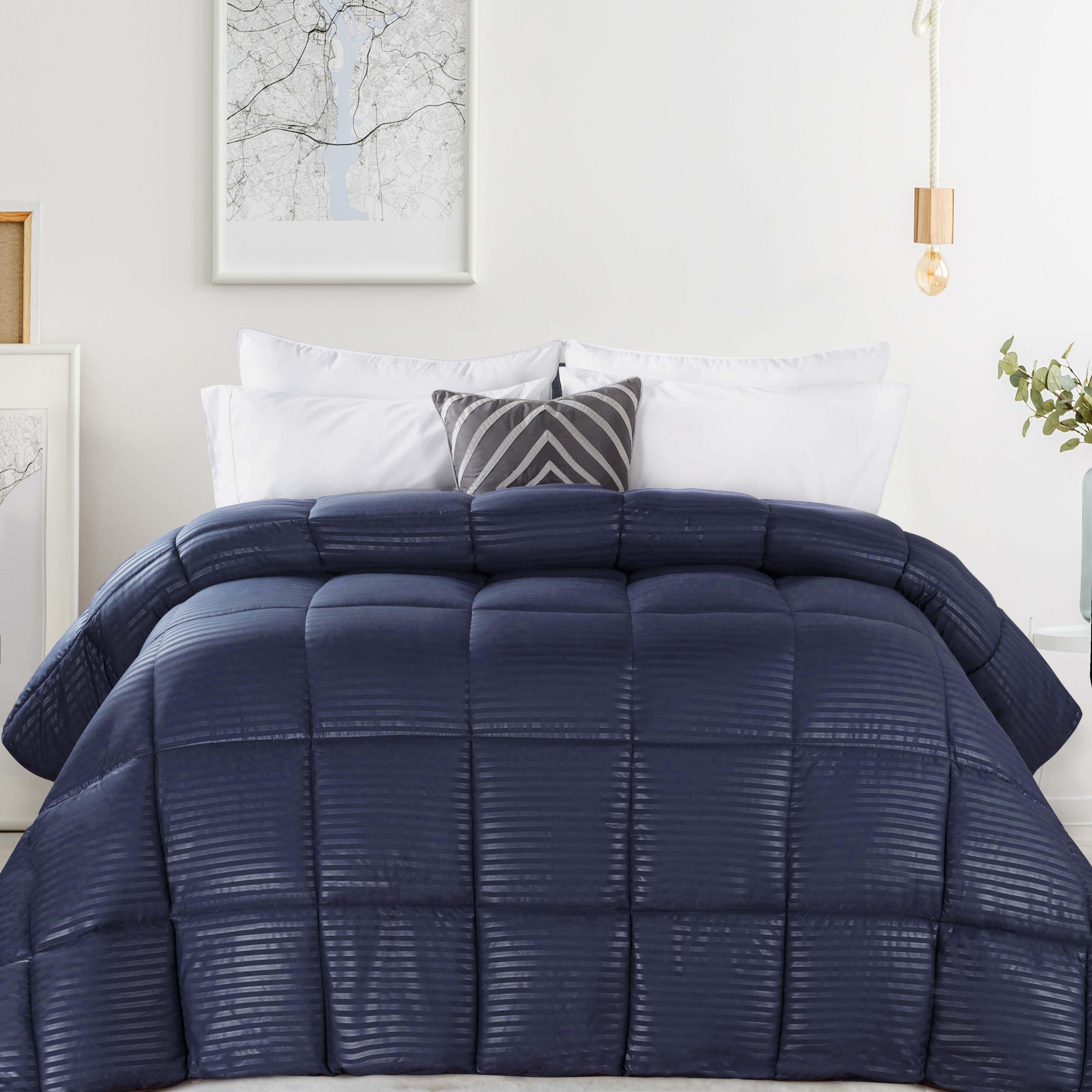 Soft as a cloud and indulgently fluffy, our Striped Brushed Microfiber Down Alternative Comforter is the perfect way to upgrade your everyday bedding. This luxurious and hypoallergenic comforter features a plush fill and an ultra-soft brushed microfiber shell. Our baffle box stitching keeps the fill securely in place and prevents it from shifting or lumping for a relaxing night of sleep. Display as is or use as a duvet insert for a fresh new look in any bedroom space. With a medium weight and breathable feel, this comforter will keep you cozy all night long.