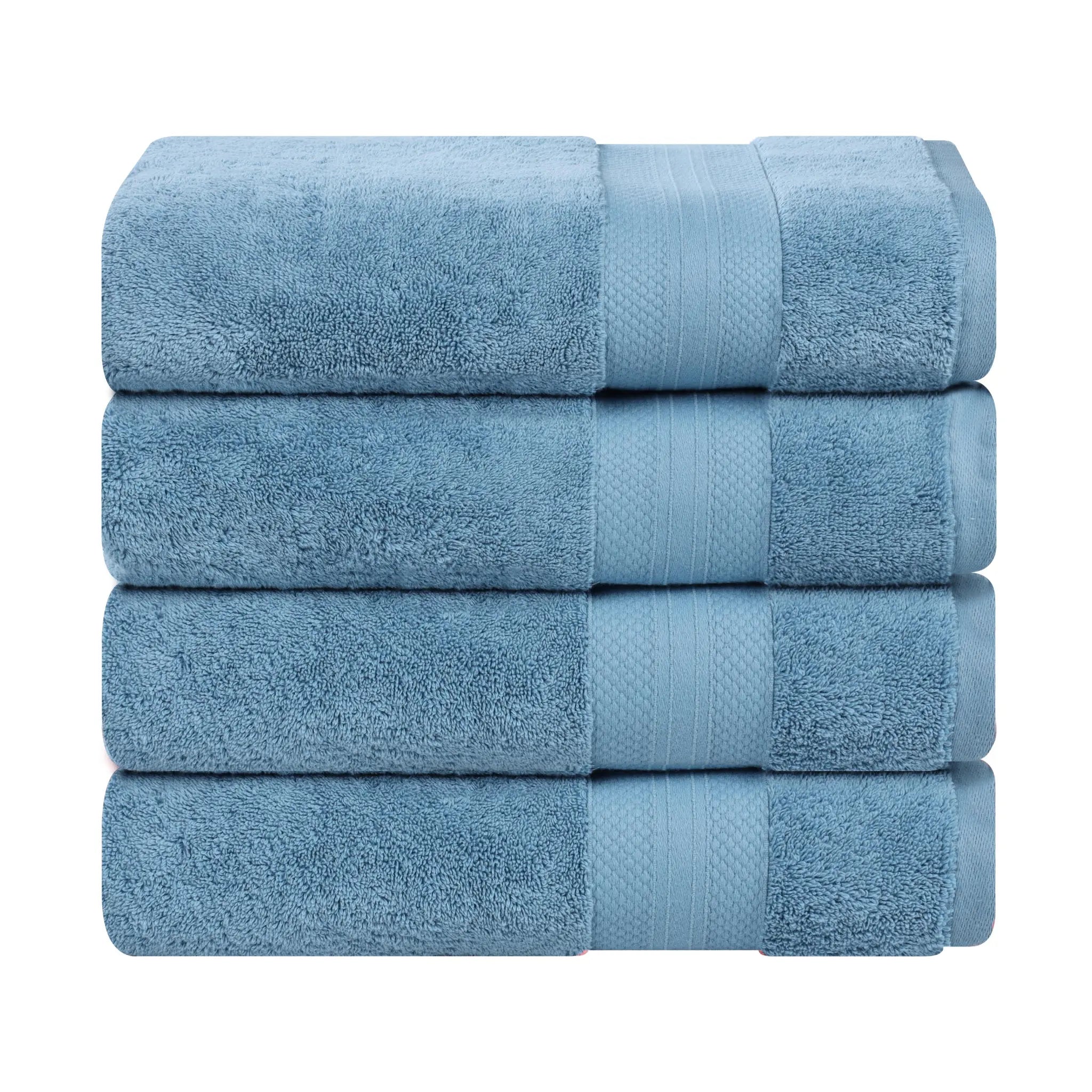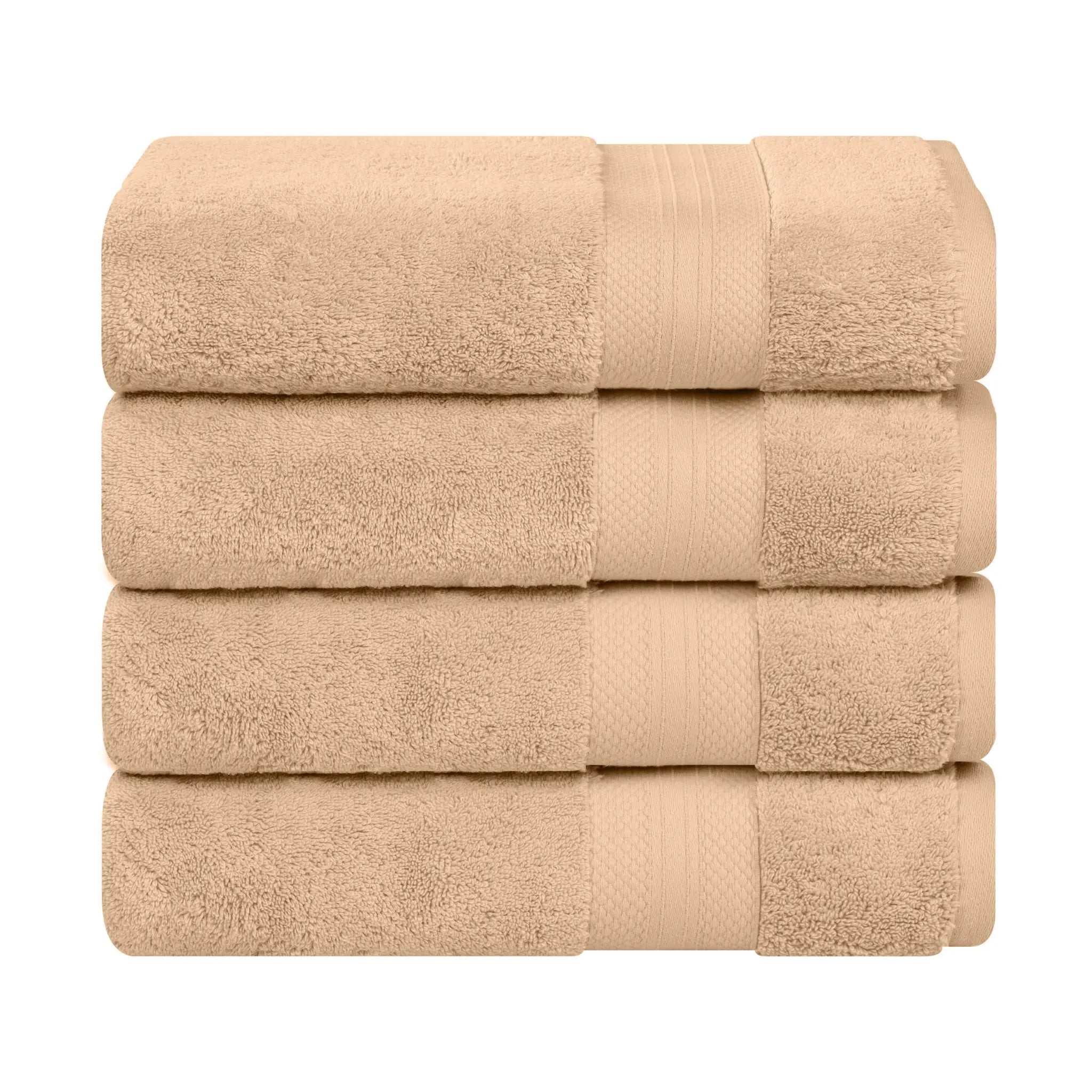 Wrap yourself in the superior comfort of the Aria 4-Piece Bath Towel Set. Crafted from 100% premium Turkish Cotton, this heavyweight bathroom towel set is exceptionally plush and absorbent, designed to effortlessly wick away moisture. These big towel sets bring the indulgent feel of a five-star hotel right into your home.