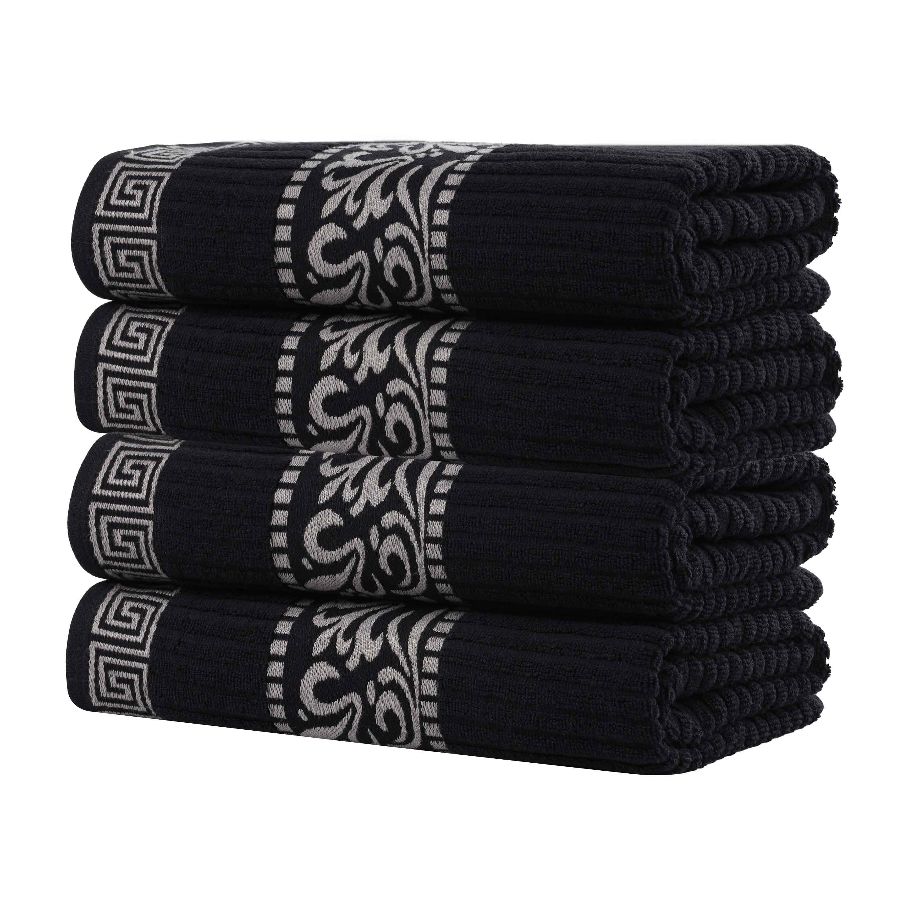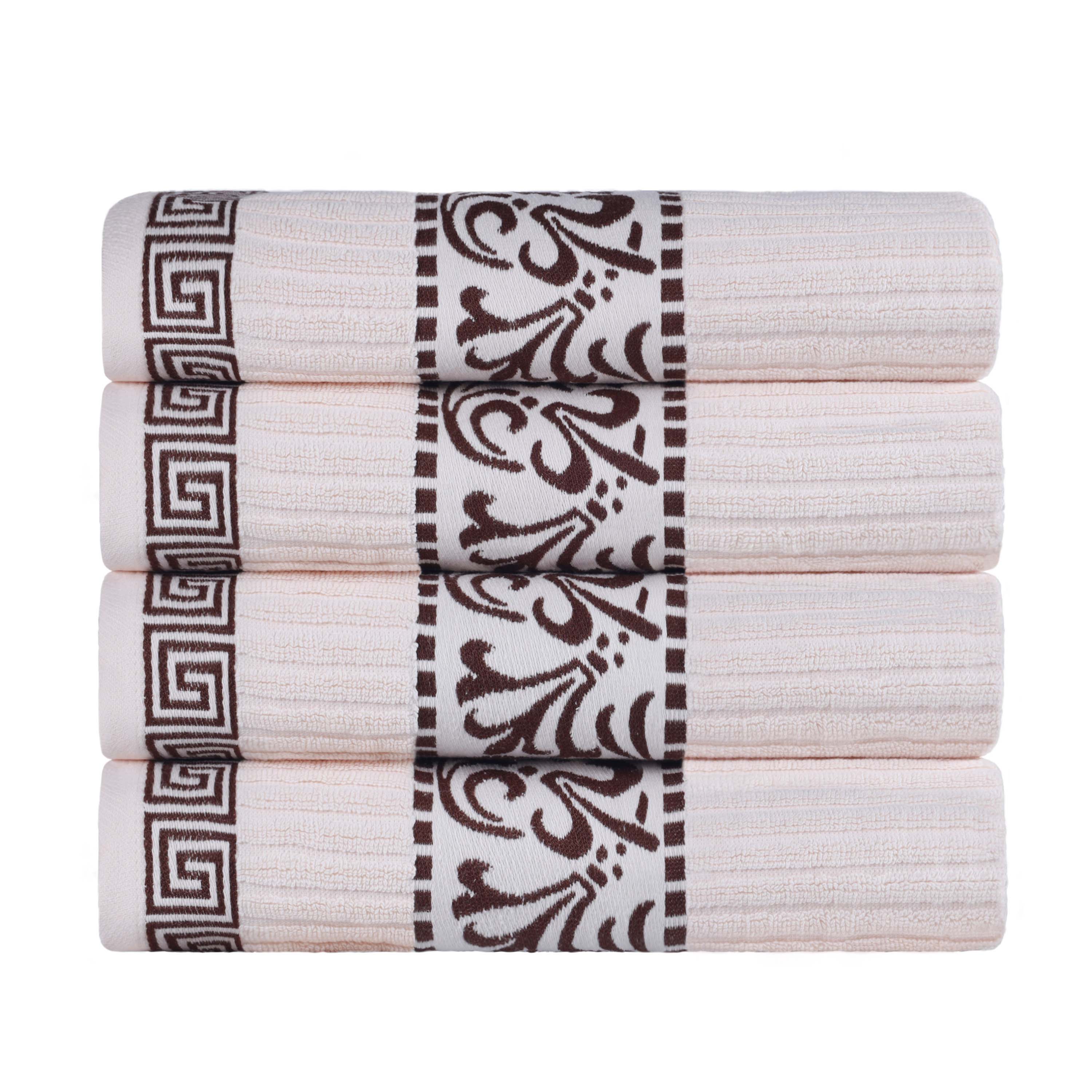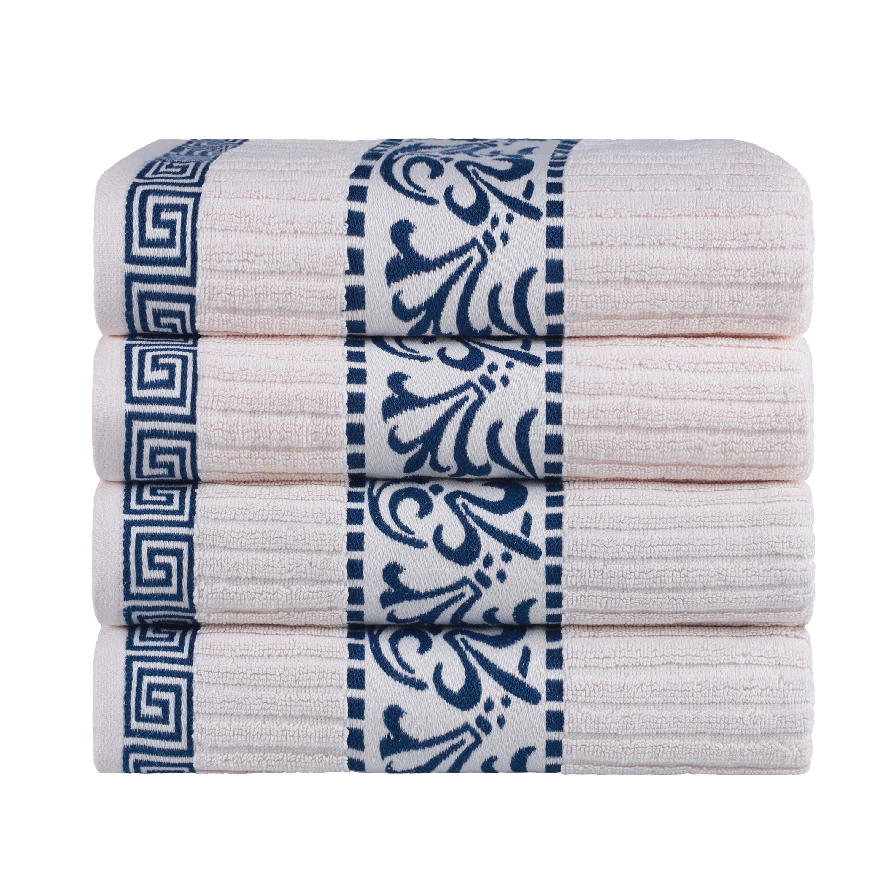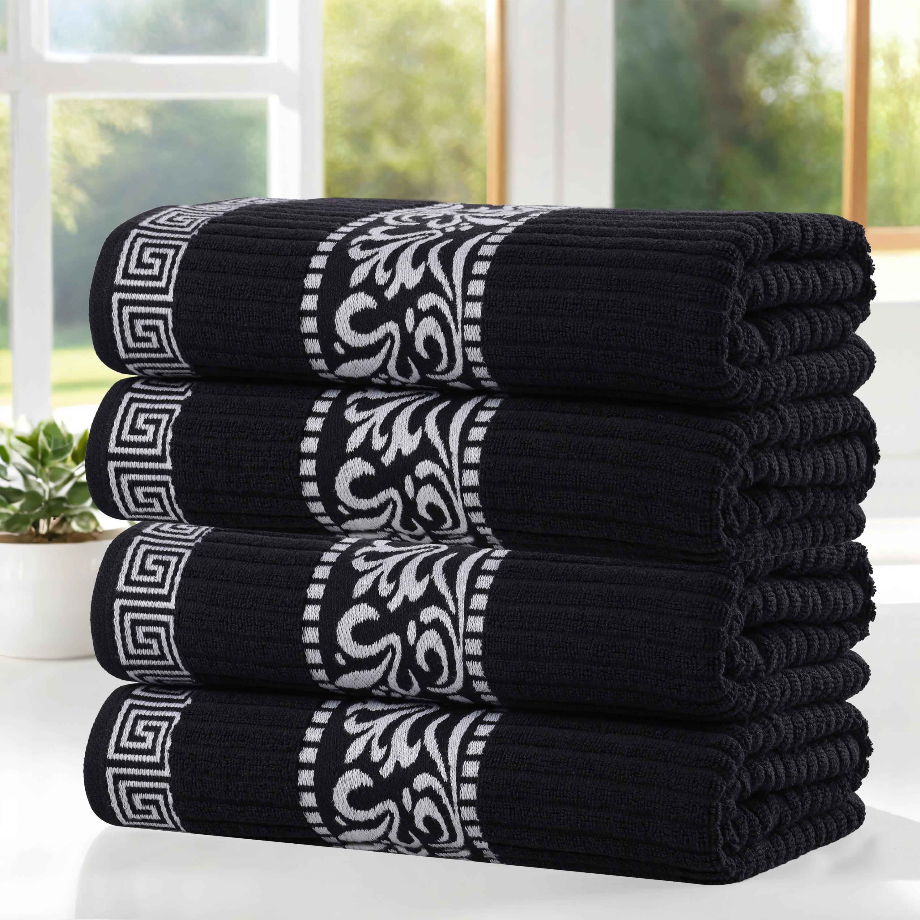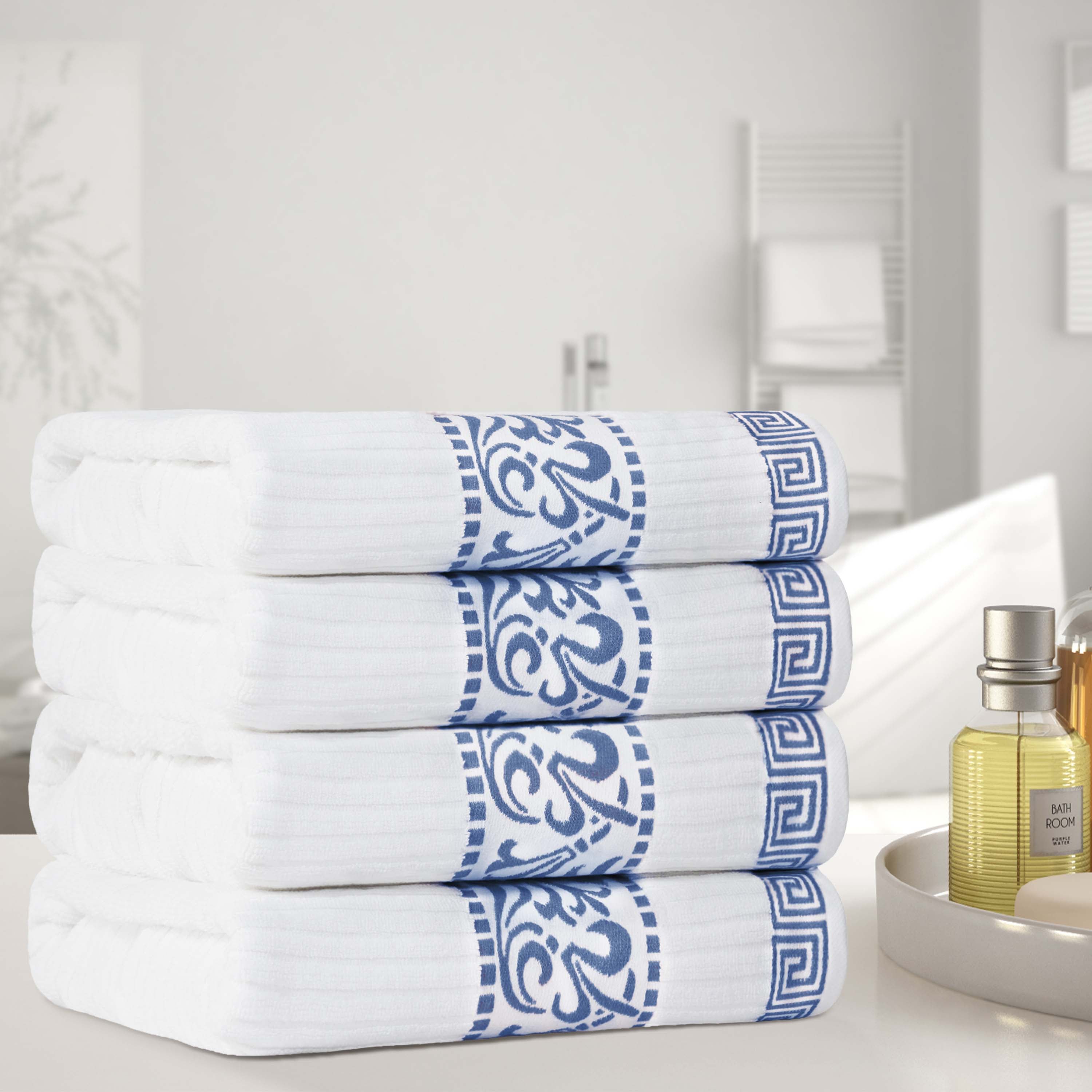 Refresh your bathroom with the elegance of our Cotton Terry Greek Key Bath Towel Set of 4.