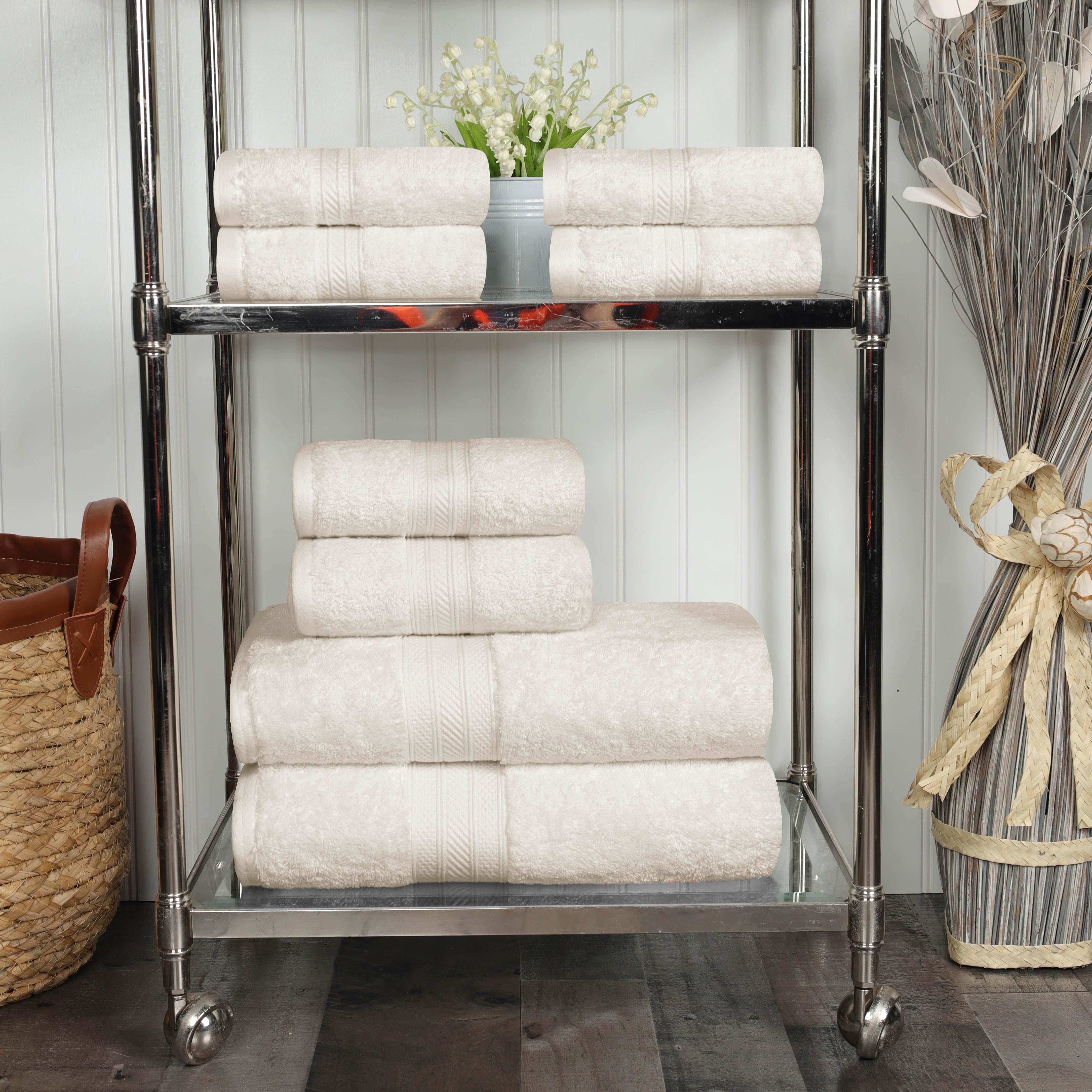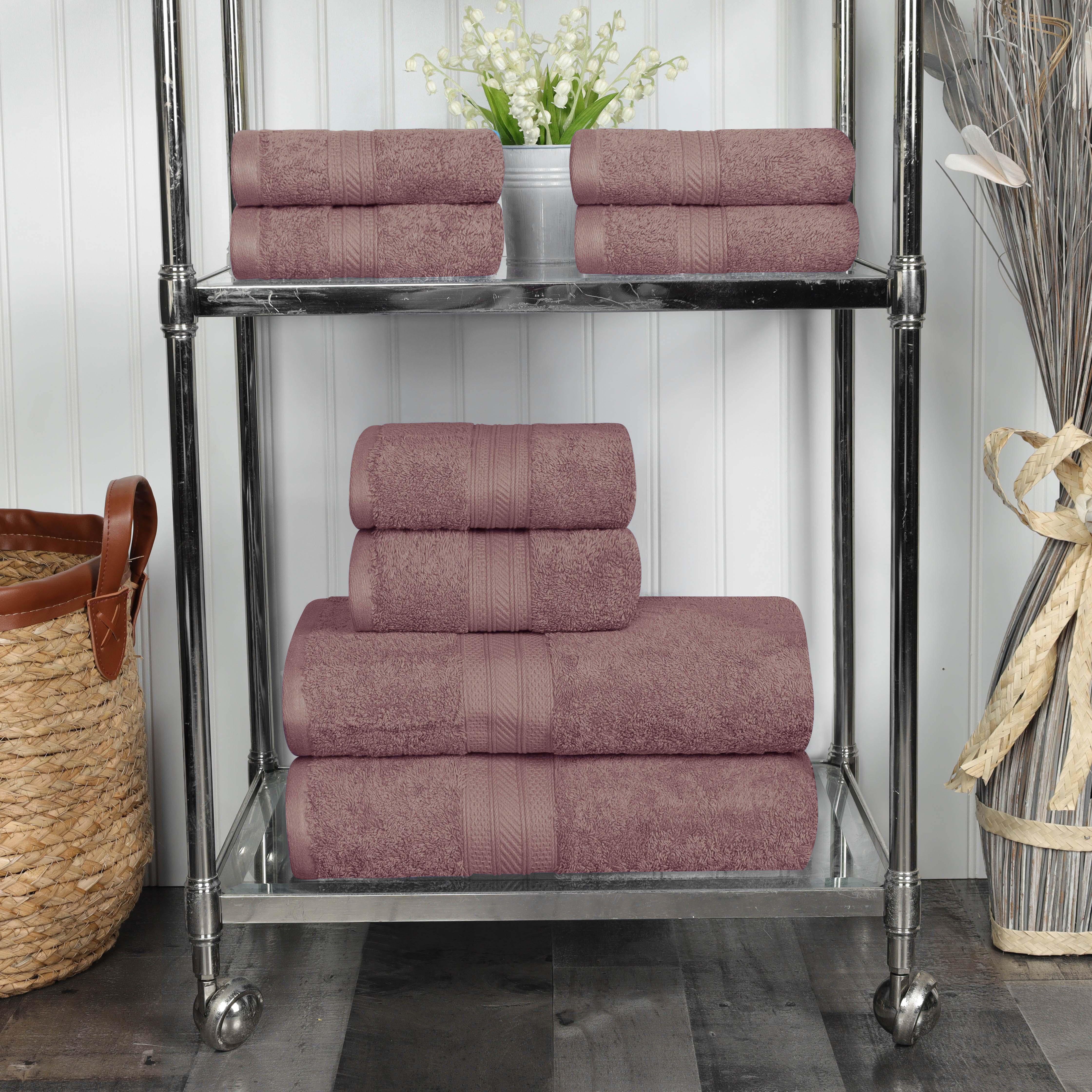 This bath bundle set offers a complete, coordinated look for any bathroom, featuring a refined dobby border for a touch of elegance. If you're looking for the best deal on towels that offer both luxury and practicality, this large towel set is the perfect choice to create a spa-like feel at home.