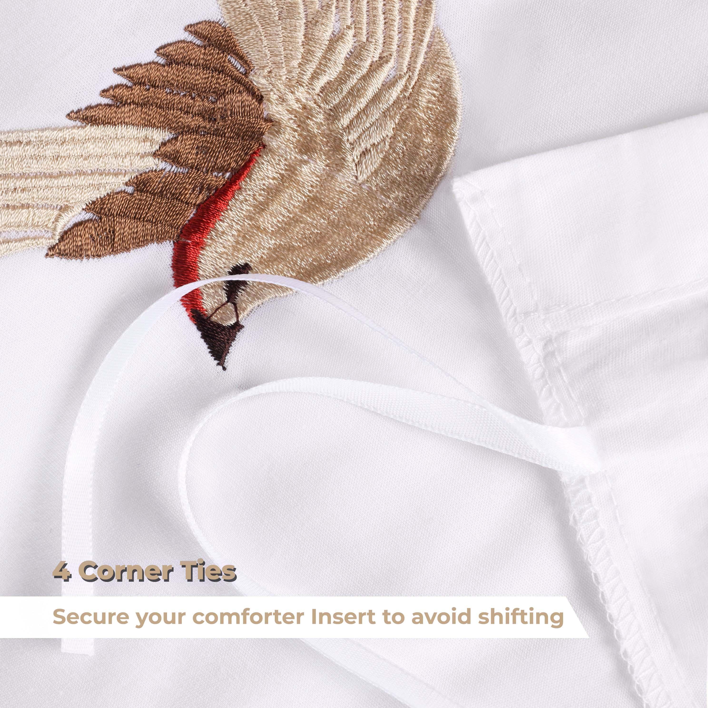 Clear hidden buttons secure the duvet, and the matching embroidered pillow shams provide a polished, coordinated finish. This set is ideal for those who appreciate timeless design with a touch of natural beauty.