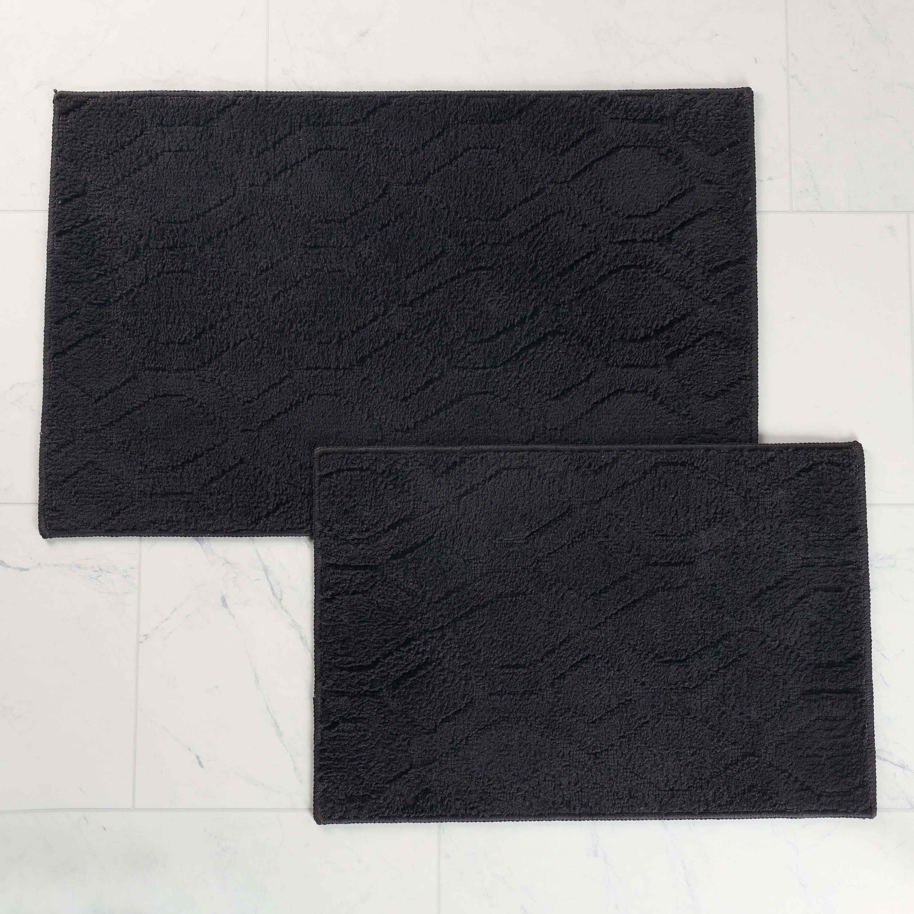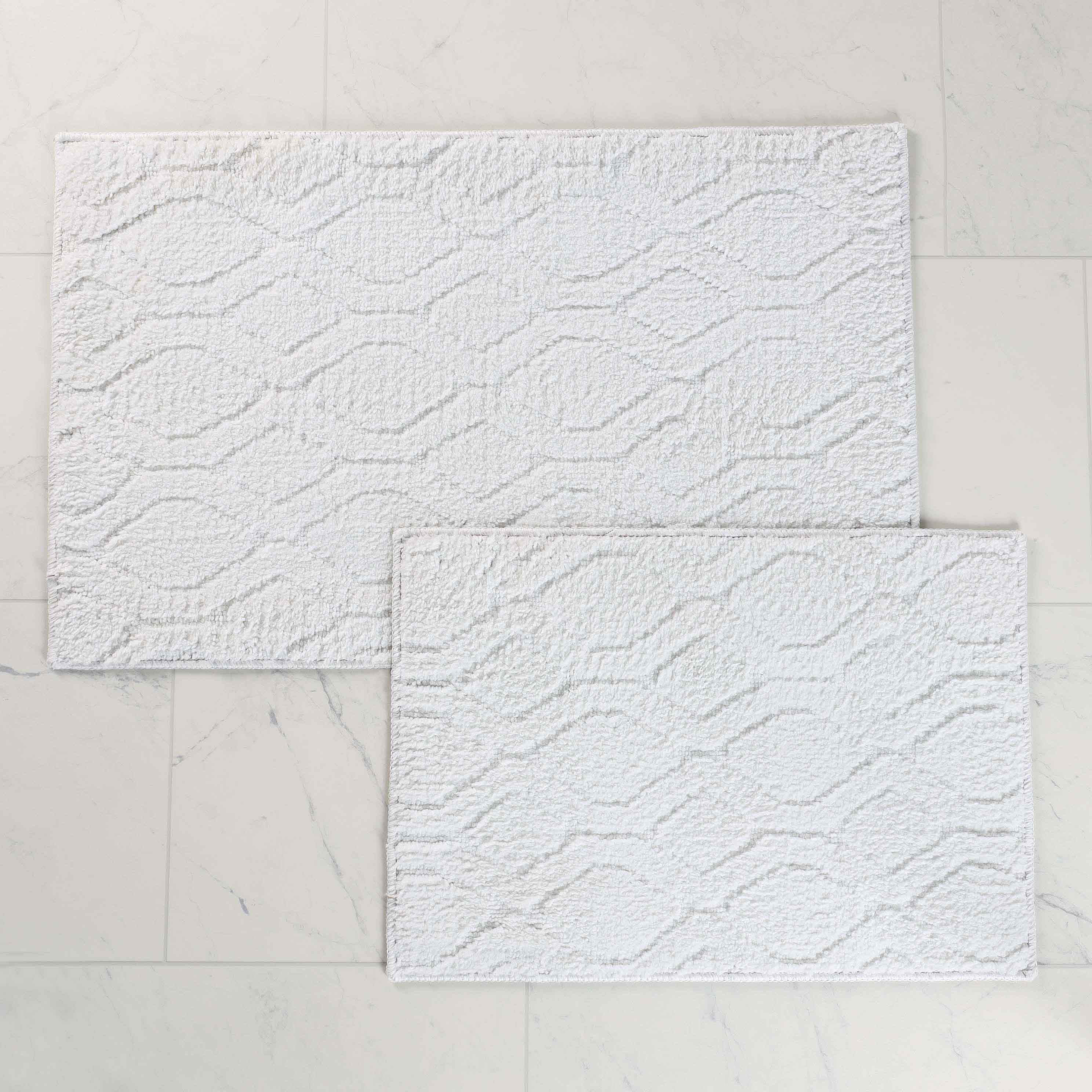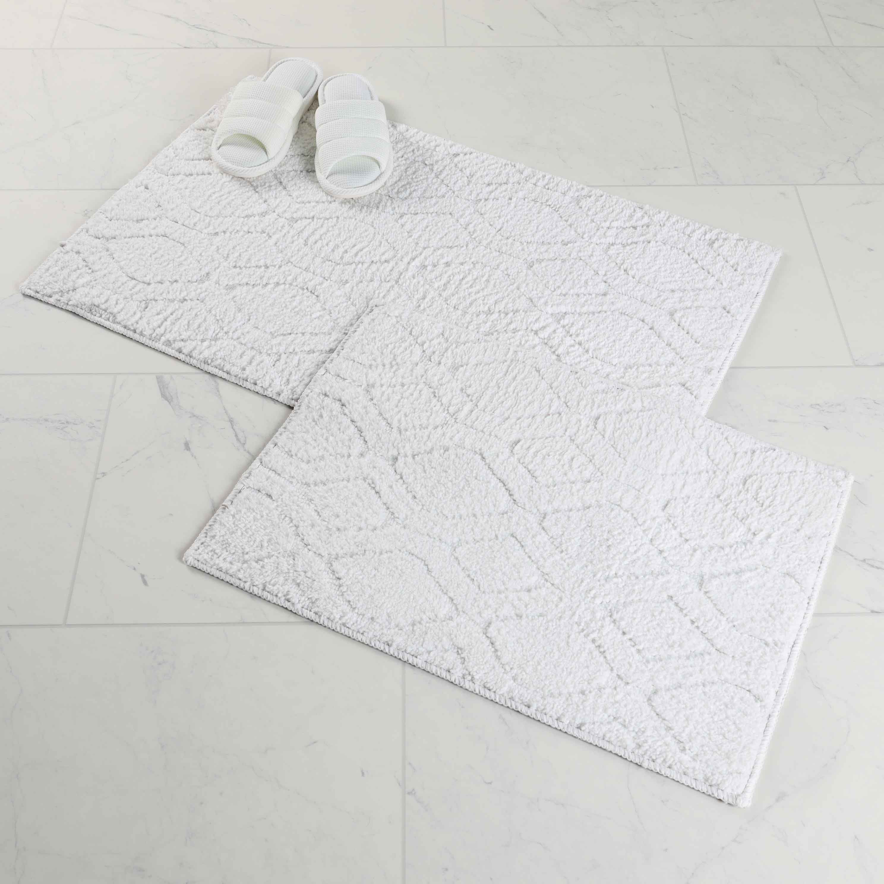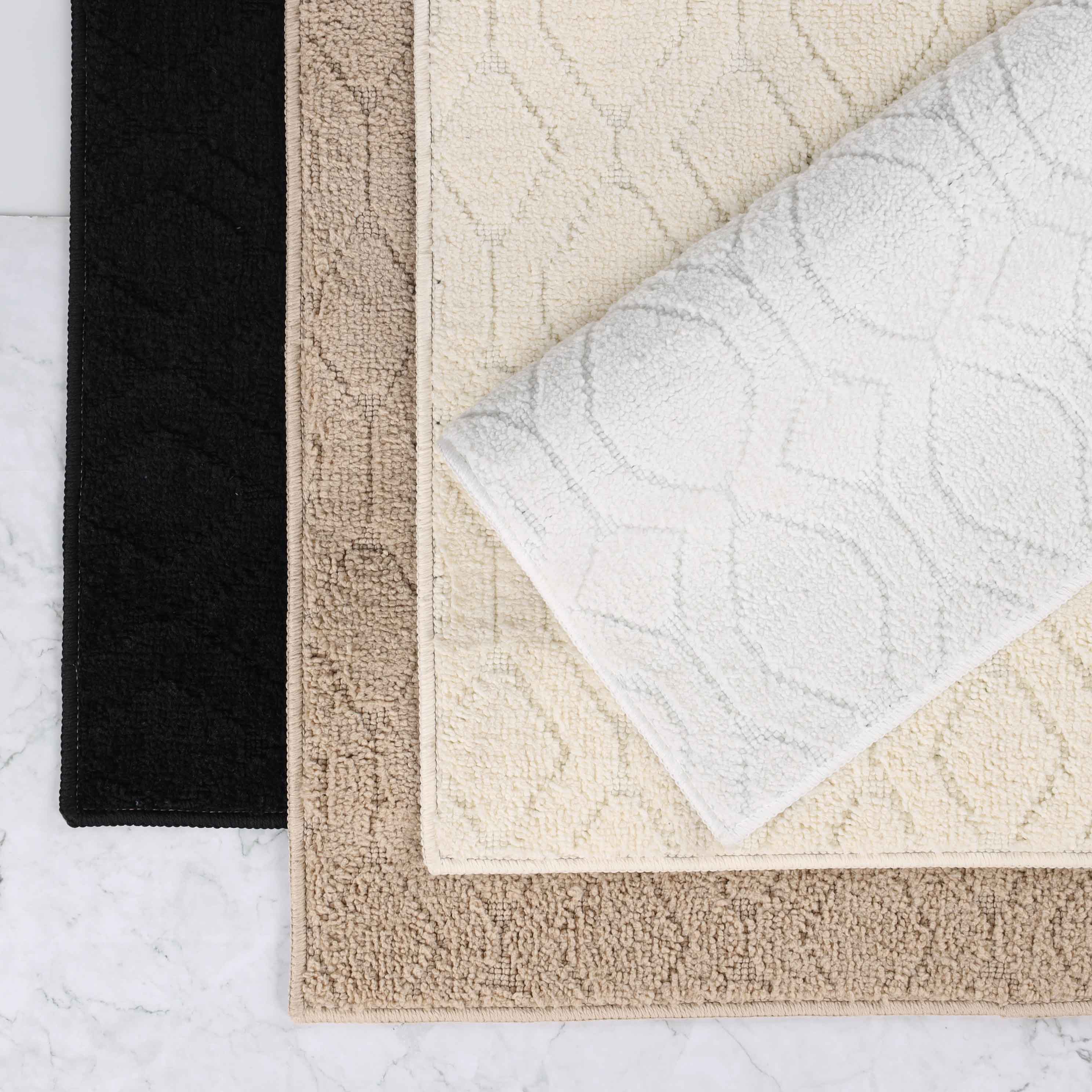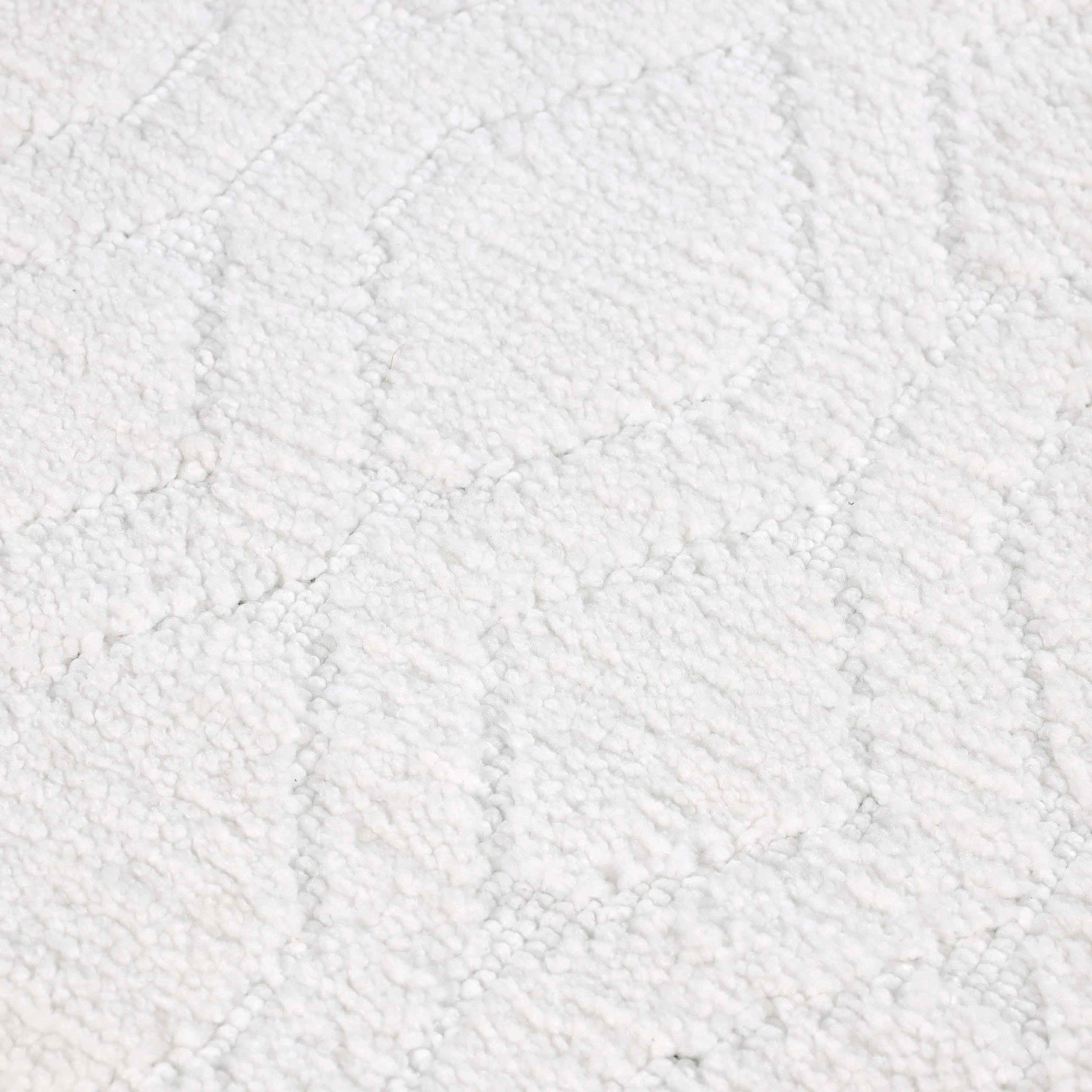 Infuse your bathroom with modern elegance with our Brou Diamond Lattice Bath Rug Set. This set of two rugs boasts a chic geometric pattern and a luxurious high-low pile that adds depth and texture to your space. Available in a range of sophisticated colors – White, Ivory, Beige, and Black – these rugs effortlessly complement any decor. Crafted from 100% polyester, they are exceptionally soft and durable, while the machine-washable design ensures easy care. With a non-slip backing for added safety and convenient size options for your bathroom or kitchen, these rugs are the perfect blend of style and functionality.