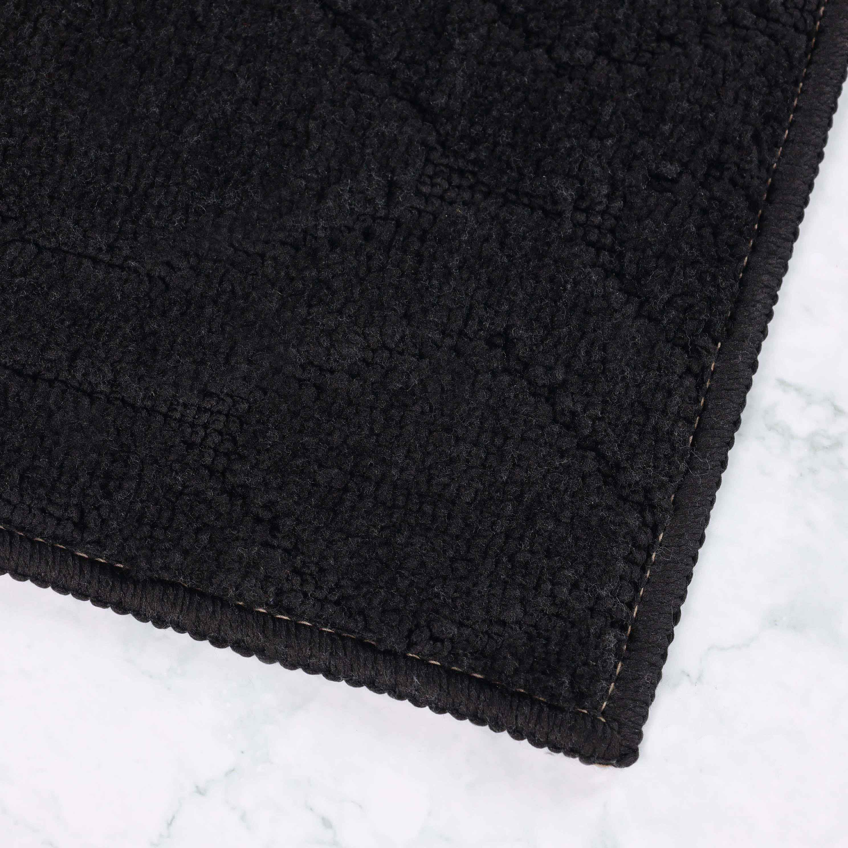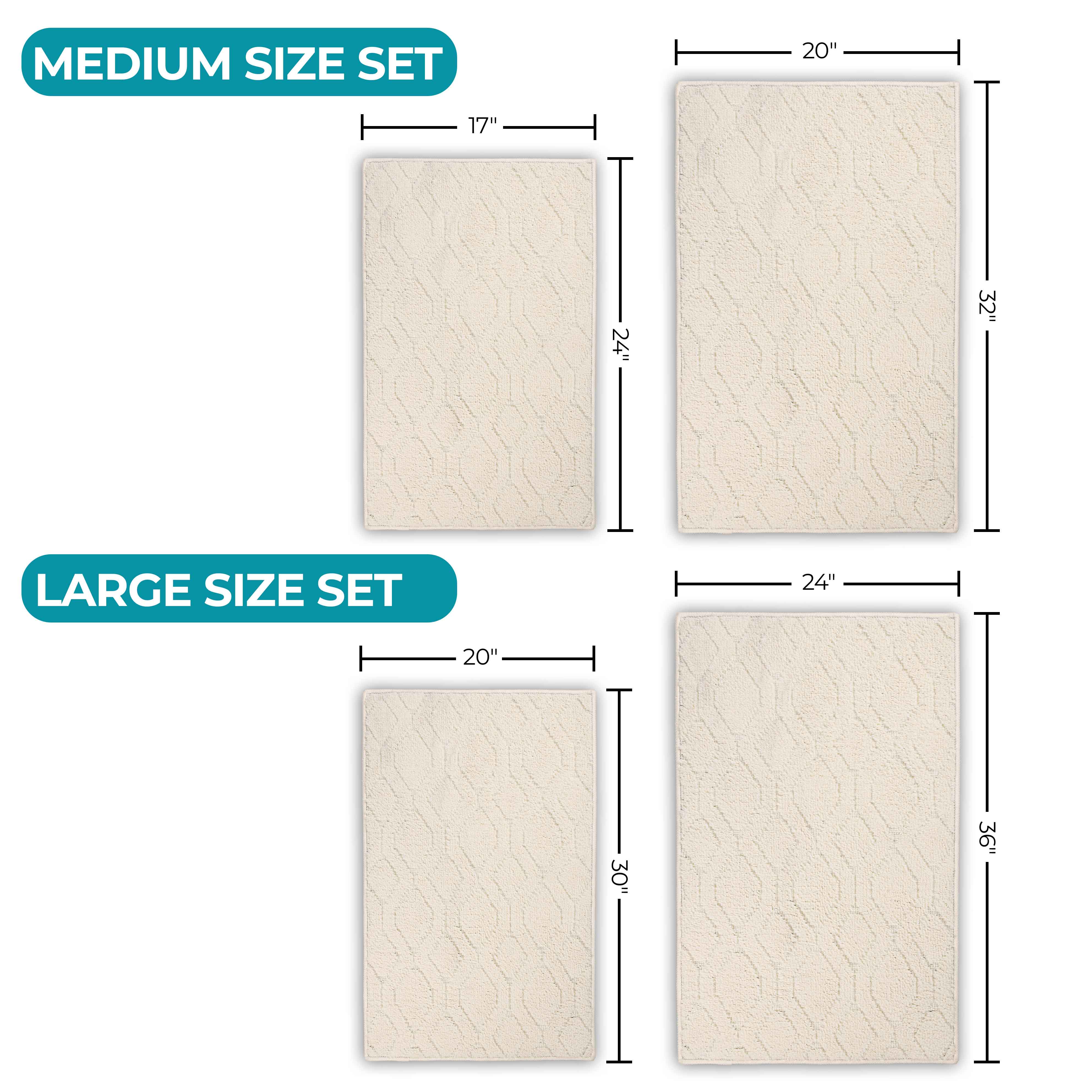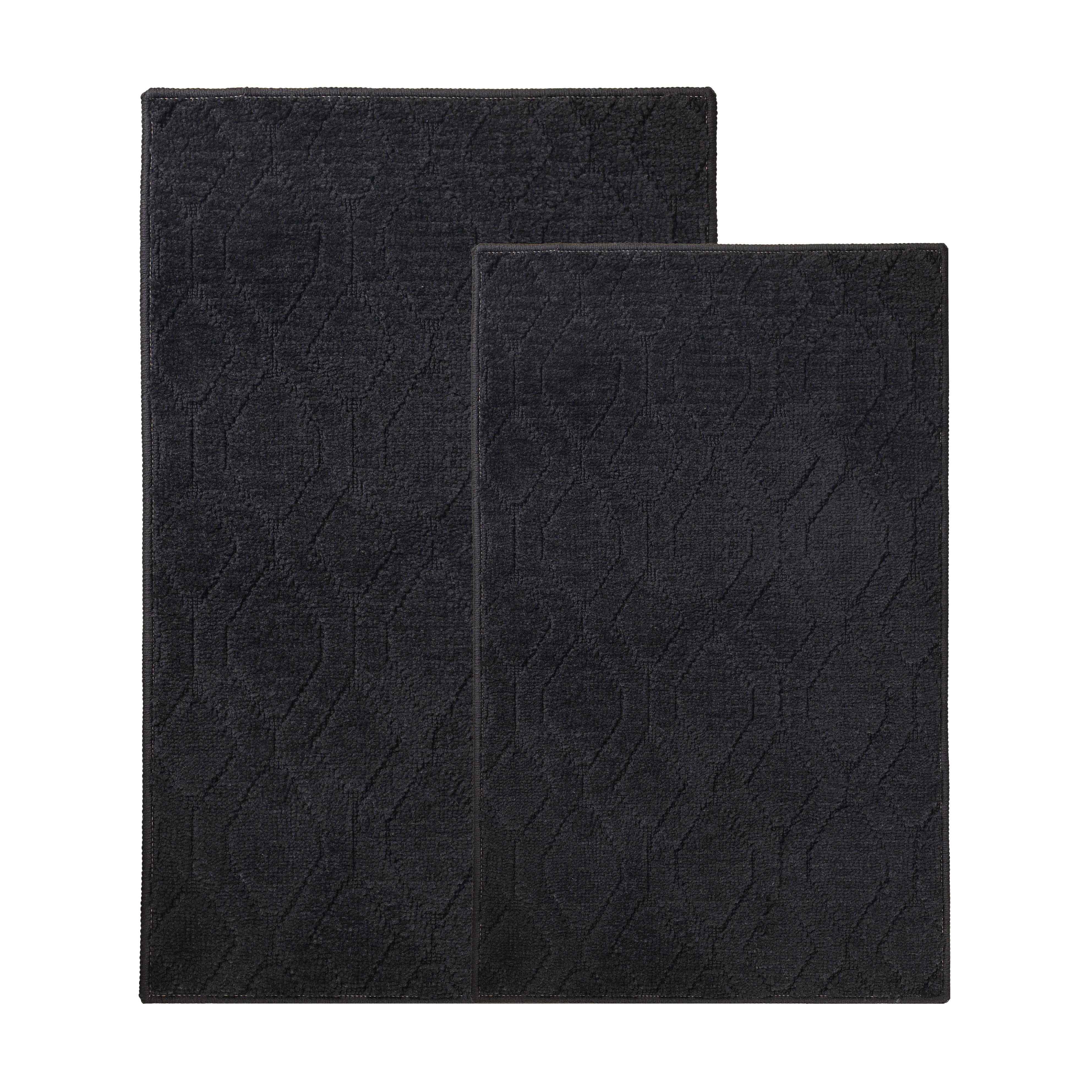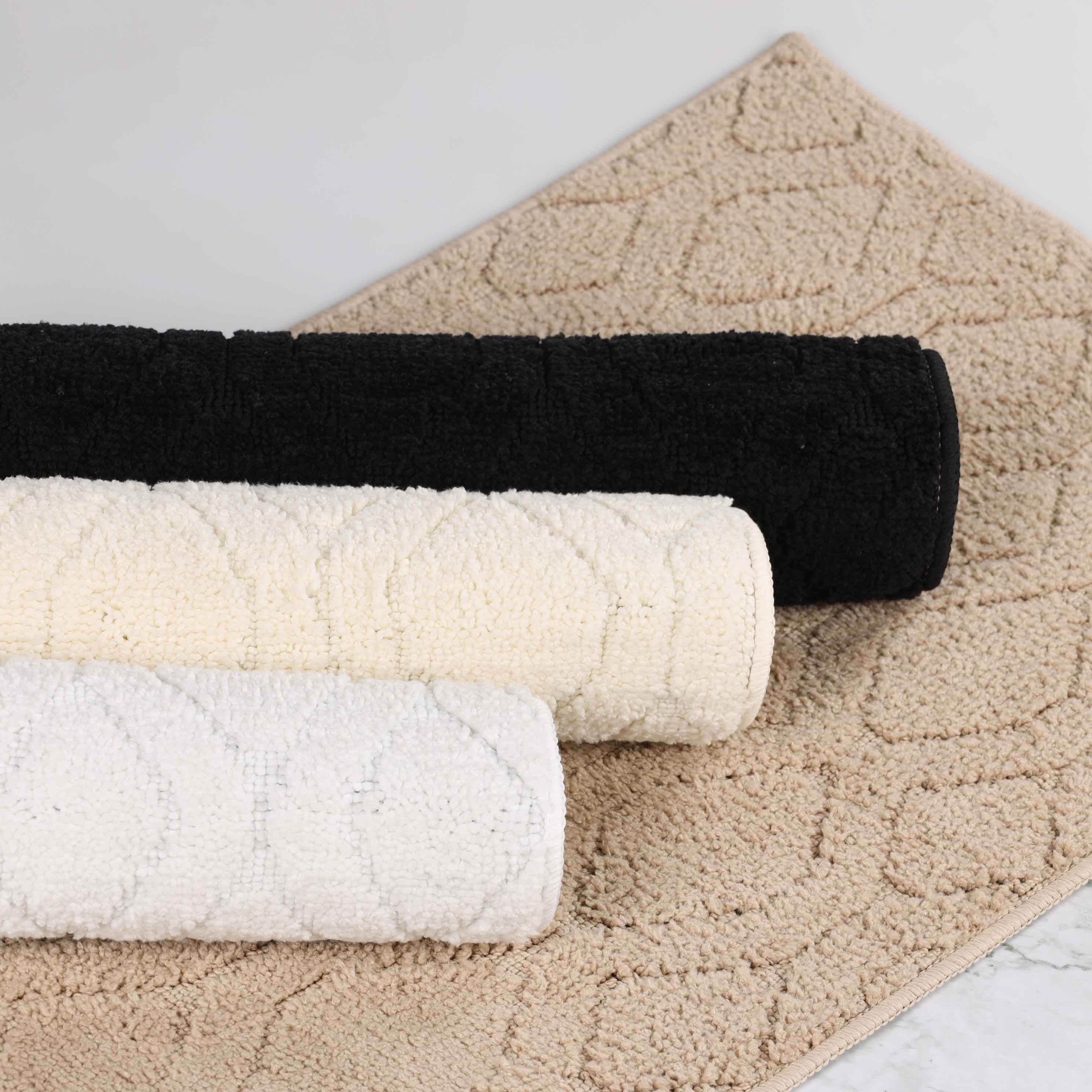 Infuse your bathroom with modern elegance with our Brou Diamond Lattice Bath Rug Set. This set of two rugs boasts a chic geometric pattern and a luxurious high-low pile that adds depth and texture to your space. Available in a range of sophisticated colors – White, Ivory, Beige, and Black – these rugs effortlessly complement any decor. Crafted from 100% polyester, they are exceptionally soft and durable, while the machine-washable design ensures easy care. With a non-slip backing for added safety and convenient size options for your bathroom or kitchen, these rugs are the perfect blend of style and functionality.