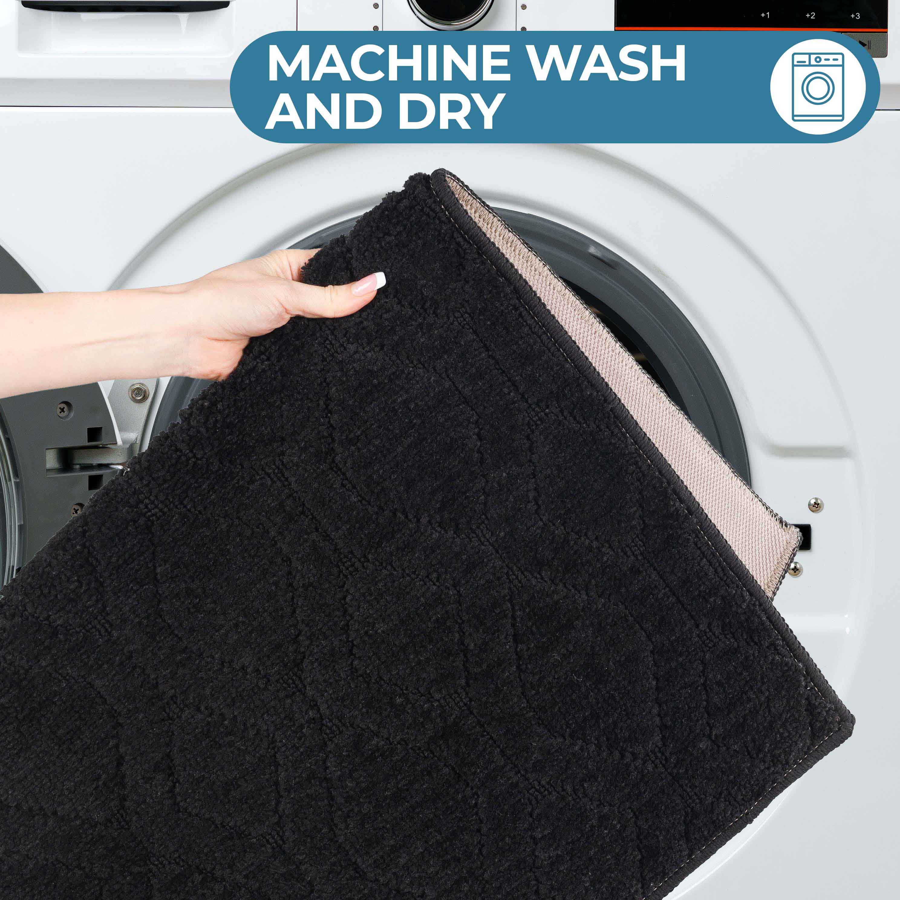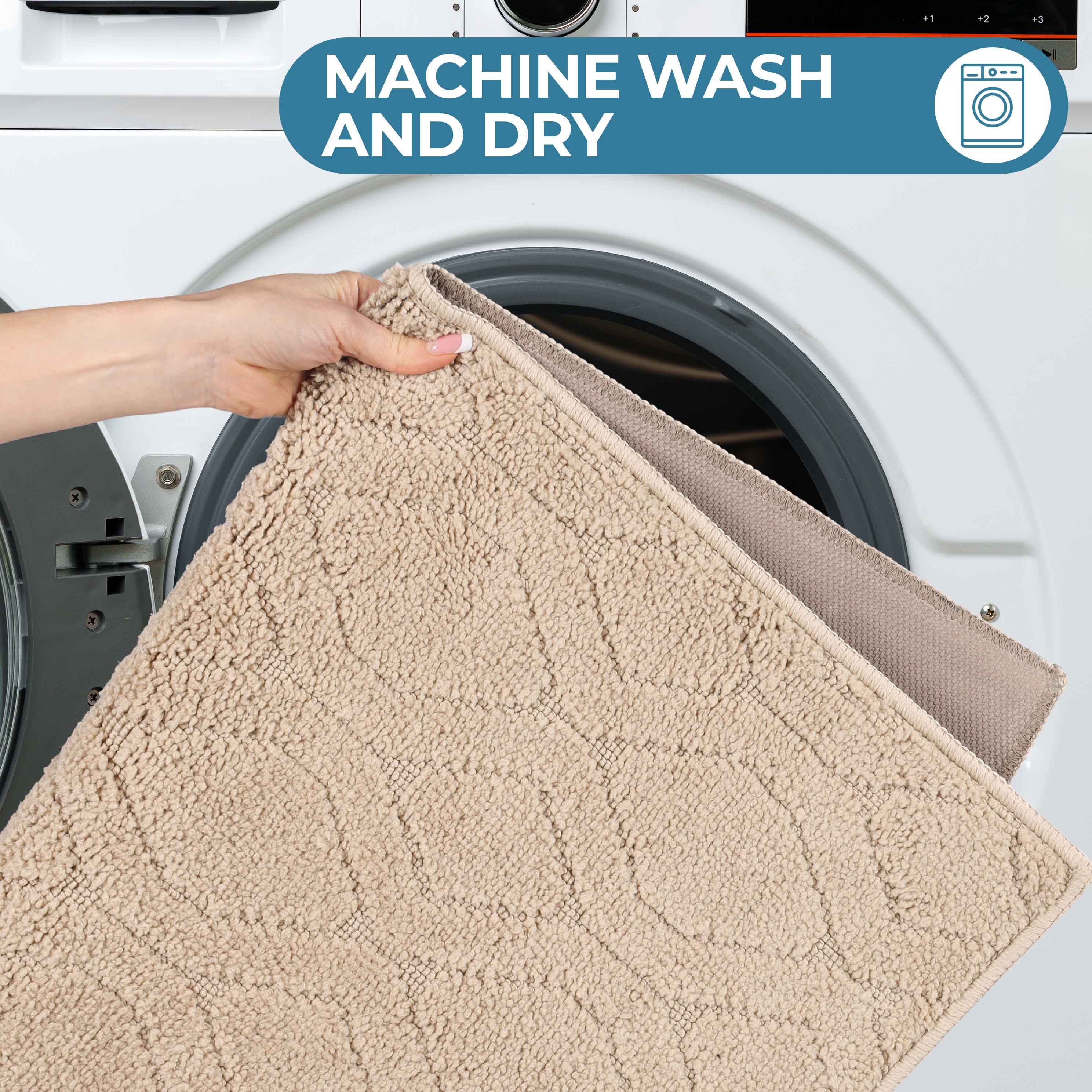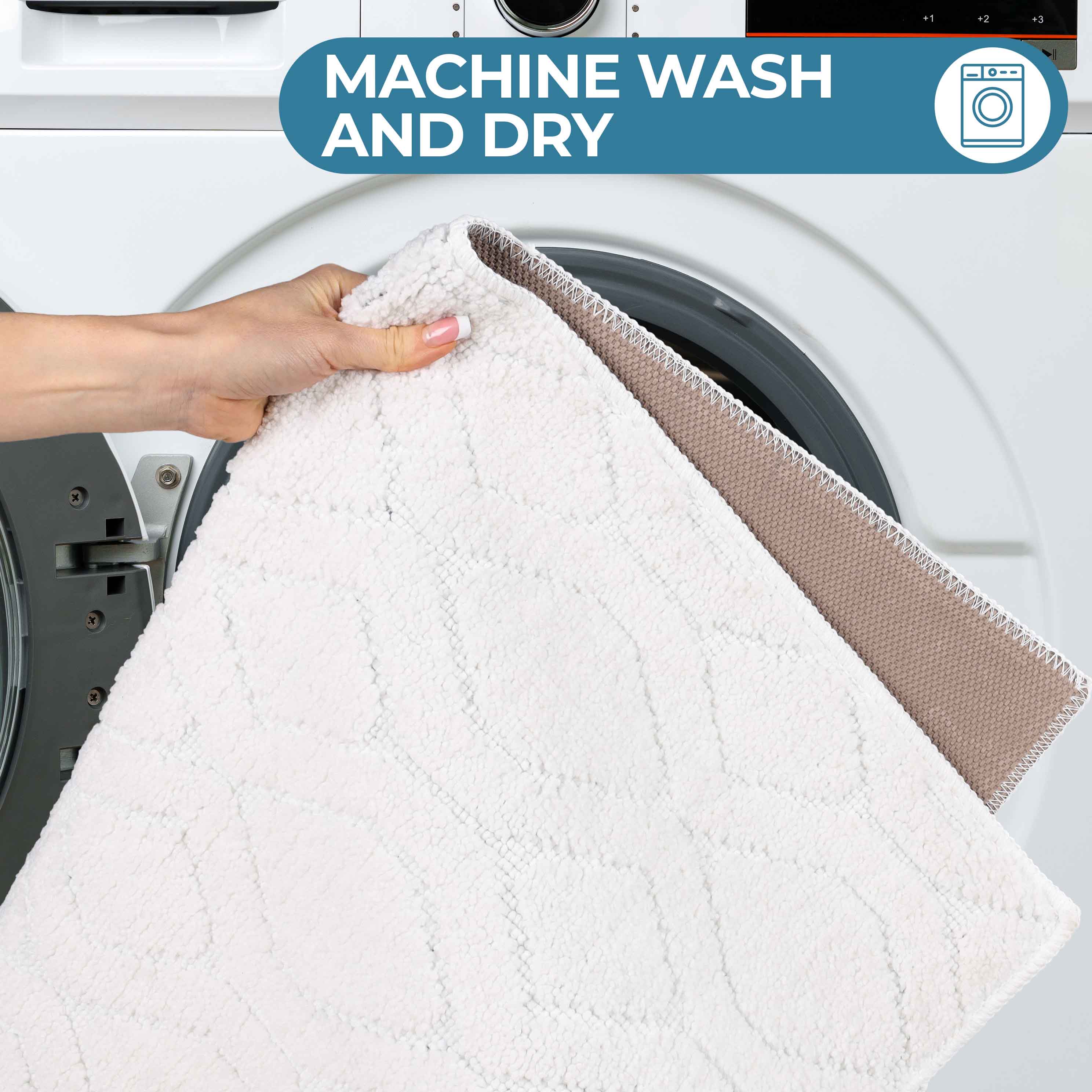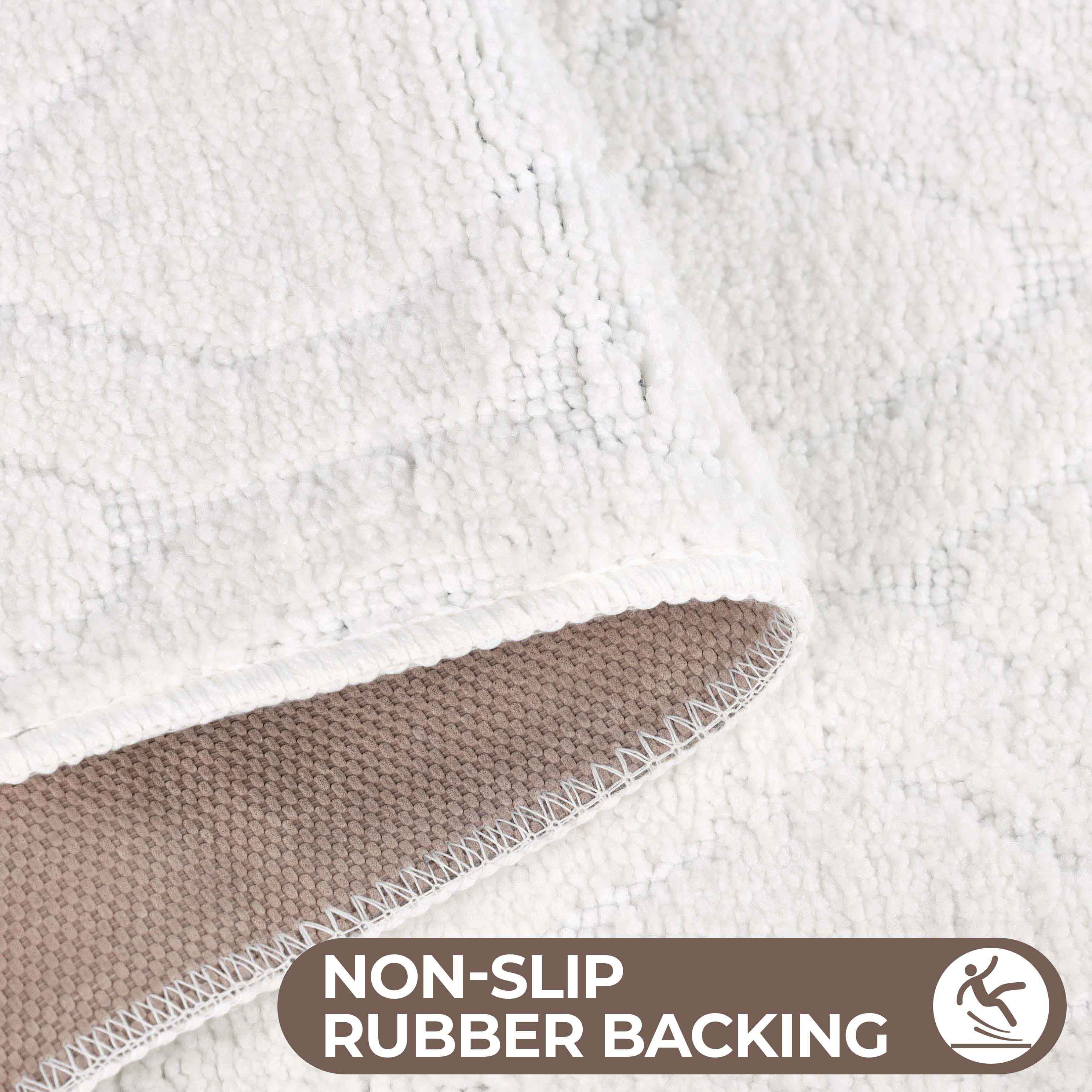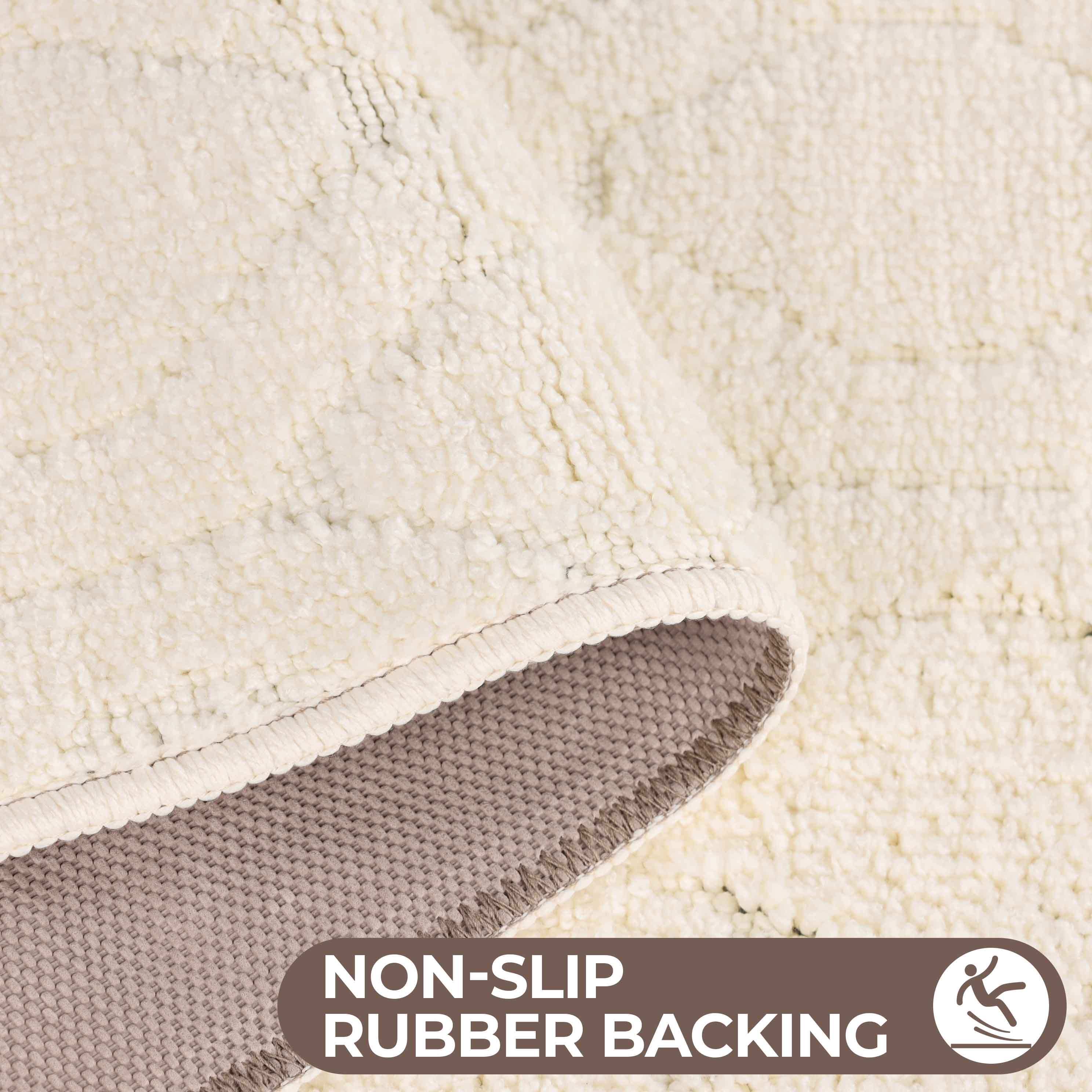 Infuse your bathroom with modern elegance with our Brou Diamond Lattice Bath Rug Set. This set of two rugs boasts a chic geometric pattern and a luxurious high-low pile that adds depth and texture to your space. Available in a range of sophisticated colors – White, Ivory, Beige, and Black – these rugs effortlessly complement any decor. Crafted from 100% polyester, they are exceptionally soft and durable, while the machine-washable design ensures easy care. With a non-slip backing for added safety and convenient size options for your bathroom or kitchen, these rugs are the perfect blend of style and functionality.