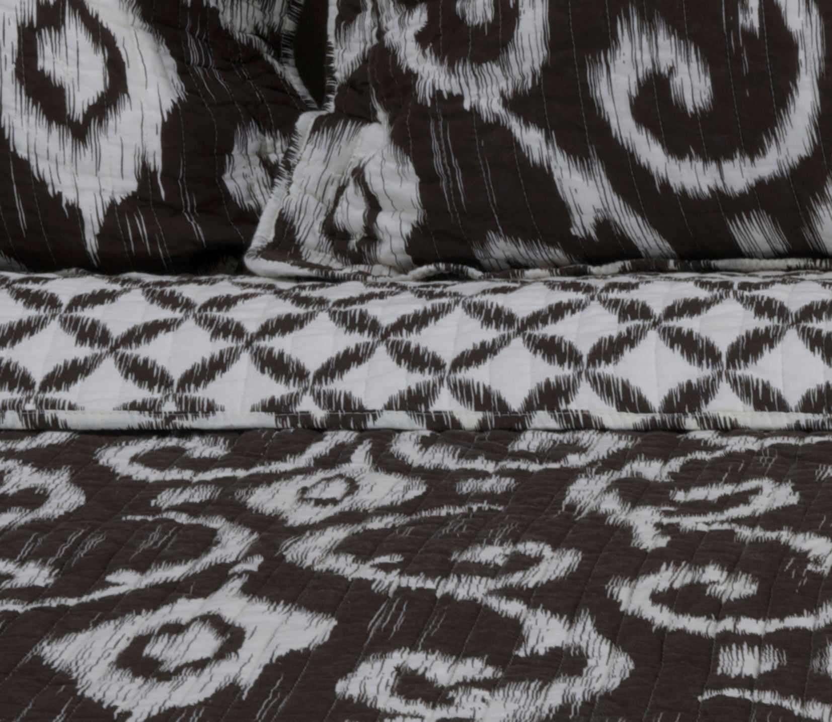 Liven up your bedroom with the upbeat pattern of the Cambridge Ikat 3-Piece Quilt Set. The reversible design features all-cotton fabric that's both soft and breathable to help keep you cool while you sleep. Quality channel stitching adds remarkable comfort and just the right amount of weight, making it ideal for any time of year. The flanged edges of the shams are finished with flat piping that completes the look of the ensemble. More than beautiful, this 3-piece set is crafted to stand the test of time and to provide long-lasting performance you can depend on.