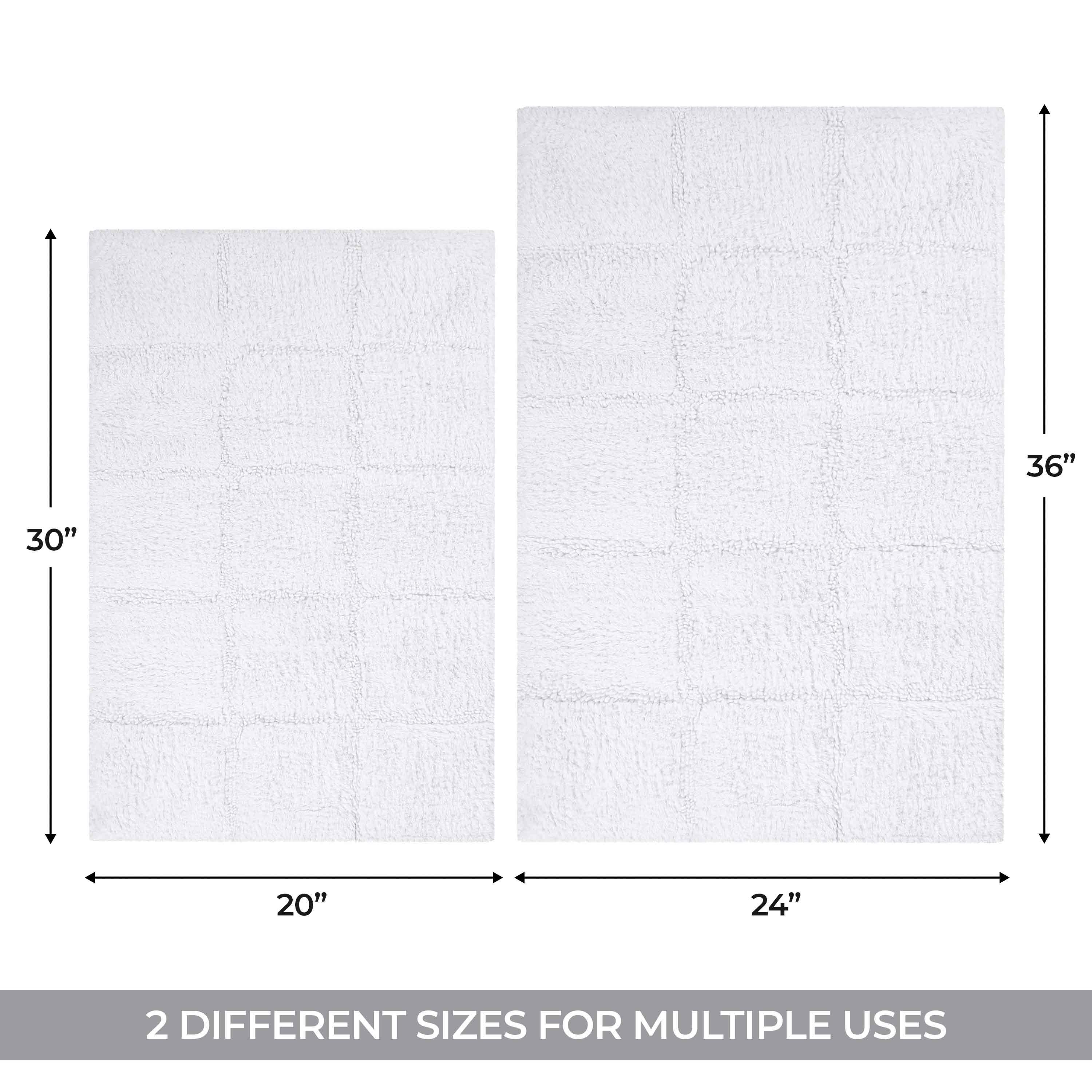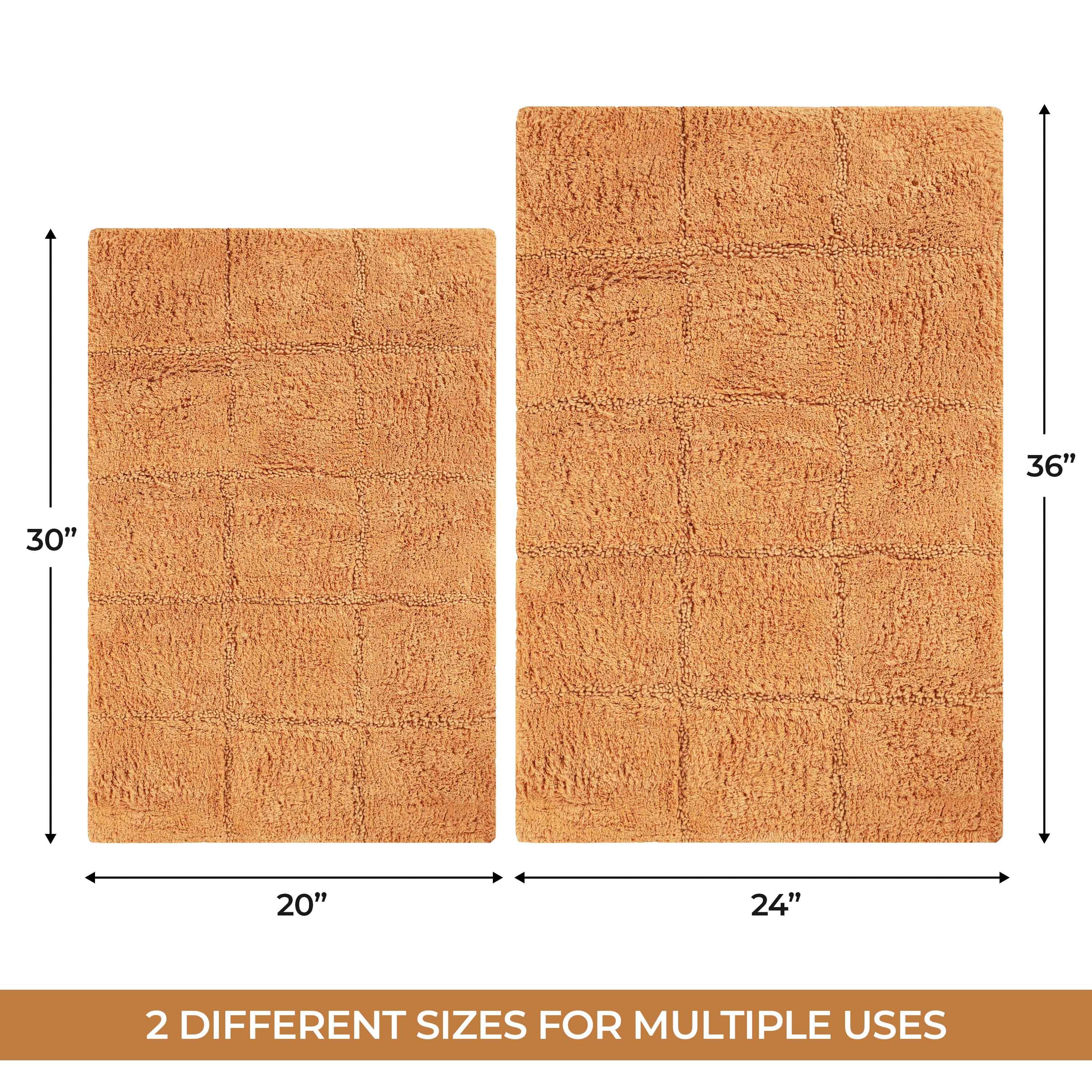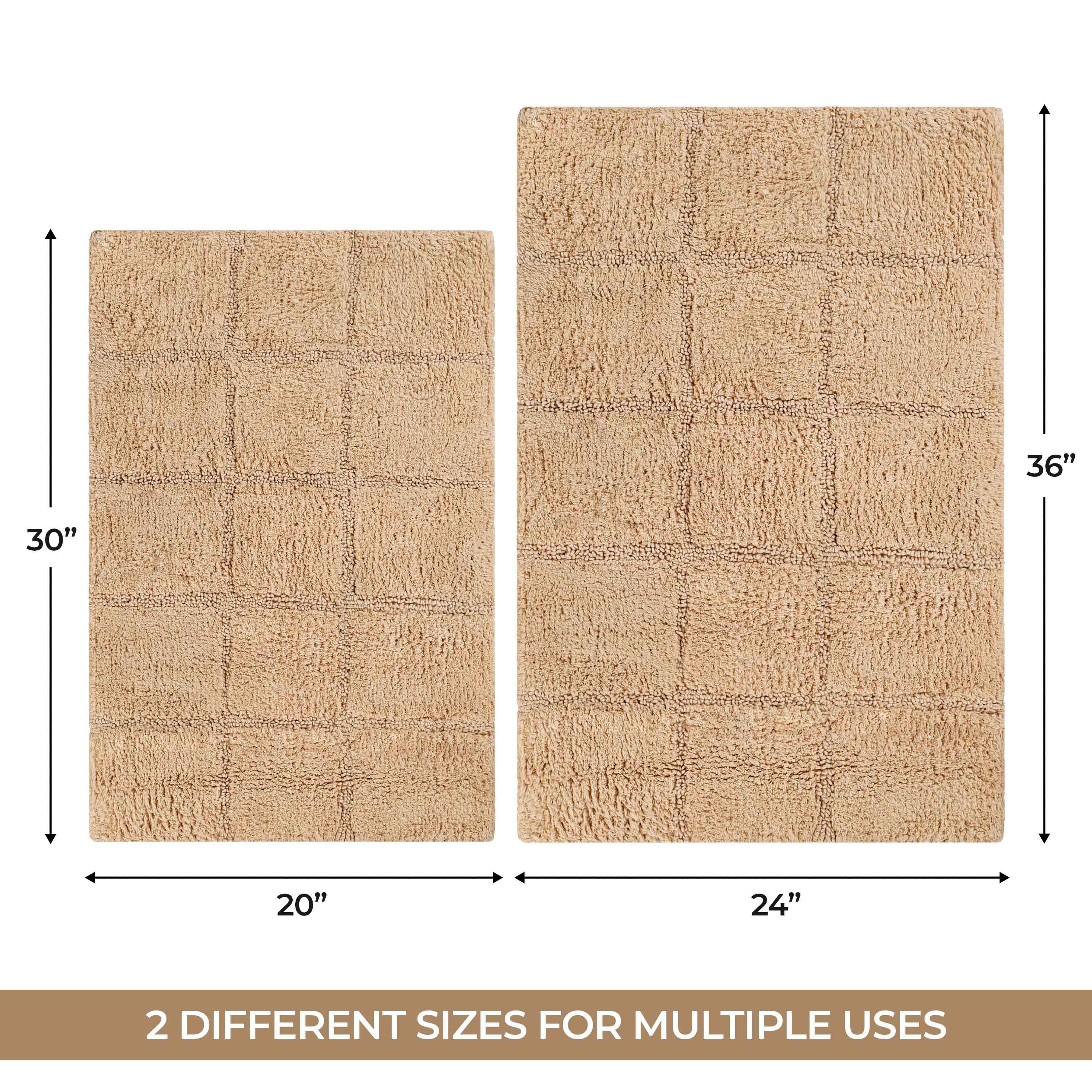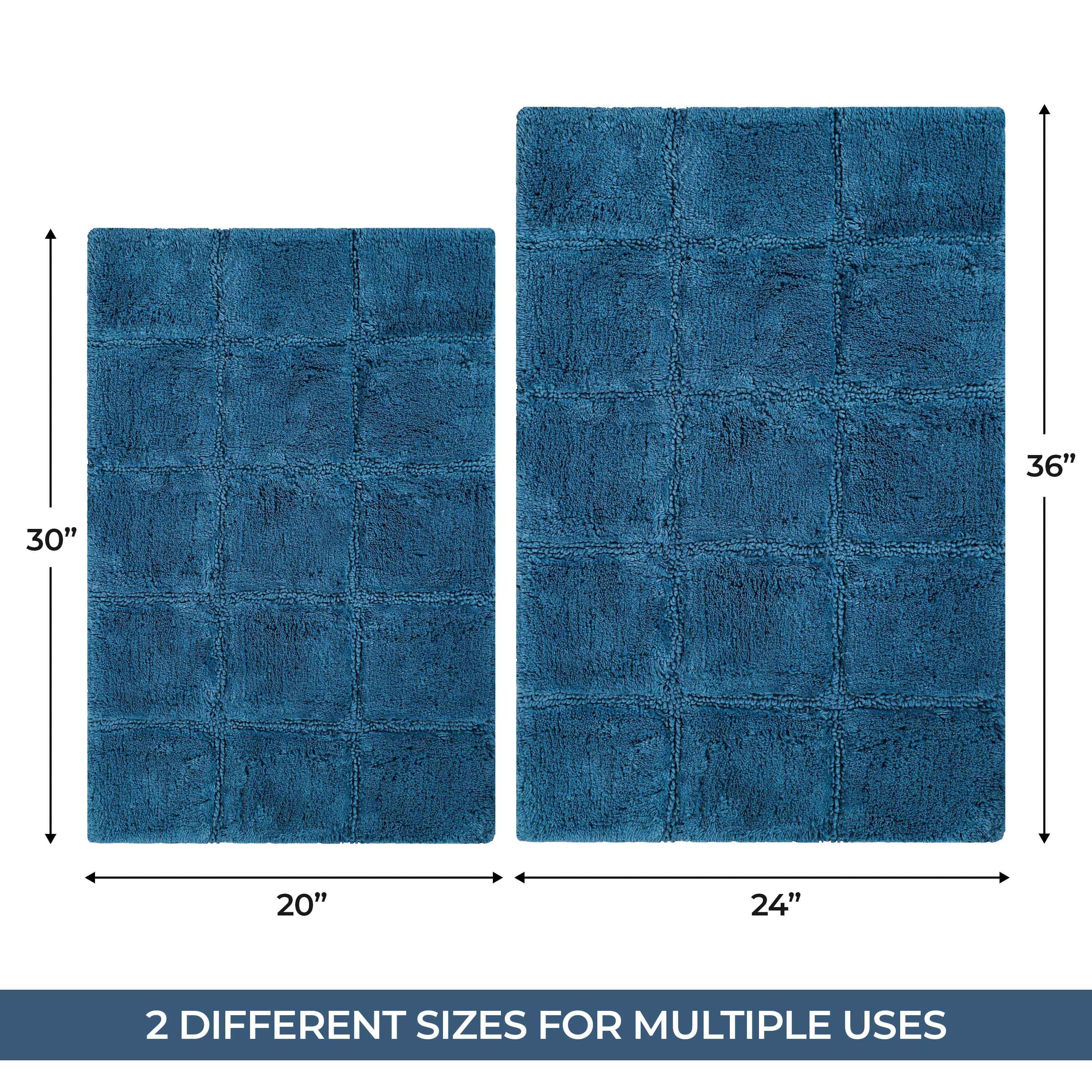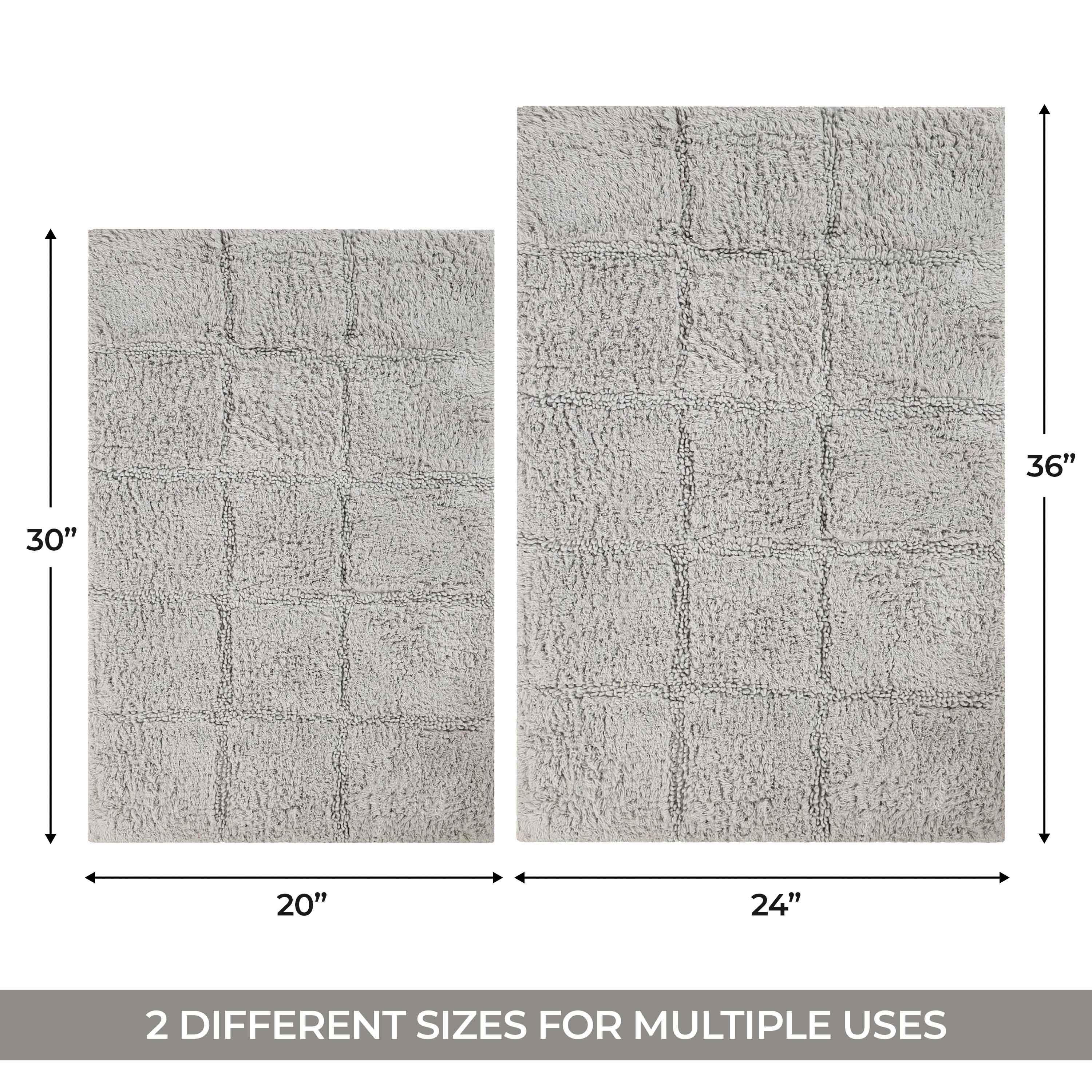 Start your mornings off right by stepping onto the Cotton Checkers 2 Piece Bath Rug Set. Crafted from plush and durable cotton fabric, this bath rug feels comfortable underfoot, giving you a hotel-like experience. The non-slip latex backing keeps your rug from shifting or sliding. Perfect for any shower space, the oversized checkered pattern easily coordinates with modern or contemporary bathroom styles. Available in two different sizes, place the larger rug outside your tub and the smaller rug in front of the sink for a tailored finish to your bathroom. This rug set is also OEKO-TEX certified, meaning it does not contain any harmful substances or chemicals, ensuring quality, comfort, and wellness.