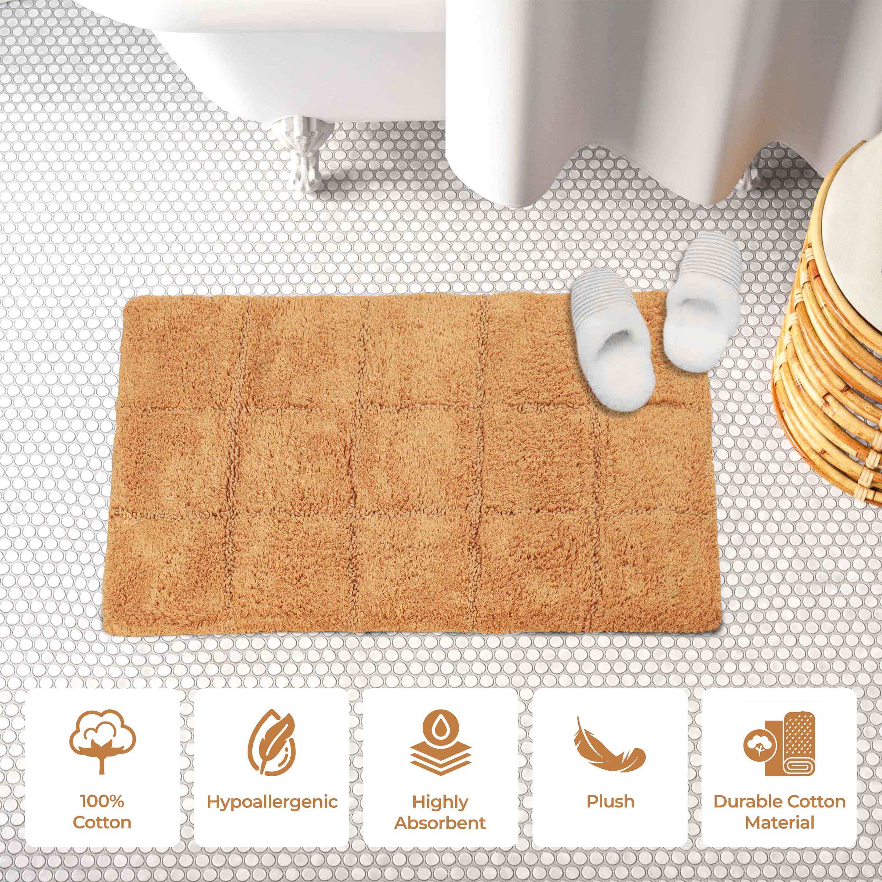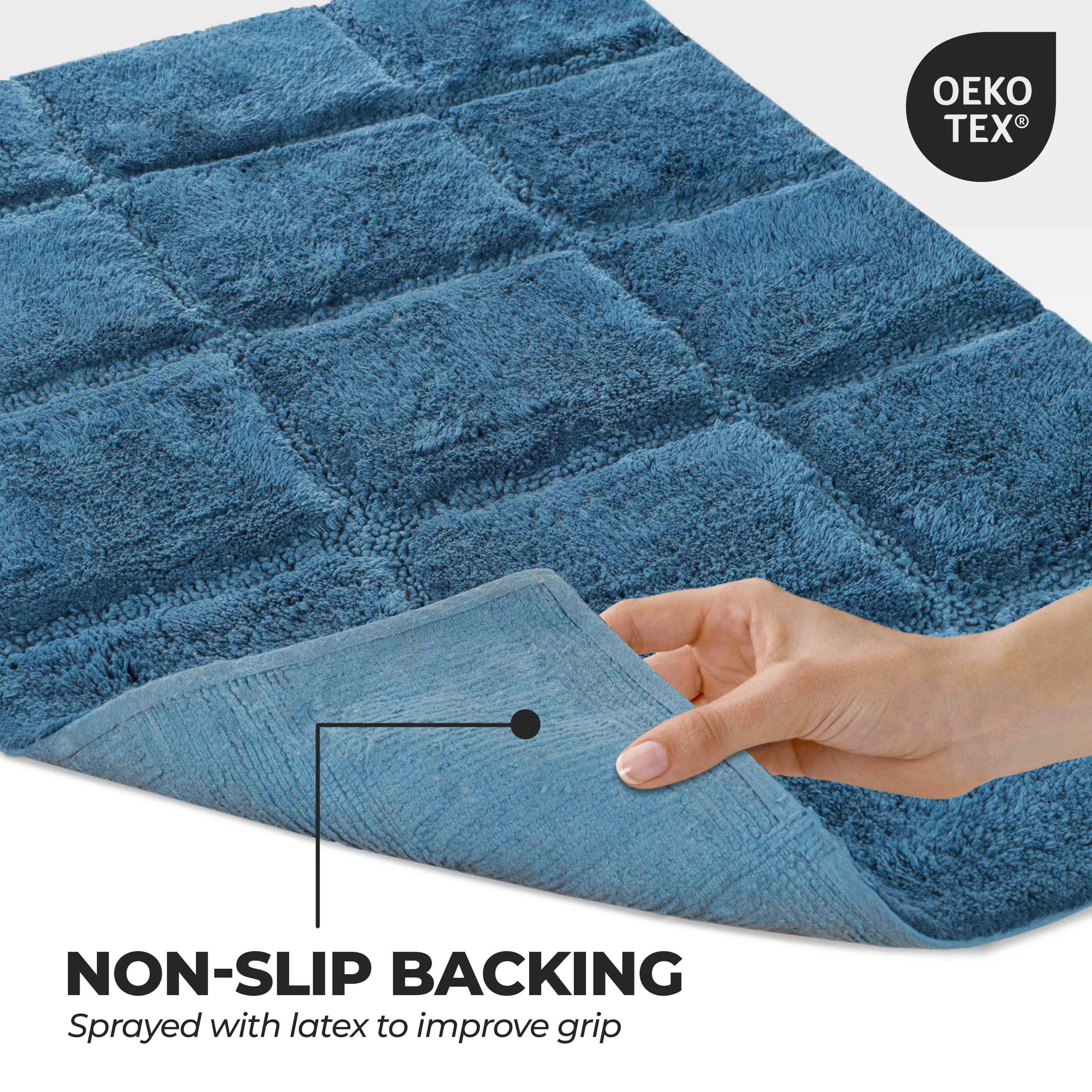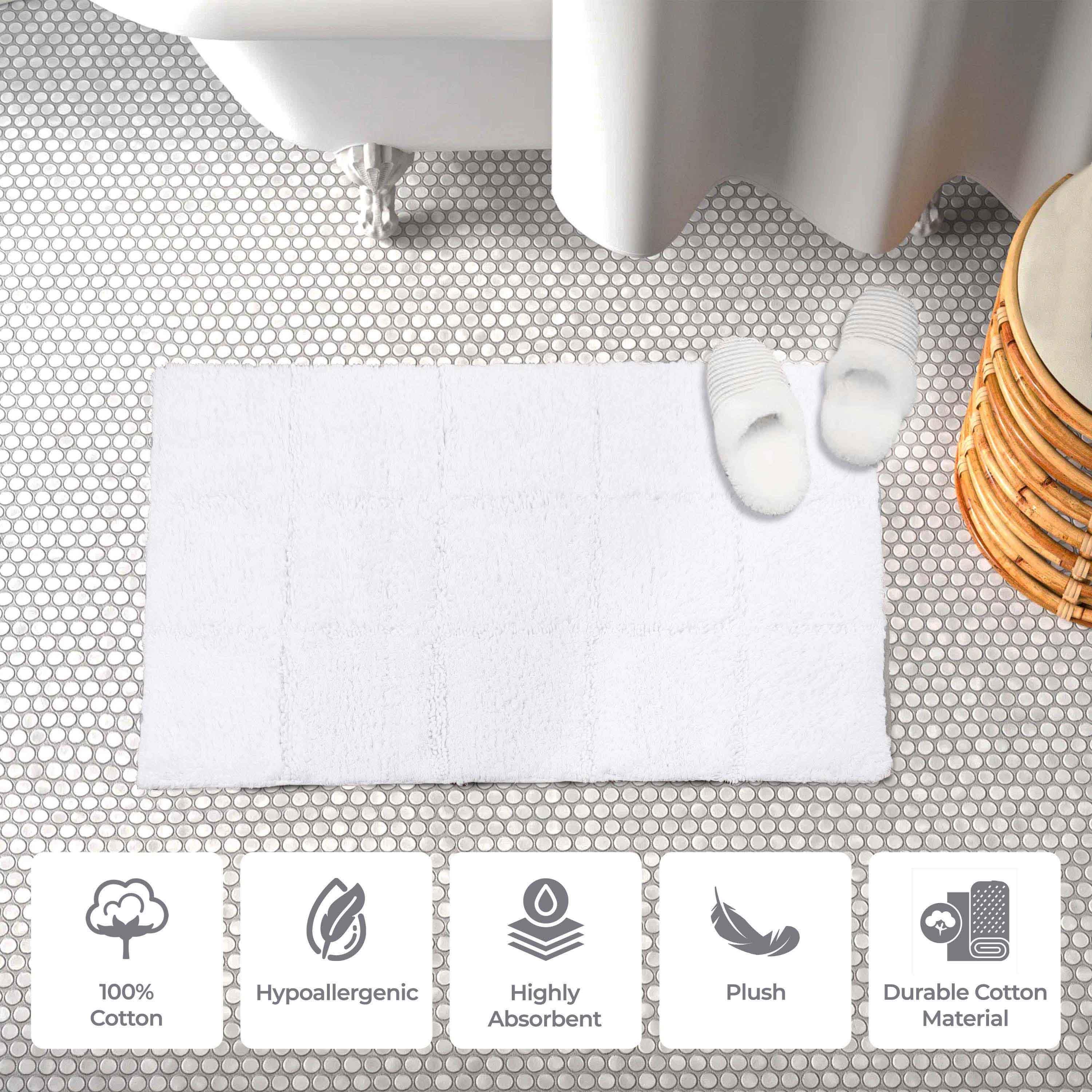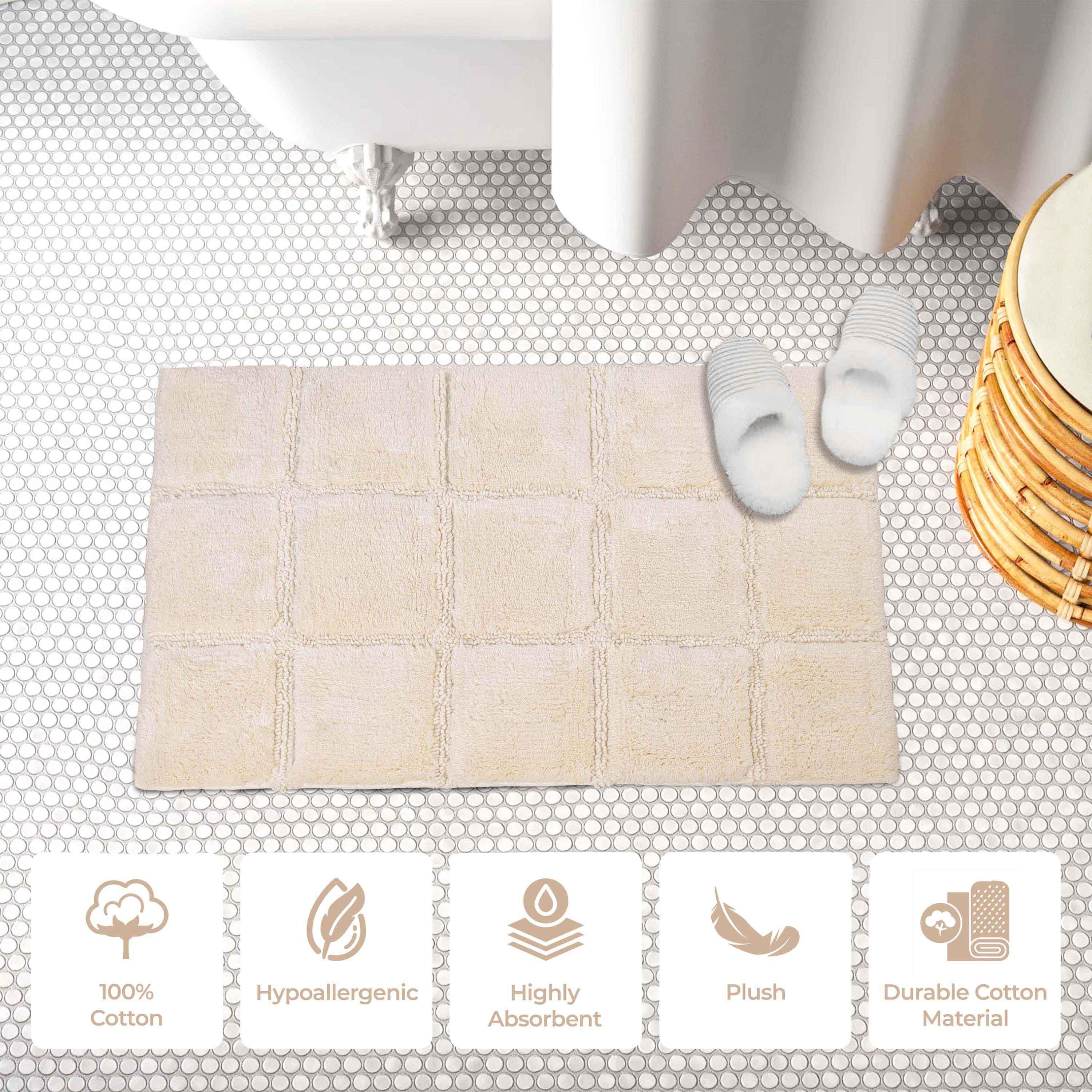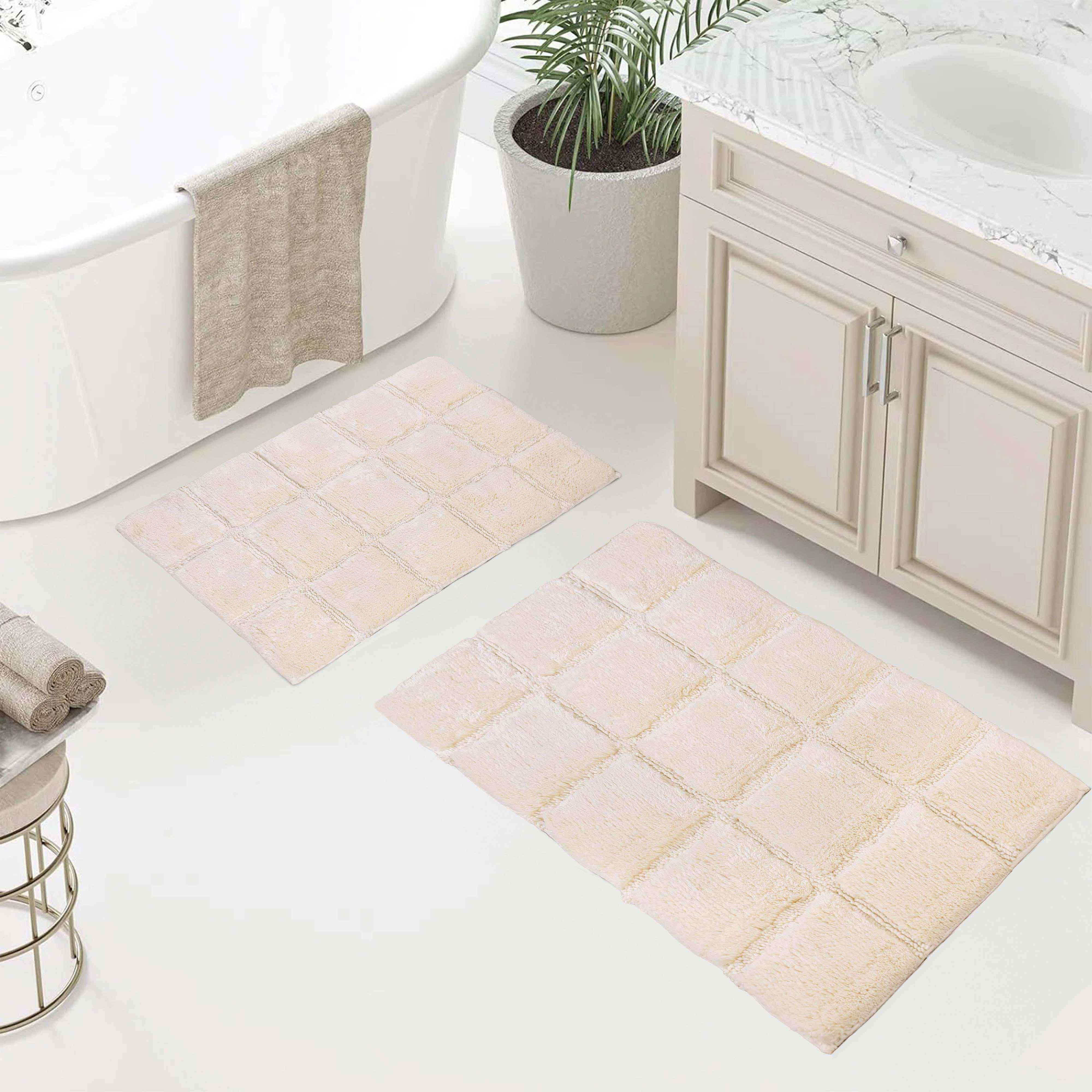 Start your mornings off right by stepping onto the Cotton Checkers 2 Piece Bath Rug Set. Crafted from plush and durable cotton fabric, this bath rug feels comfortable underfoot, giving you a hotel-like experience. The non-slip latex backing keeps your rug from shifting or sliding. Perfect for any shower space, the oversized checkered pattern easily coordinates with modern or contemporary bathroom styles. Available in two different sizes, place the larger rug outside your tub and the smaller rug in front of the sink for a tailored finish to your bathroom. This rug set is also OEKO-TEX certified, meaning it does not contain any harmful substances or chemicals, ensuring quality, comfort, and wellness.
