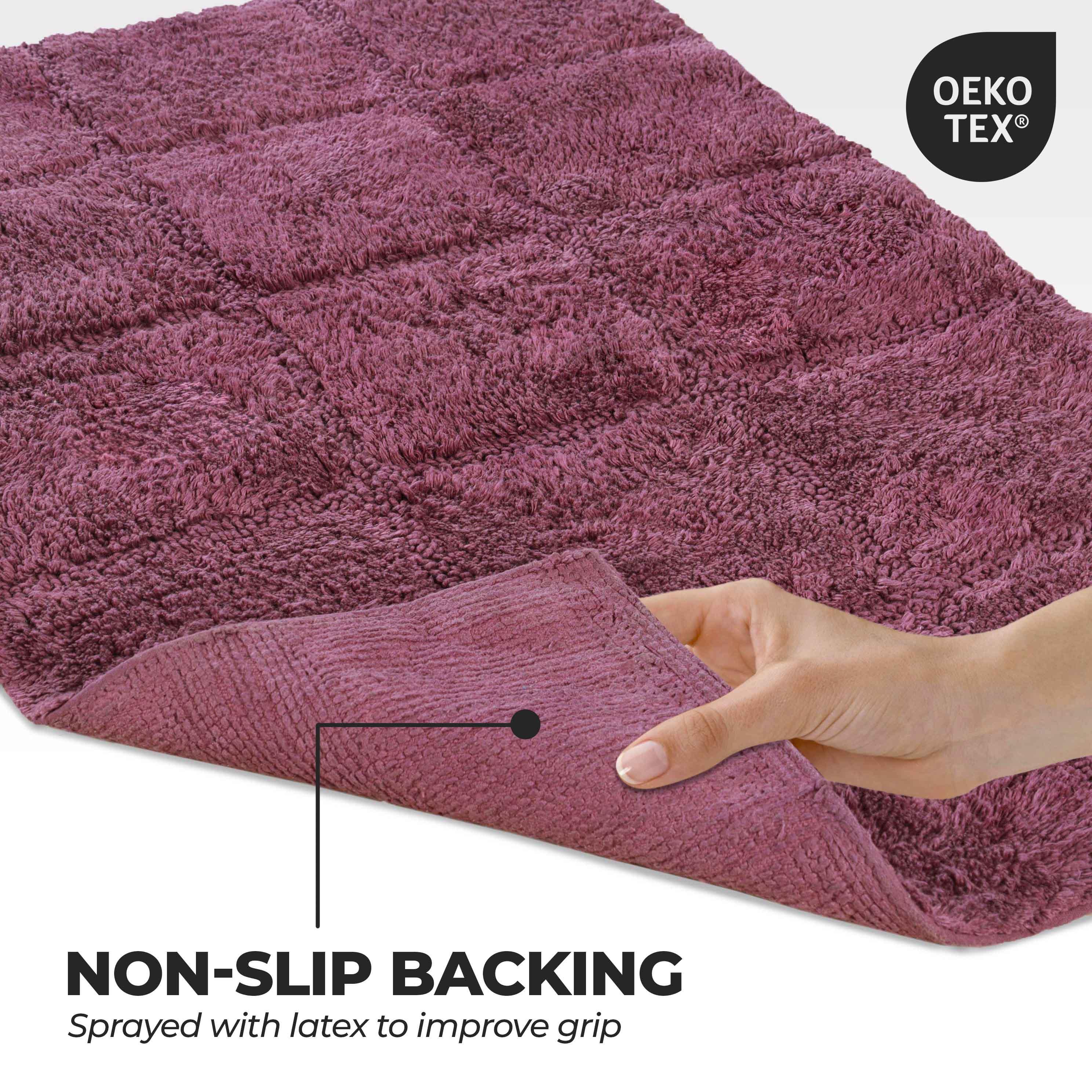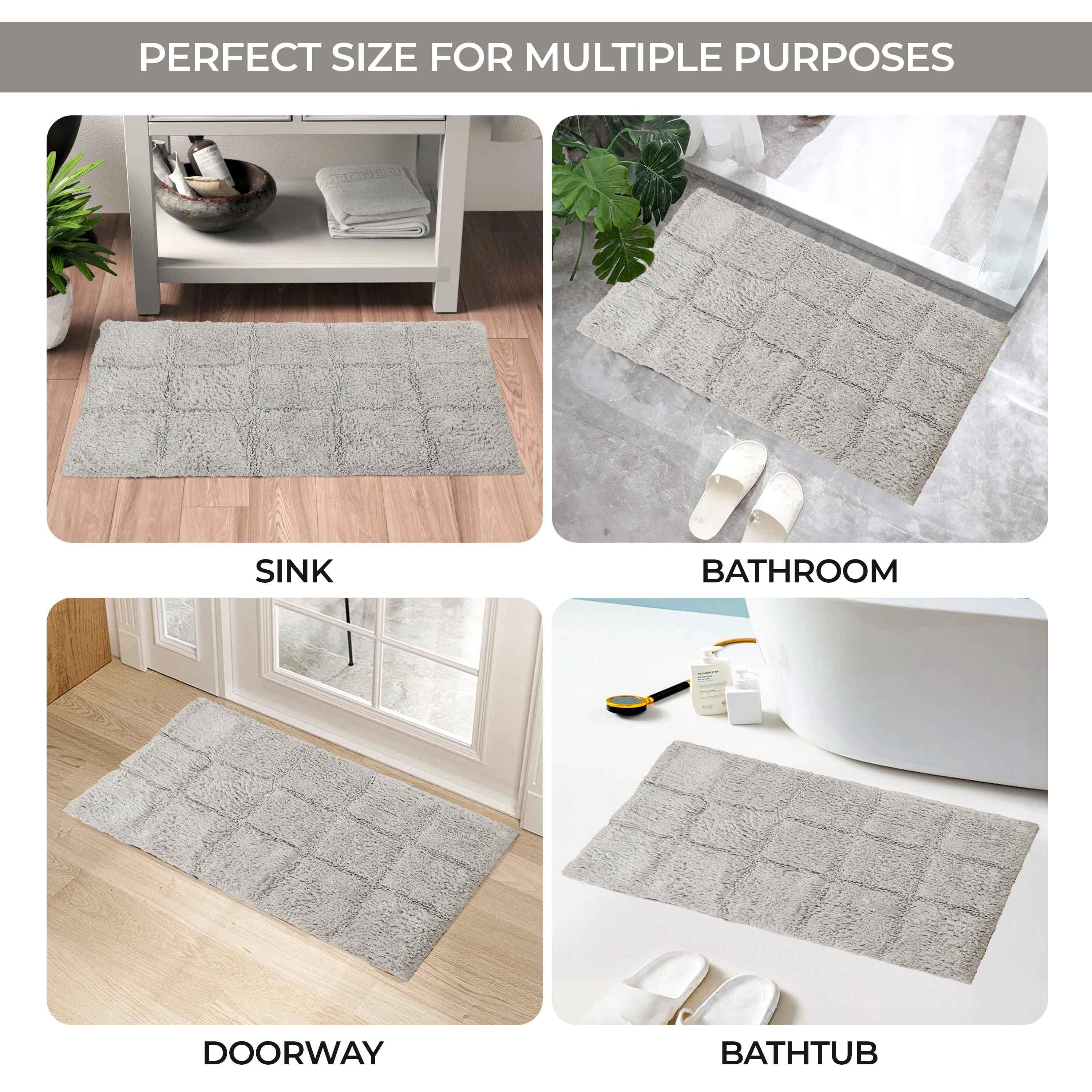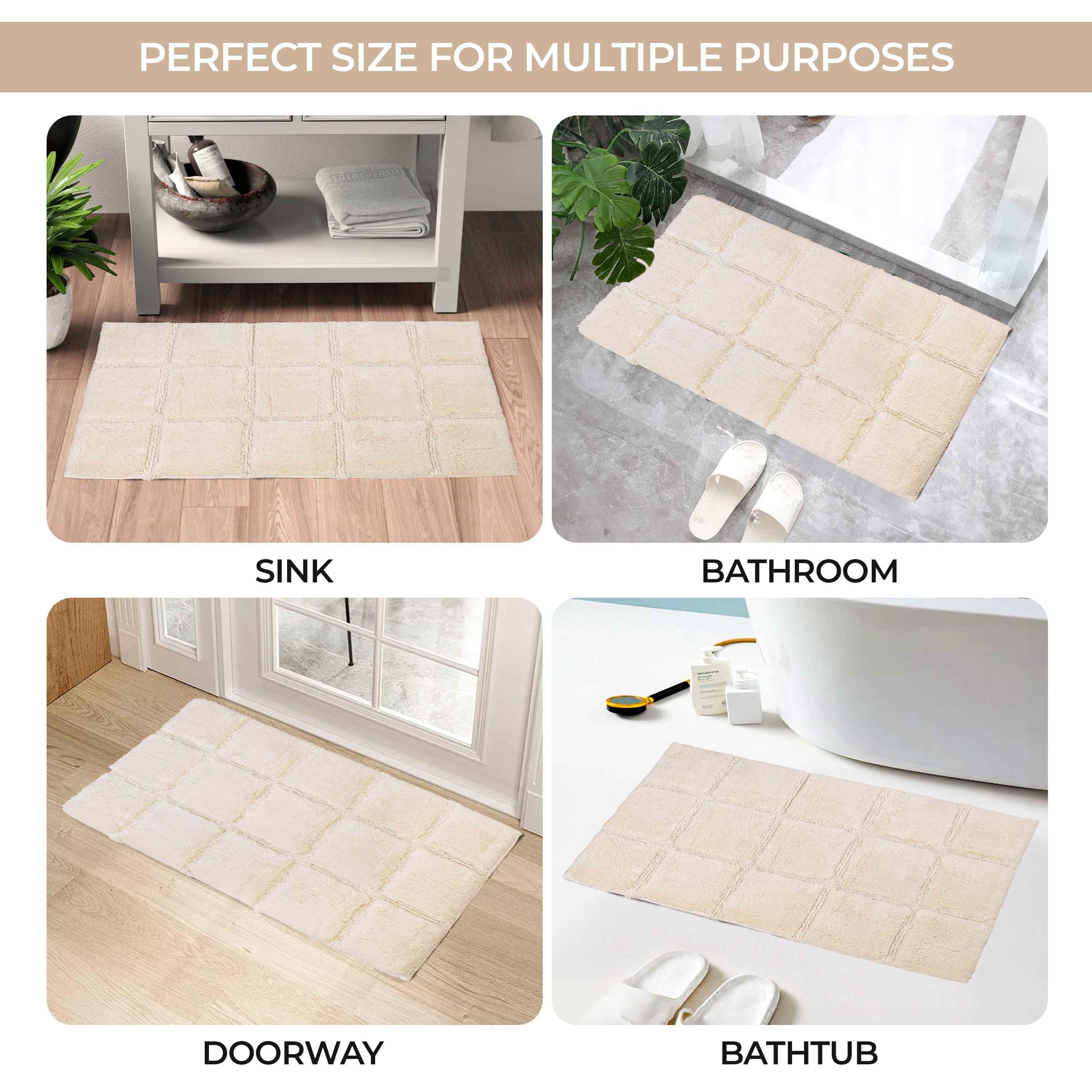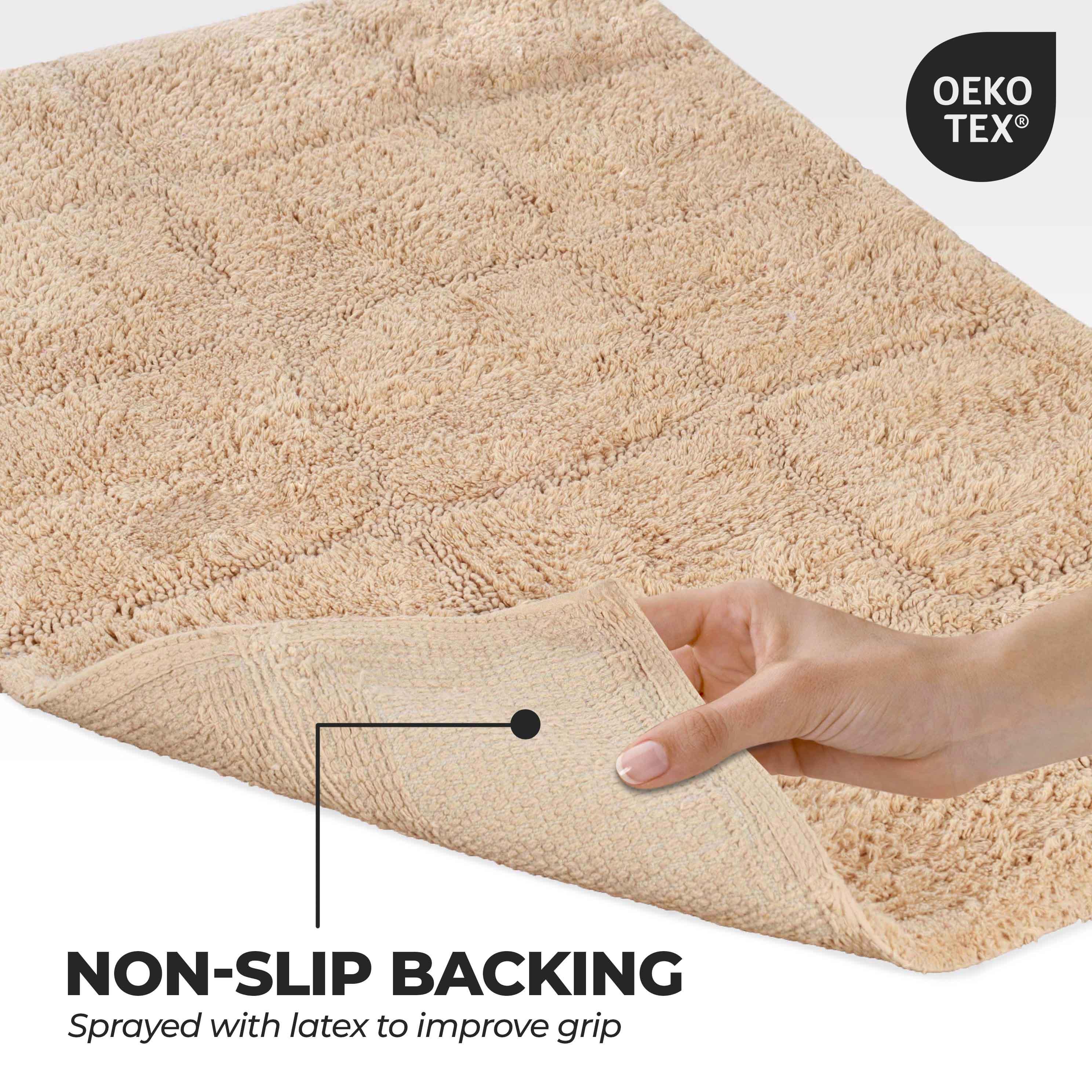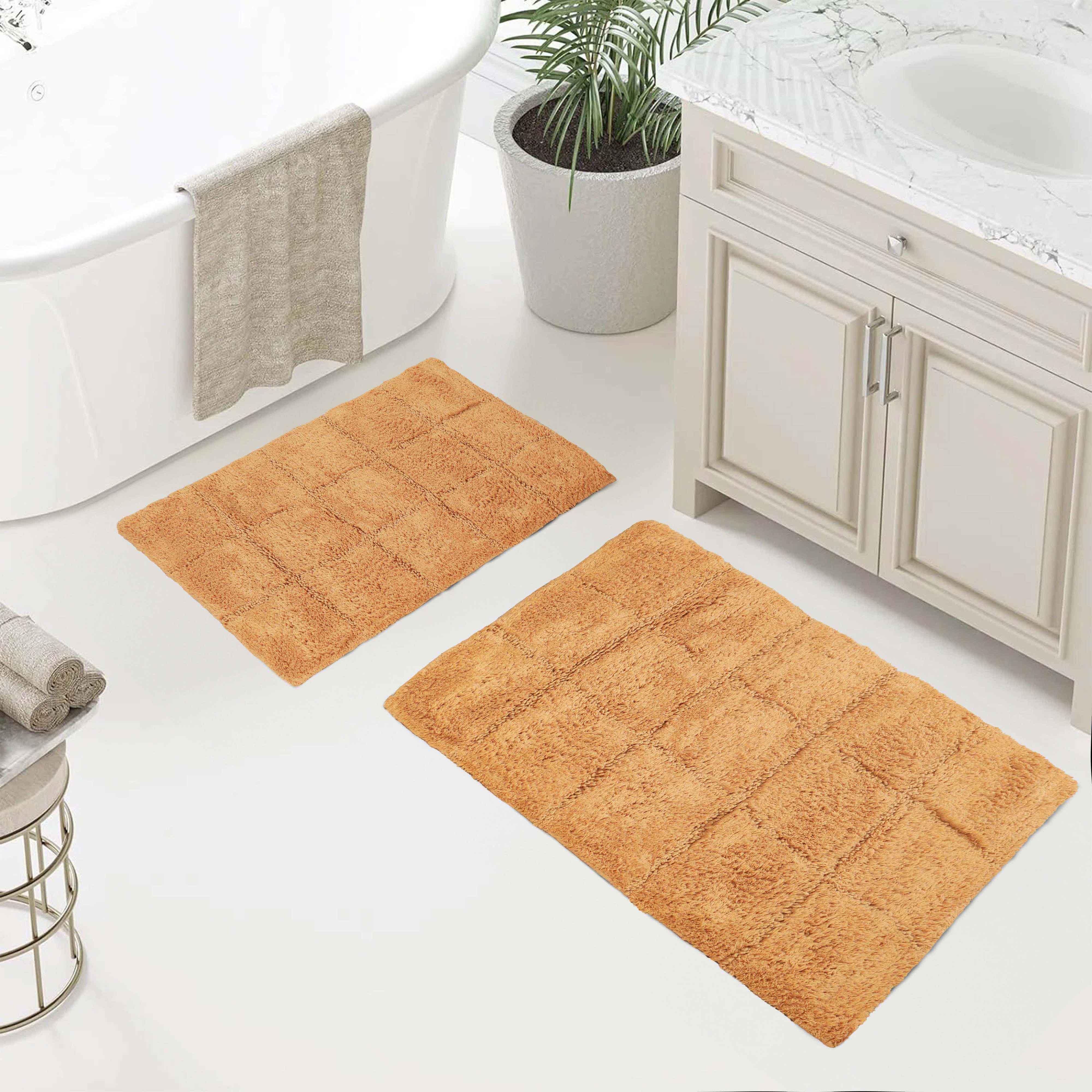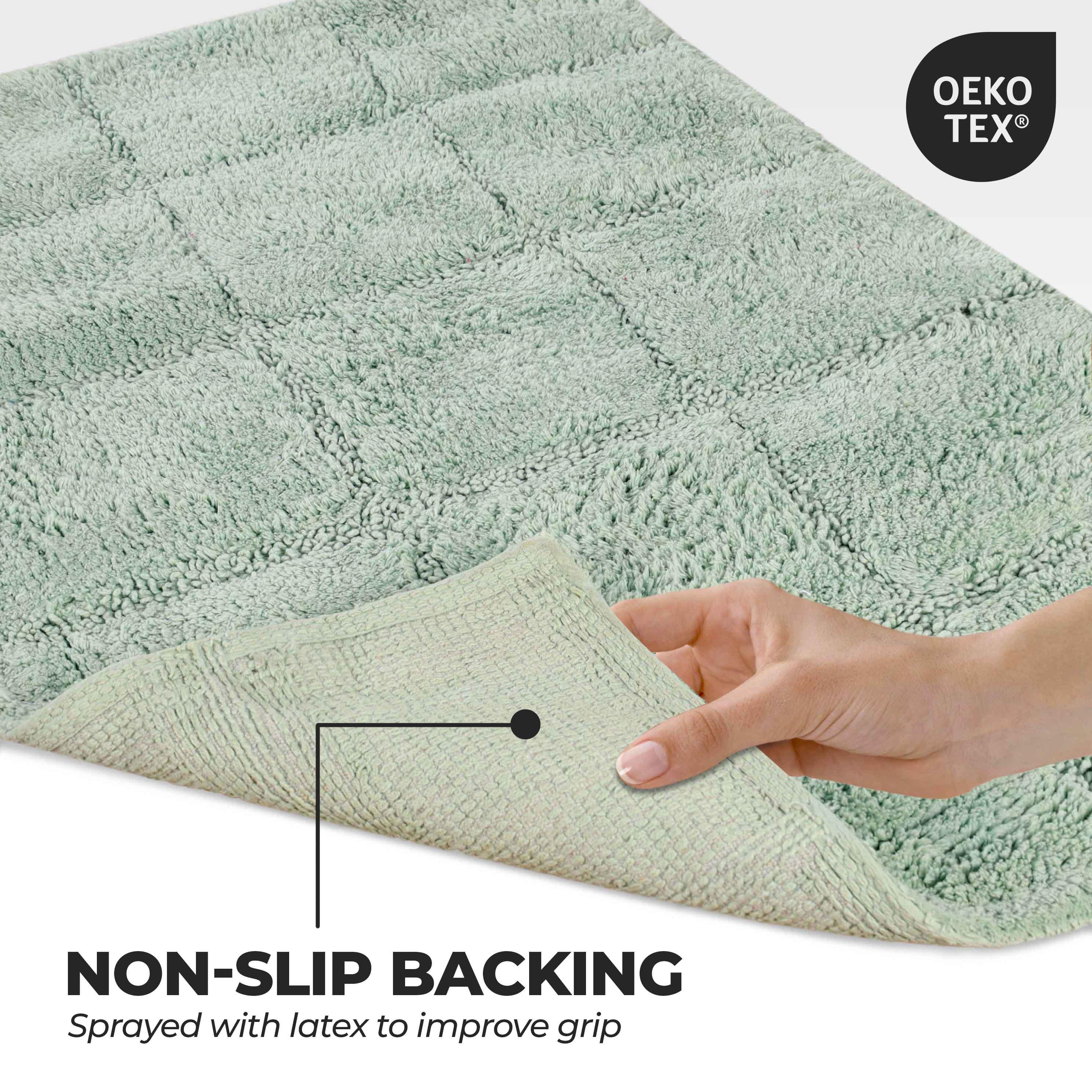 Start your mornings off right by stepping onto the Cotton Checkers 2 Piece Bath Rug Set. Crafted from plush and durable cotton fabric, this bath rug feels comfortable underfoot, giving you a hotel-like experience. The non-slip latex backing keeps your rug from shifting or sliding. Perfect for any shower space, the oversized checkered pattern easily coordinates with modern or contemporary bathroom styles. Available in two different sizes, place the larger rug outside your tub and the smaller rug in front of the sink for a tailored finish to your bathroom. This rug set is also OEKO-TEX certified, meaning it does not contain any harmful substances or chemicals, ensuring quality, comfort, and wellness.