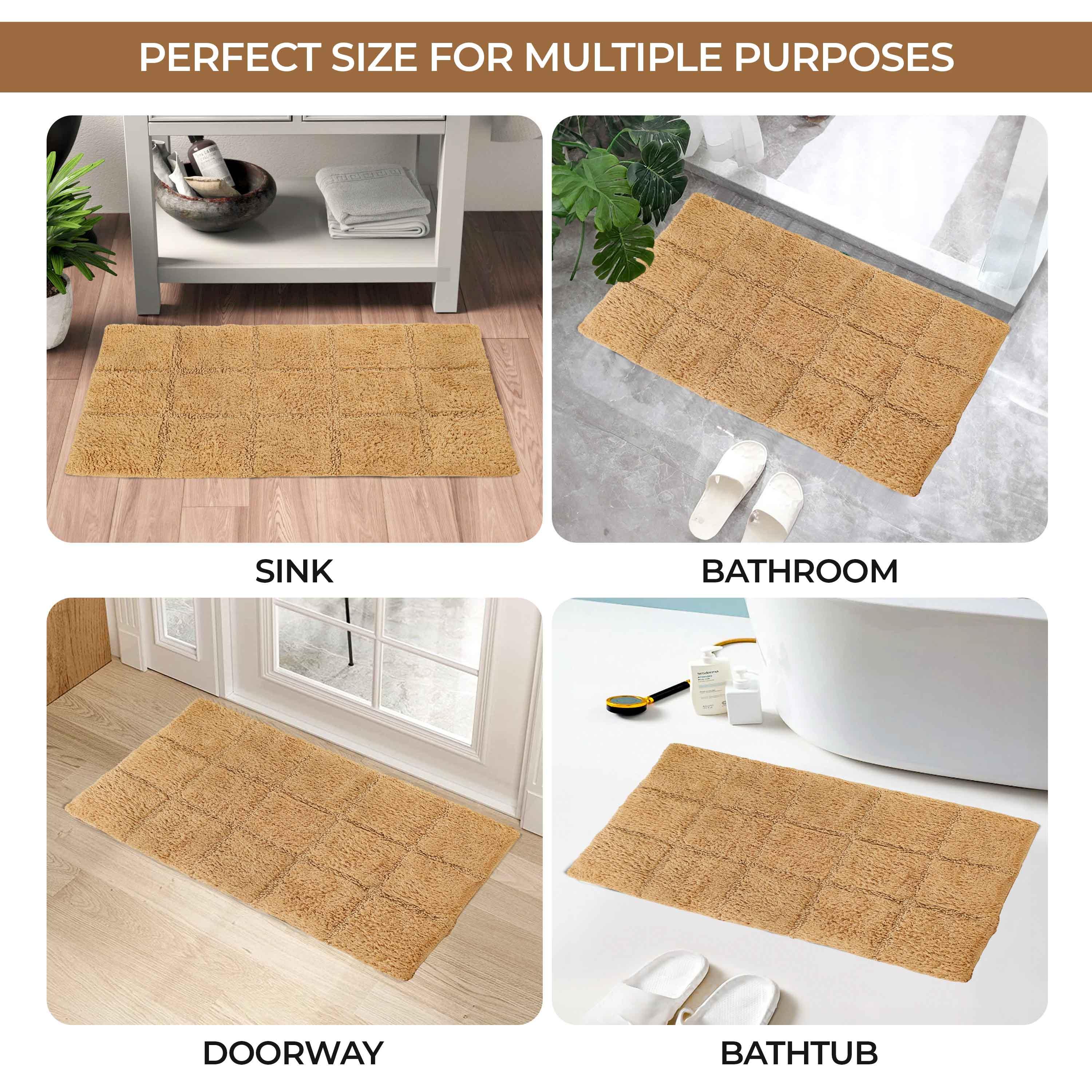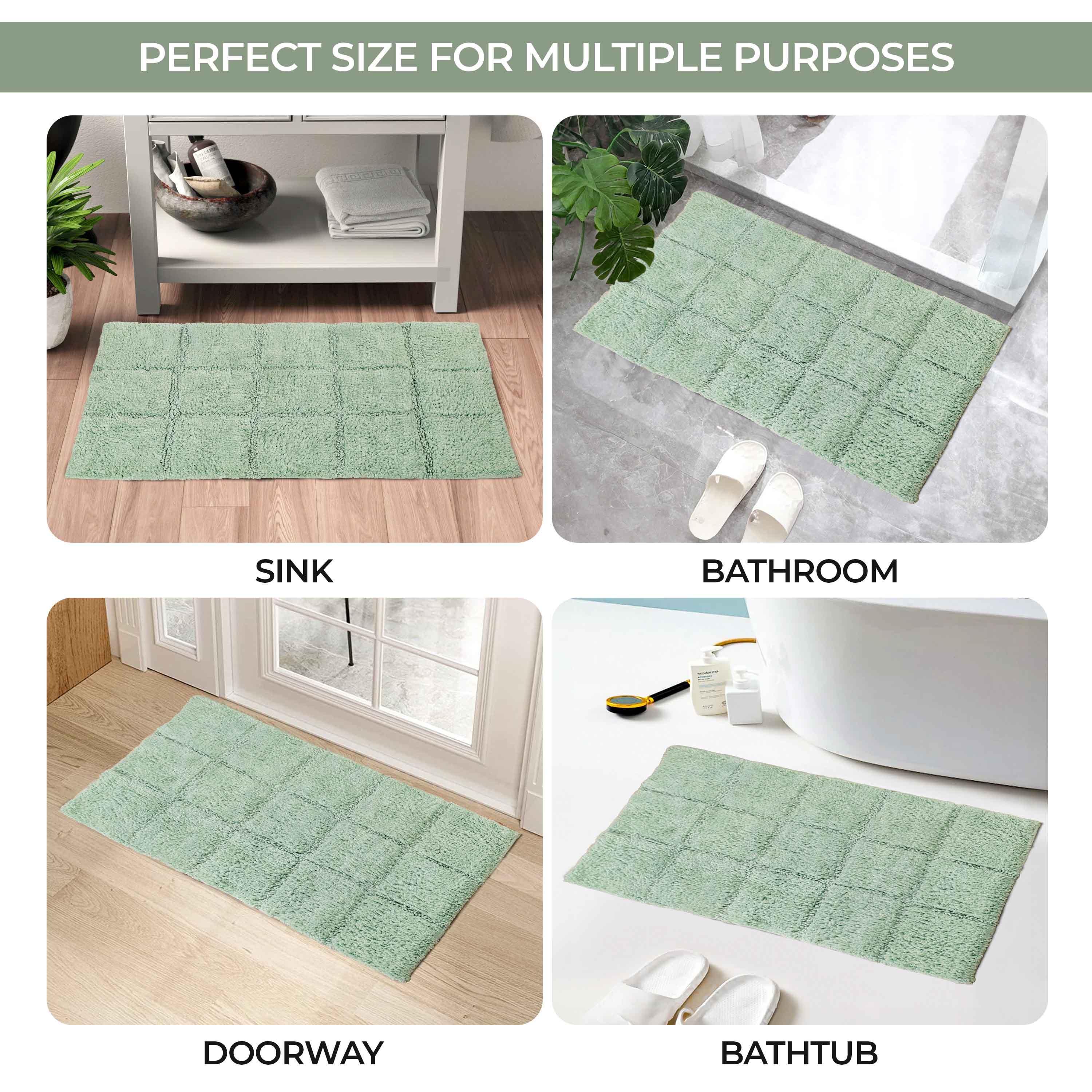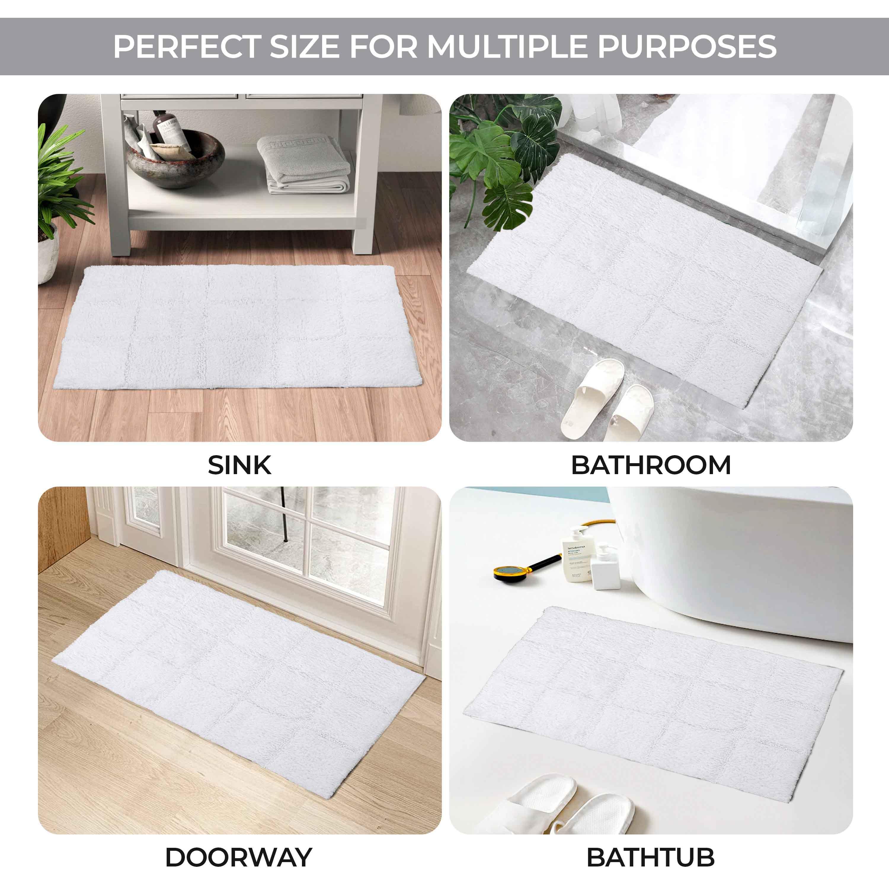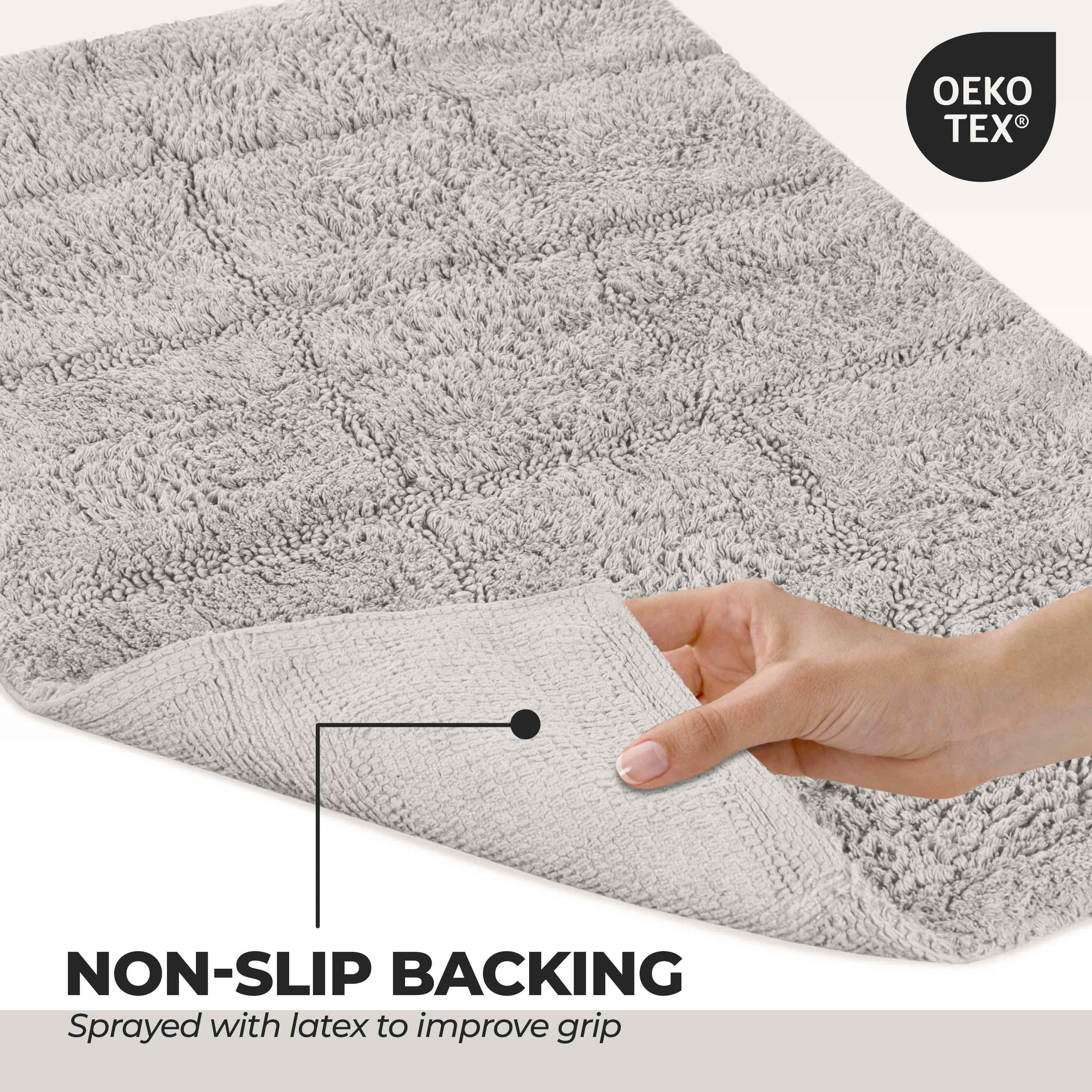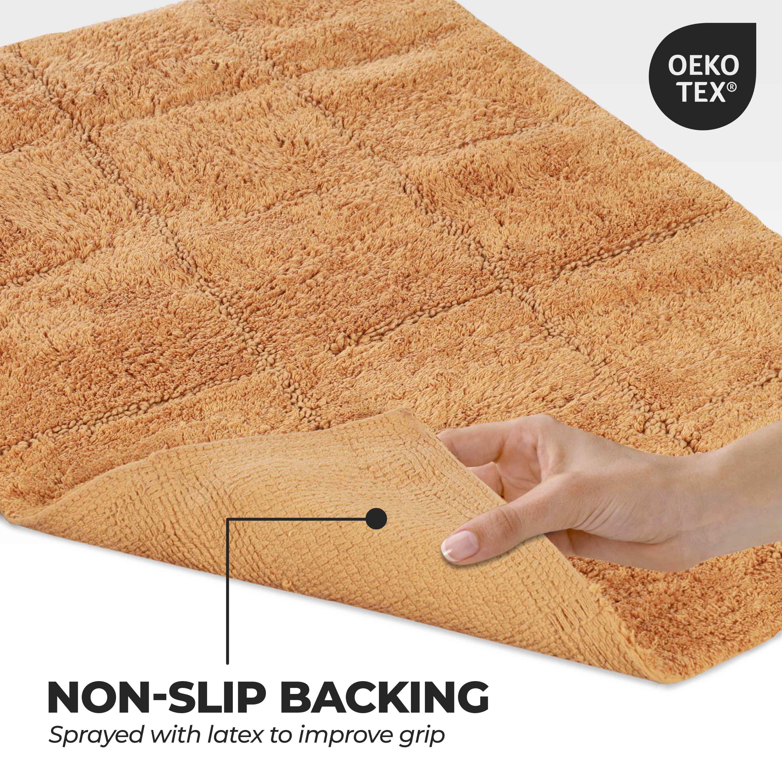 Start your mornings off right by stepping onto the Cotton Checkers 2 Piece Bath Rug Set. Crafted from plush and durable cotton fabric, this bath rug feels comfortable underfoot, giving you a hotel-like experience. The non-slip latex backing keeps your rug from shifting or sliding. Perfect for any shower space, the oversized checkered pattern easily coordinates with modern or contemporary bathroom styles. Available in two different sizes, place the larger rug outside your tub and the smaller rug in front of the sink for a tailored finish to your bathroom. This rug set is also OEKO-TEX certified, meaning it does not contain any harmful substances or chemicals, ensuring quality, comfort, and wellness.