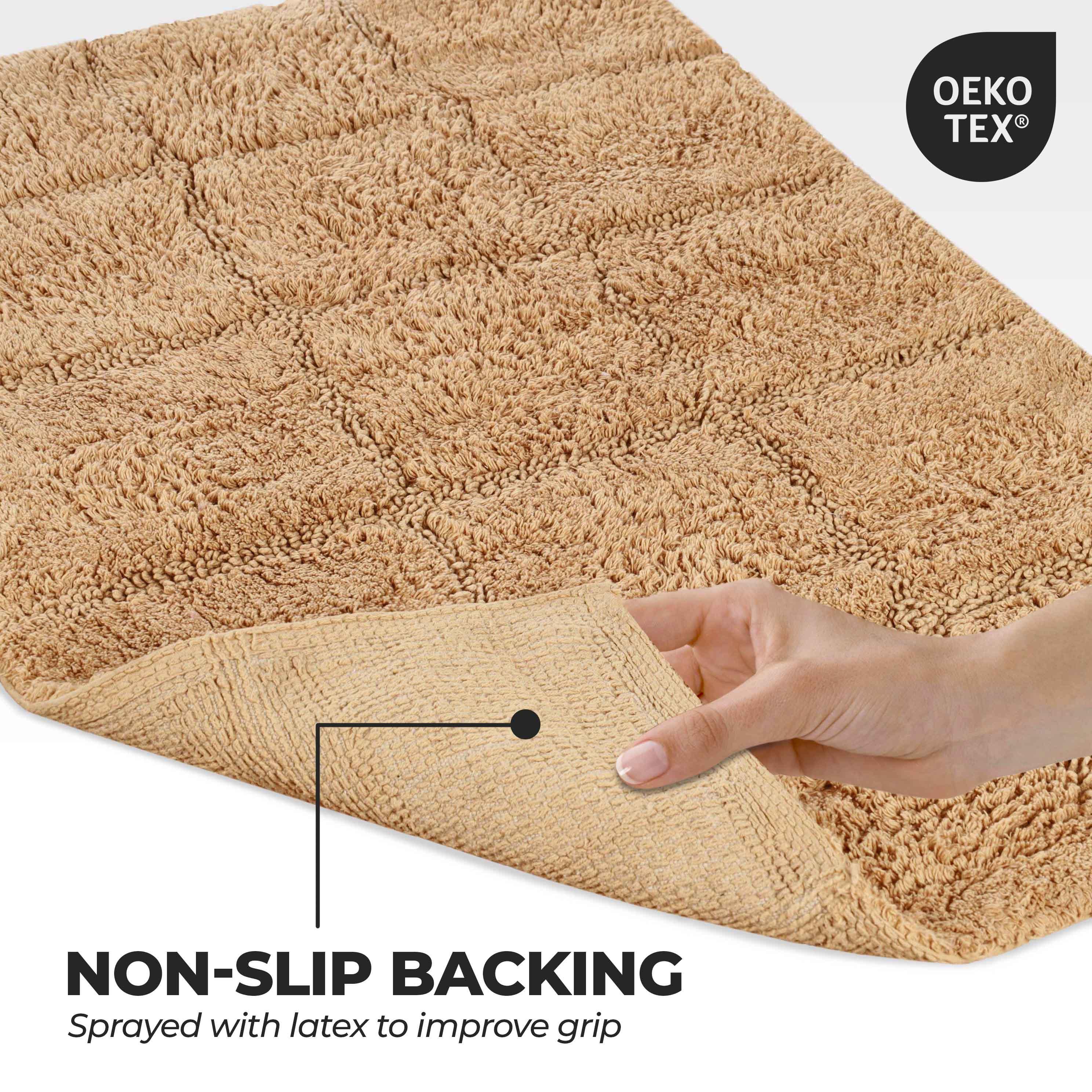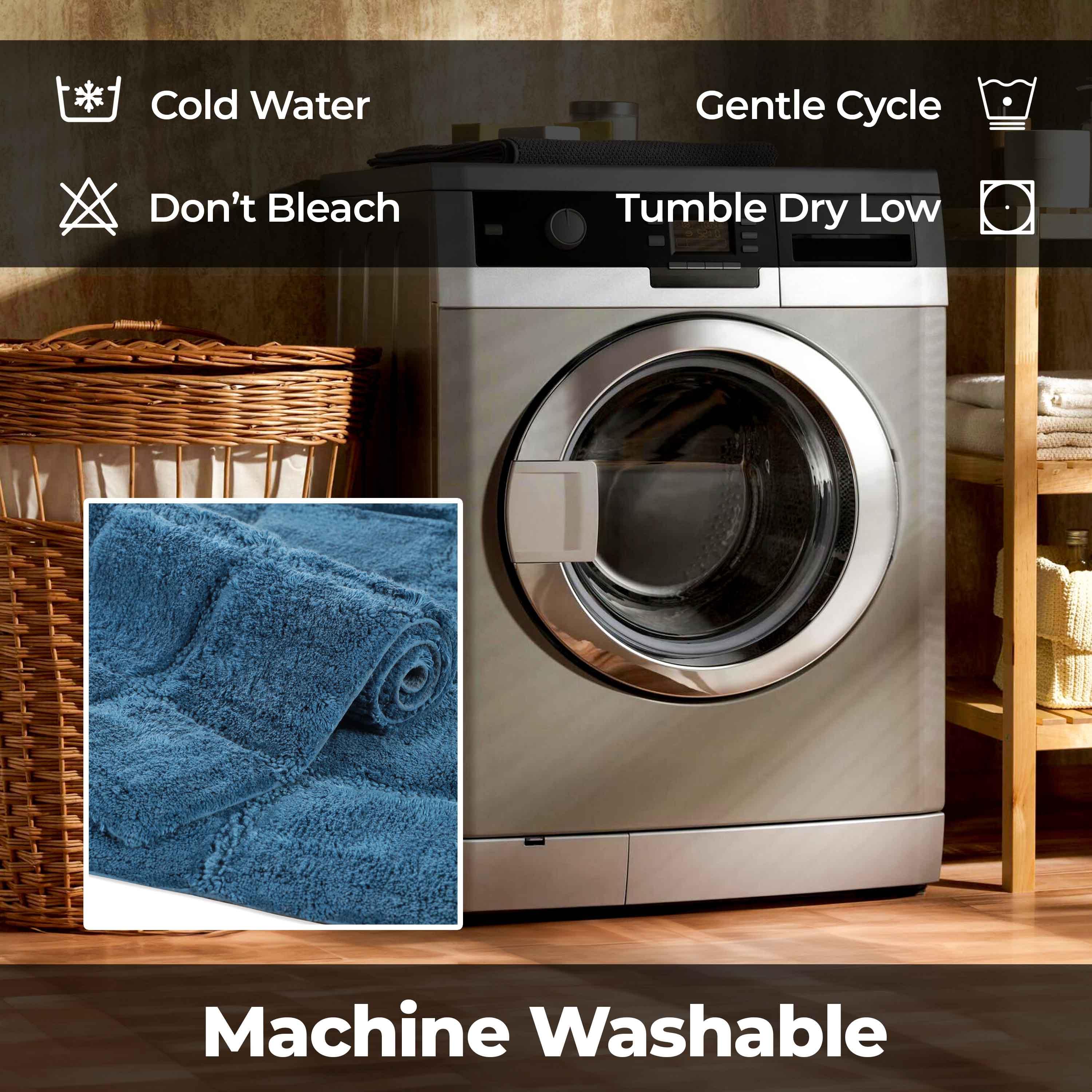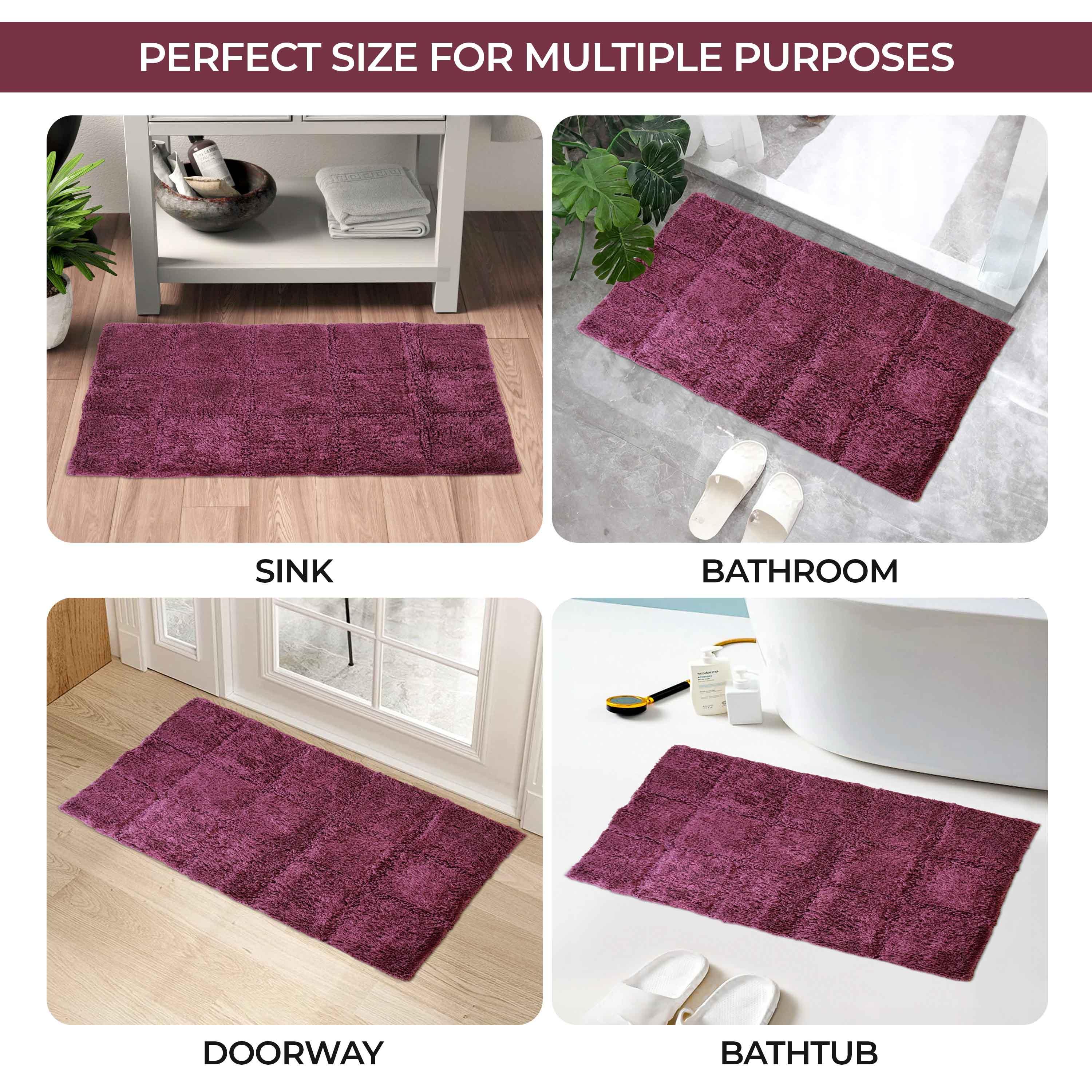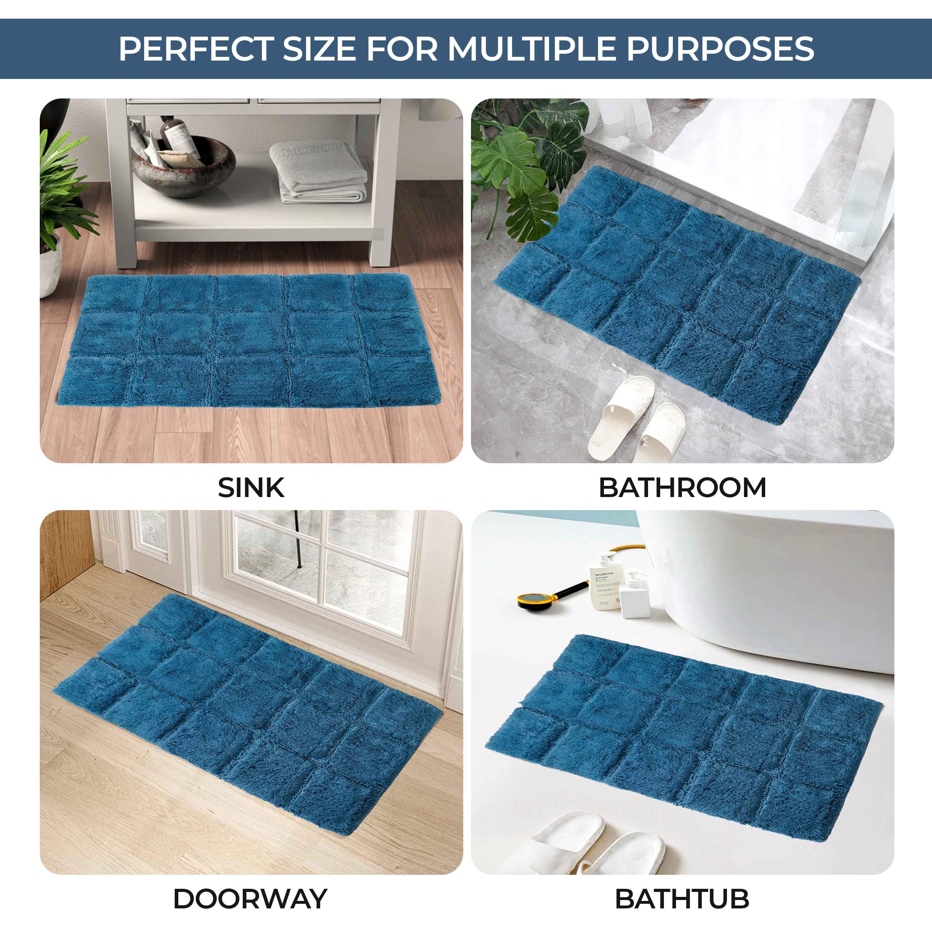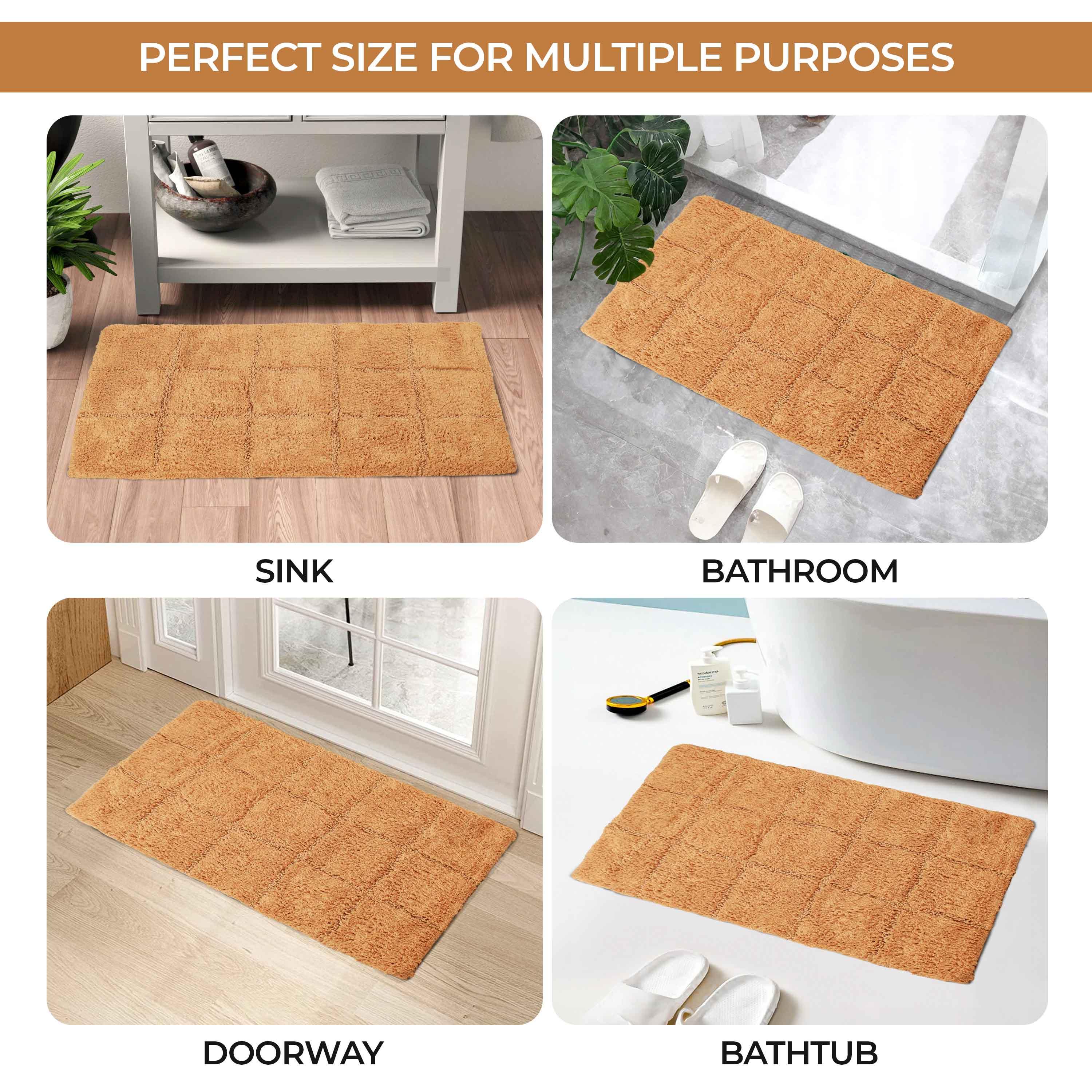 Start your mornings off right by stepping onto the Cotton Checkers 2 Piece Bath Rug Set. Crafted from plush and durable cotton fabric, this bath rug feels comfortable underfoot, giving you a hotel-like experience. The non-slip latex backing keeps your rug from shifting or sliding. Perfect for any shower space, the oversized checkered pattern easily coordinates with modern or contemporary bathroom styles. Available in two different sizes, place the larger rug outside your tub and the smaller rug in front of the sink for a tailored finish to your bathroom. This rug set is also OEKO-TEX certified, meaning it does not contain any harmful substances or chemicals, ensuring quality, comfort, and wellness.