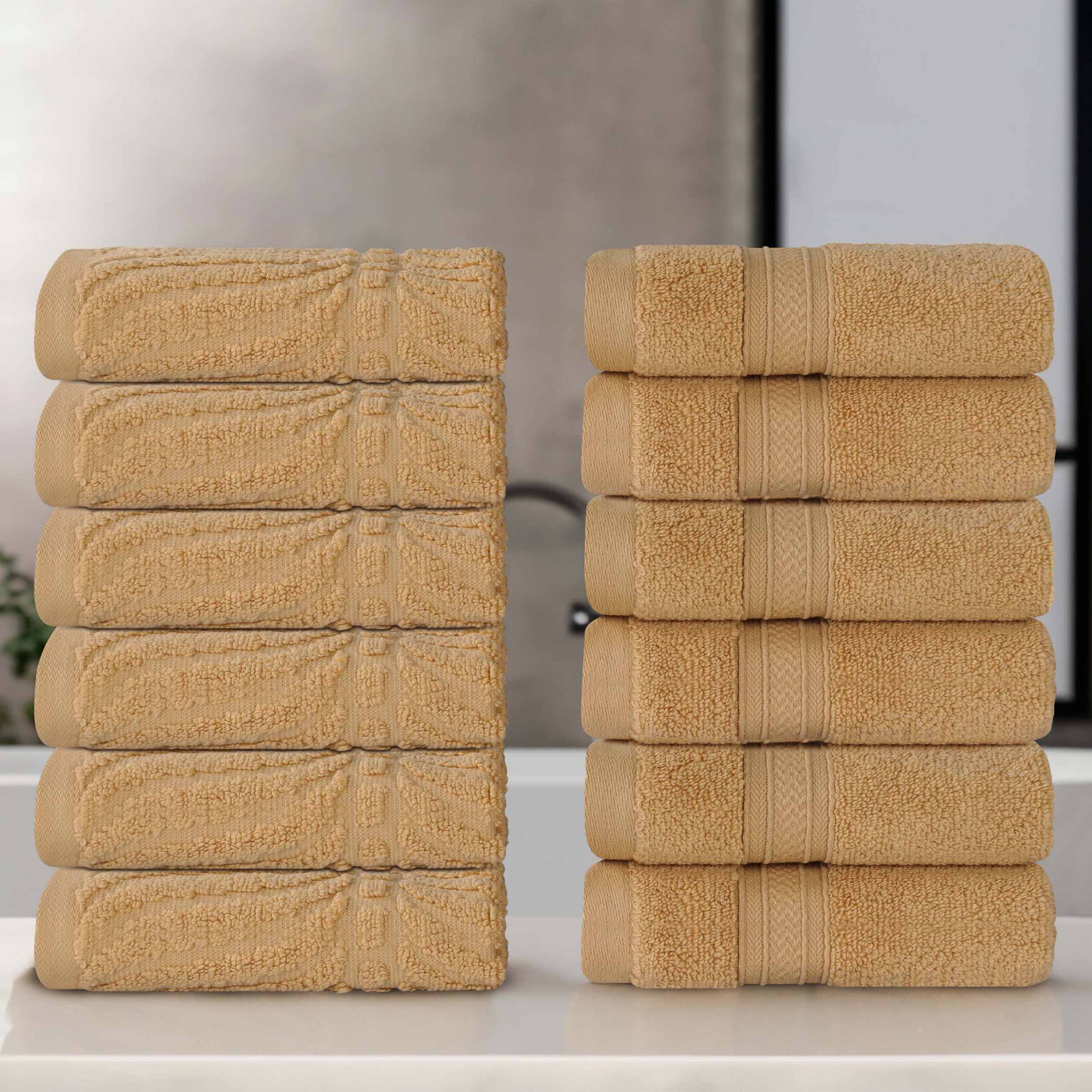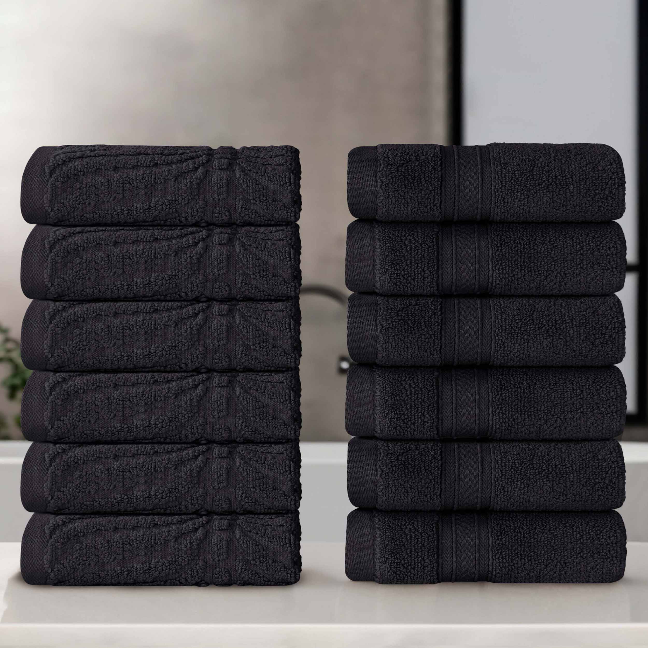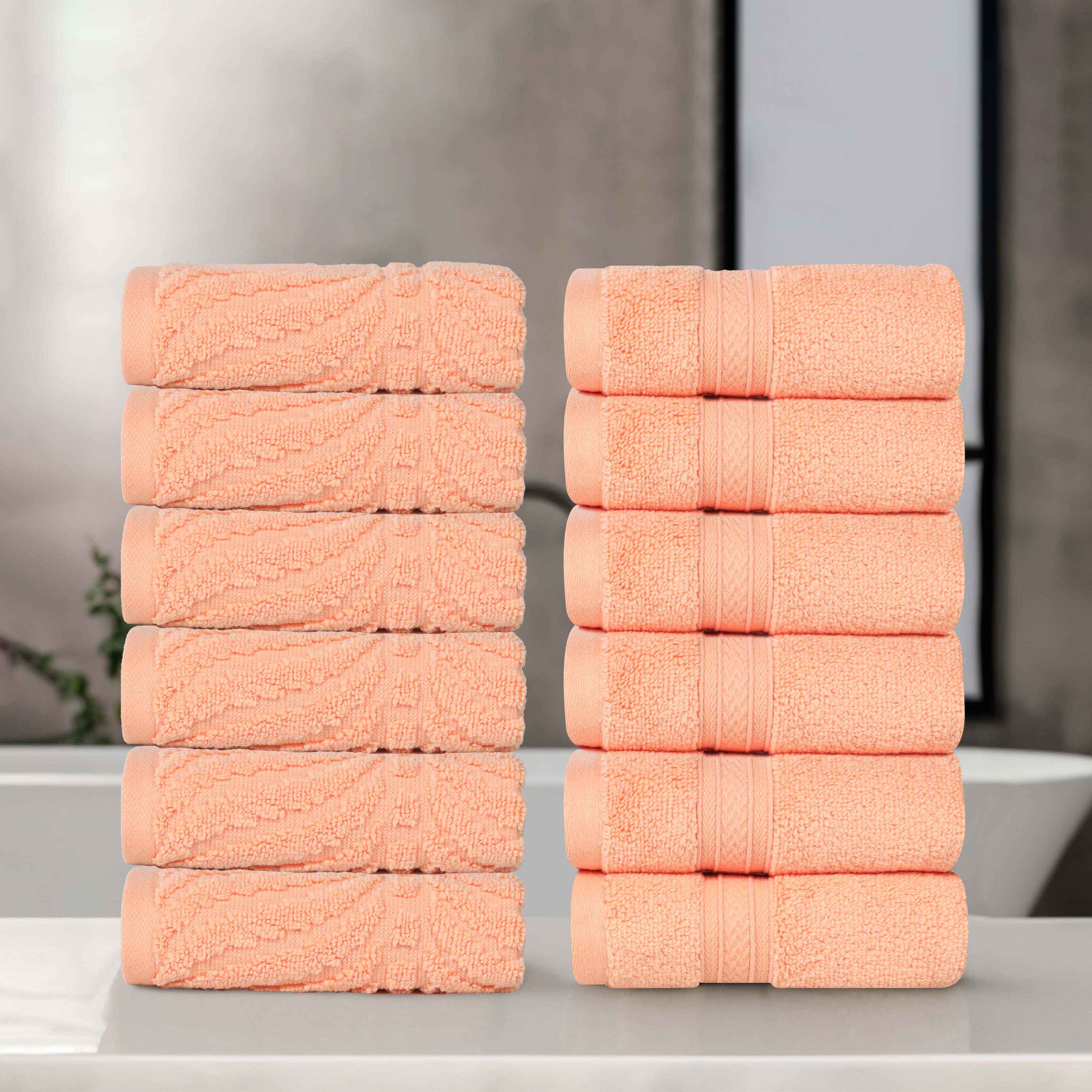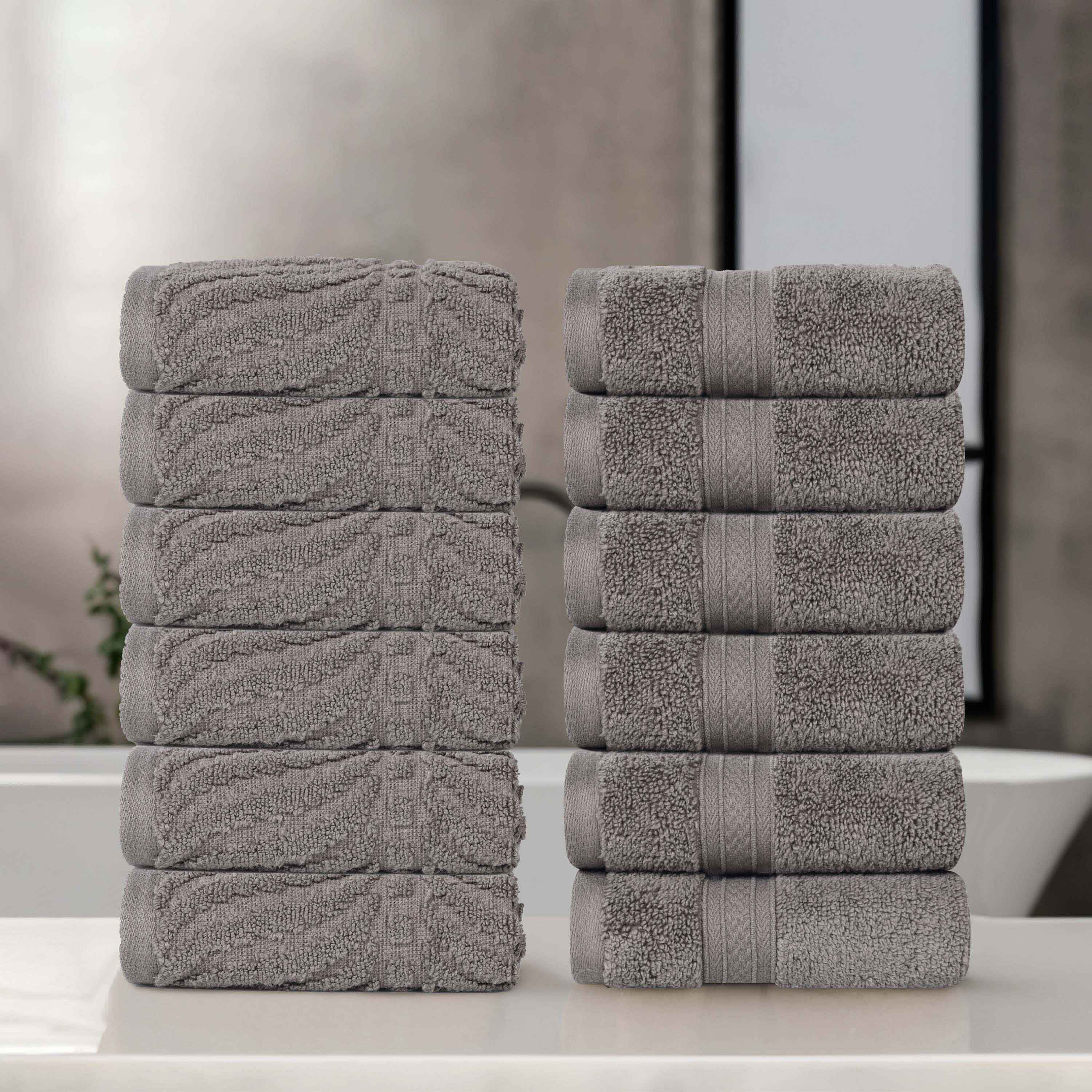 Enhance your daily routine with our Chevron Solid and Jacquard Face Towel Washcloth Set. Our fluffy cotton towels have a luxuriously soft feel and the zero twist weave is plush, and highly-absorbent to get you dry quickly. The medium weight thickness of each towel is versatile and perfect for unexpected spills or daily cleaning. Boasting both solid and jacquard, chevron designs, bring unique style to your guest or master bathroom with this bundle. Each towel is finished with secure hemmed edges to avoid fraying and a durable single-ply to withstand countless washes and last you years to come. Featuring a hanging loop on each piece, enjoy both convenience and comfort with this versatile set.