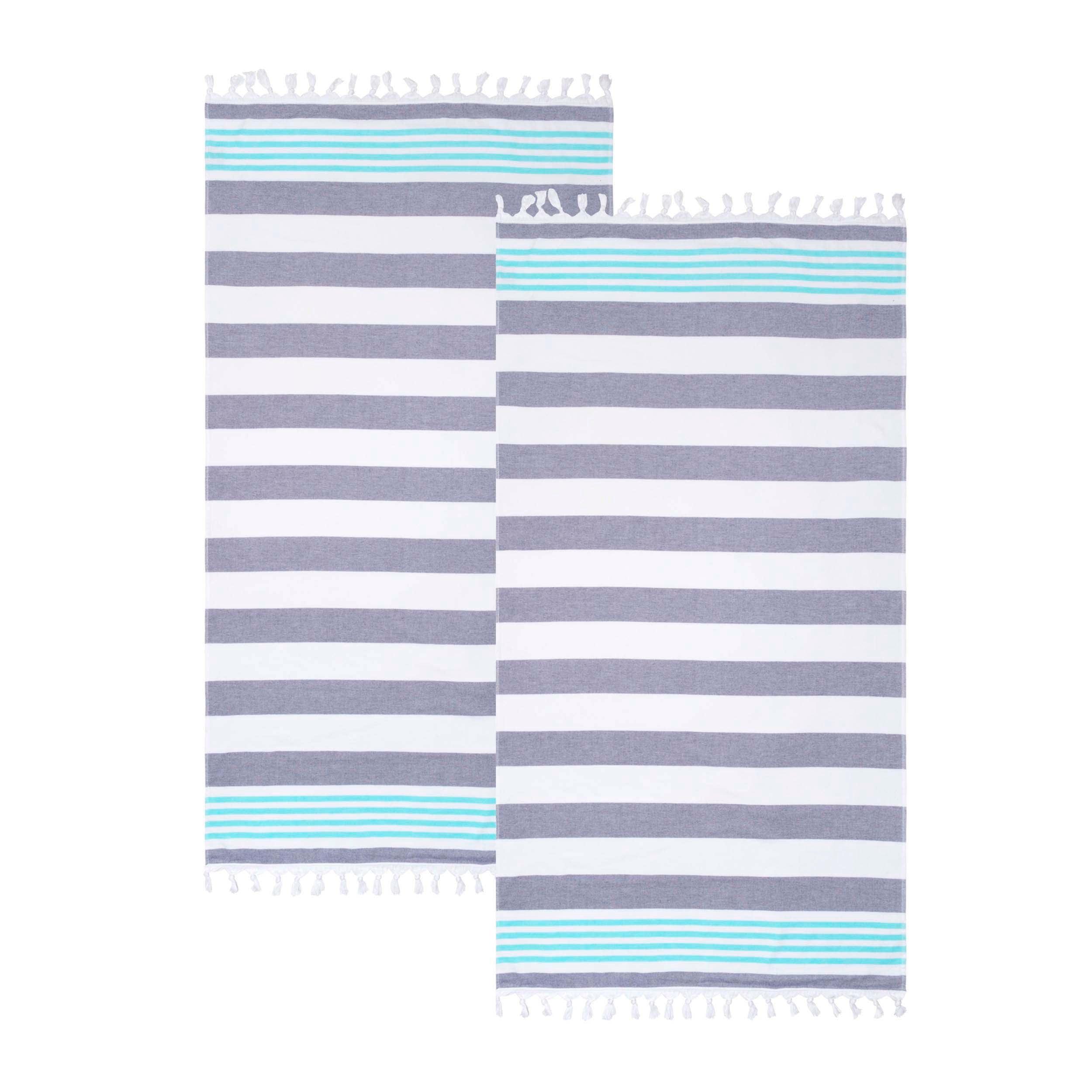 Hang by the pool or lounge on the beach in style with the Coastal Resort Stripe with Tassels Cotton Beach Towel Set of 2.