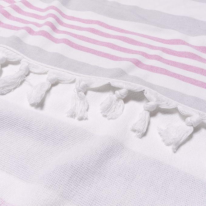 The oversized design features a modern striped pattern in a selection of bright, seasonal colors, finished with trendy tassels at the ends for an added touch of flair. Lightweight and quick-drying, these premium beach towels are easy to pack and perfect for everyday use at the beach, pool, or spa.