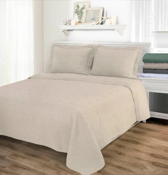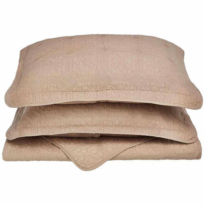 Crafted with exceptional detail, the Corrington Fine Stitch Cotton Quilt Set brings the beauty of quilting to your home. It features a finely stitched patchwork-inspired design on soft and breathable cotton. It's the perfect weight for every season and looks great on its own or layered with your favorite blankets. Finished with piping edges, this set is crafted to withstand daily use and keeps getting softer with every wash. The selection of available sizes and neutral hues means it'll blend right in with your decor.