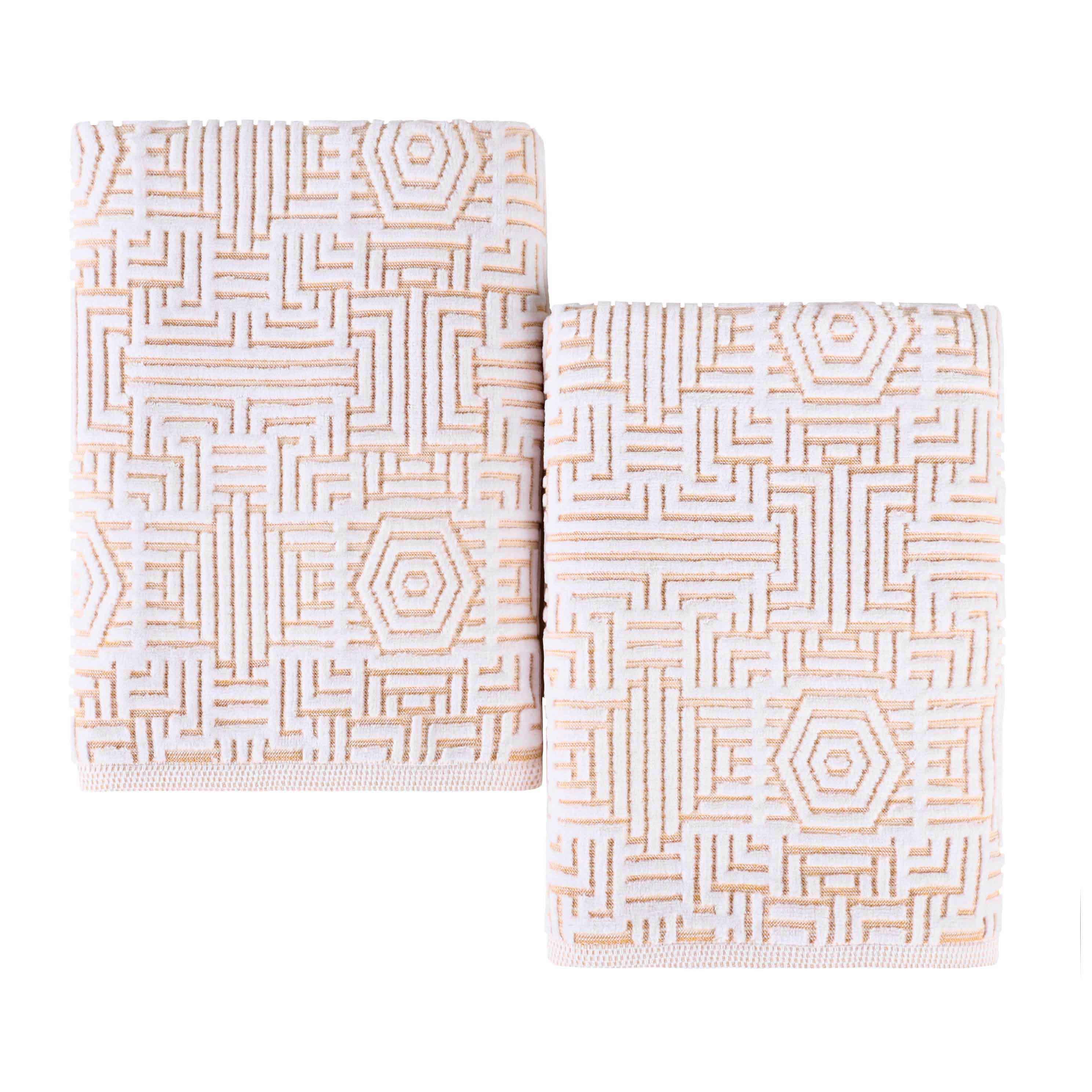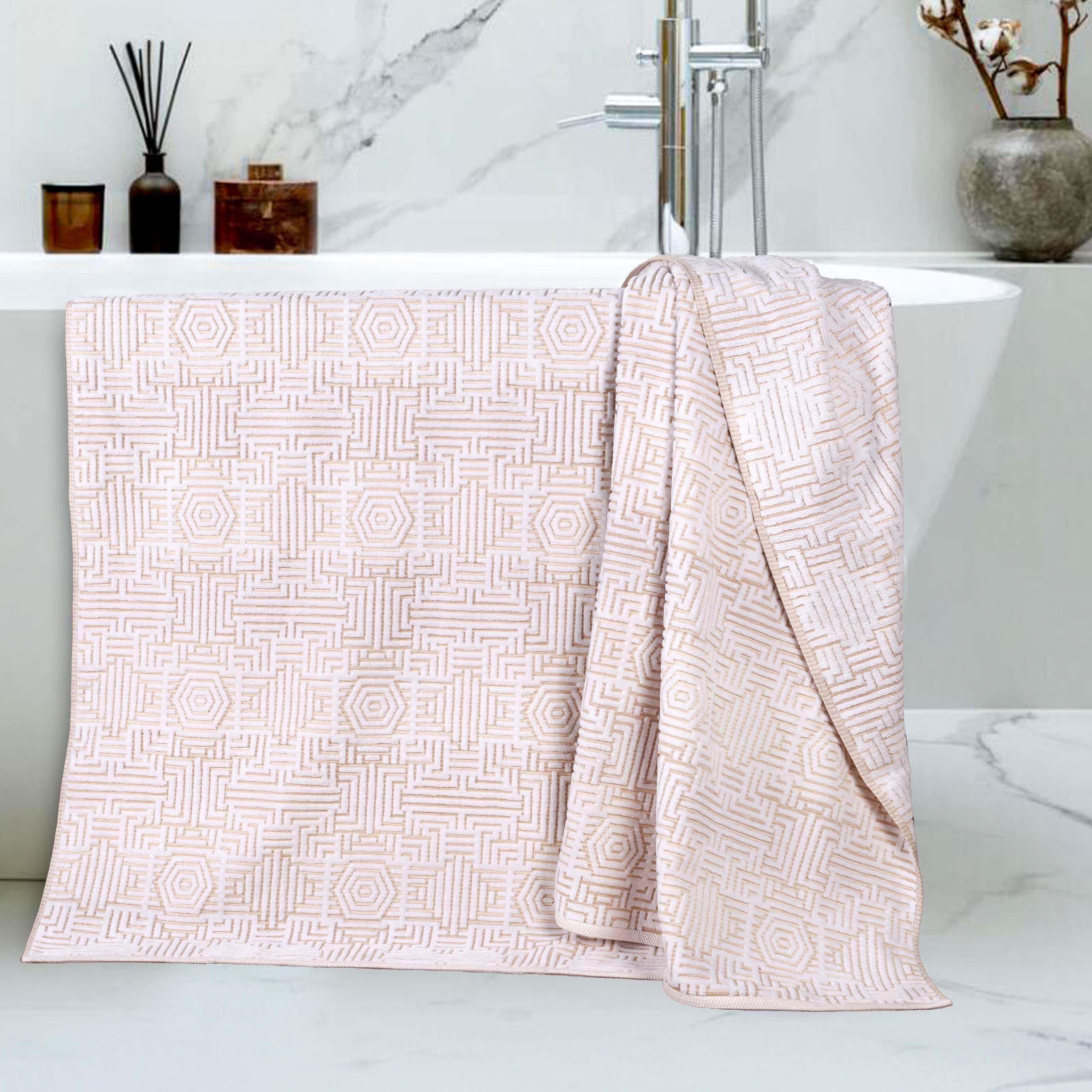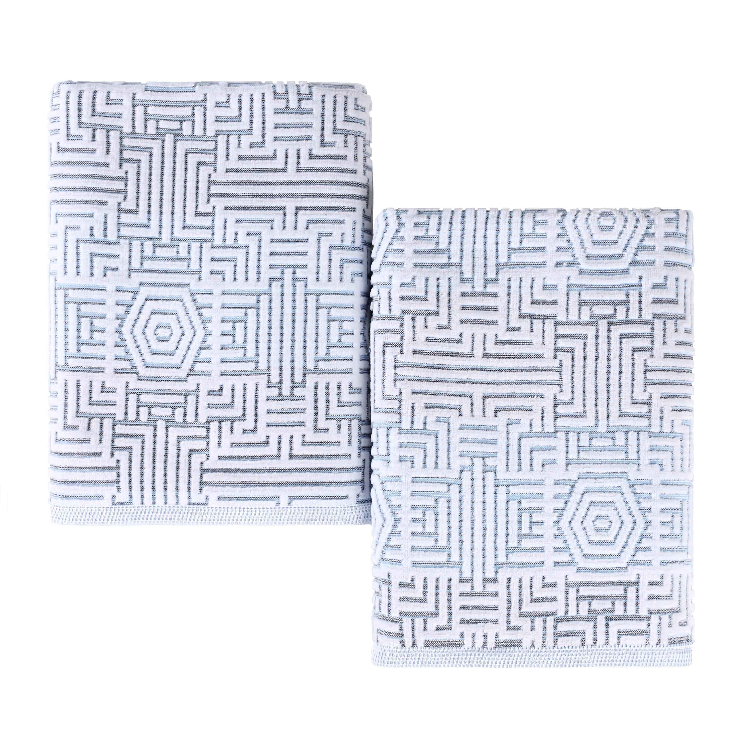Wrap yourself in a lavish embrace of luxury with the Superior Cotton Modern Geometric Jacquard Plush Soft Absorbent Bath Sheet Set of 2. These 100% Cotton towels are crafted for a soft, absorbent, and luxurious experience. Boasting a textured geometric jacquard pattern, bring unique style to you guest or master bathroom with this bundle. Each towel is finished with secure hemmed edges to avoid fraying and a durable single-ply to withstand countless washes and last you years to come. Featuring a hanging loop on each piece, enjoy both convenience and comfort with this versatile set.