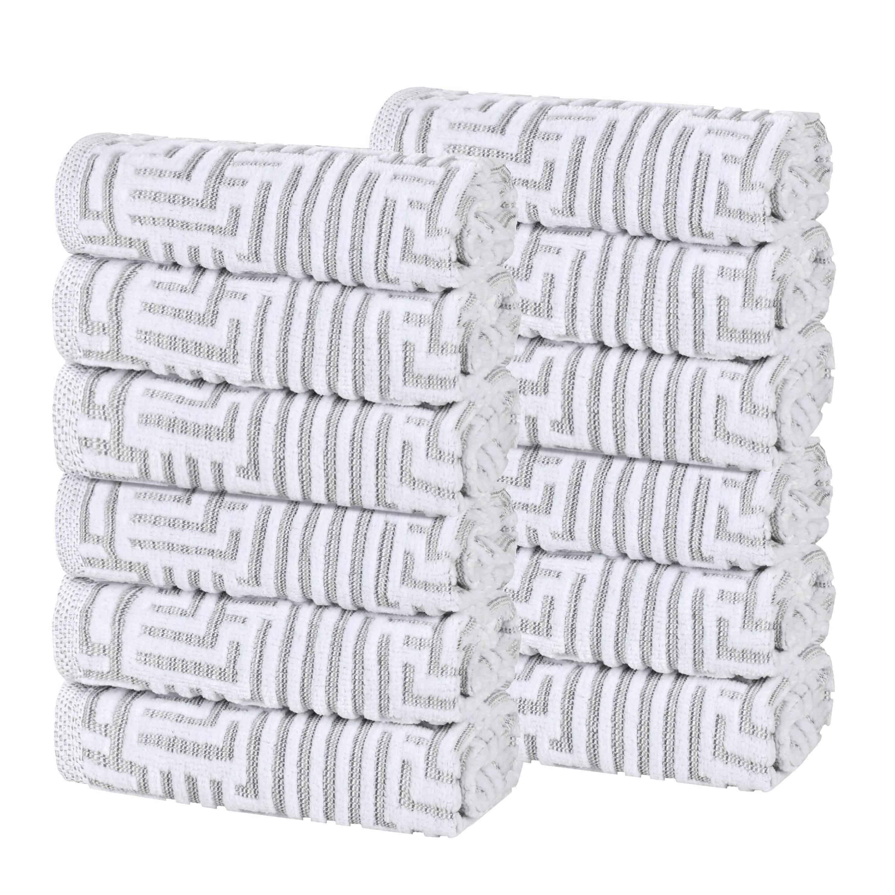 Add a touch of modern elegance to your bathroom with our Jasper 12-Piece Plush Towel Set of face cloths. Crafted from 100% Cotton, these beautiful bathroom towels feature a sophisticated geometric jacquard pattern that brings unique style to any decor. The plush texture feels incredibly soft against the skin, making them perfect for daily use.