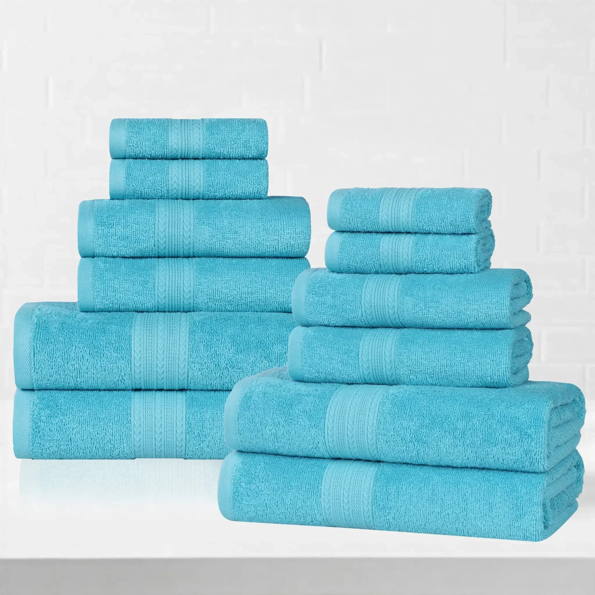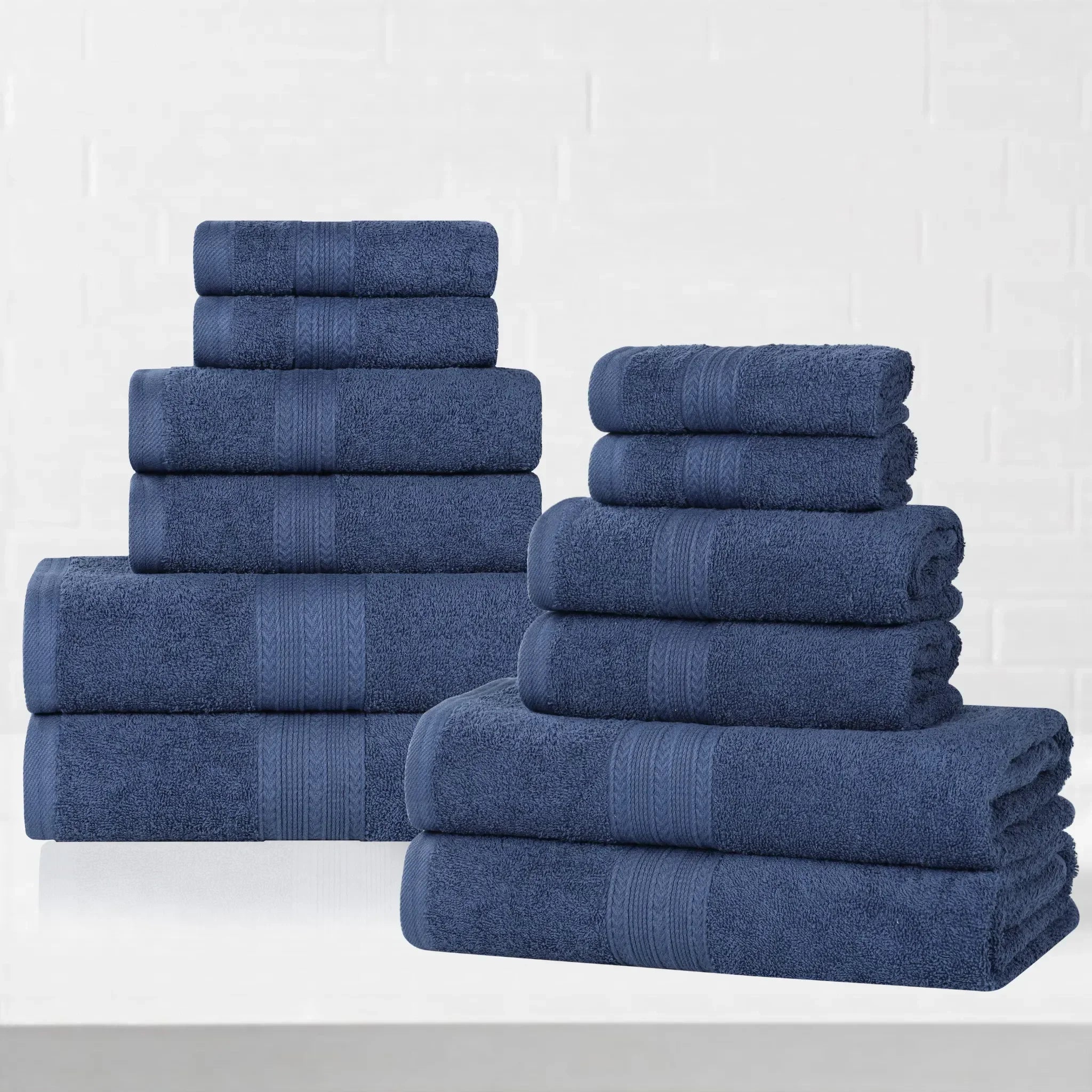 Exceptionally crafted from regenerated cotton, the serene Eco-Friendly Ring-Spun Cotton 4-Piece Bath Towel Set fuses remarkable absorbency with environmental responsibility. The special process uses less water and less energy, resulting in lower greenhouse emissions.