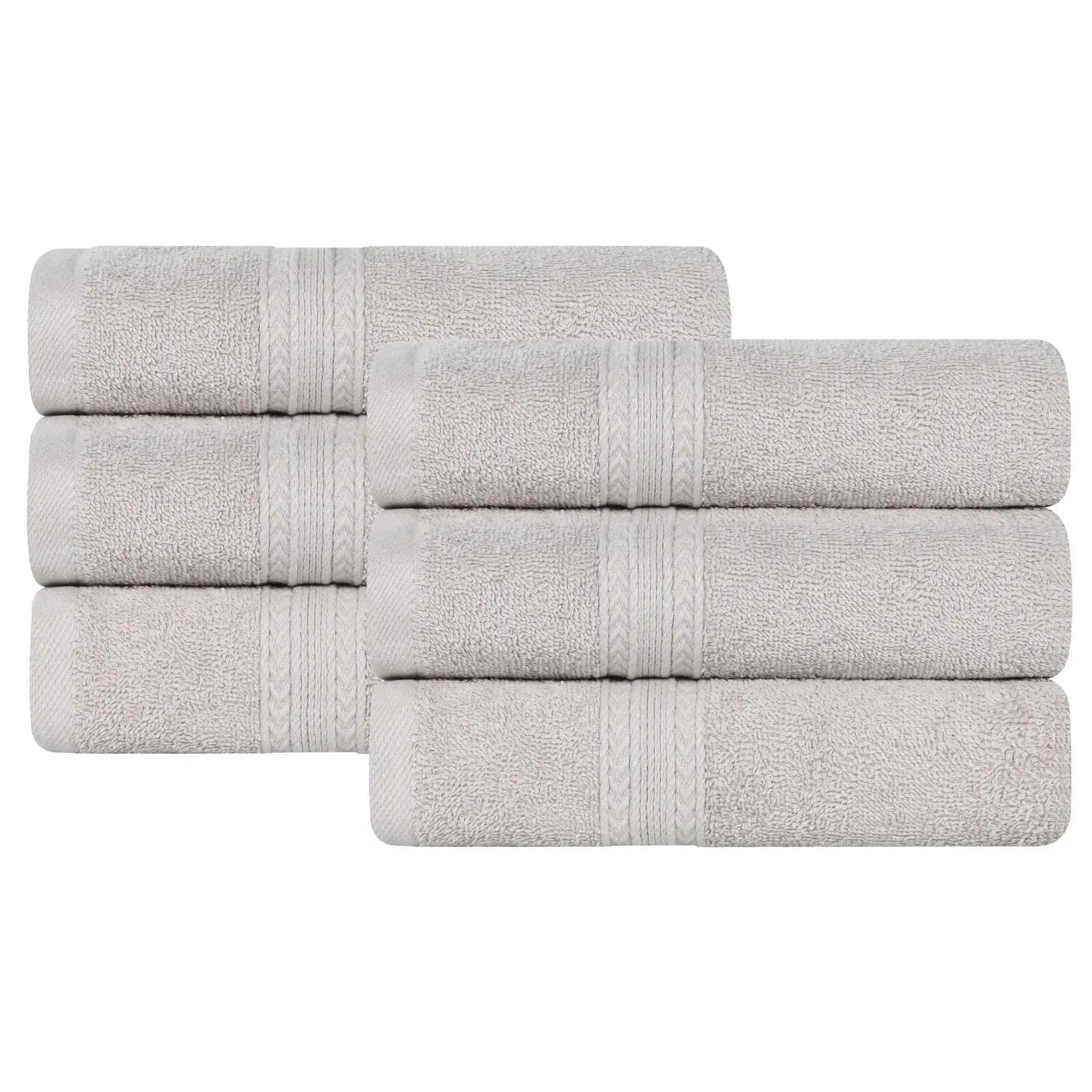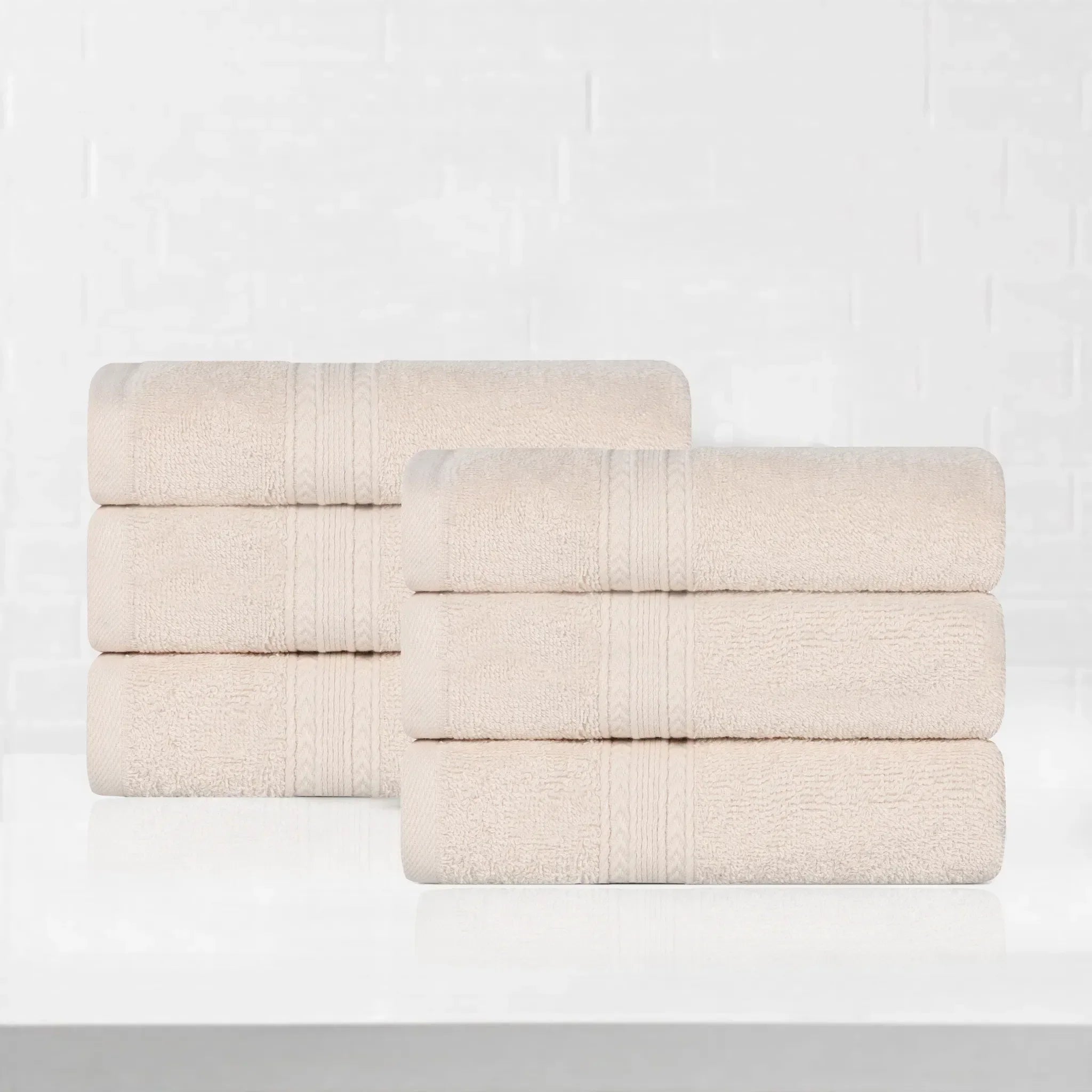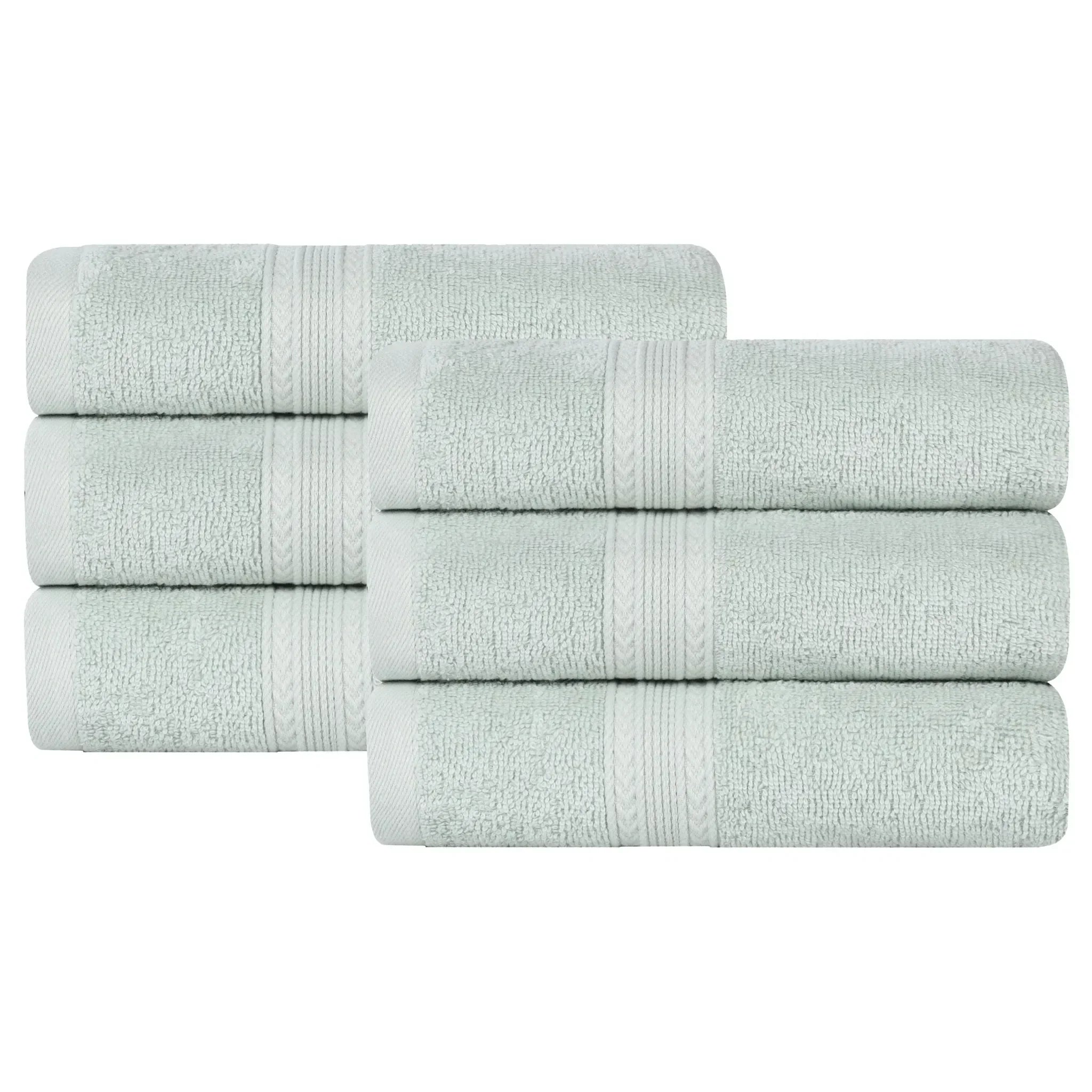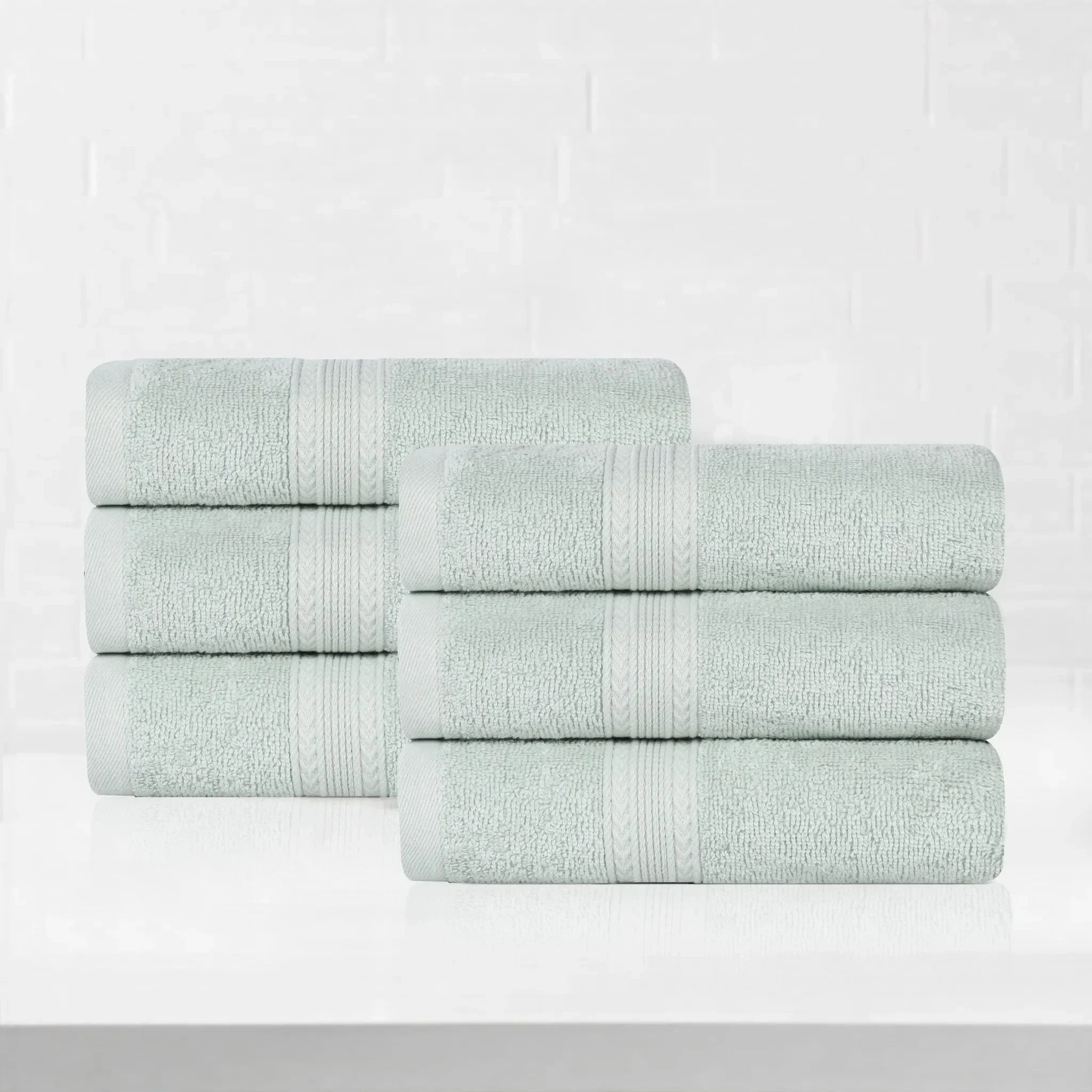 Exceptionally crafted from regenerated cotton, the serene Eco-Friendly Ring-Spun Cotton 6-Piece Hand Towel Set fuses remarkable absorbency with environmental responsibility. The special process uses less water and less energy, resulting in lower greenhouse emissions.