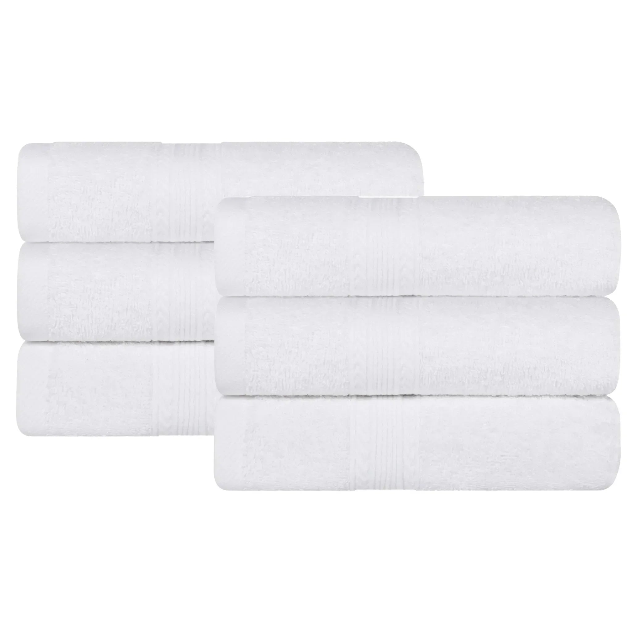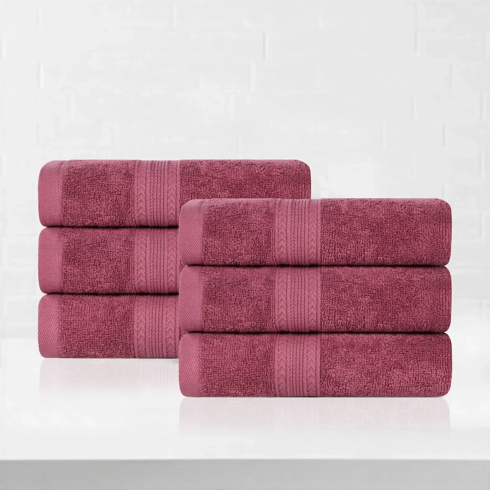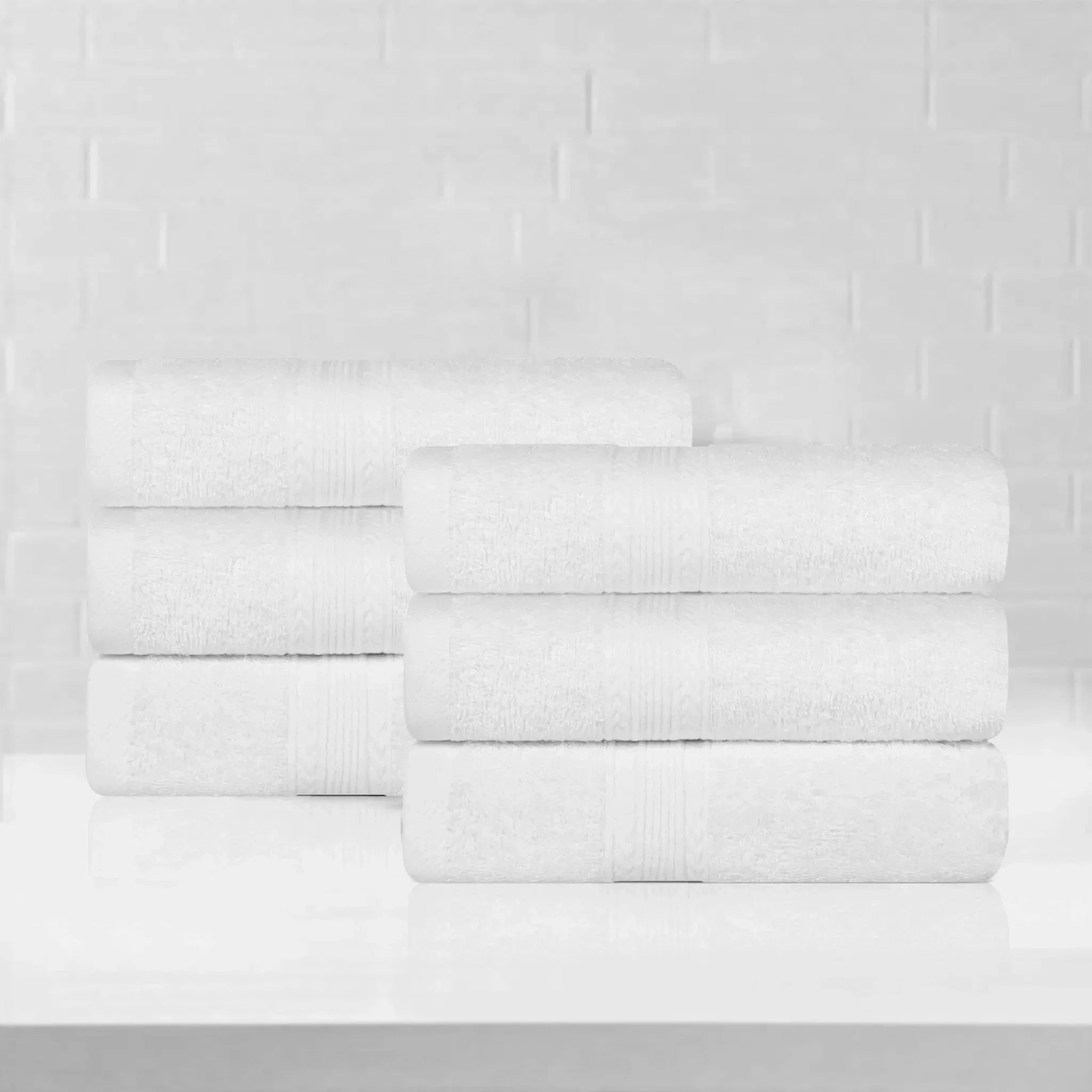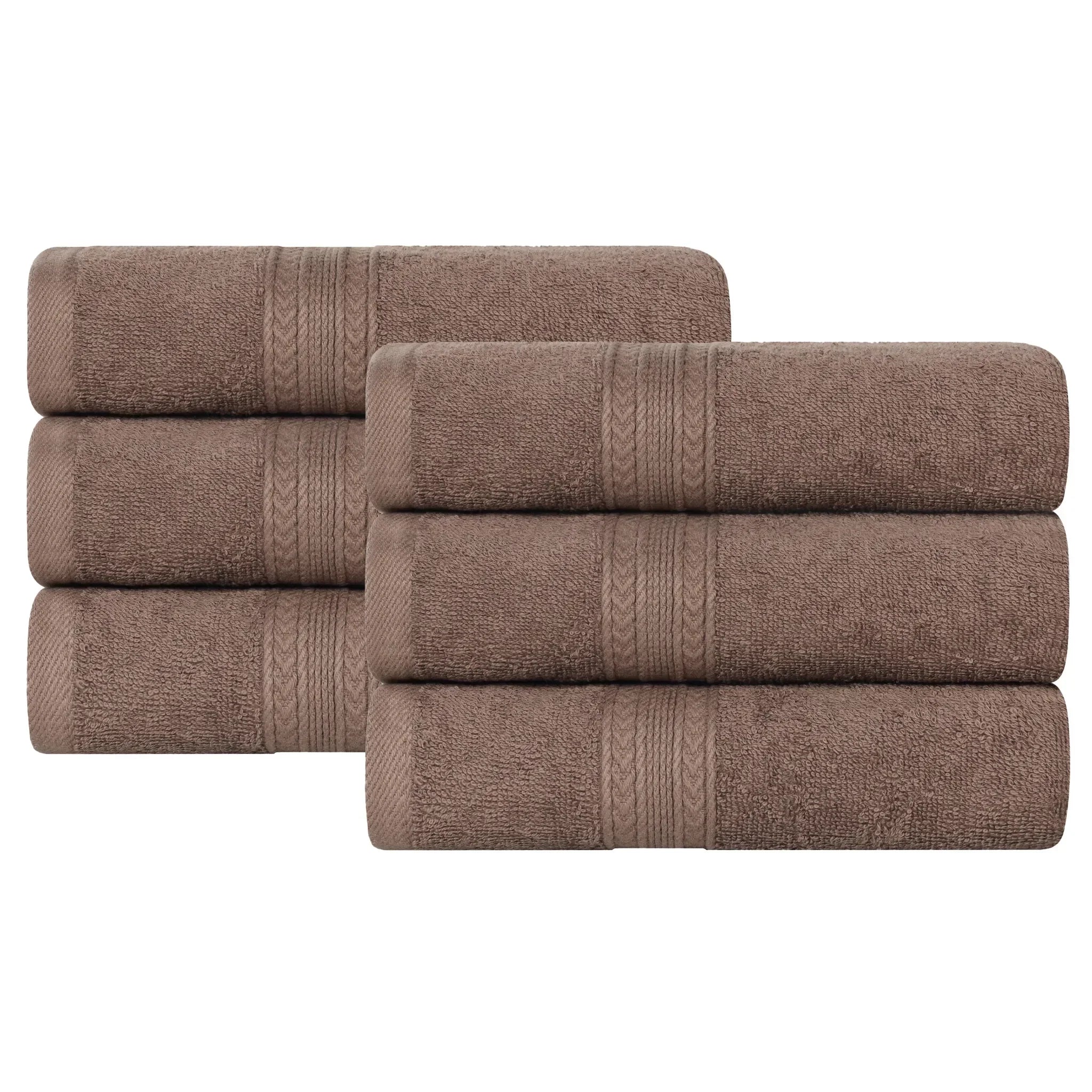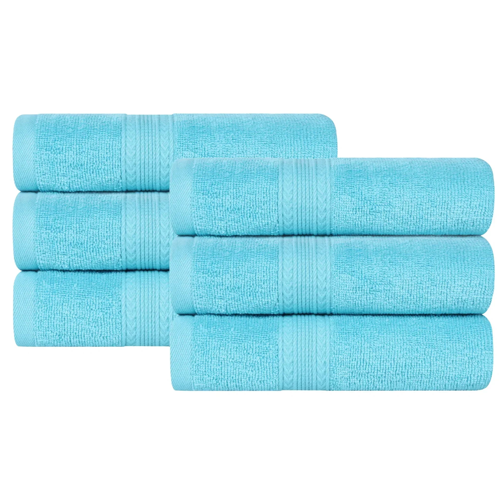 Exceptionally crafted from regenerated cotton, the serene Eco-Friendly Ring-Spun Cotton 6-Piece Hand Towel Set fuses remarkable absorbency with environmental responsibility. The special process uses less water and less energy, resulting in lower greenhouse emissions.