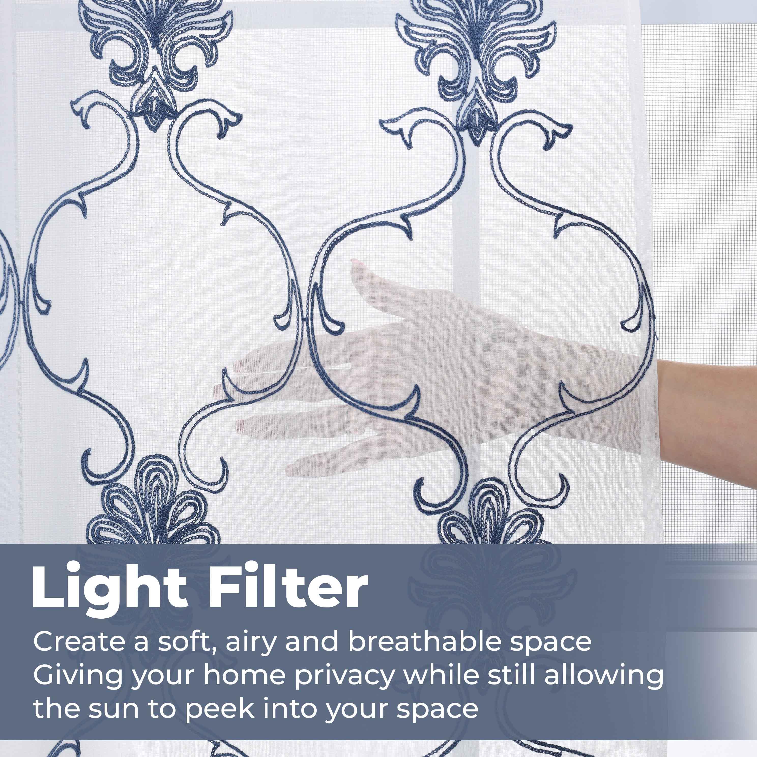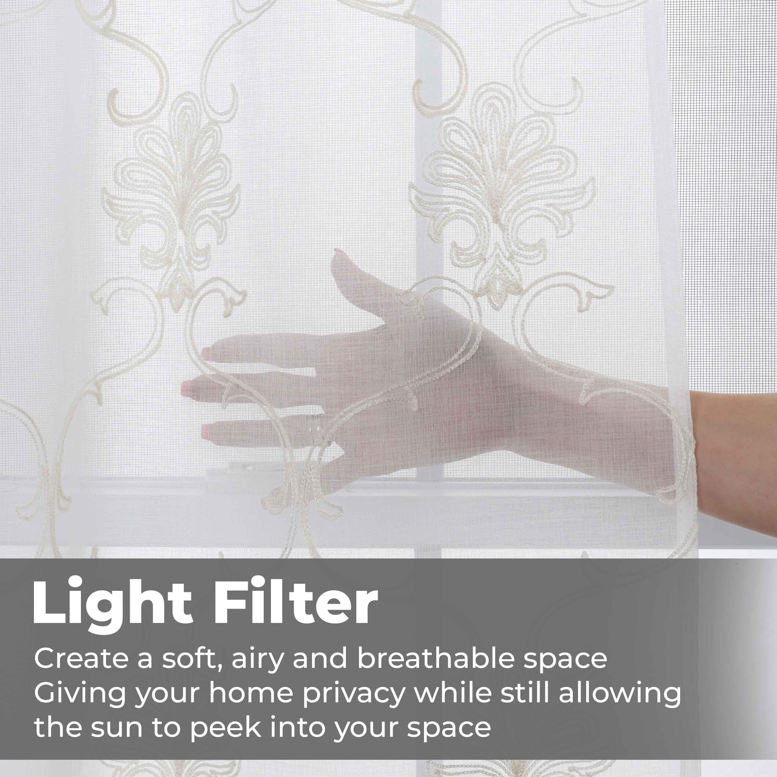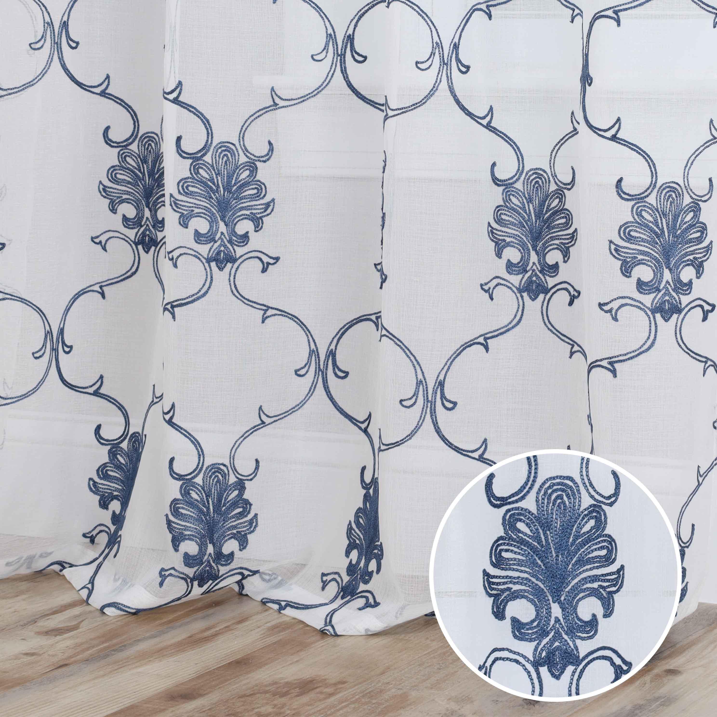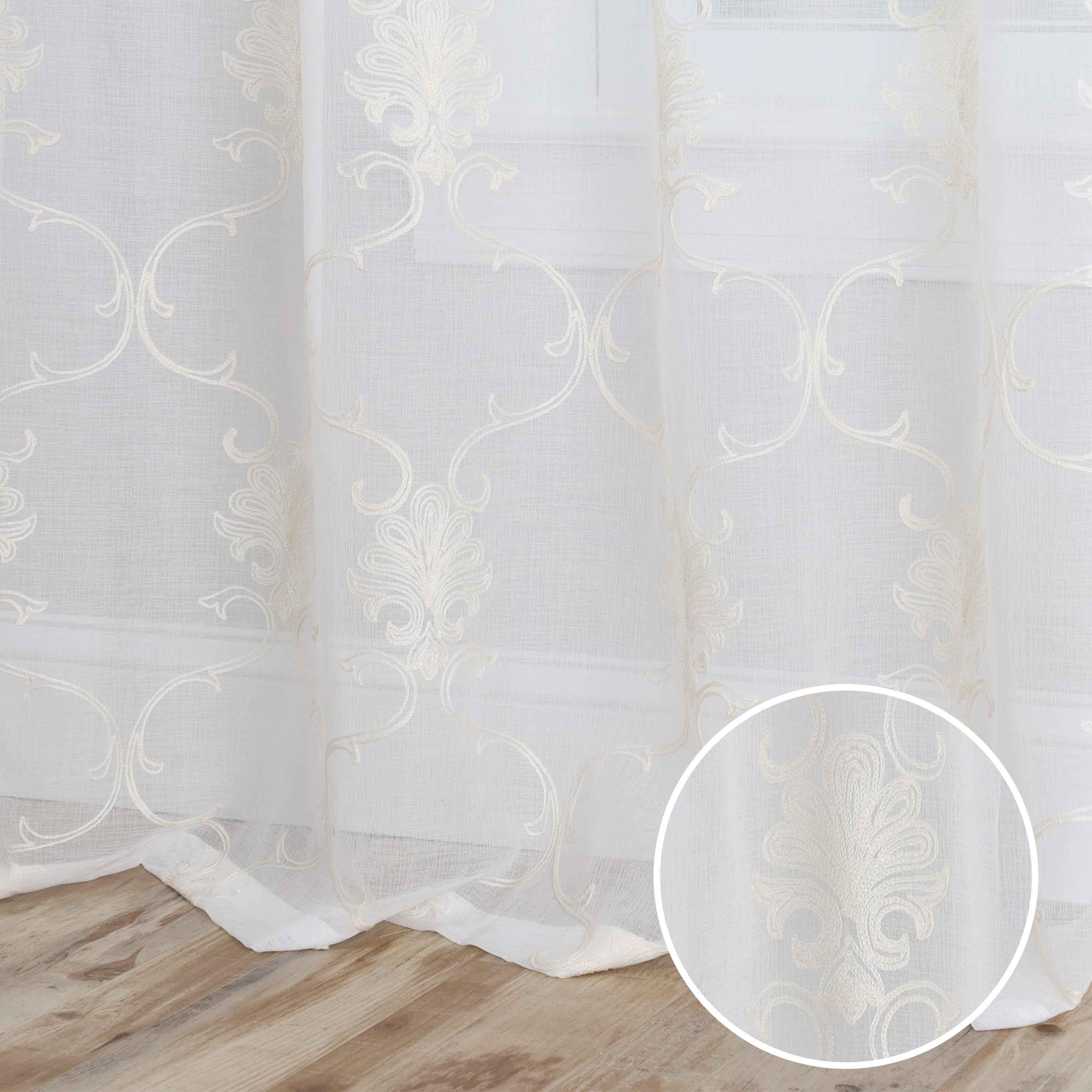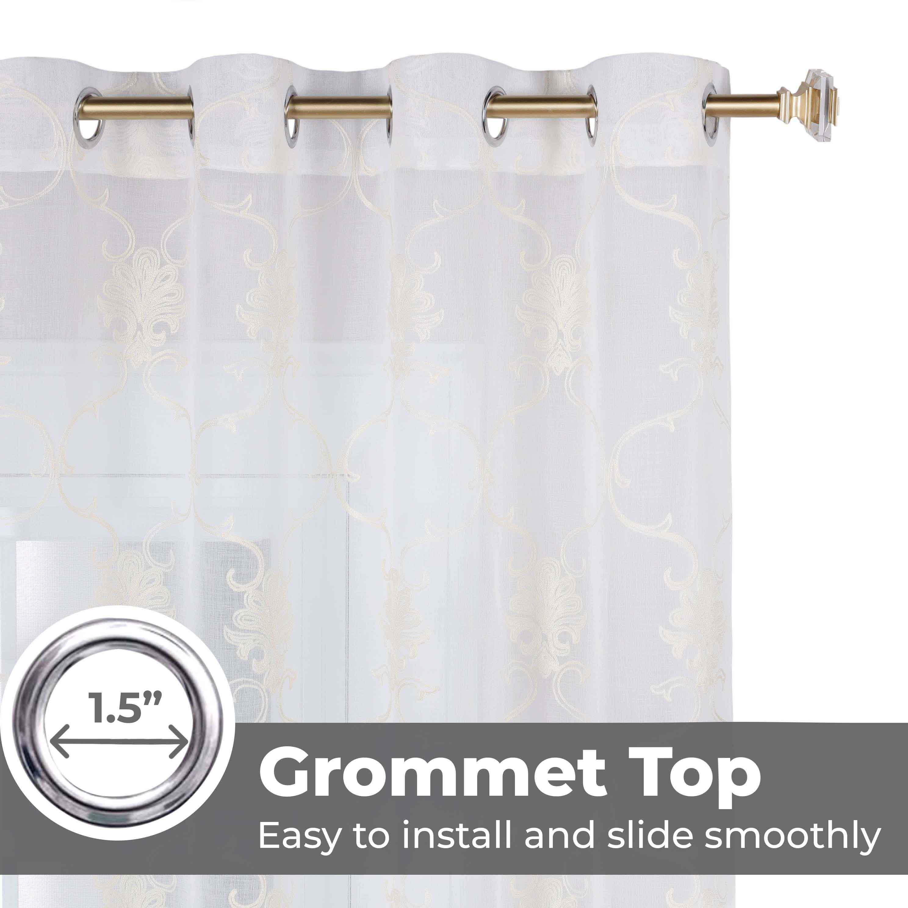 Incorporate an elegant accent to your favorite space with the Elegant Scroll Sheer Curtain Set. Embellished with fancy Victorian scrolls with a vintage-style damask design helps to create an alluring look in your home. These transparent curtains feature quality polyester construction that makes them durableand stylish in design. The polished, stainless grommets lining the tops of these sheers make installation hassle-free and give them a modern flourish. Available in assorted sizes and colors, these panels will bring a soothing accent to your windows while still allowing natural light to filter into your home.