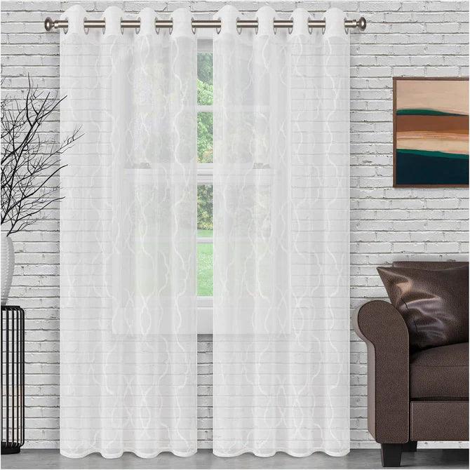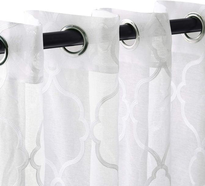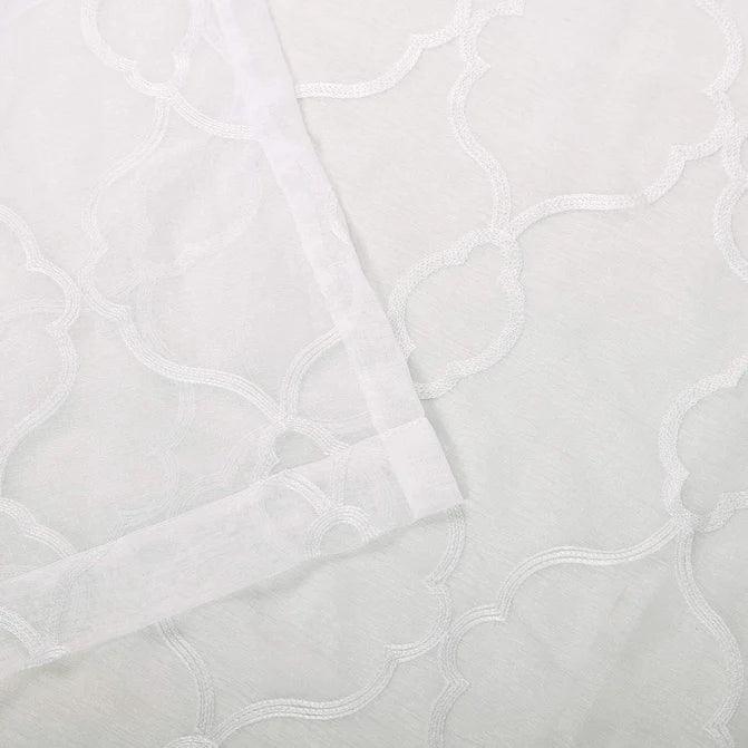Embroidered Lattice Grommet Sheer Curtain Panel Set