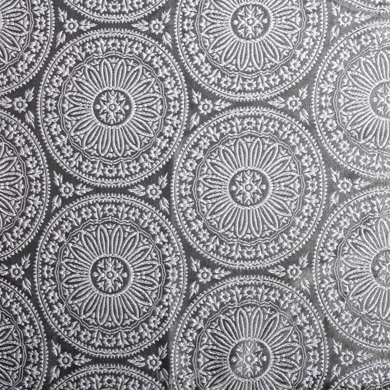 Add a stunning update to your windows with the Eminence Jacquard Curtain Set. This regal panel duo is durable in their quality, smooth polyester construction. The jacquard woven floral medallion pattern in a brilliant white blends seamlessly with a shimmering neutral background. The stainless grommet header gives this set a supple appearance and make hanging easy. Update the aesthetic of your favorite space with these decadent panel curtains.