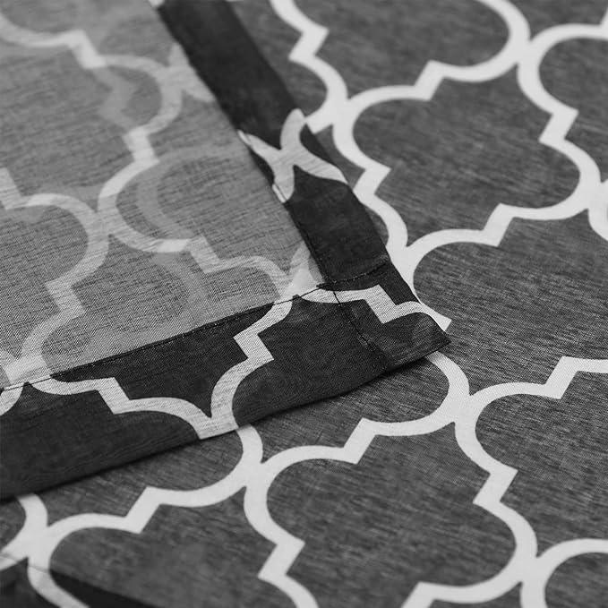 Classic and timeless, the Sheer Modern Geometric Trellis Curtain Panels (Set of 2) will easily transform the look and feel of your windows. These charming panels boast premium, 100-percent lightweight Polyester construction to give your space a light and airy ambiance. Each panel boasts a beautiful printed trellis pattern that will look perfectly placed among modern or traditional aesthetics. The polished, stainless grommet topper makes installation a breeze and gives these sheers a modern, minimalistic flair. Complete the look of any room in your home with these beautiful sheer curtains.
