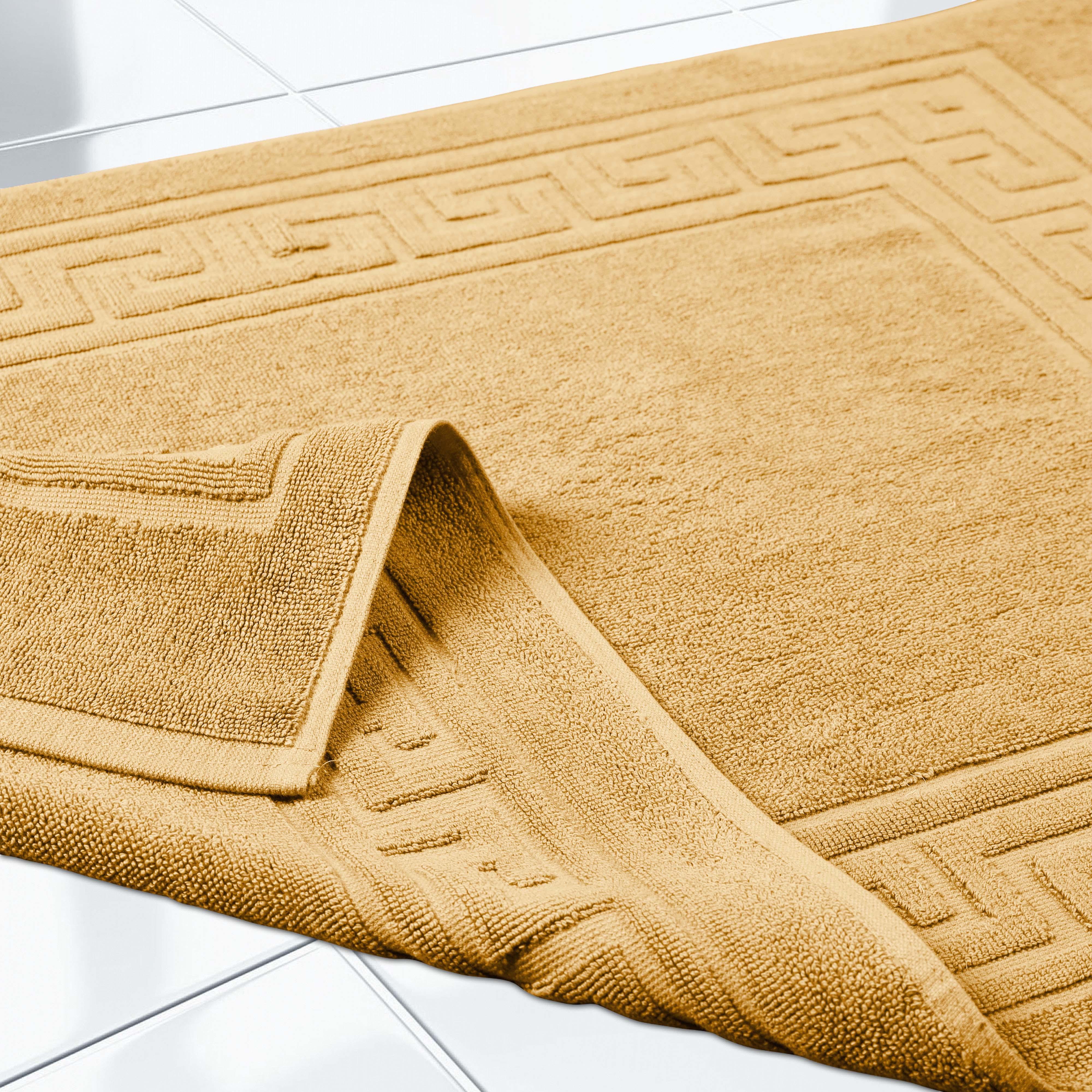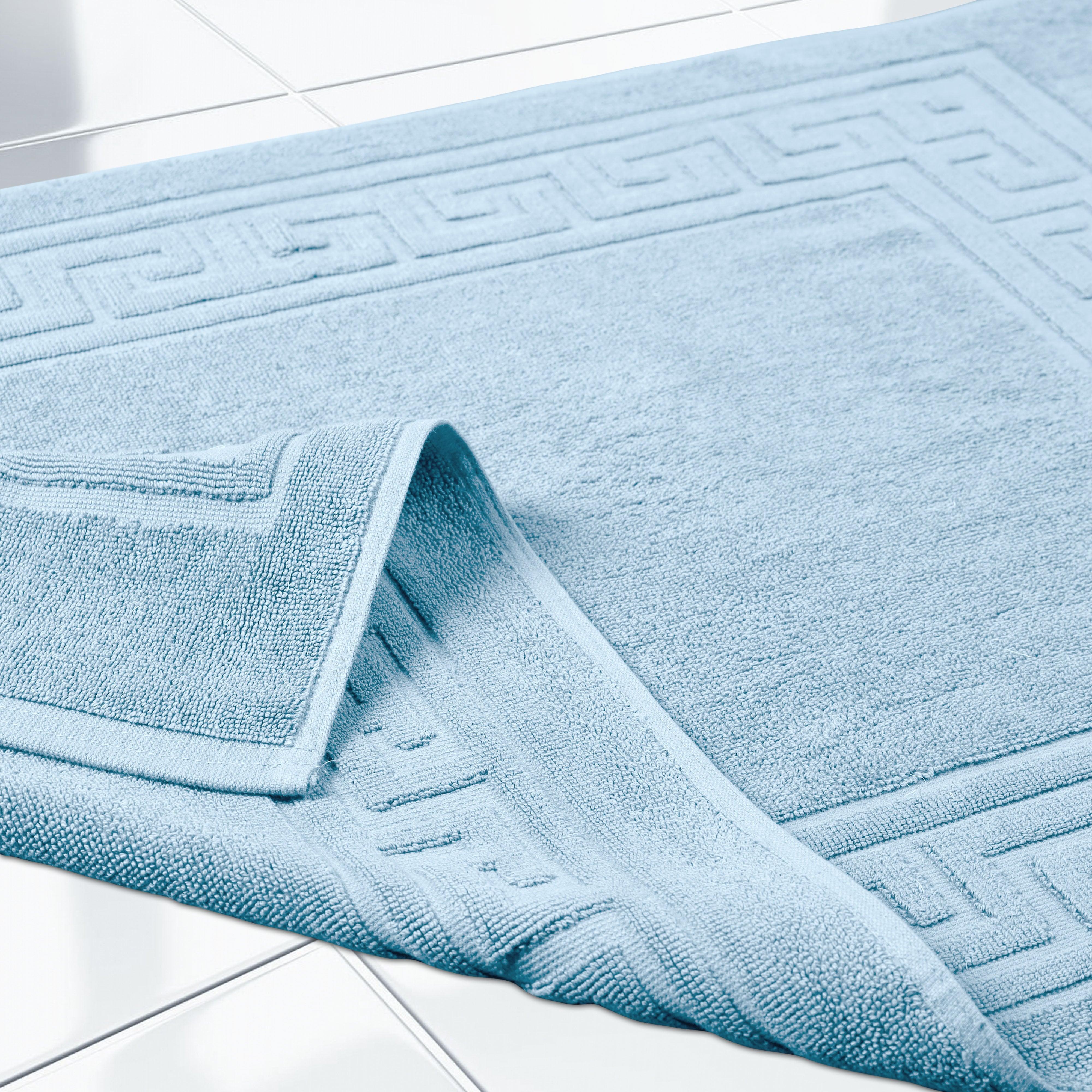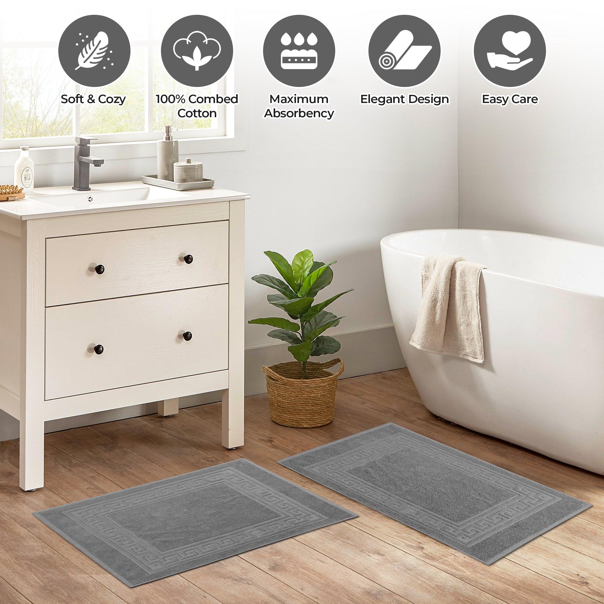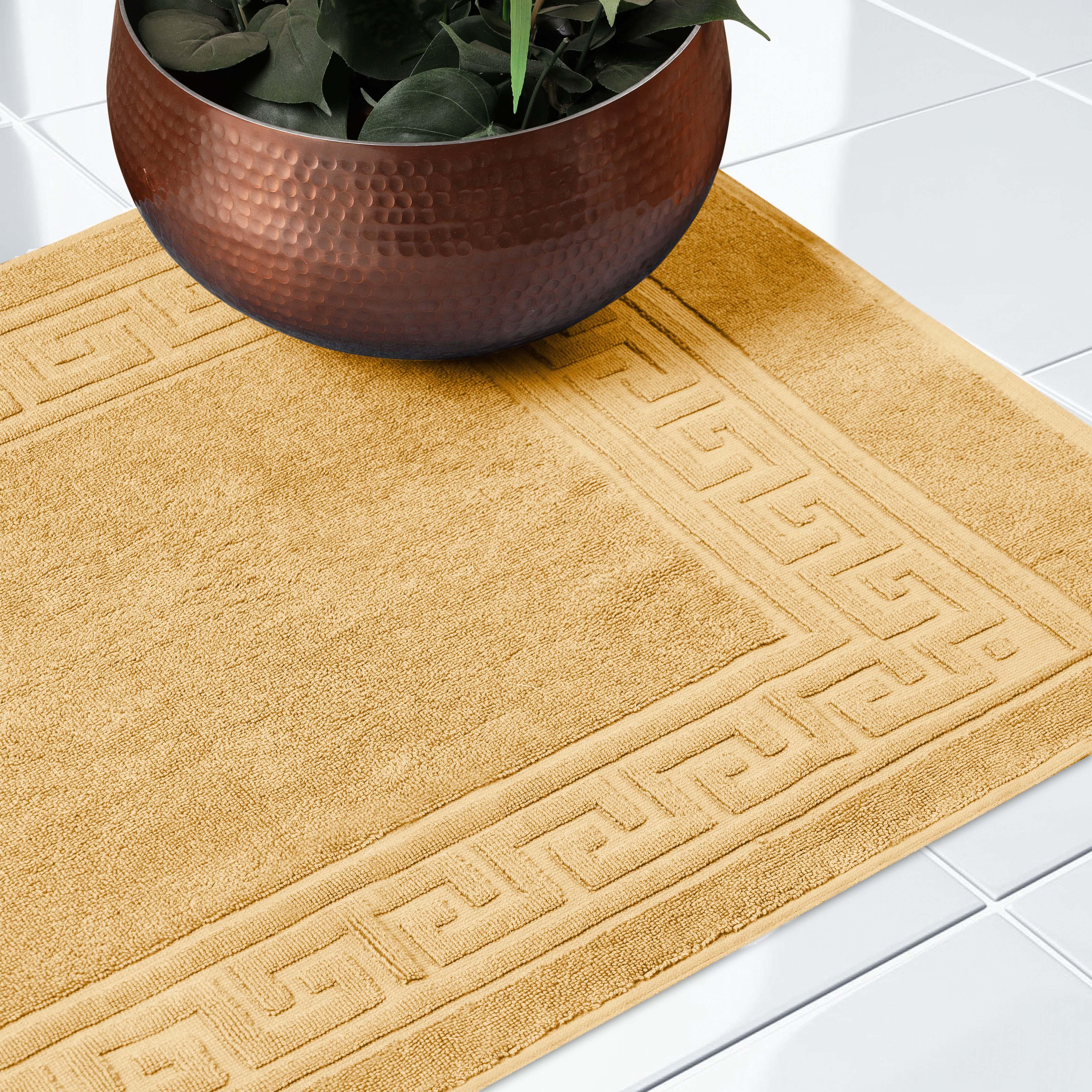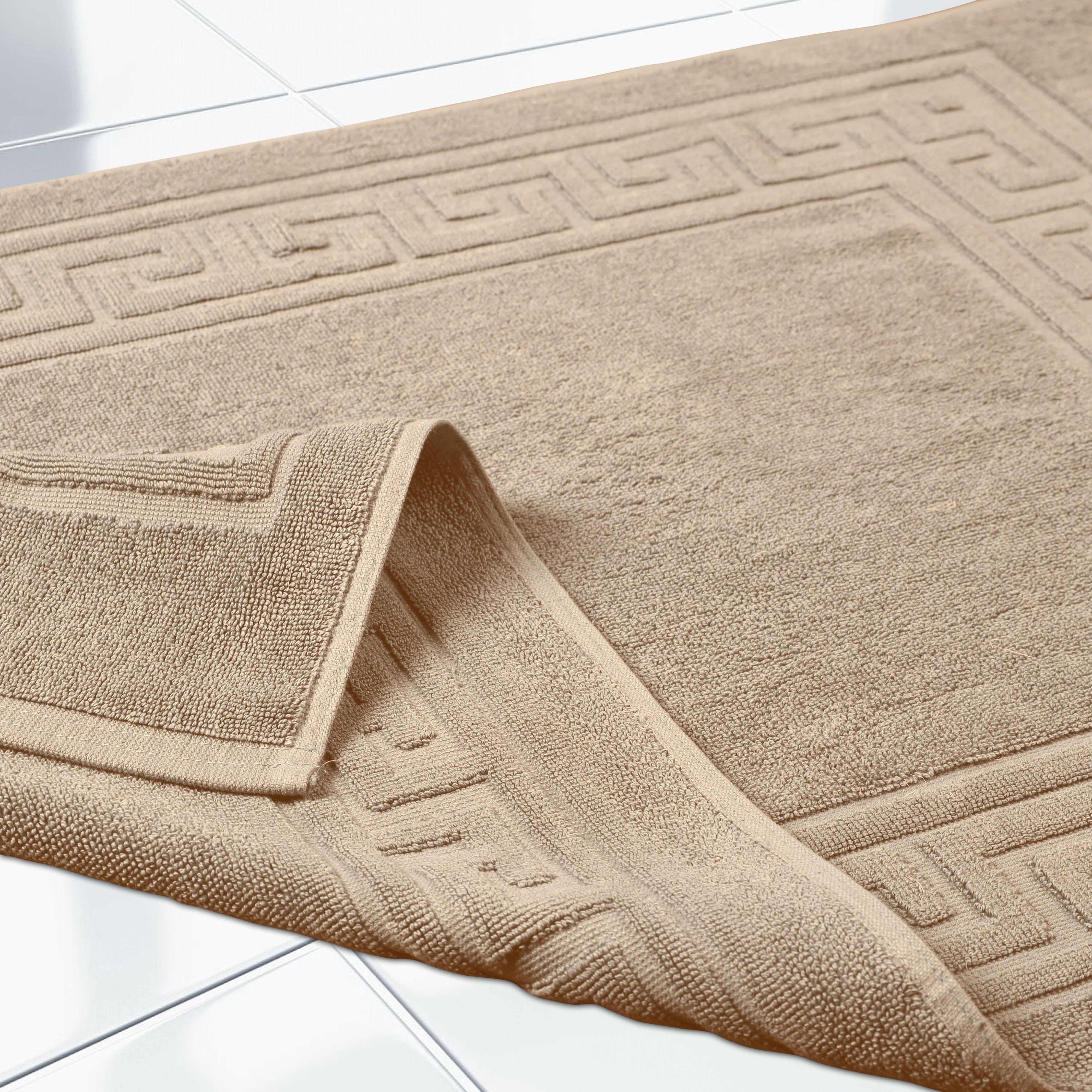 Elevate the look of your bathroom or powder room with the Egyptian Cotton Greek Key Border 2 Piece Bath Mat Set. Crafted from durable Egyptian cotton, our most opulent bath mats feel extremely plush underfoot. This machine washable set features a woven terry surface on both sides giving it enhanced comfort and absorbency. Perfect for everyday use, enjoy cloud-like comfort every time you step out of your shower or bath. Showcasing a traditional Greek key border, add classic elegance to your bathroom style with this luxurious set. This bath mat set is also OEKO-TEX certified, meaning it does not contain any harmful substances or chemicals, ensuring quality, comfort, and wellness.