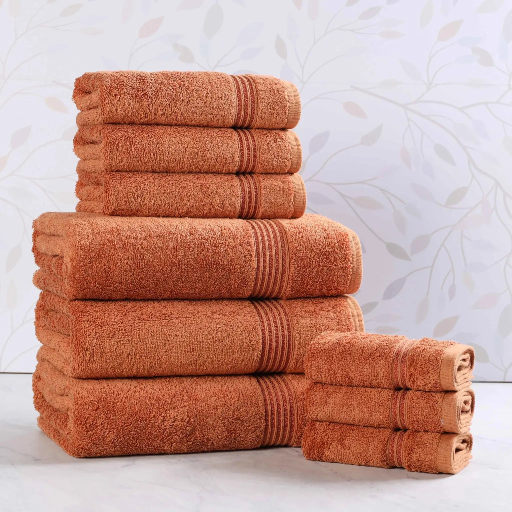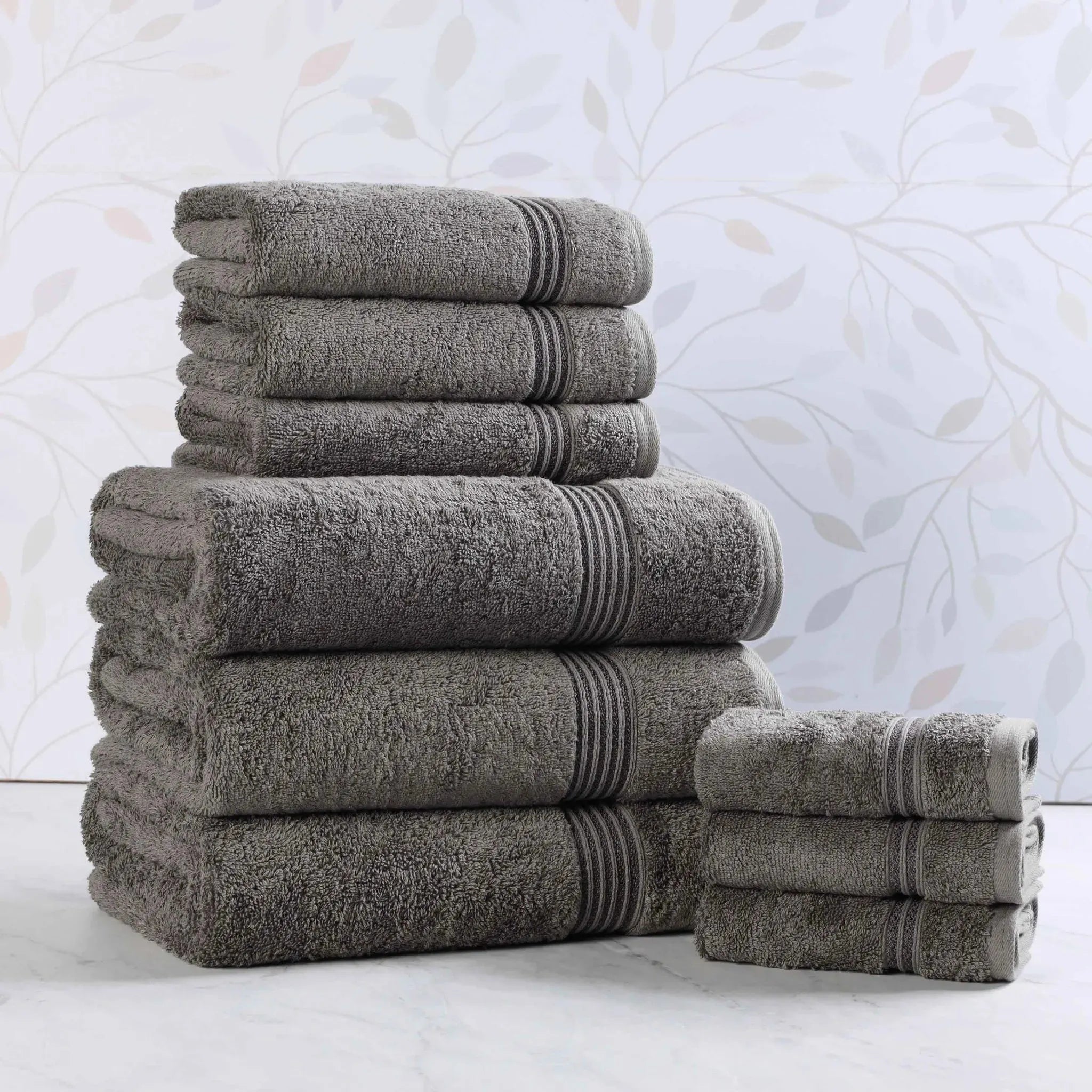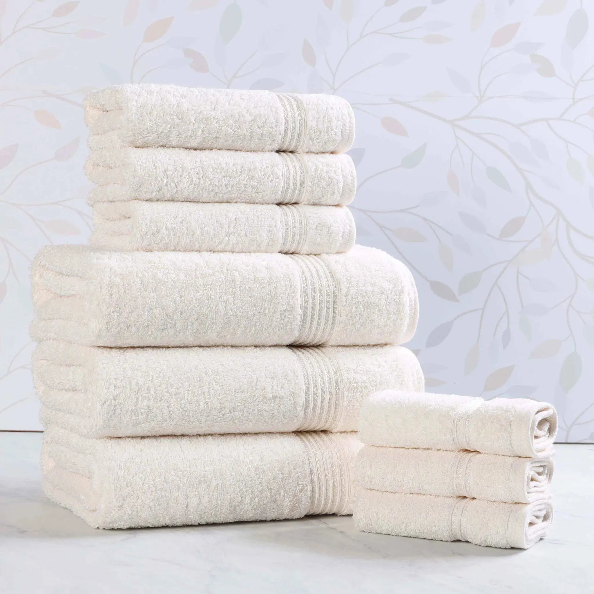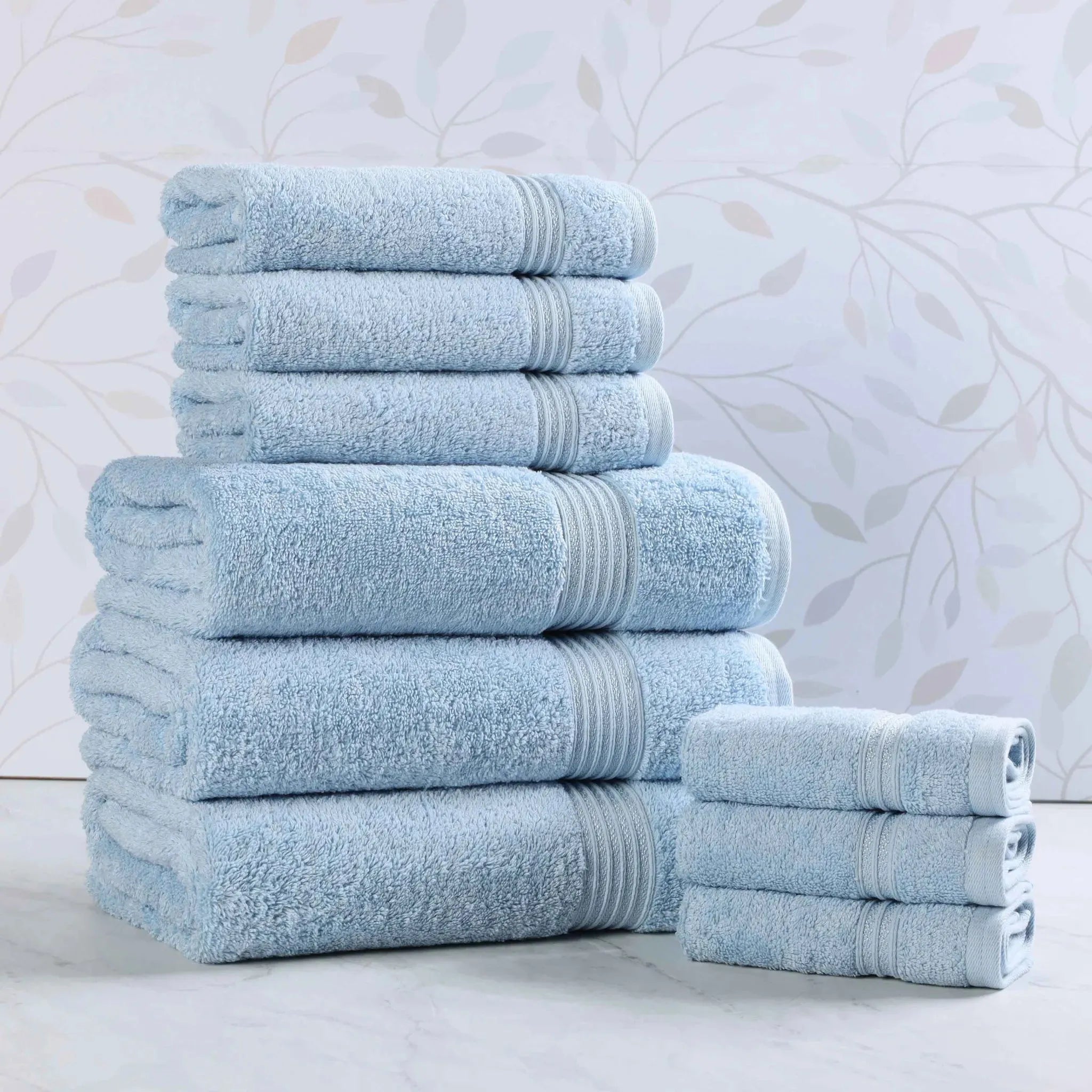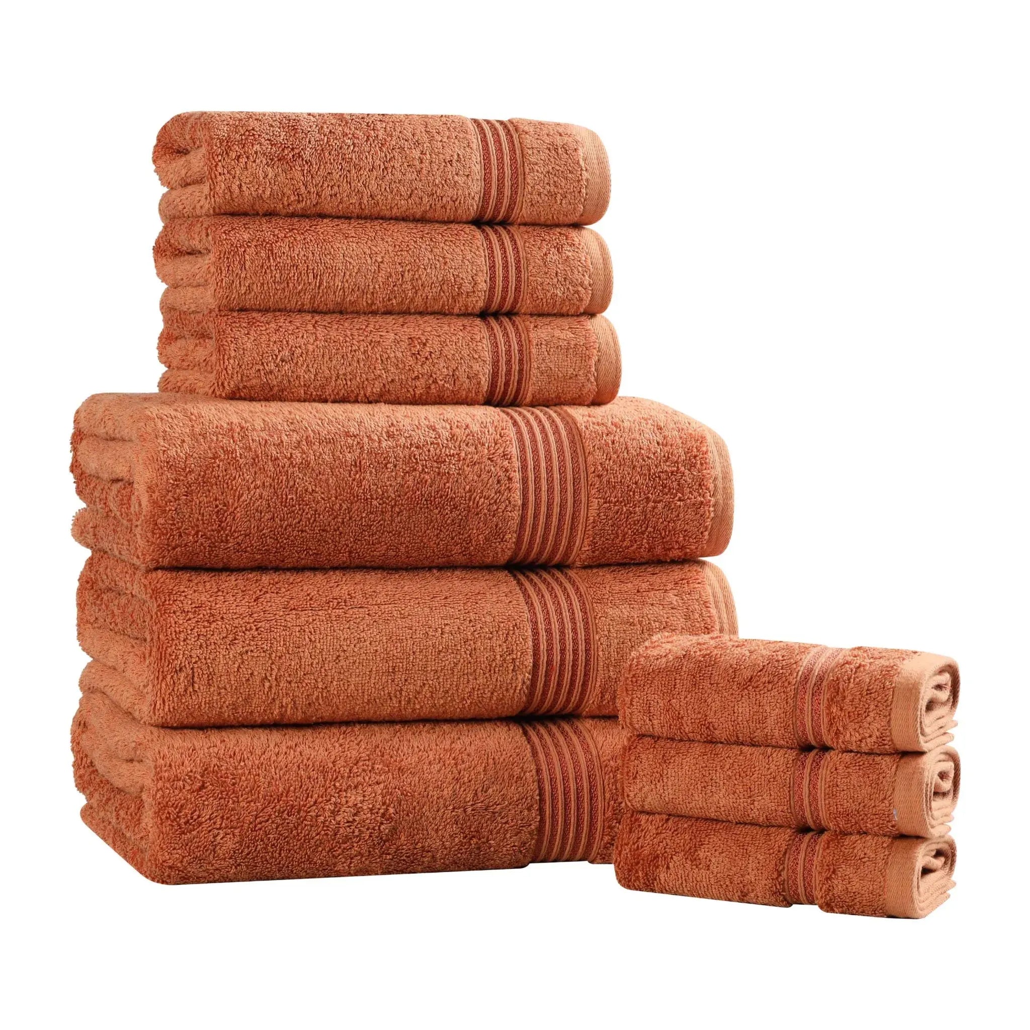 Transform your bathroom with this Heritage 9-Piece Egyptian Cotton Towel Set. This Luxury bath towel set includes three bath towels, three hand towels, and three washcloths, all woven from 100% premium Egyptian Cotton. Enjoy the dense, thick bath towels and their superior absorbency for a quick, spa-like dry. Get the feel of hotel-quality towels with this comprehensive set of plush bath towels, combining elegance and durability in one perfect package.