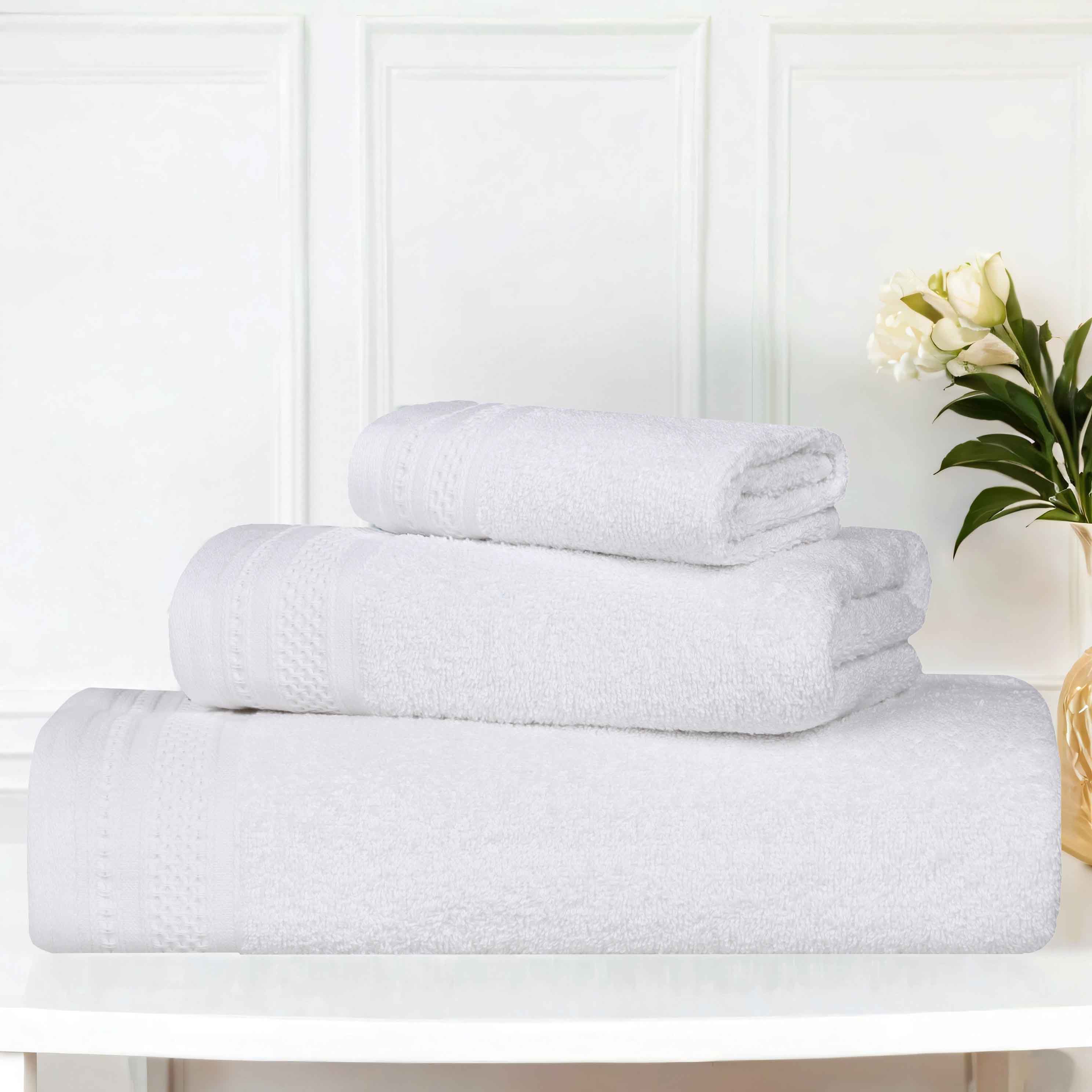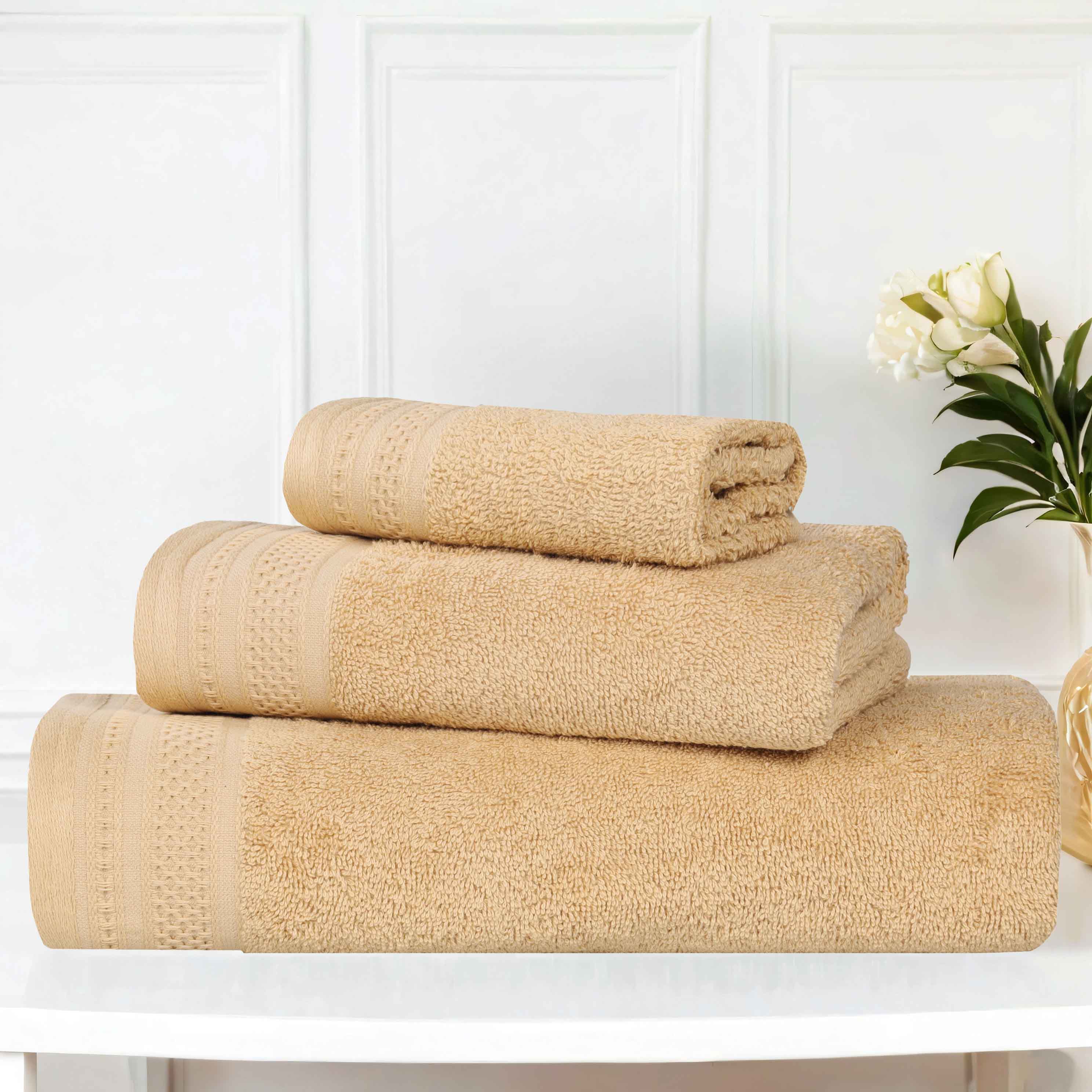 Elevate your everyday with our Honeycomb Waffle Border 3 Piece Towel Set, designed to bring spa-like luxury to your home. Crafted from 100% medium-weight cotton, these towels offer the perfect balance of comfort, absorbency, and durability. The textured honeycomb border adds a touch of elegance, while the plush, fluffy feel ensures a truly pampering experience. Available in a spectrum of colors to seamlessly complement your bathroom decor, this set transforms ordinary routines into moments of indulgence.