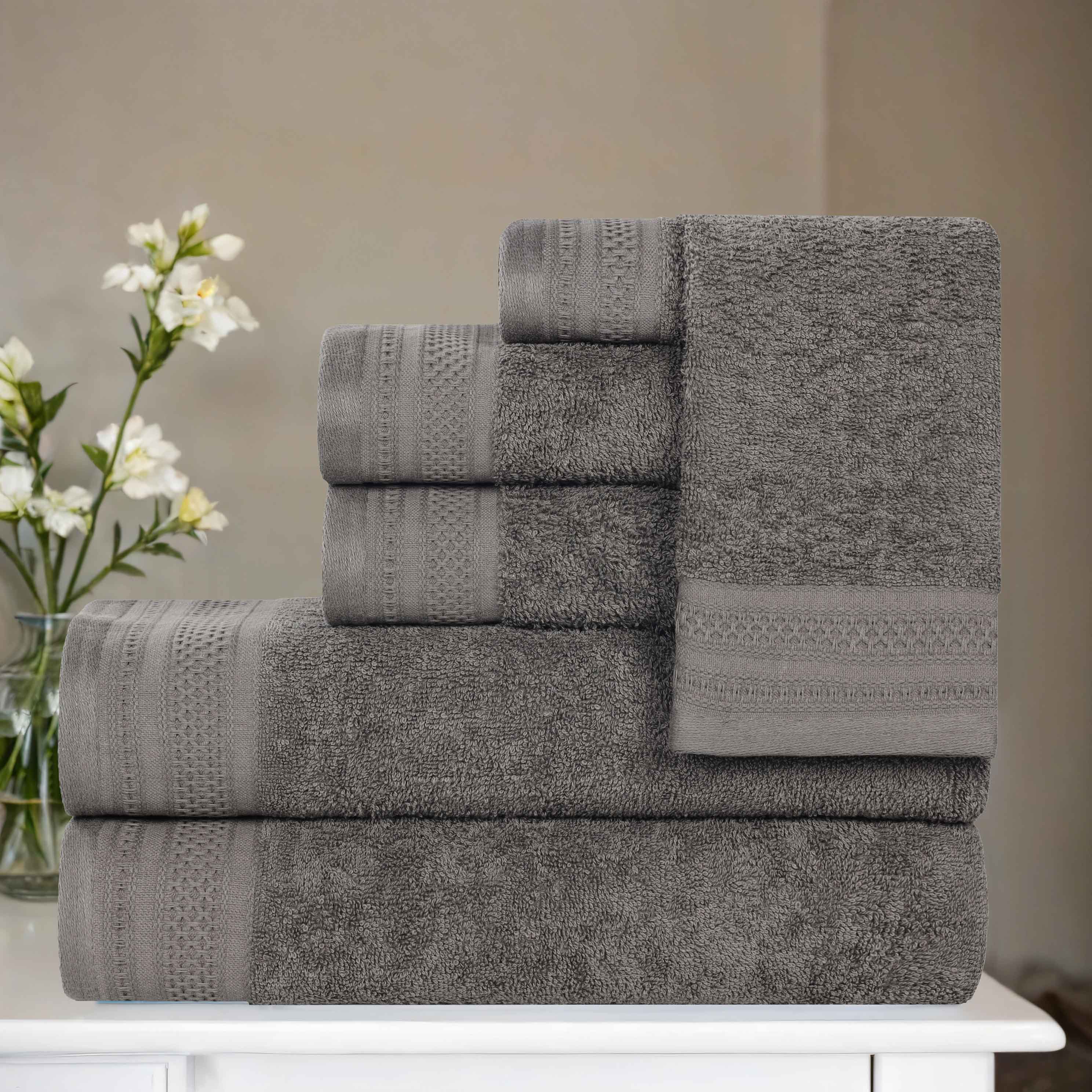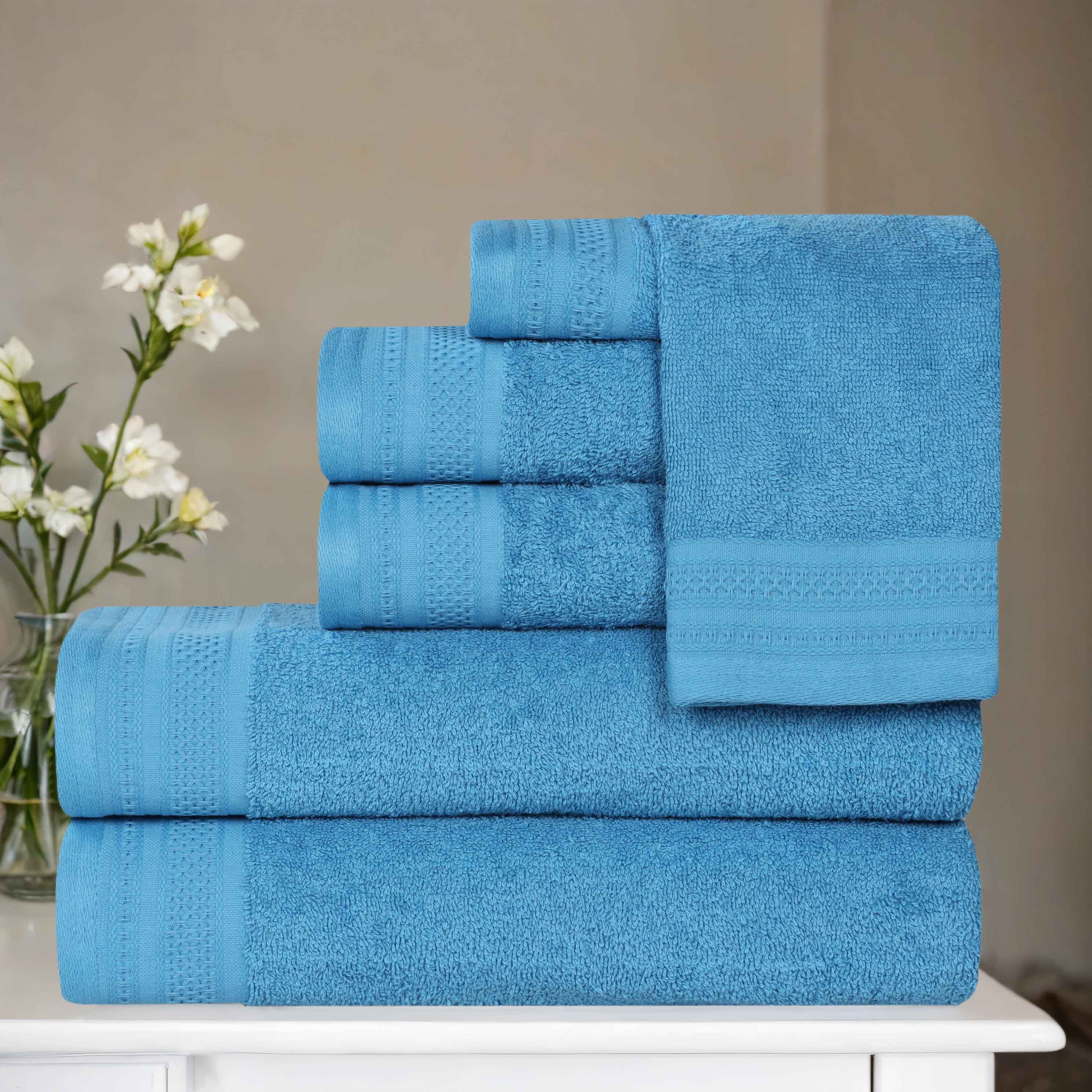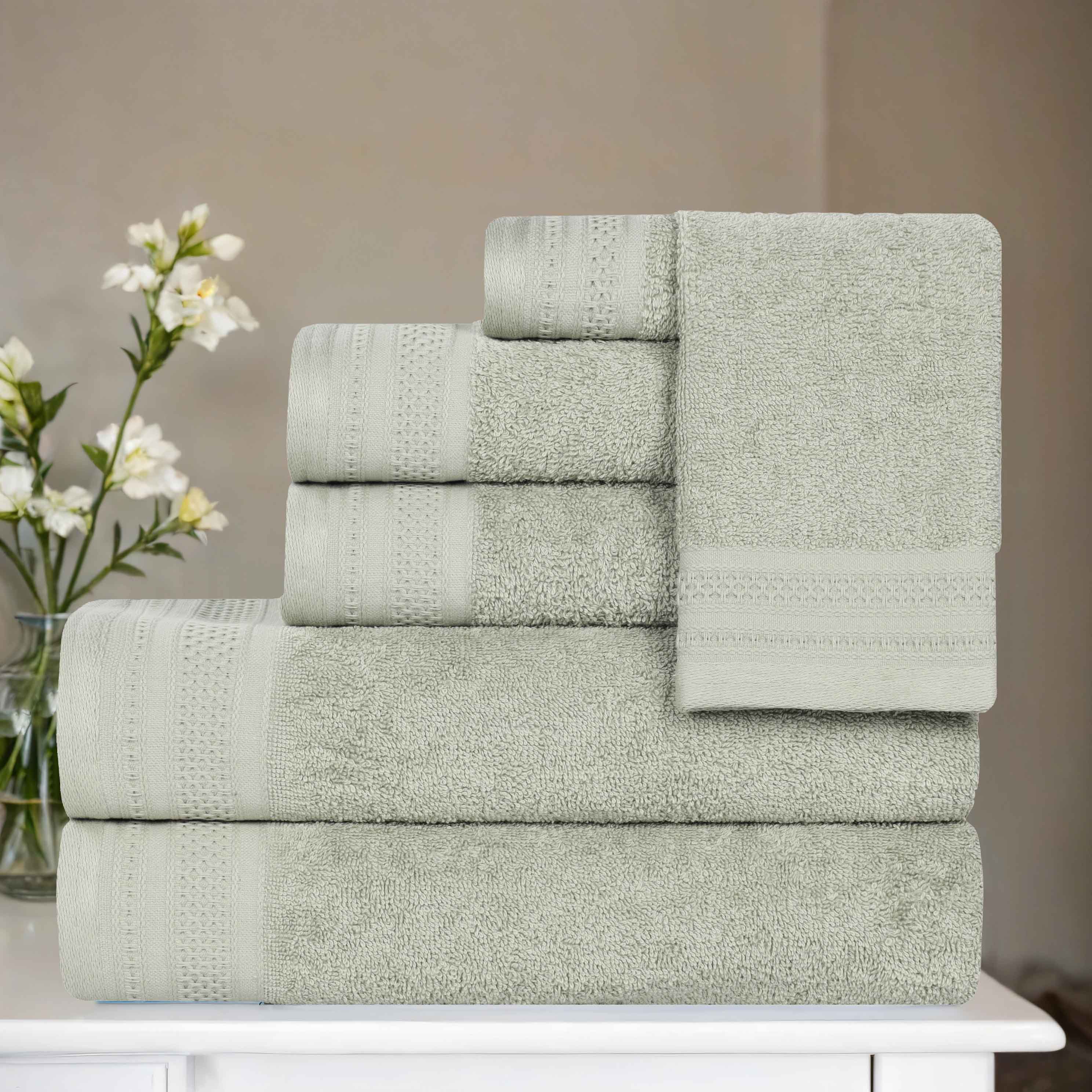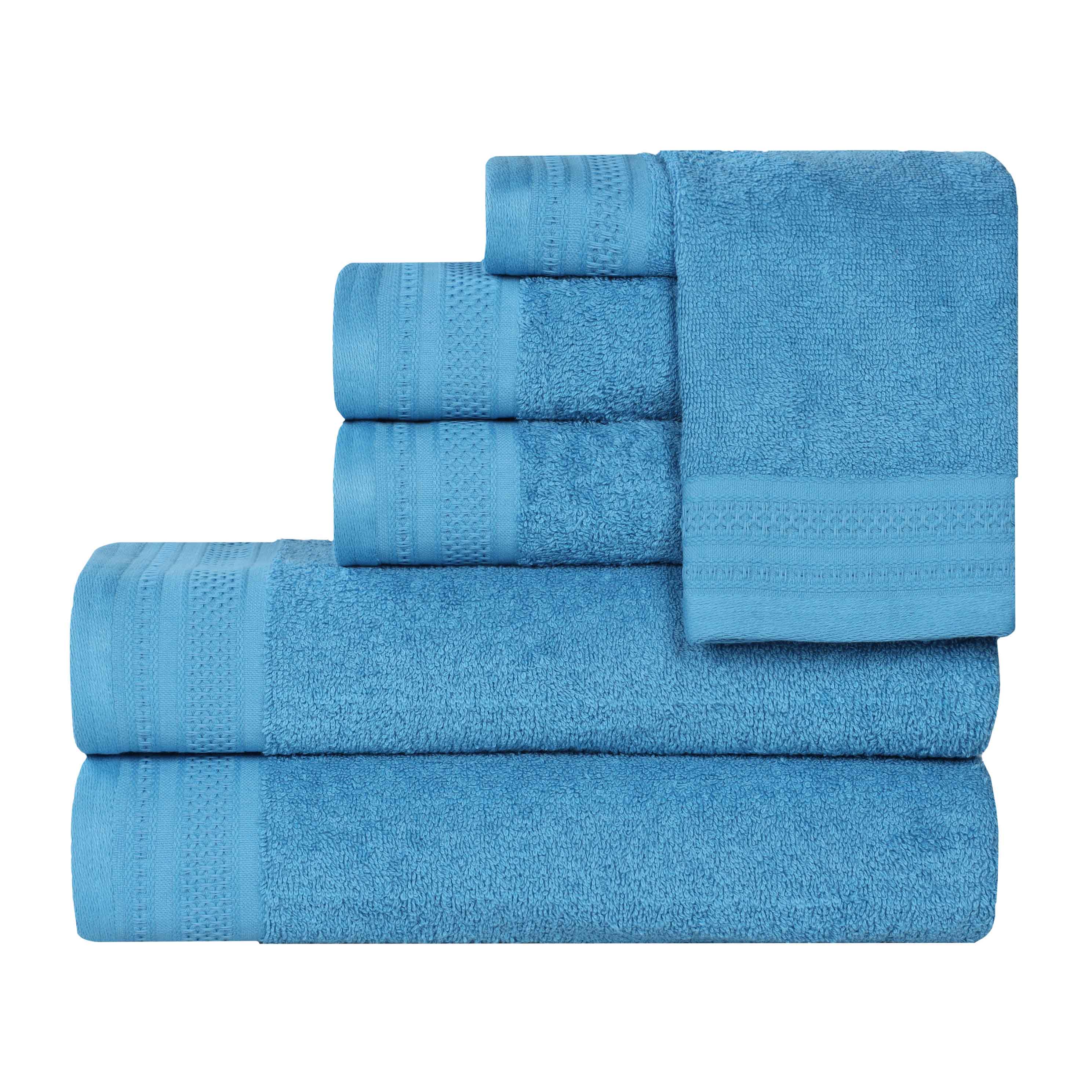 Indulge in everyday luxury with our Honeycomb Waffle Border 6 Piece Towel Set. Crafted from 100% medium-weight cotton, these towels strike the perfect balance between plush comfort, superior absorbency, and long-lasting durability. The textured honeycomb border adds a touch of elegance, while the double-ply construction ensures quick drying and efficient moisture wicking. Transform your bathroom routine into a spa-like experience with this luxurious and functional set, available in a variety of colors to complement your decor.
