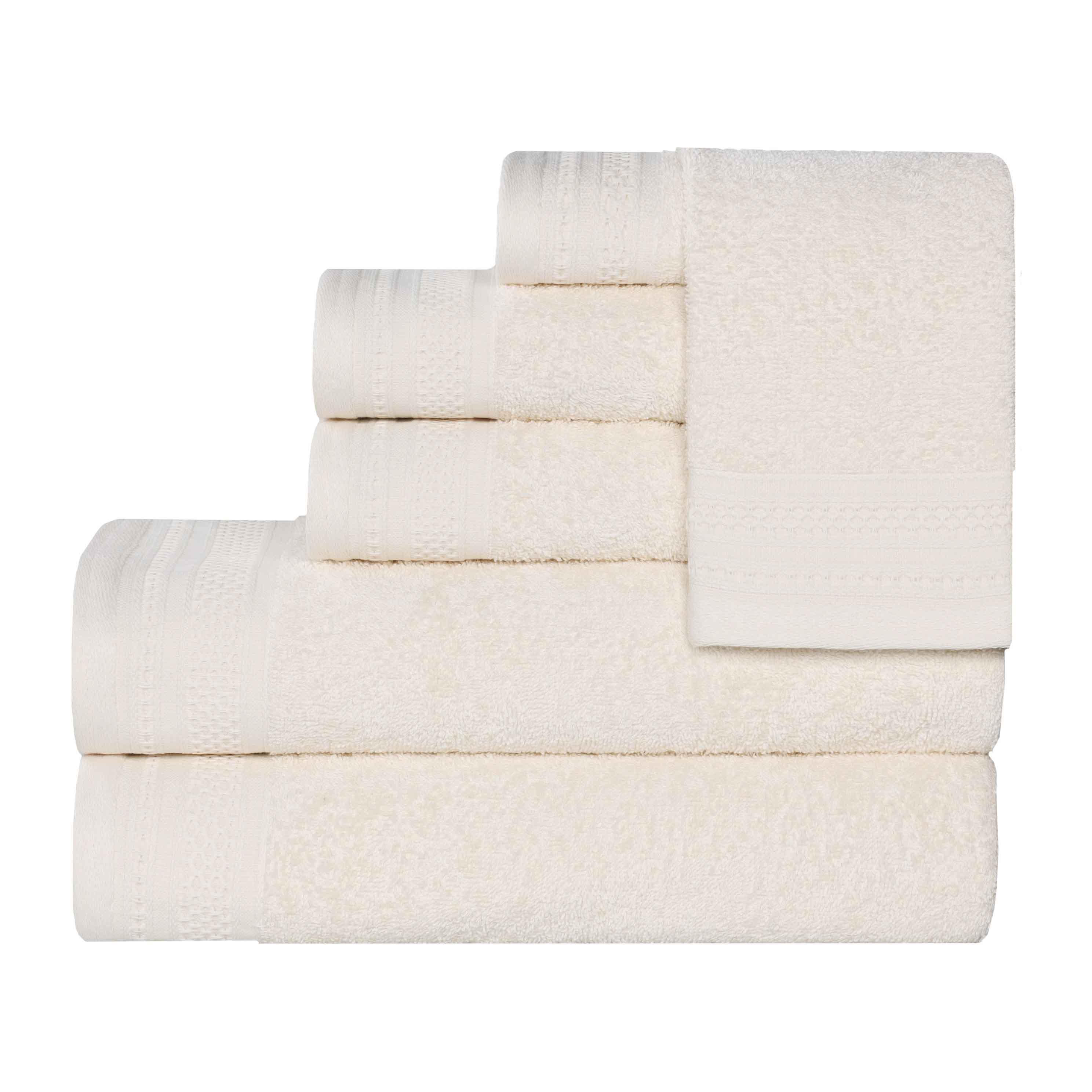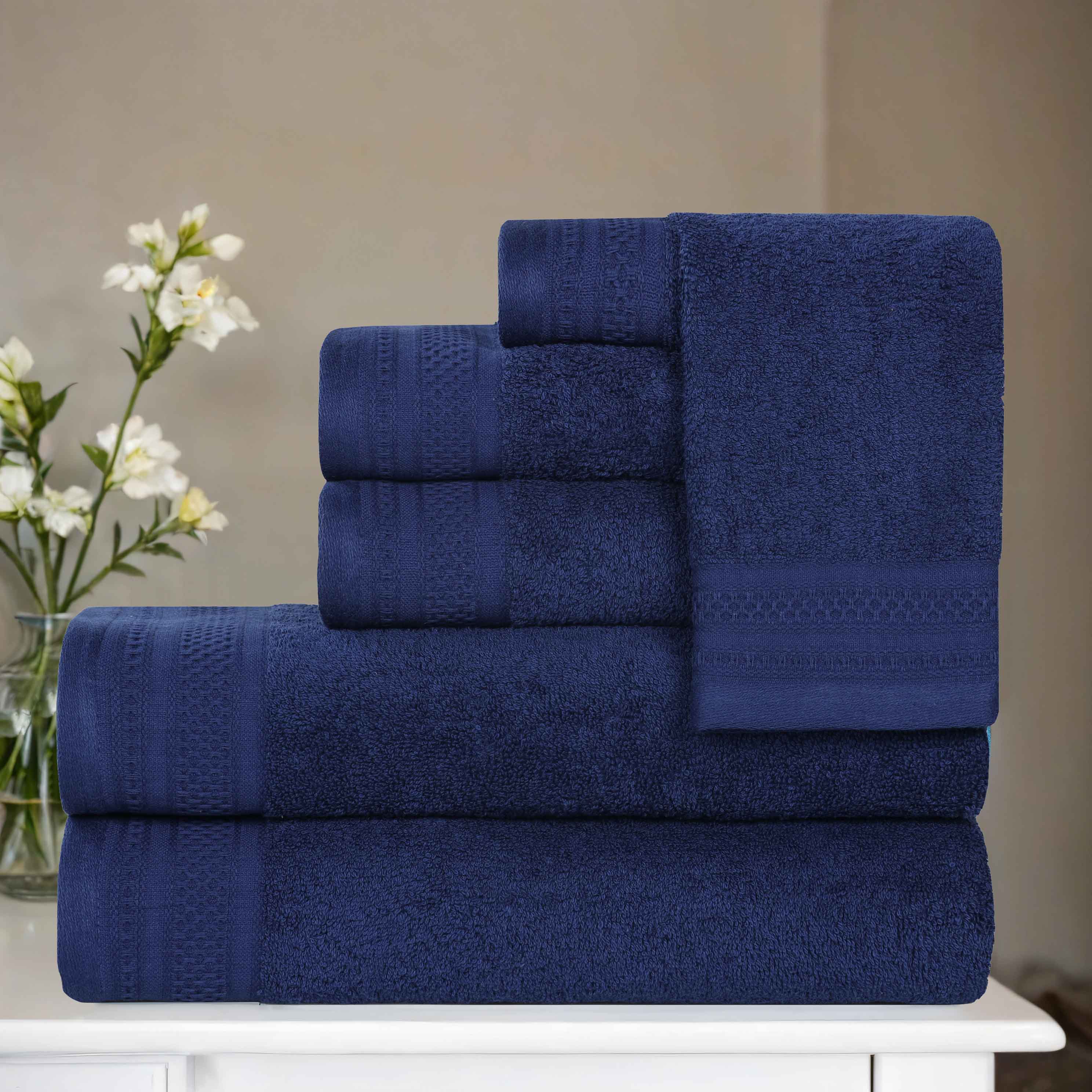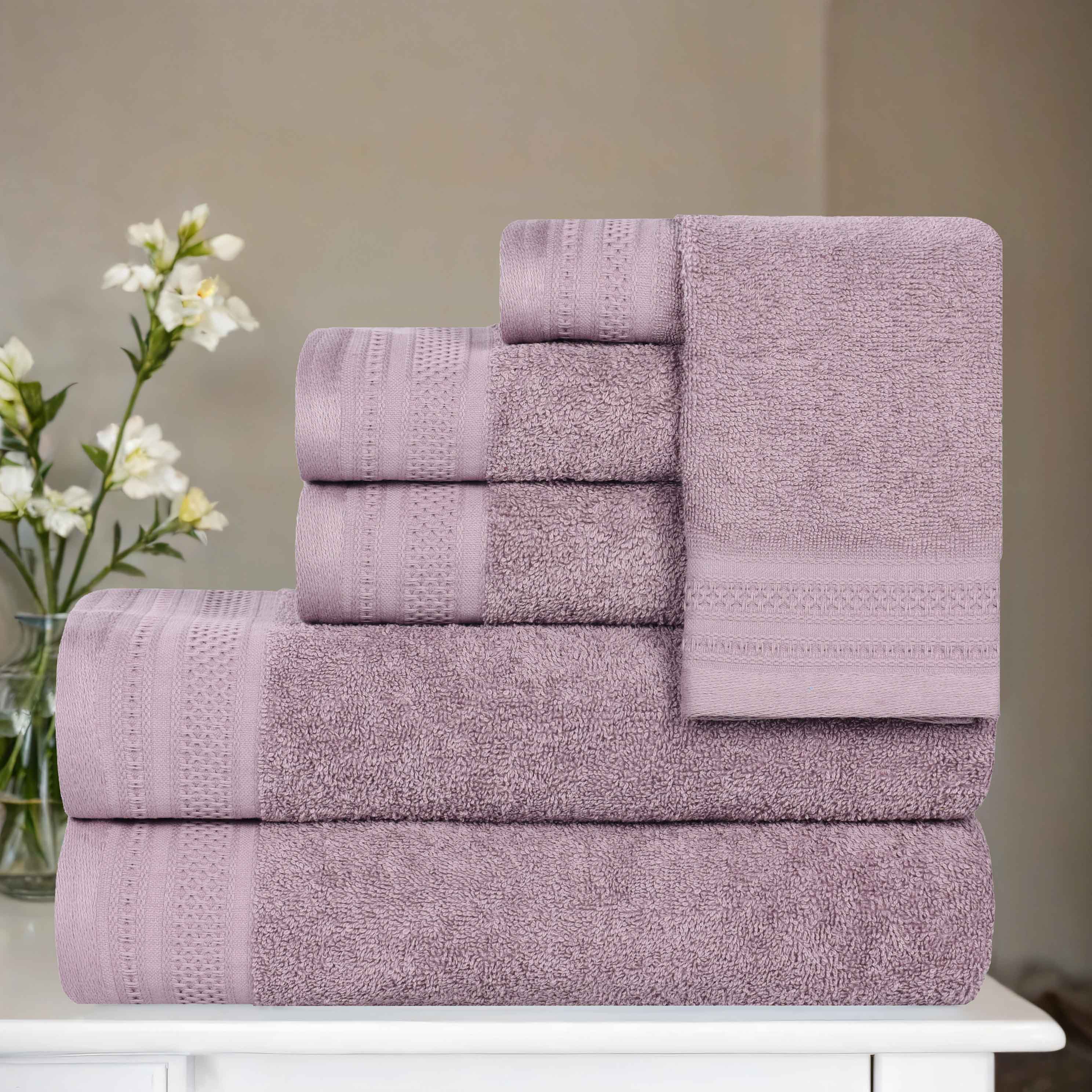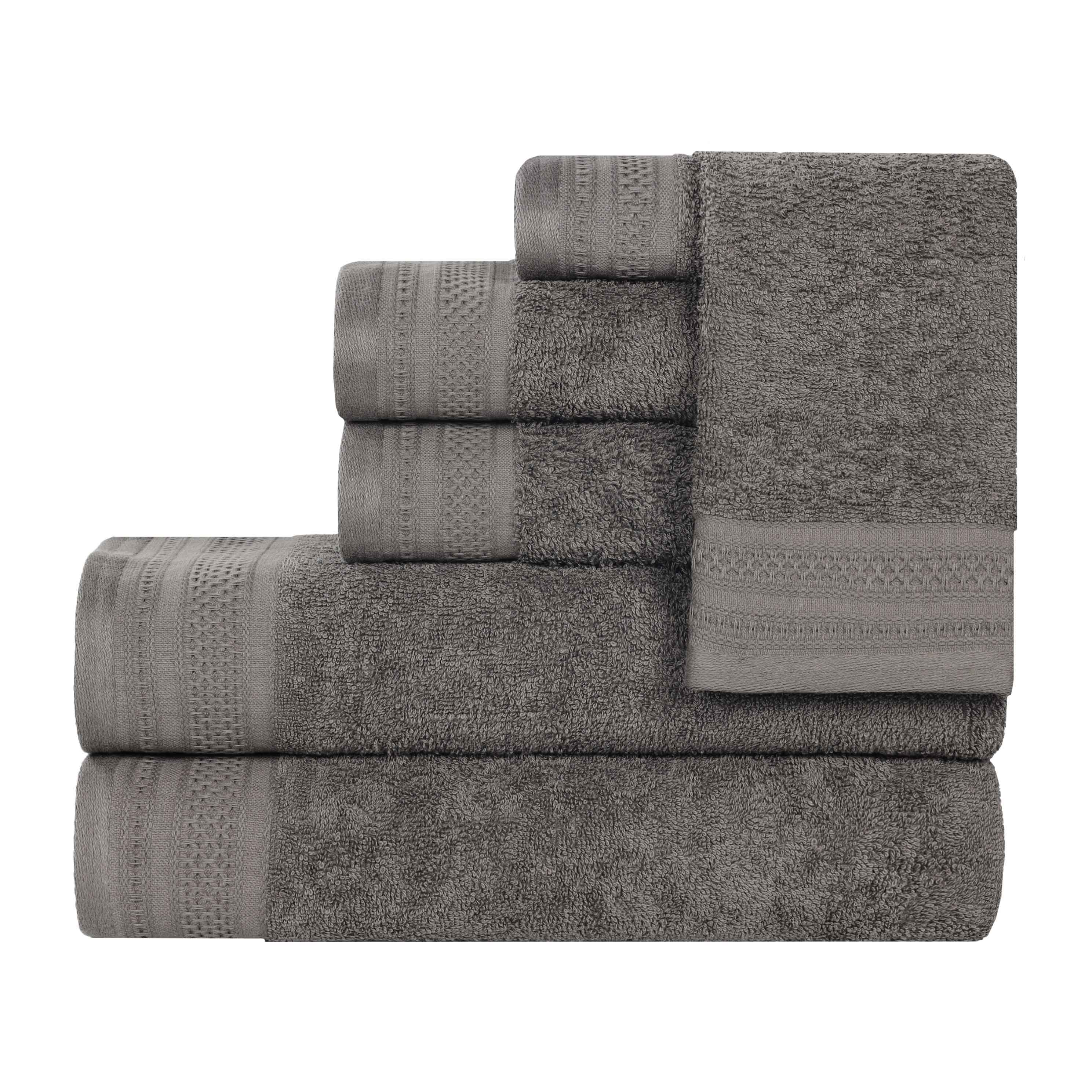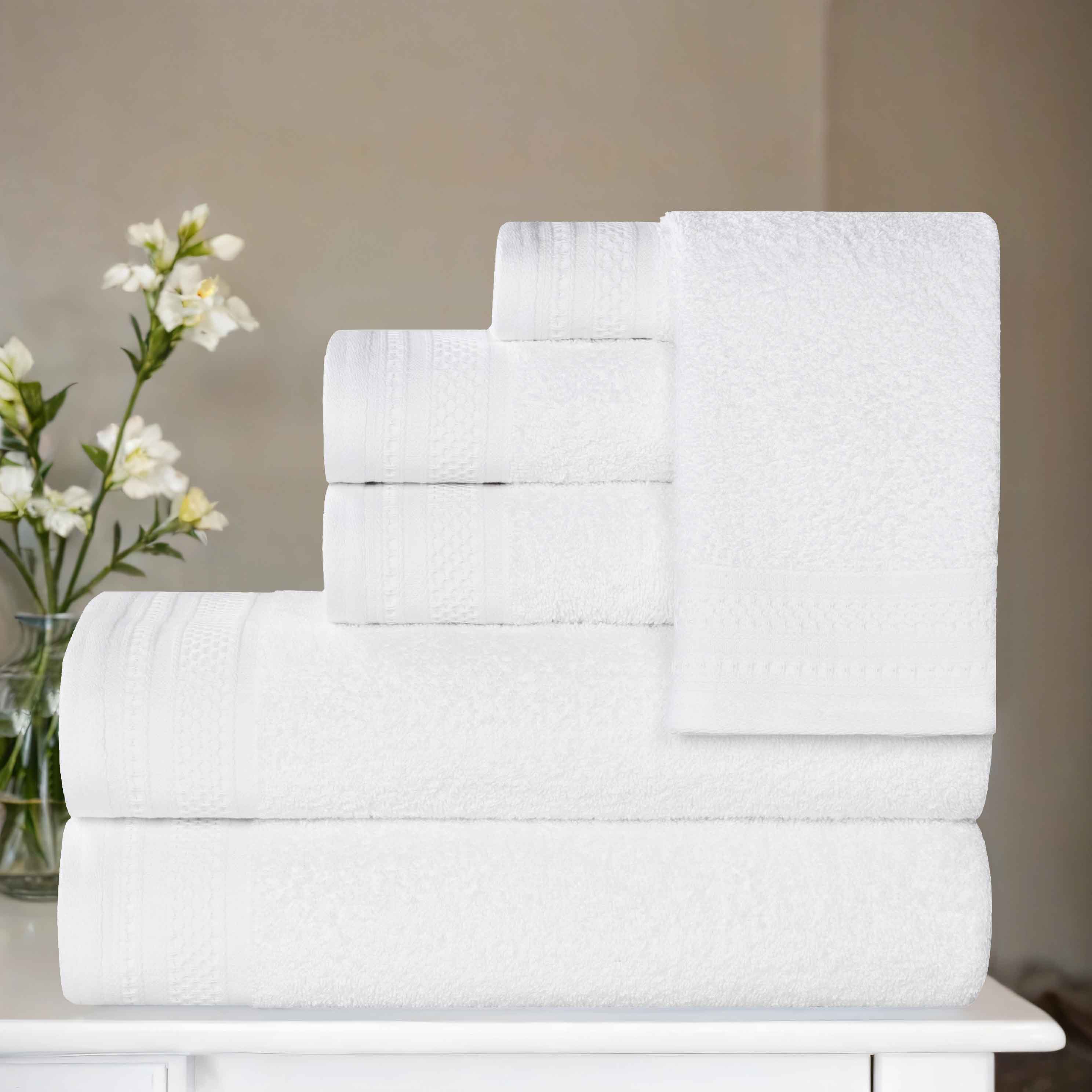Indulge in everyday luxury with our Honeycomb Waffle Border 6 Piece Towel Set. Crafted from 100% medium-weight cotton, these towels strike the perfect balance between plush comfort, superior absorbency, and long-lasting durability. The textured honeycomb border adds a touch of elegance, while the double-ply construction ensures quick drying and efficient moisture wicking. Transform your bathroom routine into a spa-like experience with this luxurious and functional set, available in a variety of colors to complement your decor.