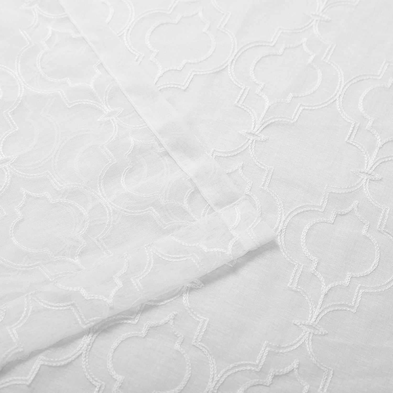 Frame your windows in elegance with the Imperial Trellis Embroidered Sheer Curtains. The lovely lattice pattern has a timeless yet stylish look that gives your favorite space a modern feel. Crafted from 100% Polyester with a stainless grommet header, this panel duo is durable and modern. Our semi-sheer curtains mingle well with almost any decor and fit in nicely with bold to soft color patterns. This exquisite set will surely become a highlight in your home that you'll enjoy.