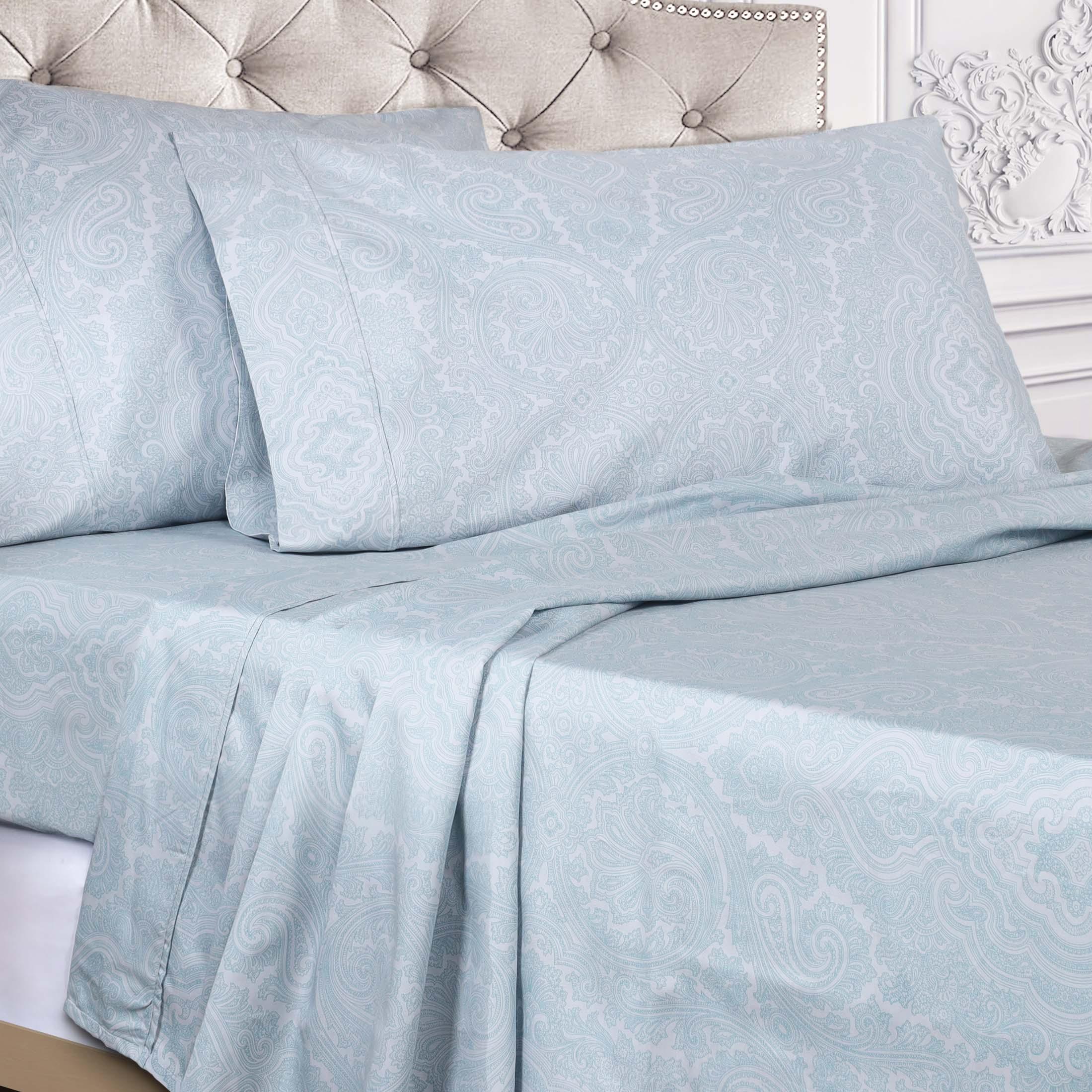 Designed for all-season use, this set is easy to care for and resistant to wrinkles, ensuring your bed always looks inviting and polished. Transform your bedroom with timeless style and silky softness; purchase this elegant paisley sheet set now.