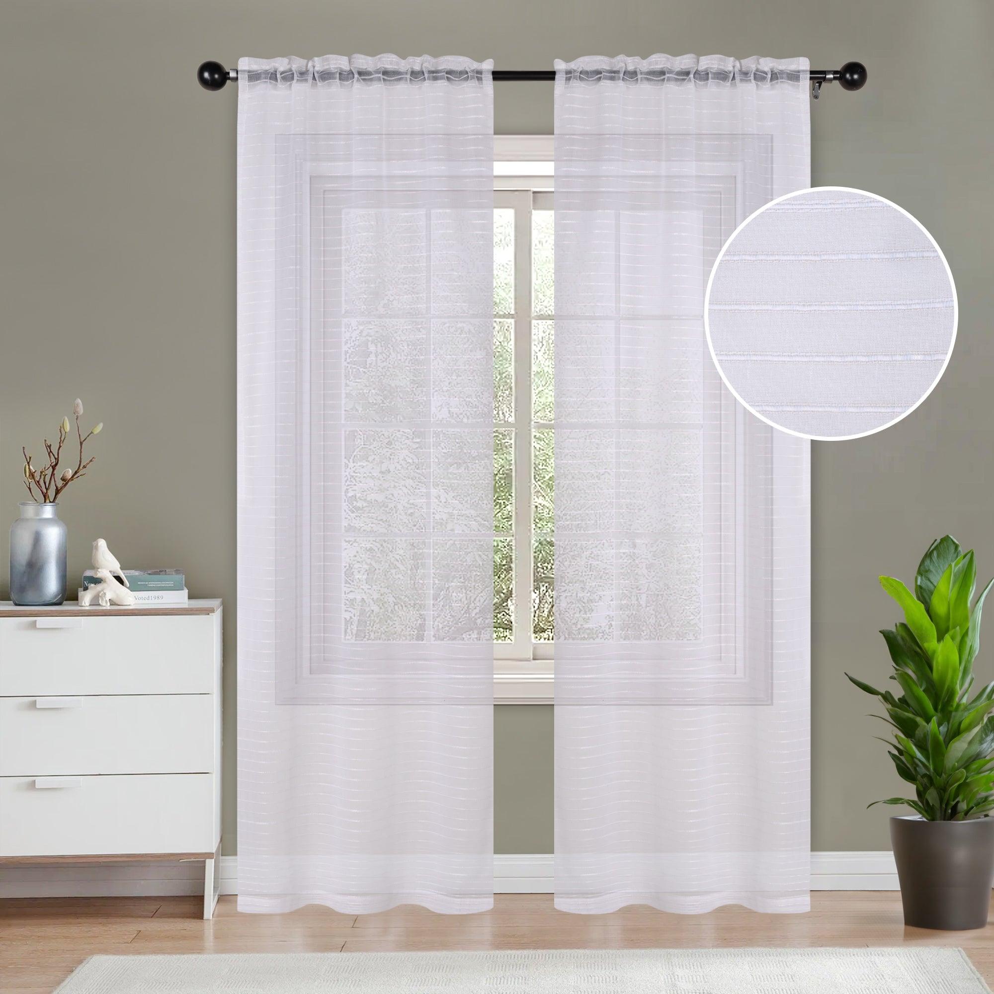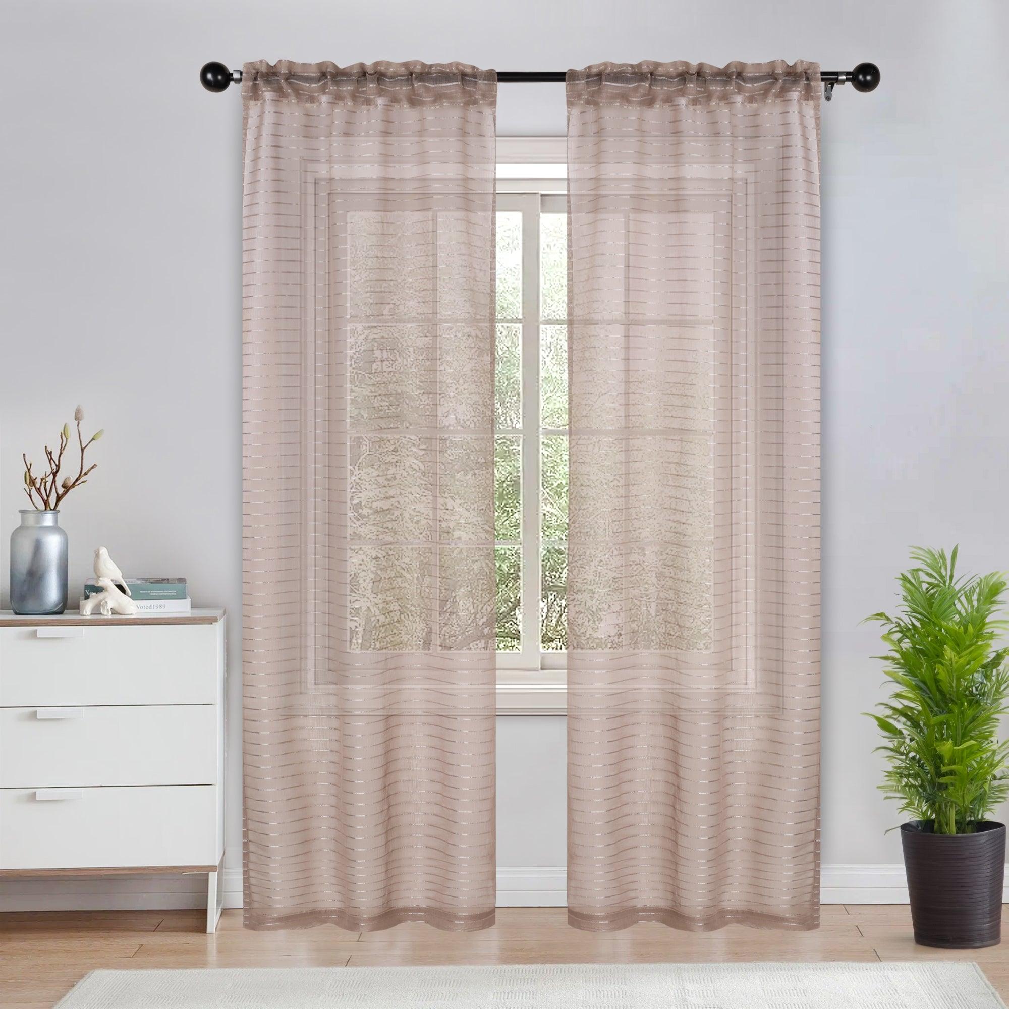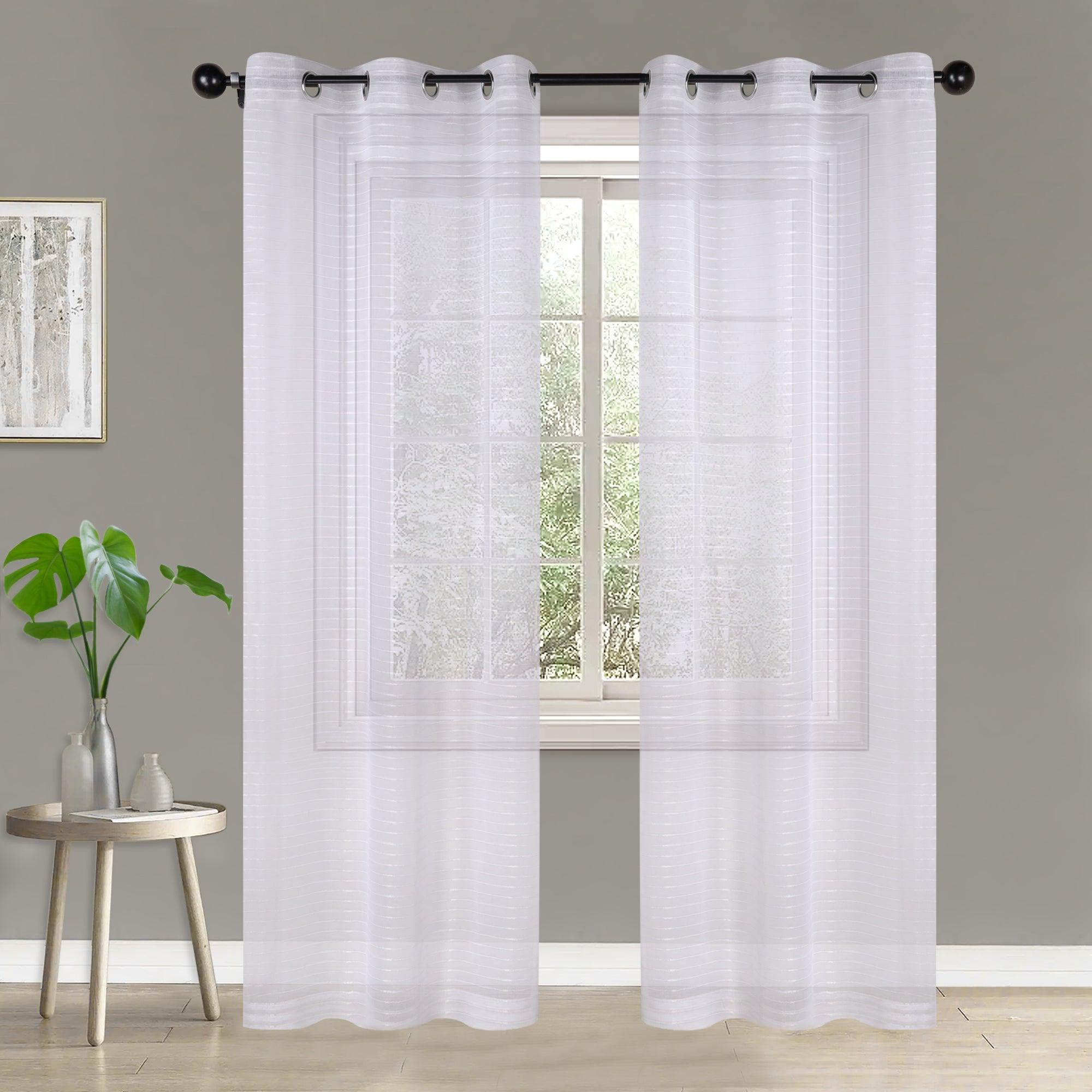 Jackson Striped Sheer Window Curtain Panels, Set of 2