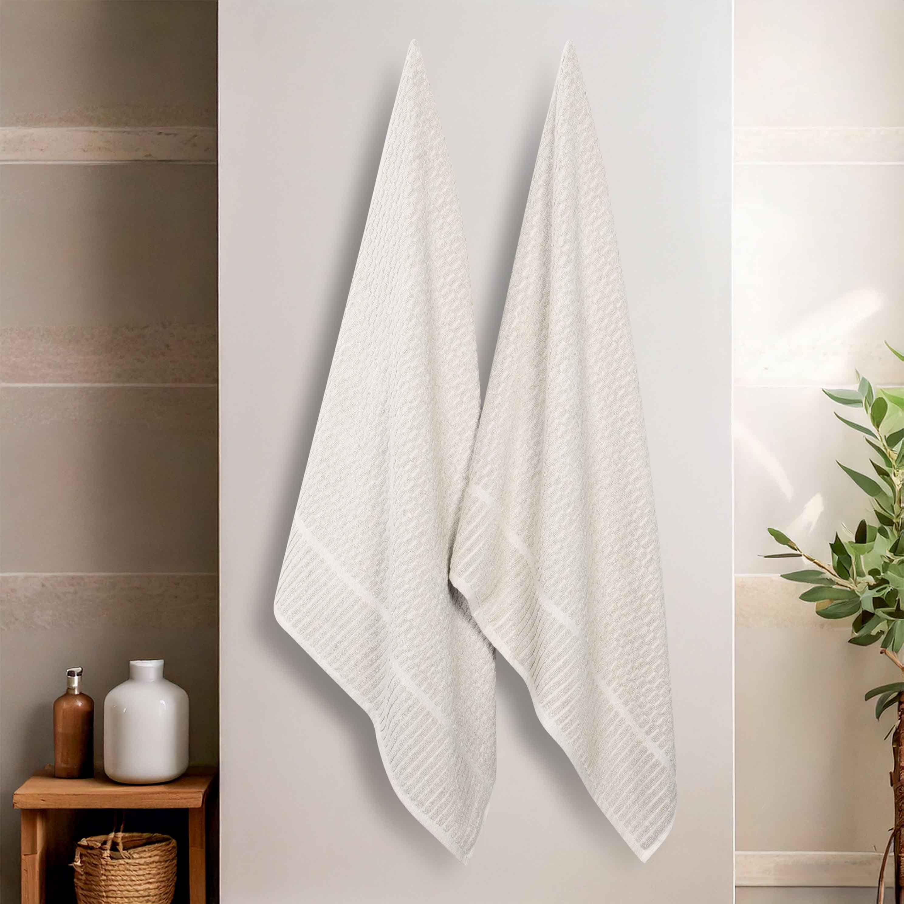 Embrace the ultimate in bathtime luxury with our meticulously crafted Juno Cotton Blend Textured Checkered Ribbed Border Bath Sheets. Featuring a distinctive two-toned checkered pattern and elegant ribbed border, these towels are a testament to sophisticated design and superior quality. These oversized towels are exceptionally absorbent but also remarkably quick-drying, ensuring a refreshingly luxurious experience every time you step out of the shower or bath. The viscose fibers lend a luminous quality to the vibrant colors, adding a touch of visual delight to your bathroom sanctuary. Made from a premium blend of cotton and viscose, they offer unparalleled softness and absorbency.