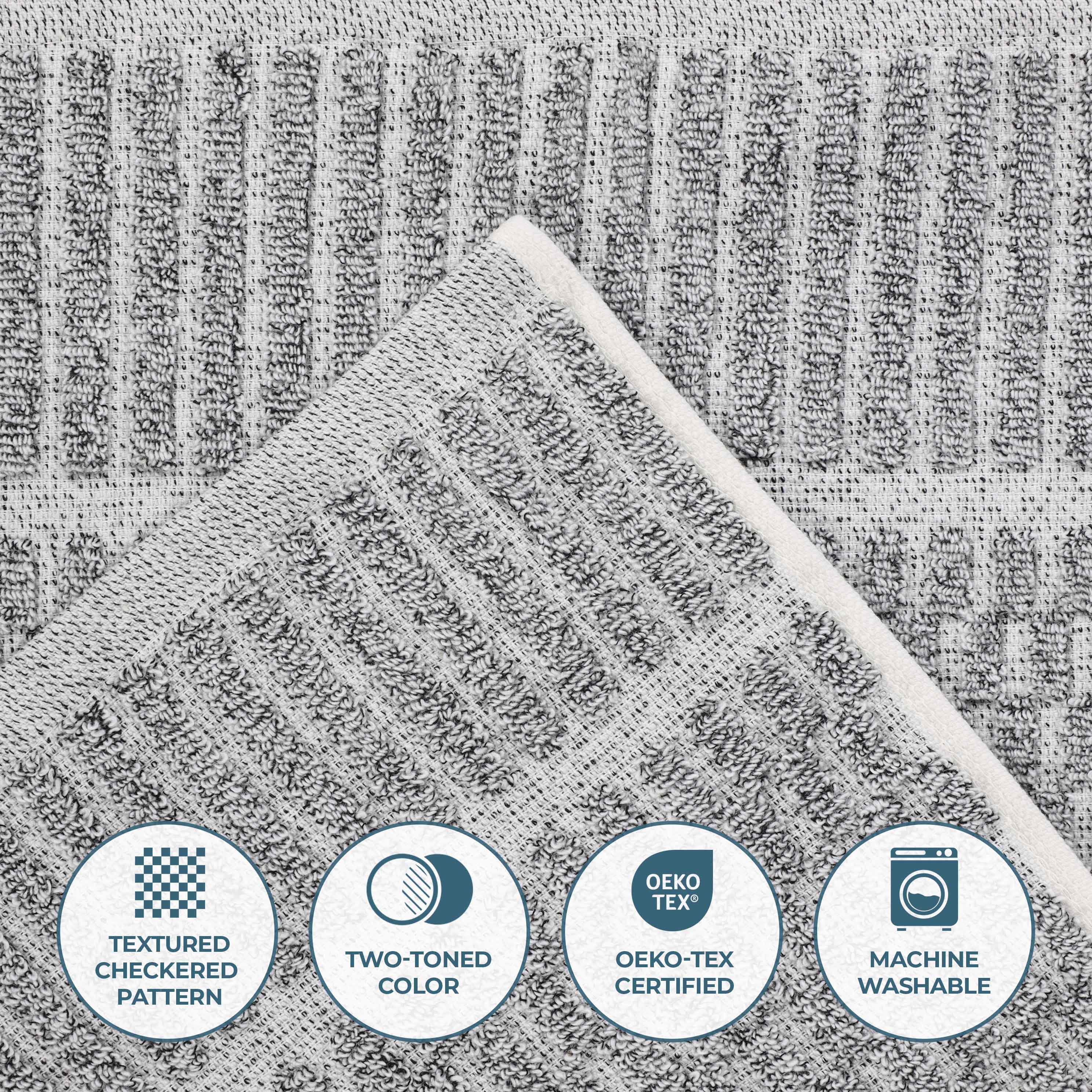 Discover the art of bathtime indulgence with our exquisitely crafted Juno Cotton Blend Textured Checkered Ribbed Border Hand Towels. Woven from a premium cotton and viscose blend, these towels offer exceptional absorbency and a luxuriously soft feel, ensuring a refreshingly luxurious experience every time you wash your hands. The viscose fibers lend a luminous quality to the vibrant colors, adding a touch of visual delight to your bathroom sanctuary. The subtle checkered pattern and ribbed border add a touch of timeless elegance to your bathroom or kitchen decor.