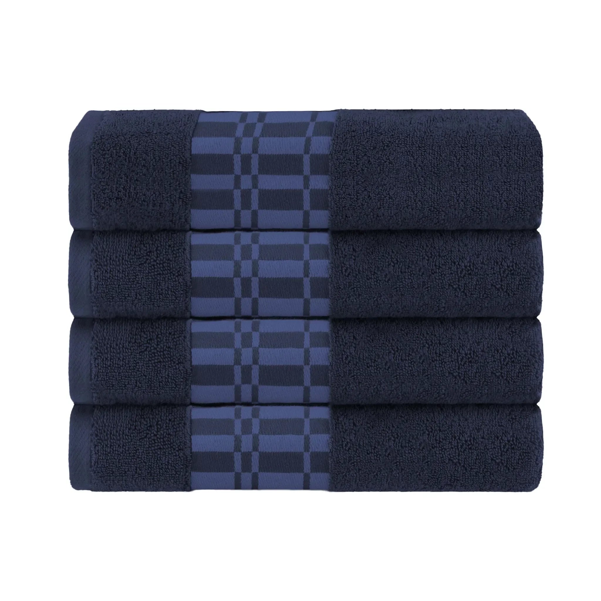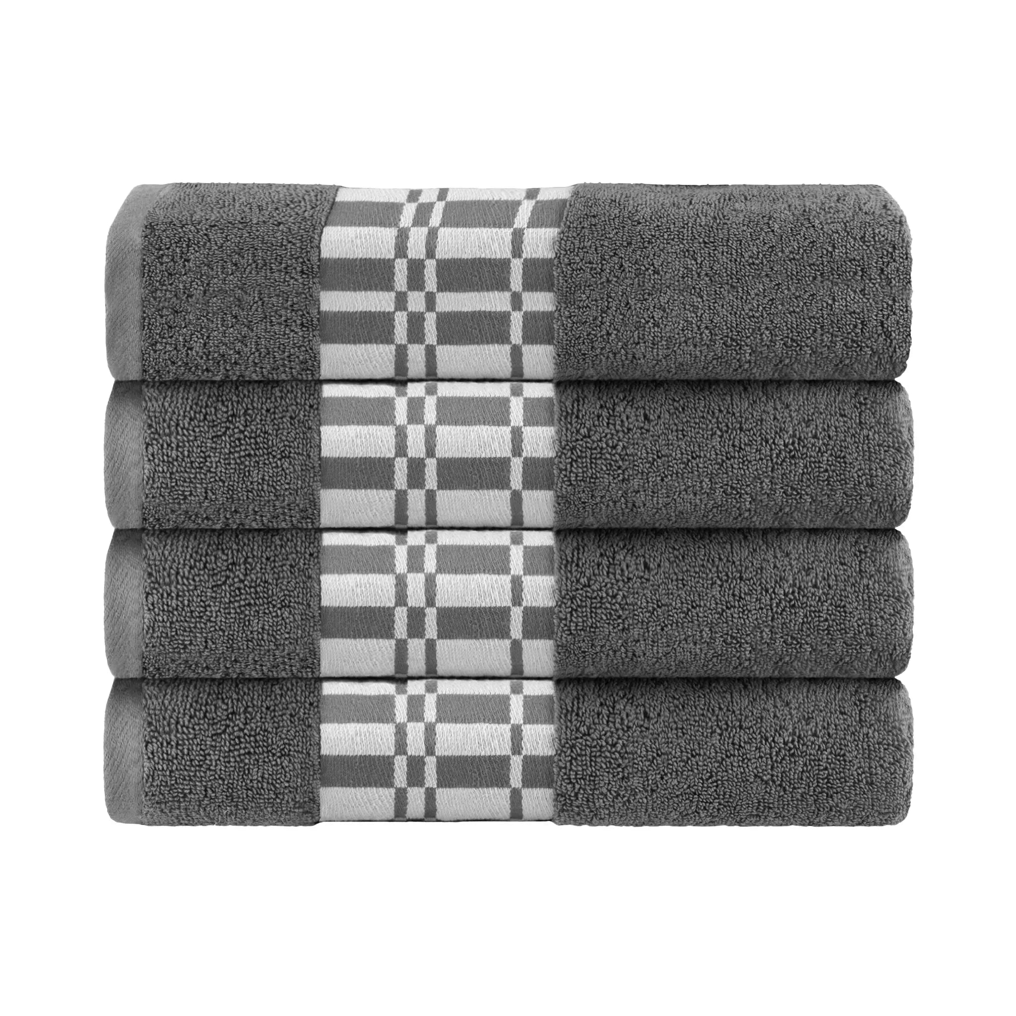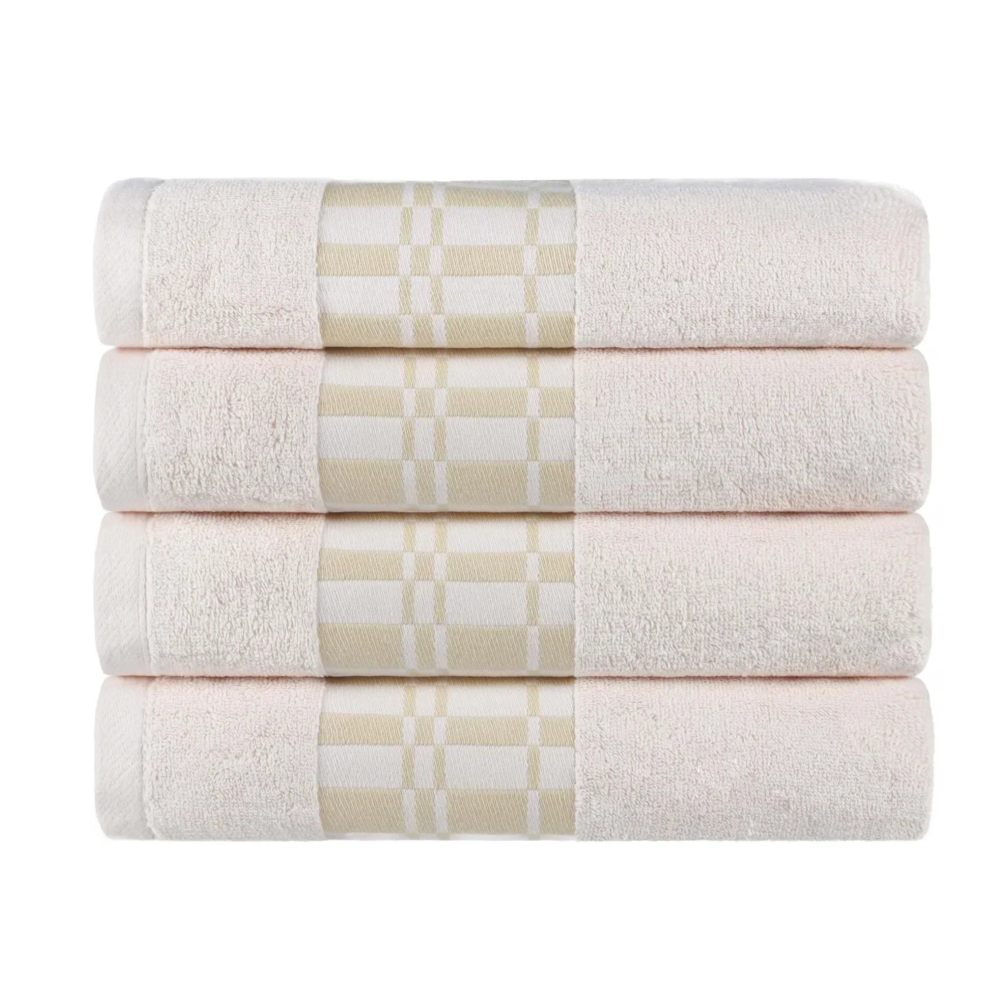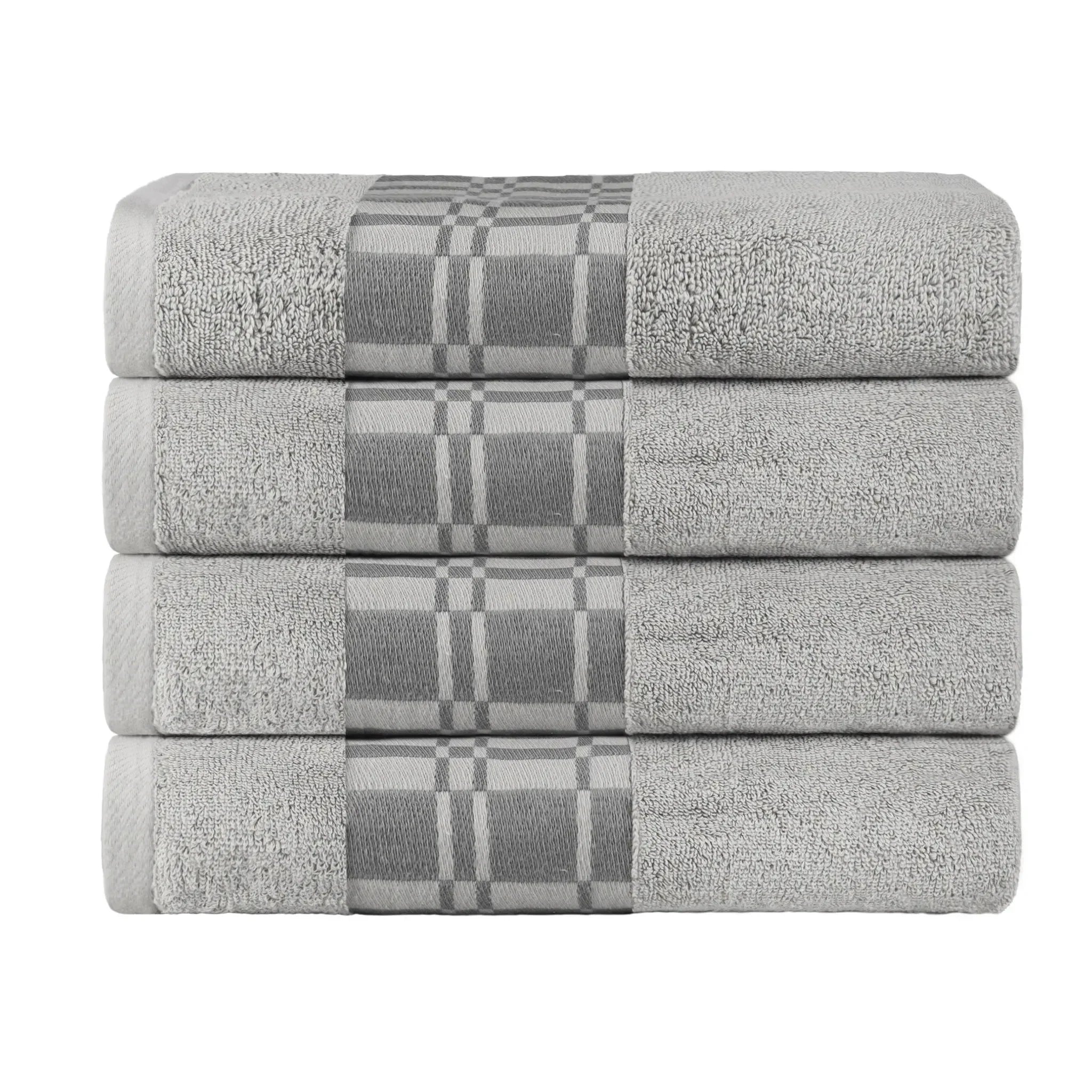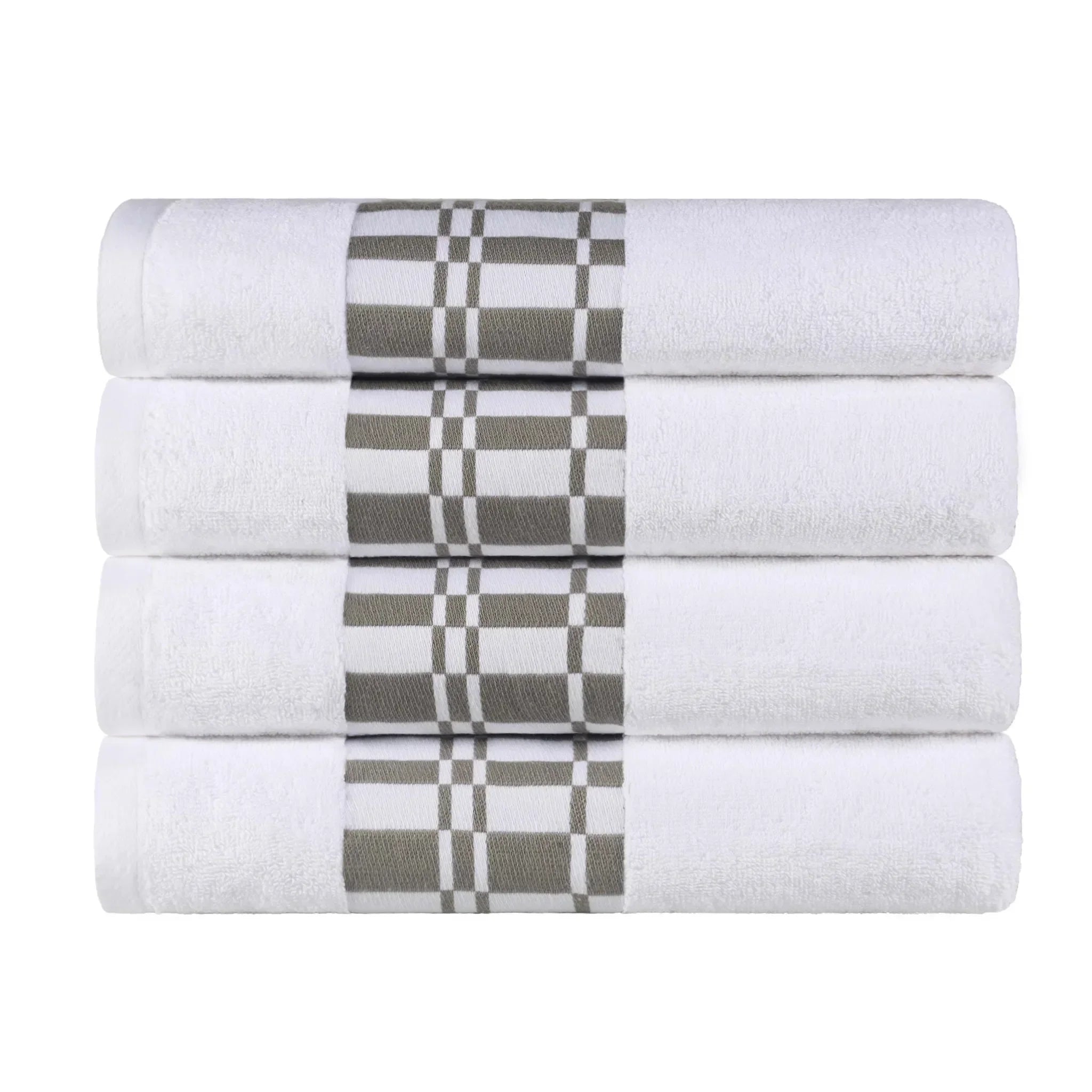 Luxurious and modern, our Larissa Cotton 4 Piece Bath Towel Set brings beauty and exceptional softness to your contemporary bathroom. This classy towel set comes with two bath towels, two hand towels, and two face towels with an elegant geometric border that adds a fashionable style to your home. Made from ultra-soft cotton fibers, this set is highly-absorbent and smooth on the skin. Featuring a hanging loop for convenient drying, this bundle will pair perfectly with any traditional, modern or transitional decor styles.