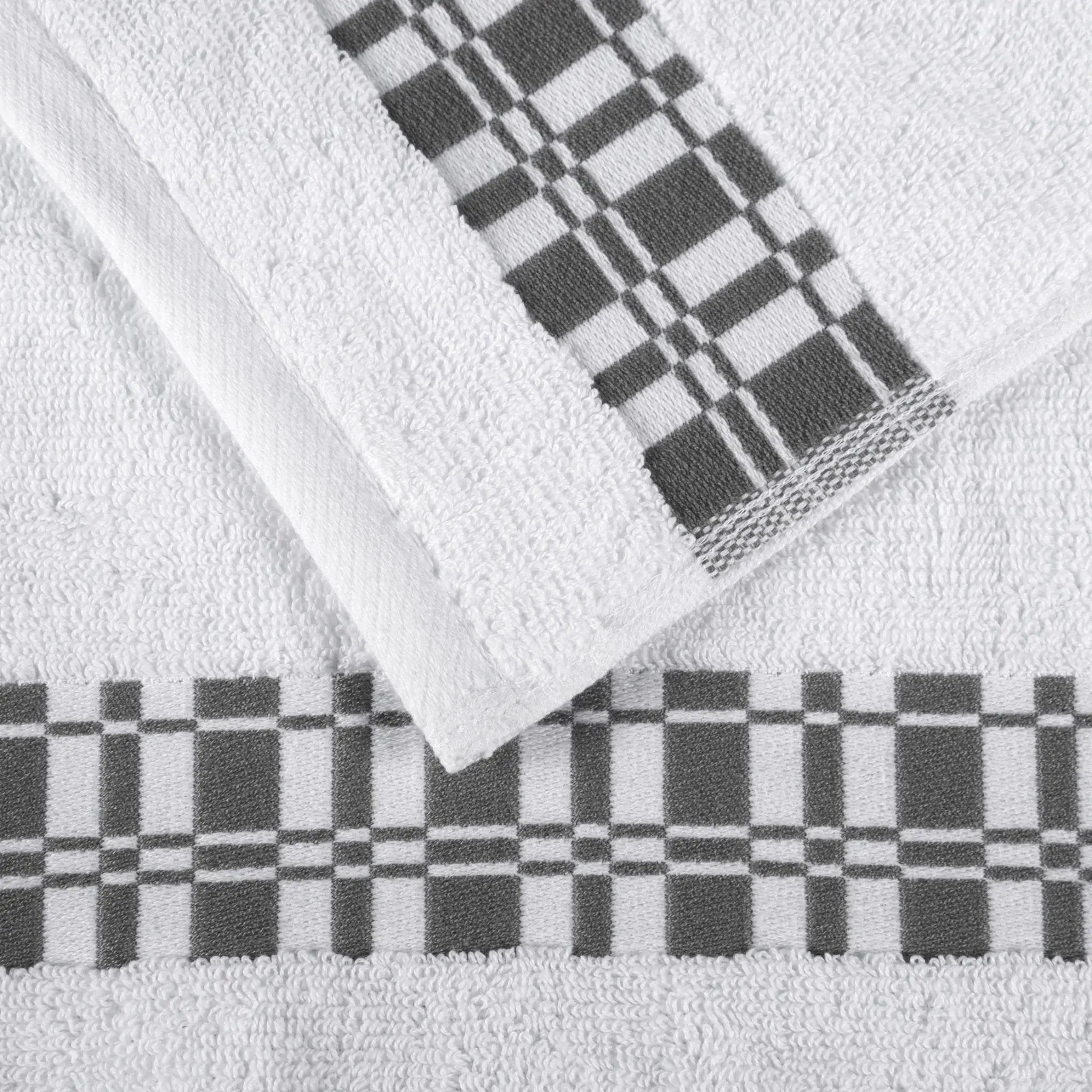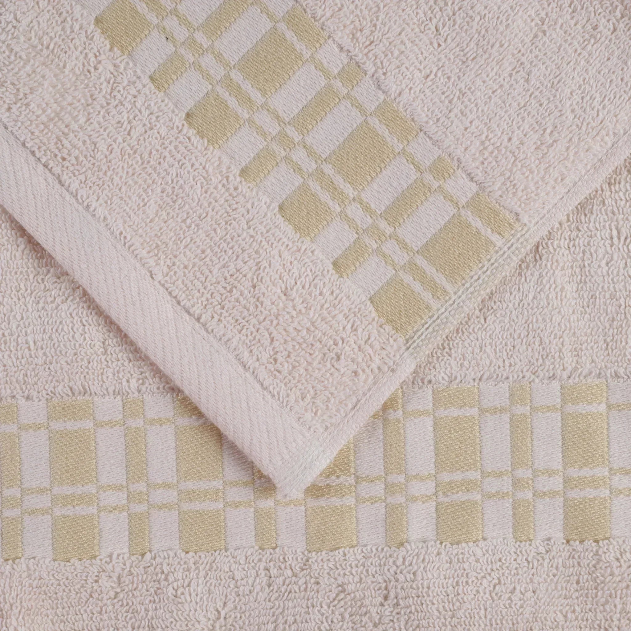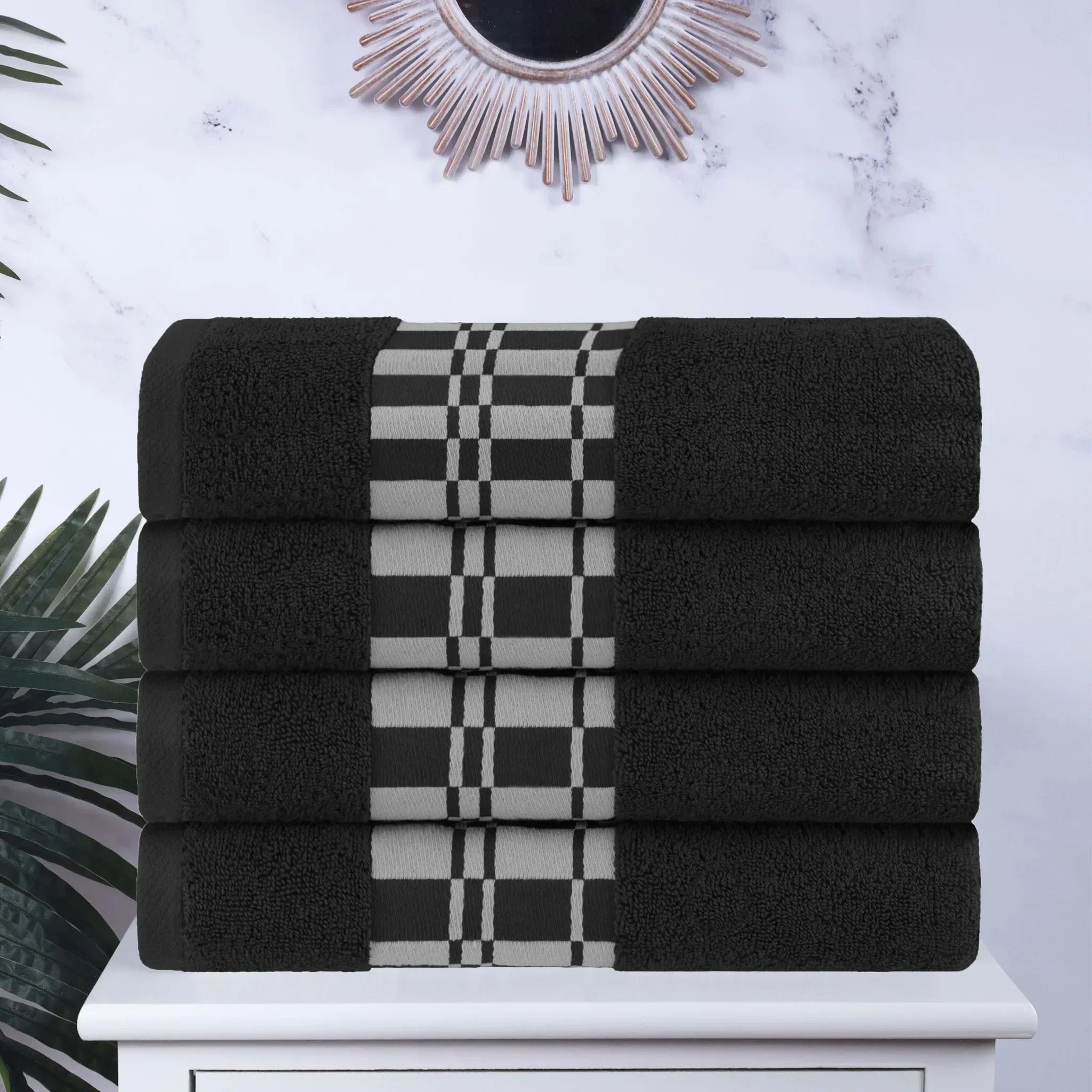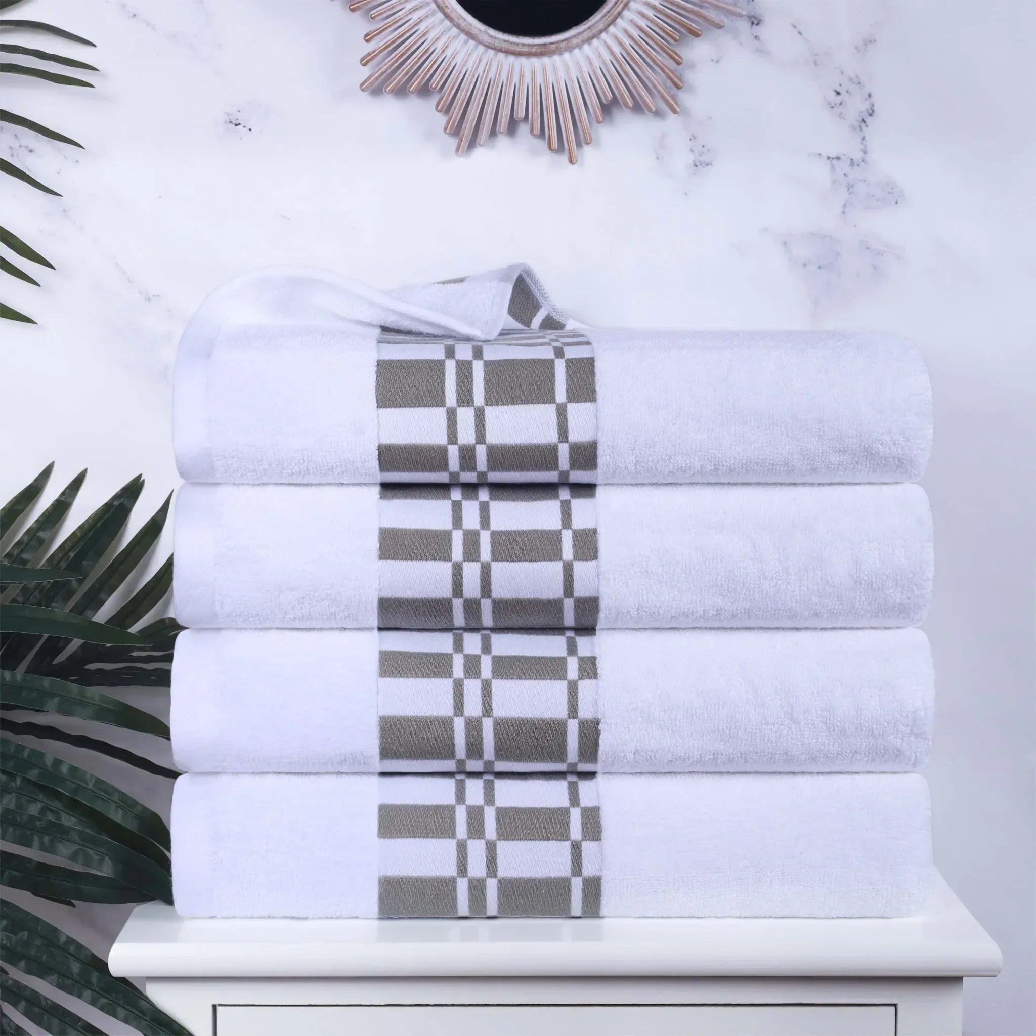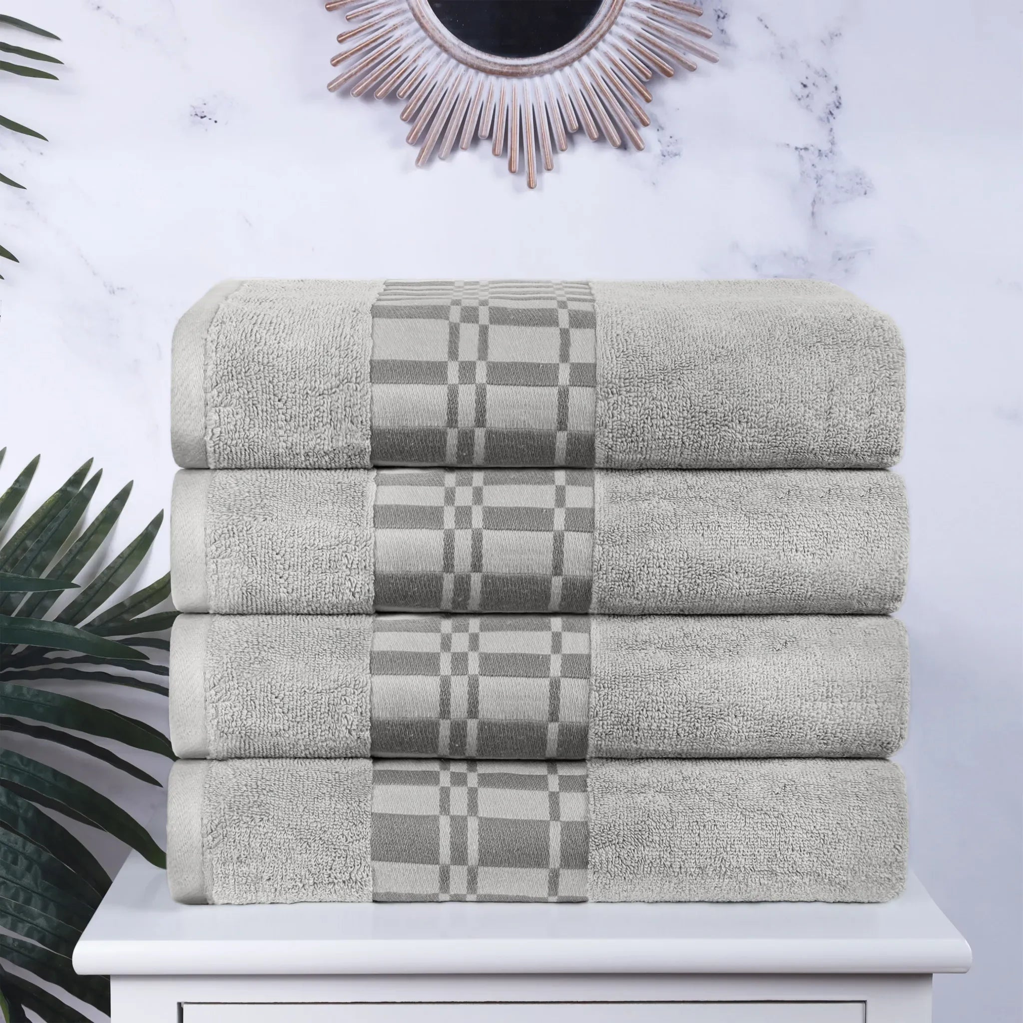 Luxurious and modern, our Larissa Cotton 4 Piece Bath Towel Set brings beauty and exceptional softness to your contemporary bathroom. This classy towel set comes with two bath towels, two hand towels, and two face towels with an elegant geometric border that adds a fashionable style to your home. Made from ultra-soft cotton fibers, this set is highly-absorbent and smooth on the skin. Featuring a hanging loop for convenient drying, this bundle will pair perfectly with any traditional, modern or transitional decor styles.