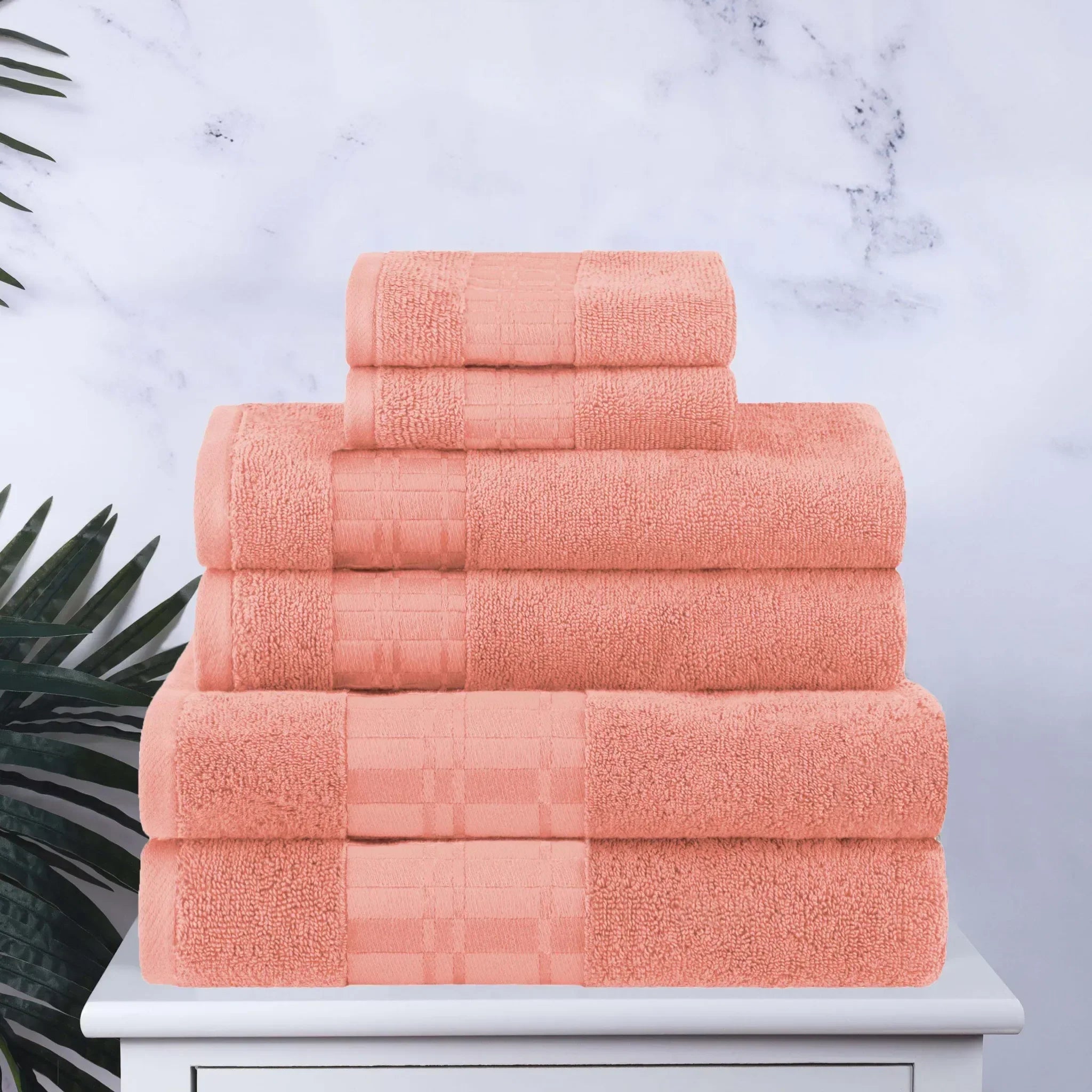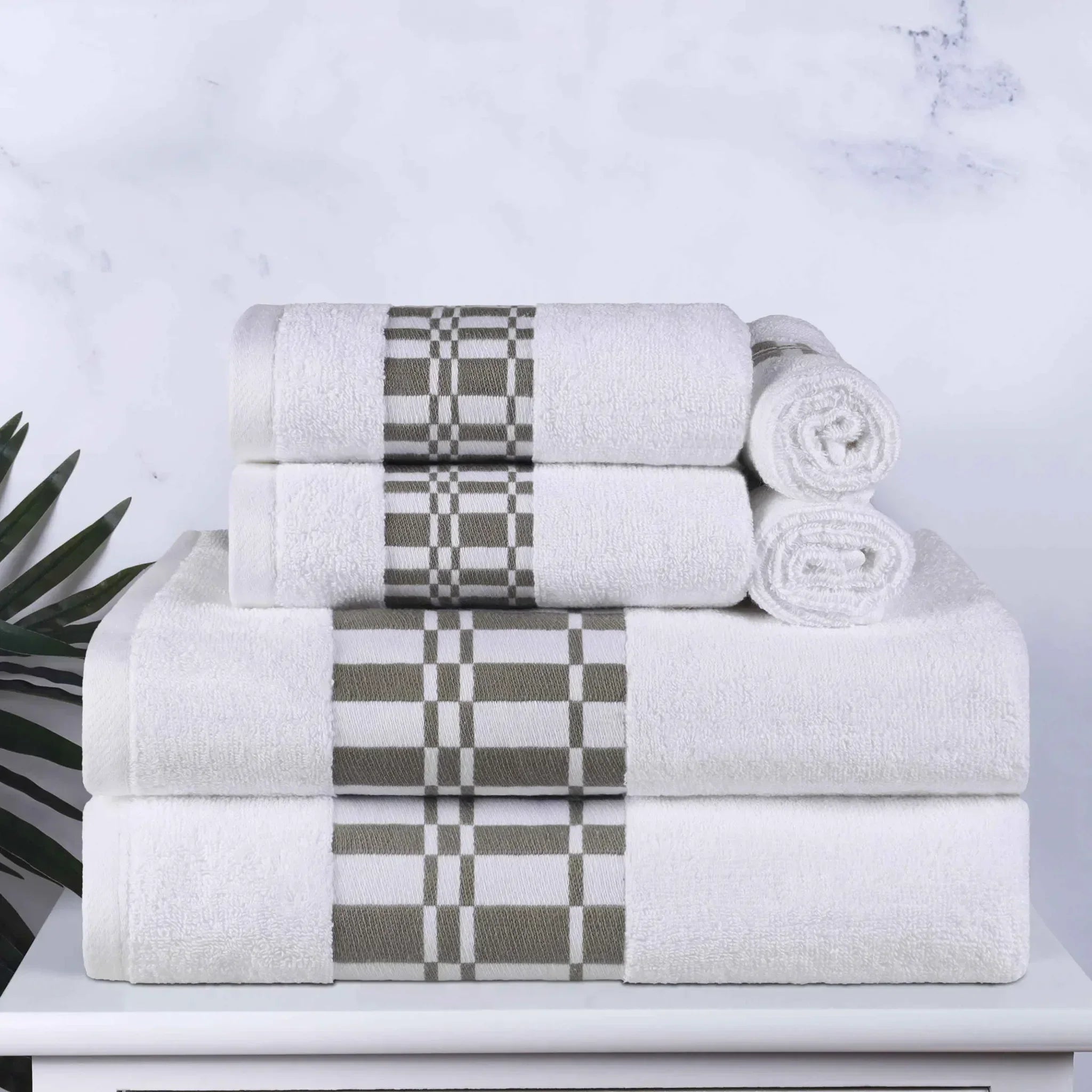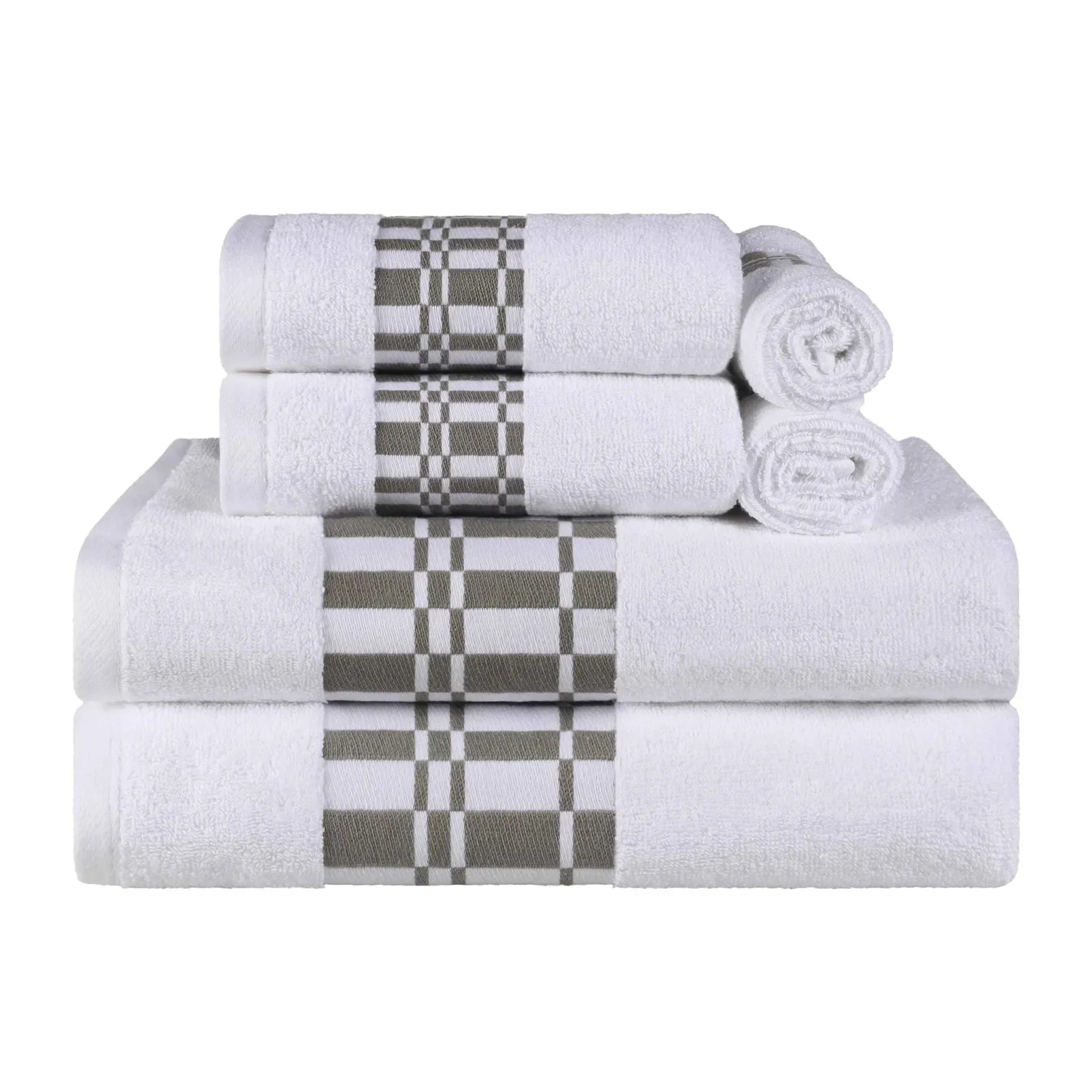Luxurious and modern, our Larissa Cotton 6-Piece Assorted Towel Set brings beauty and exceptional softness to your contemporary bathroom. This classy towel set comes with two bath towels, two hand towels, and two face towels with an elegant geometric border that adds a fashionable style to your home. Made from ultra-soft cotton fibers, this set is highly-absorbent and smooth on the skin. Featuring a hanging loop for convenient drying, this bundle will pair perfectly with any traditional, modern or transitional decor styles.