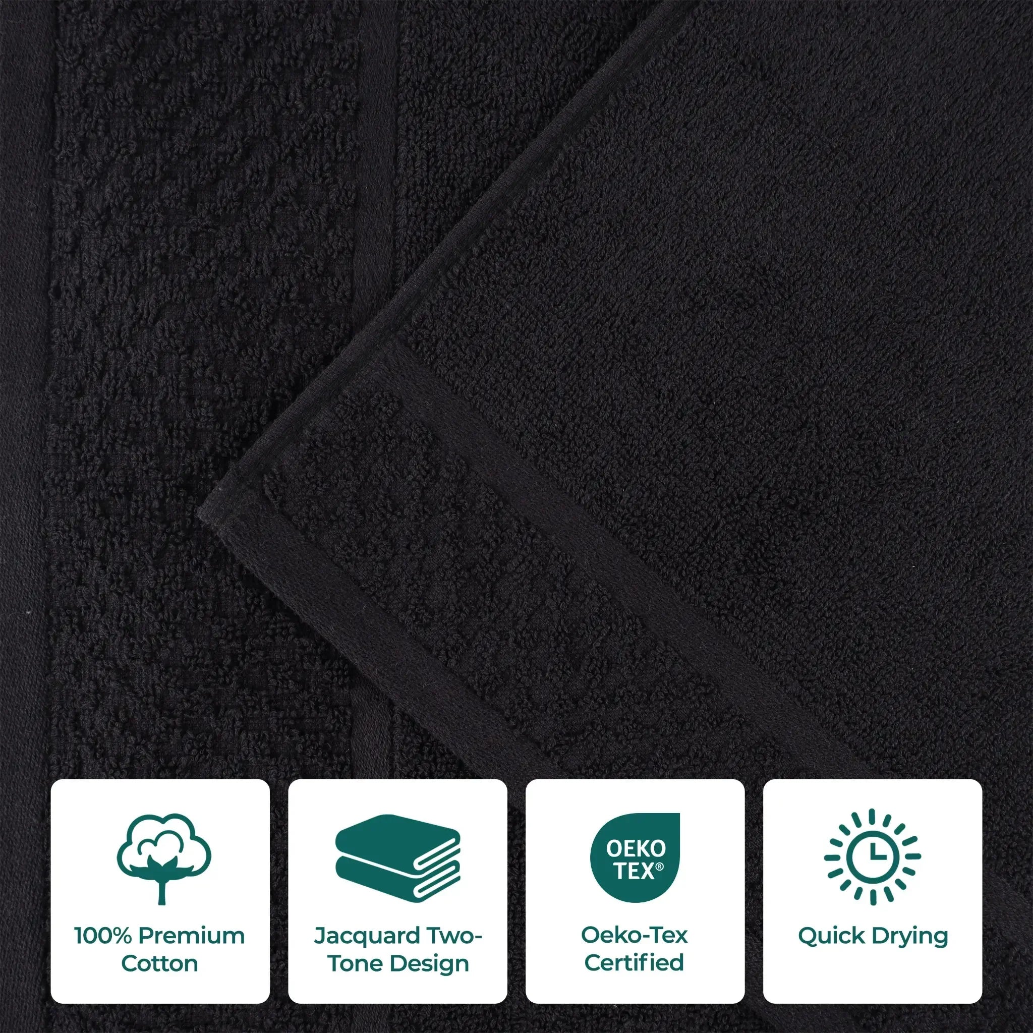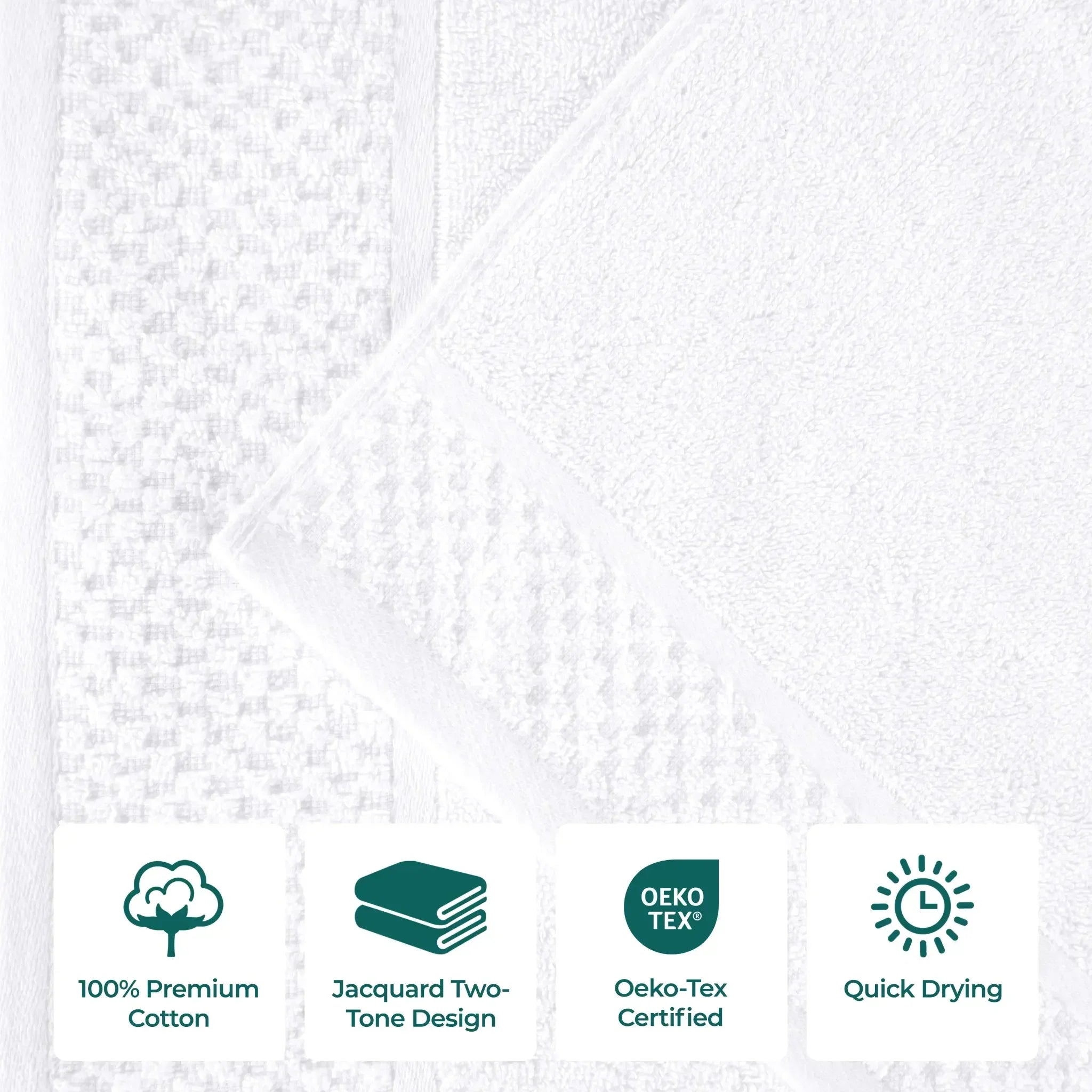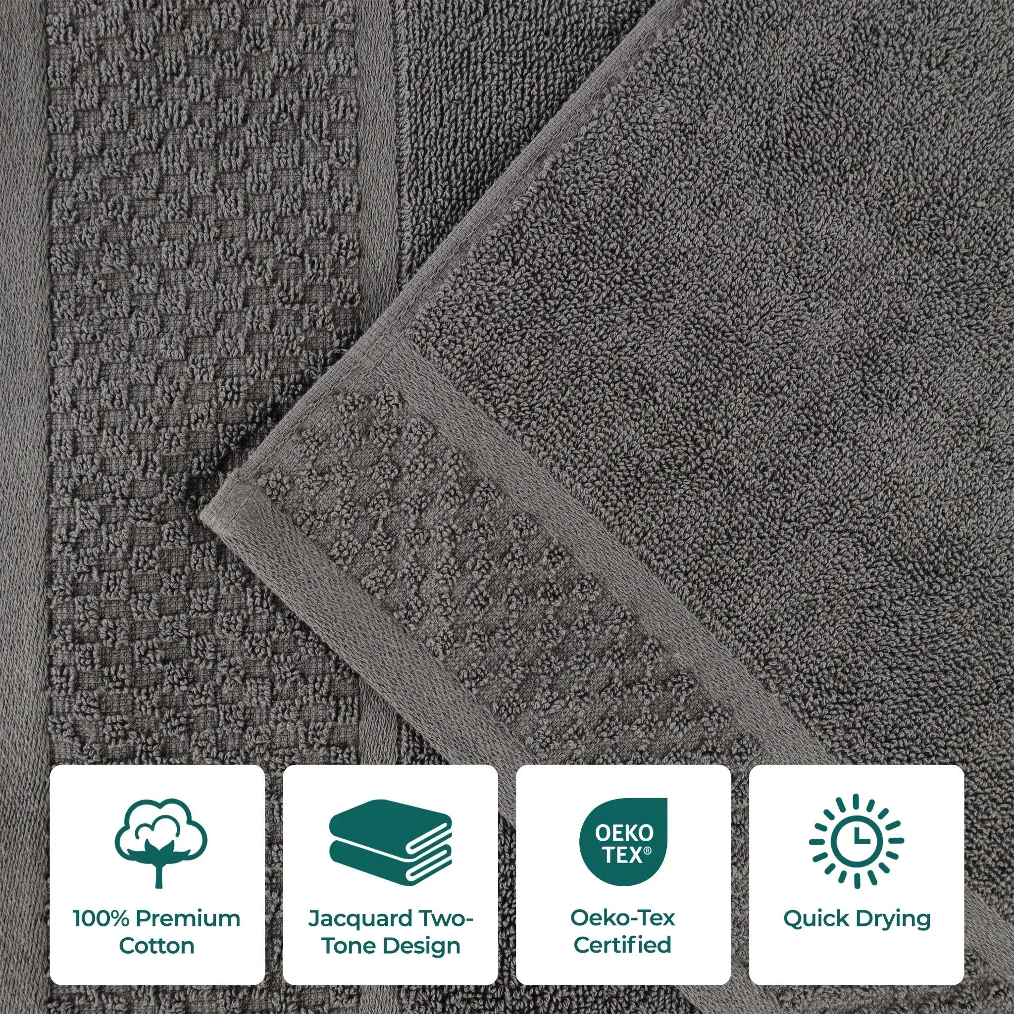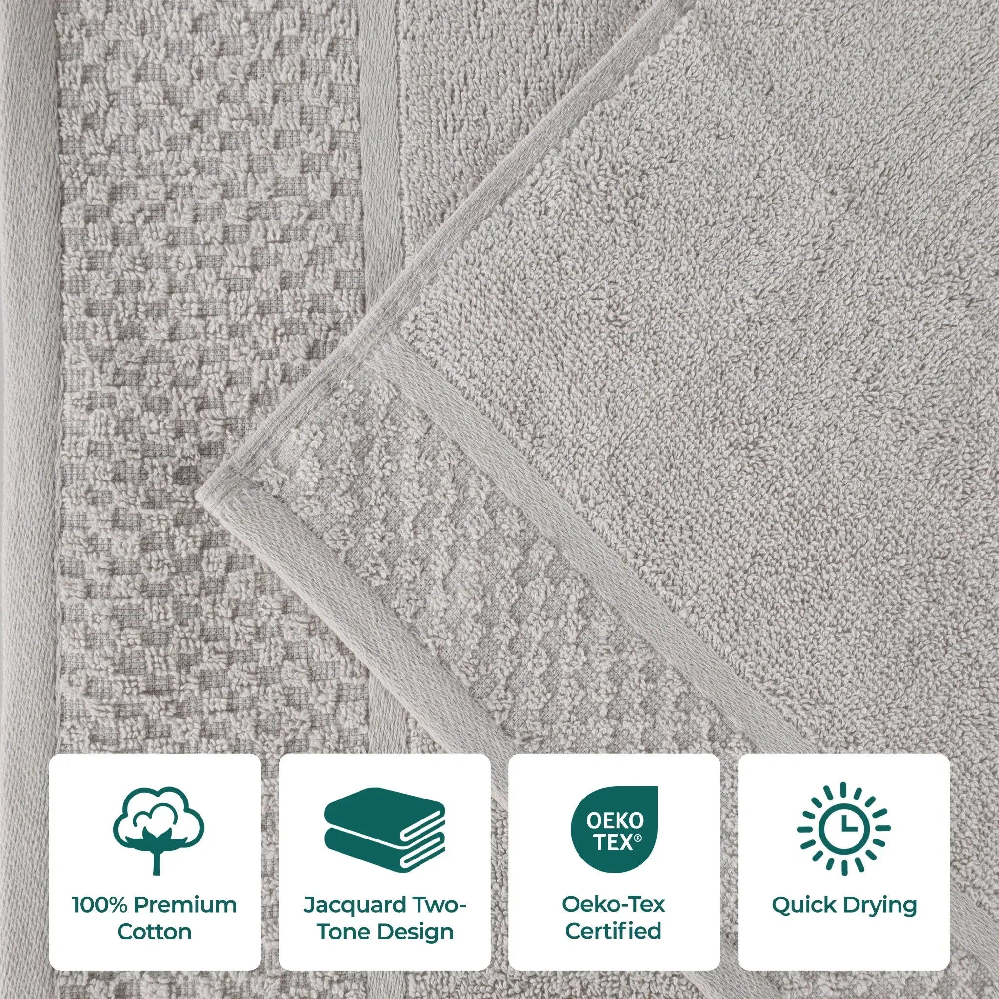 Where luxury meets comfort, the Lodie Cotton Jacquard Solid 3 Piece Towel Set is the perfect addition to your home. These cotton towels are crafted for a soft, absorbent, and luxurious experience. Boasting a yarn dyed, jacquard solid design, bring unique style to your guest or master bathroom with this bundle. Each towel is finished with secure hemmed edges to avoid fraying and a durable single-ply to withstand countless washes. Featuring a hanging loop on each piece, enjoy both convenience and comfort with this versatile set.