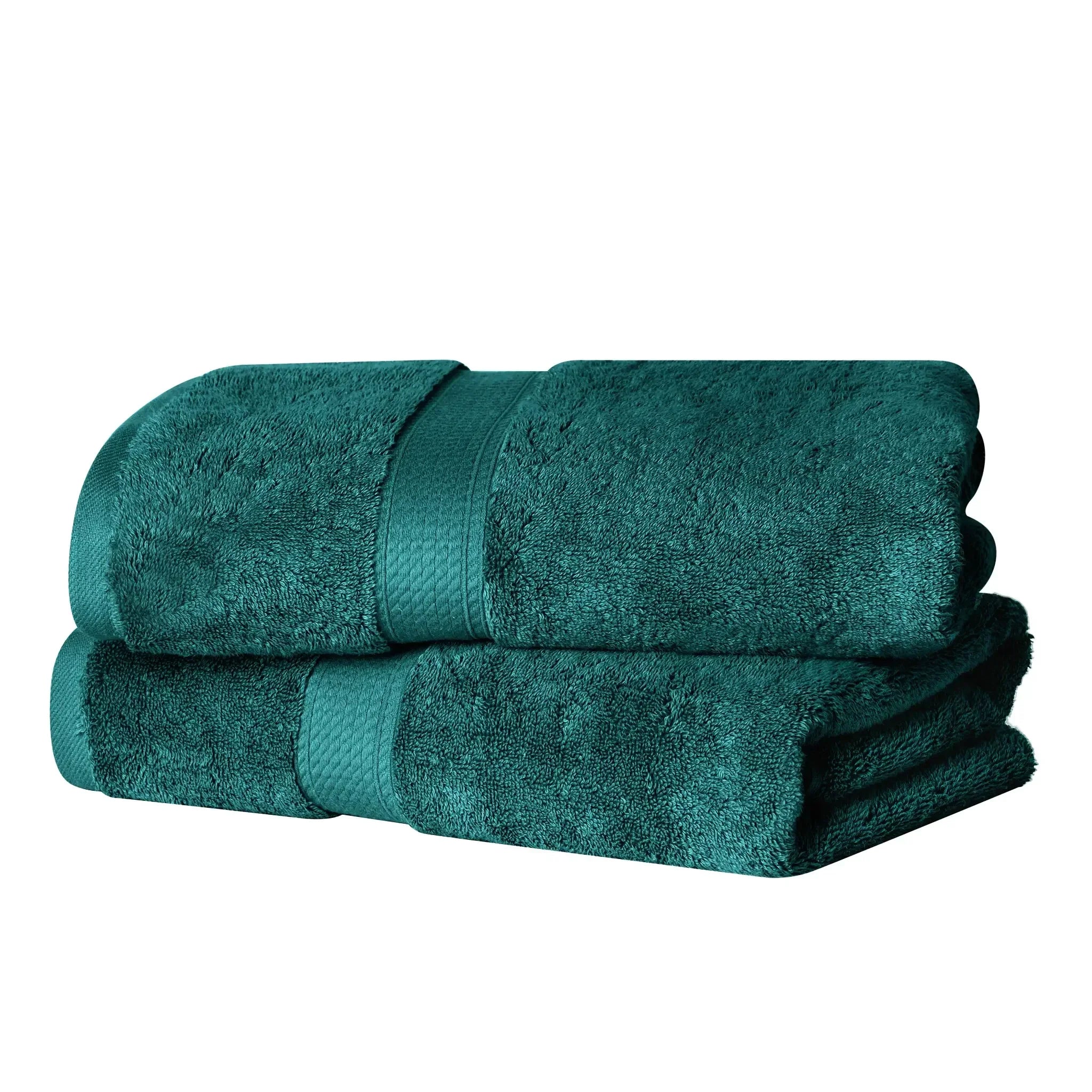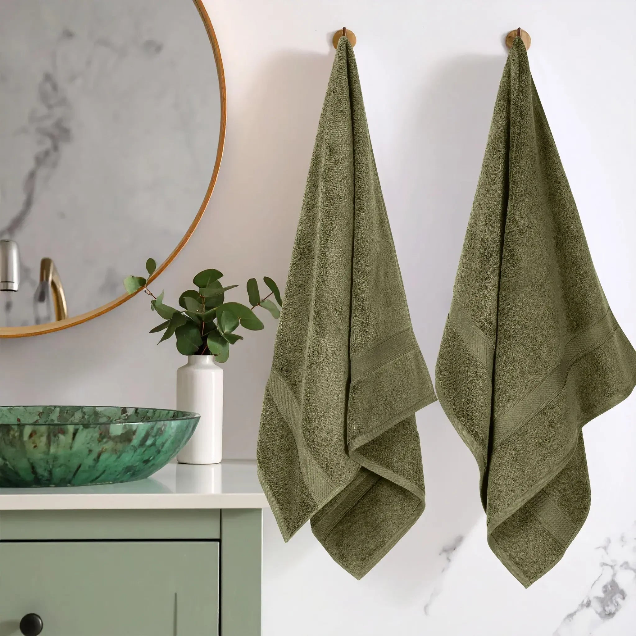 Featuring a sleek, solid design with a braided border, each towel is woven from rich Egyptian cotton fibers. The heavyweight construction makes them ideal for frequent use and lasting comfort.
