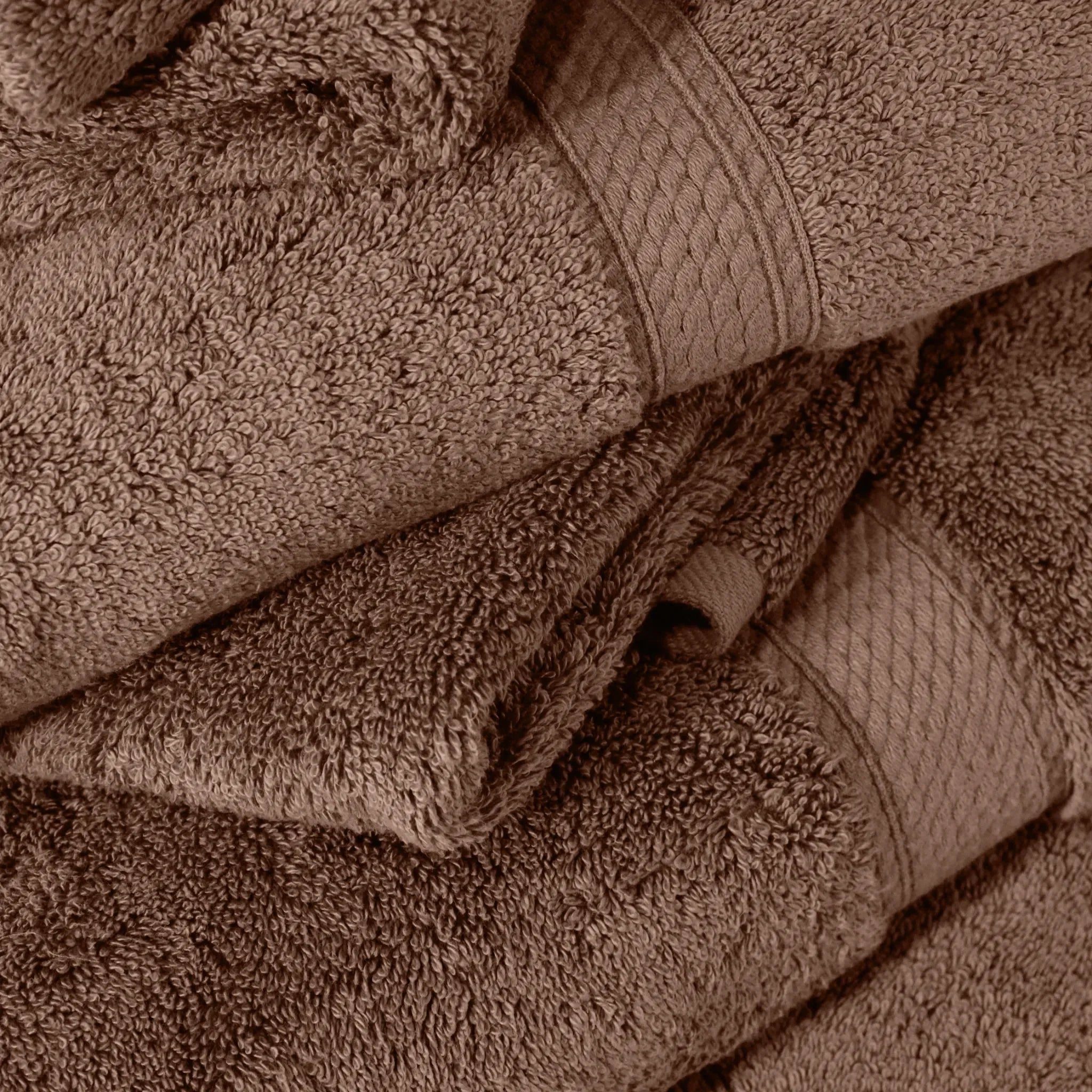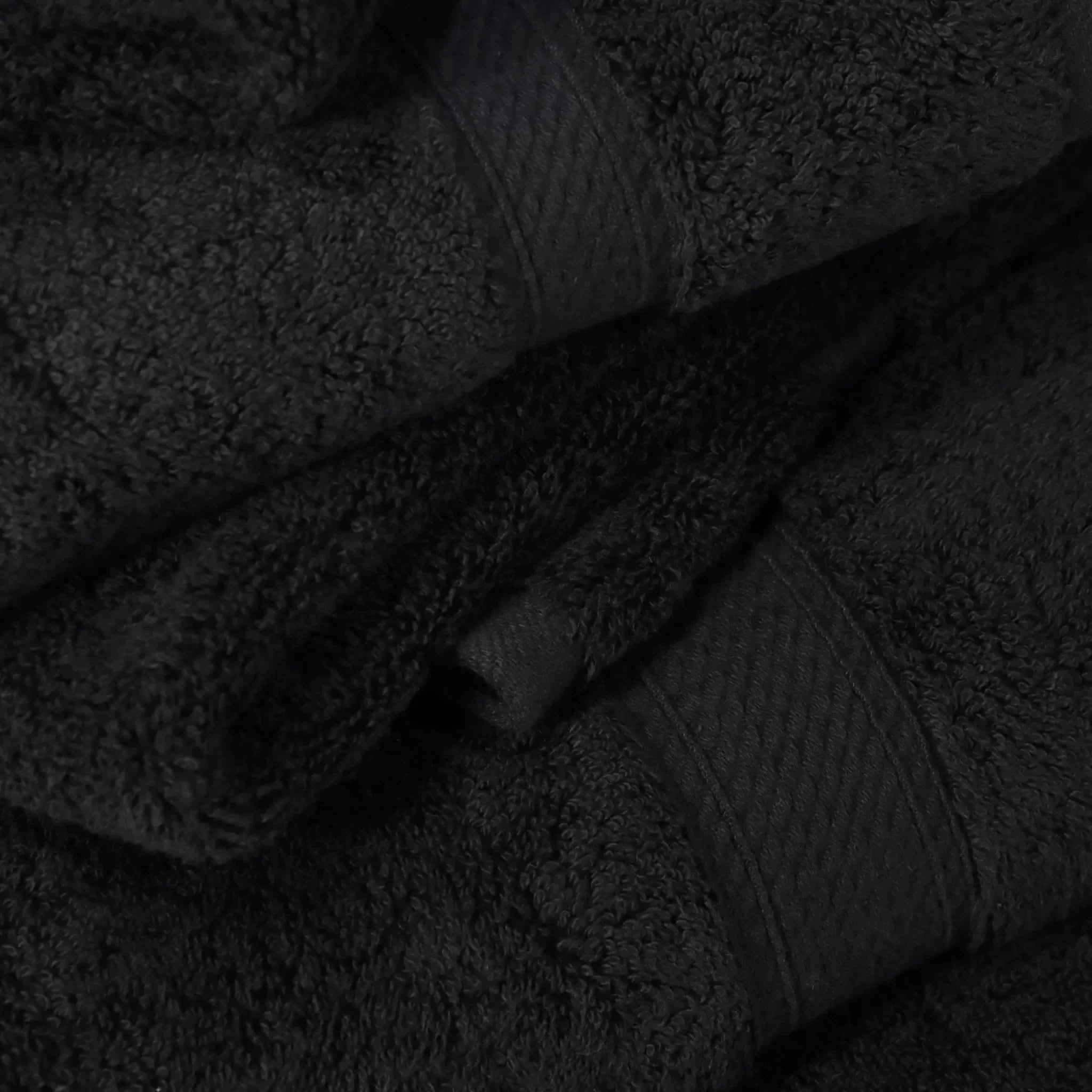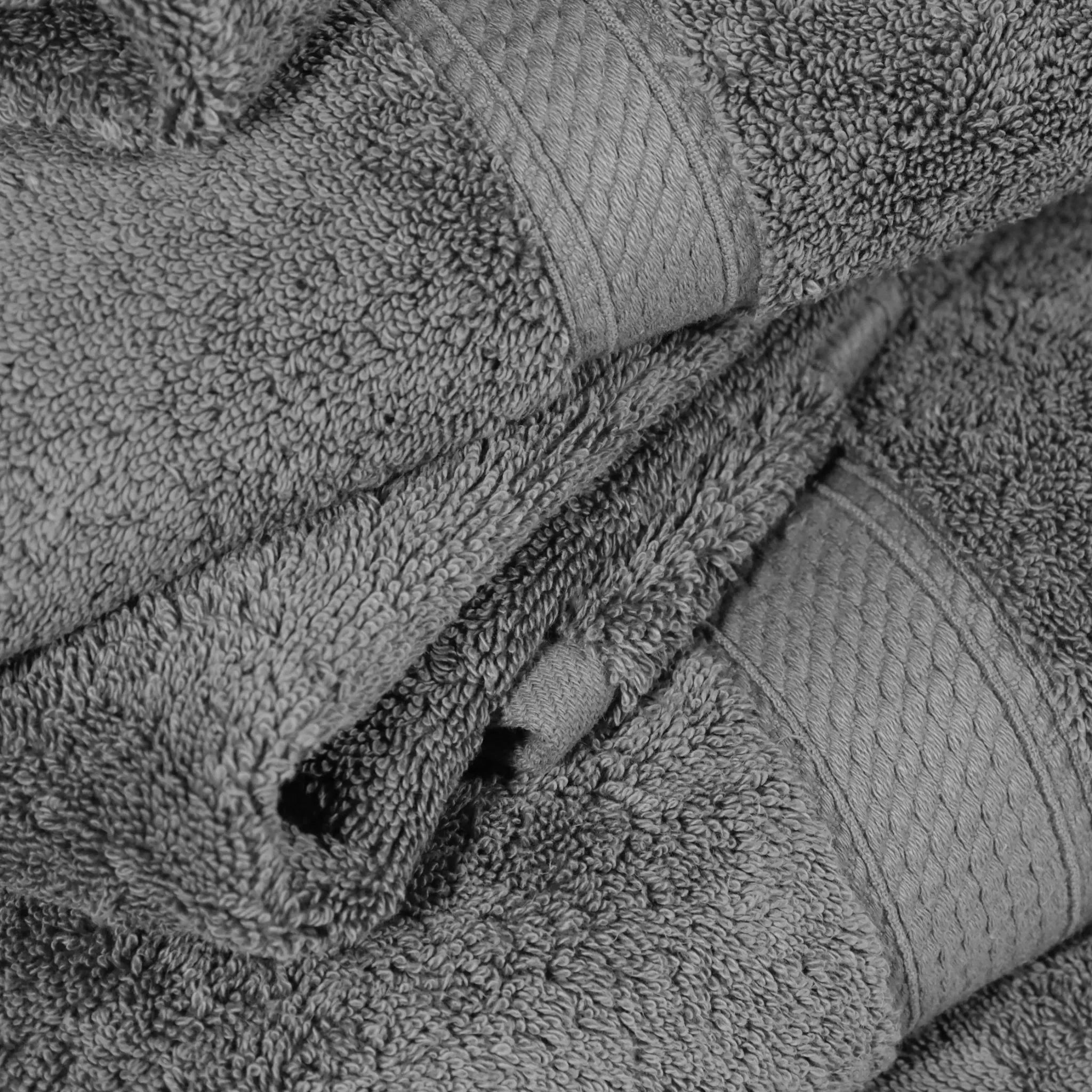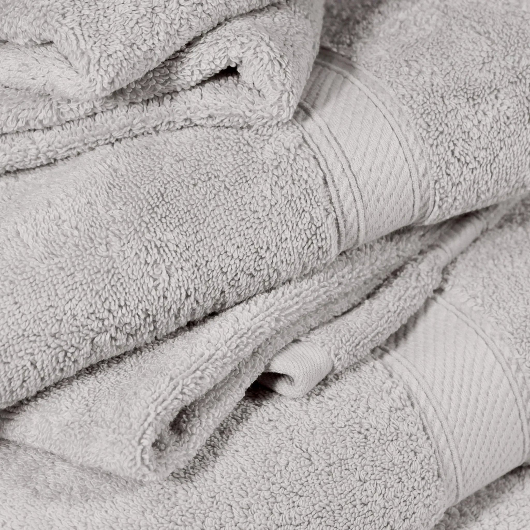 Crafted from densely woven Egyptian cotton, the luxury towel set delivers both strength and softness. The rich, textured finish and sleek solid design with a braided border make them an elegant addition to any bathroom, providing a hotel-quality feel at home.