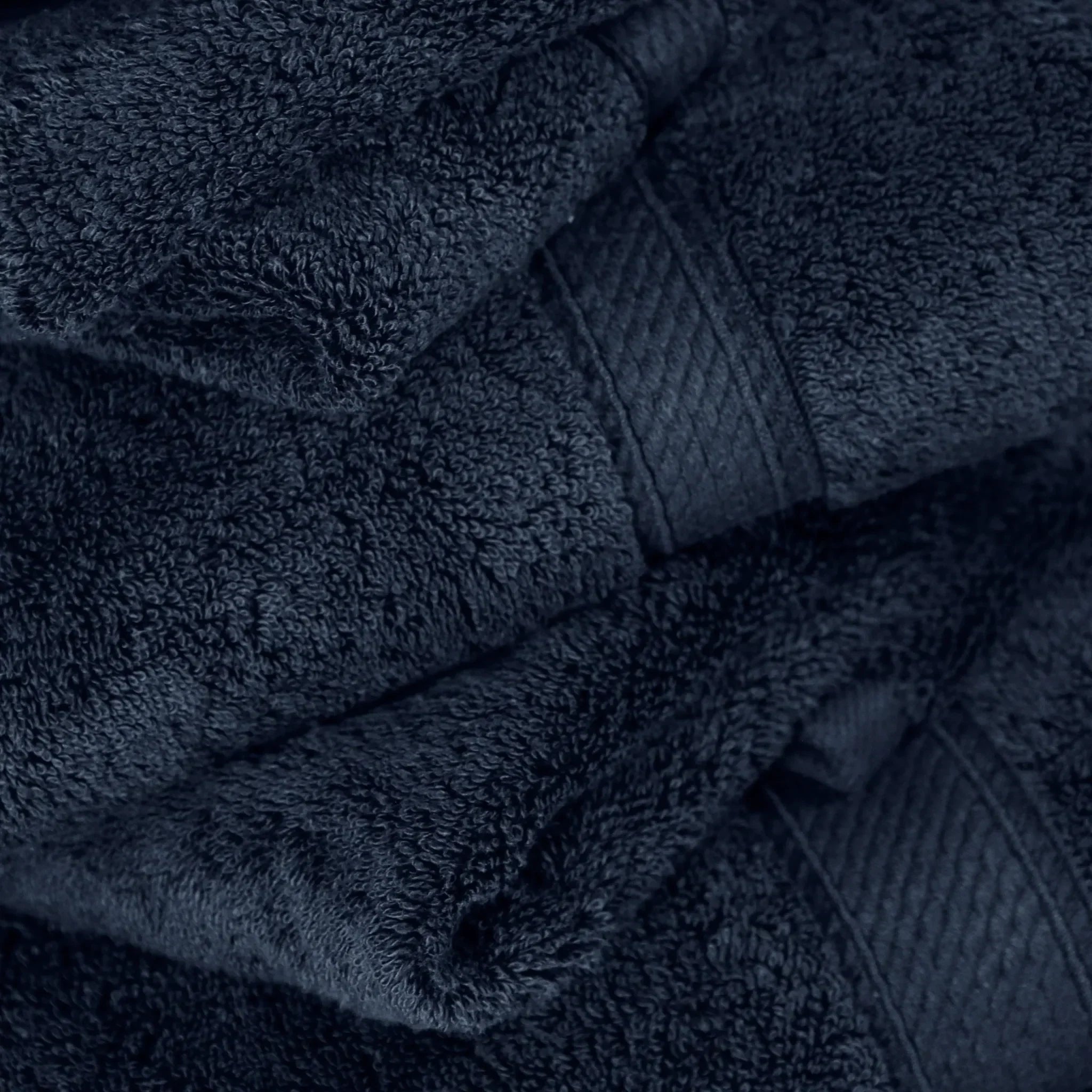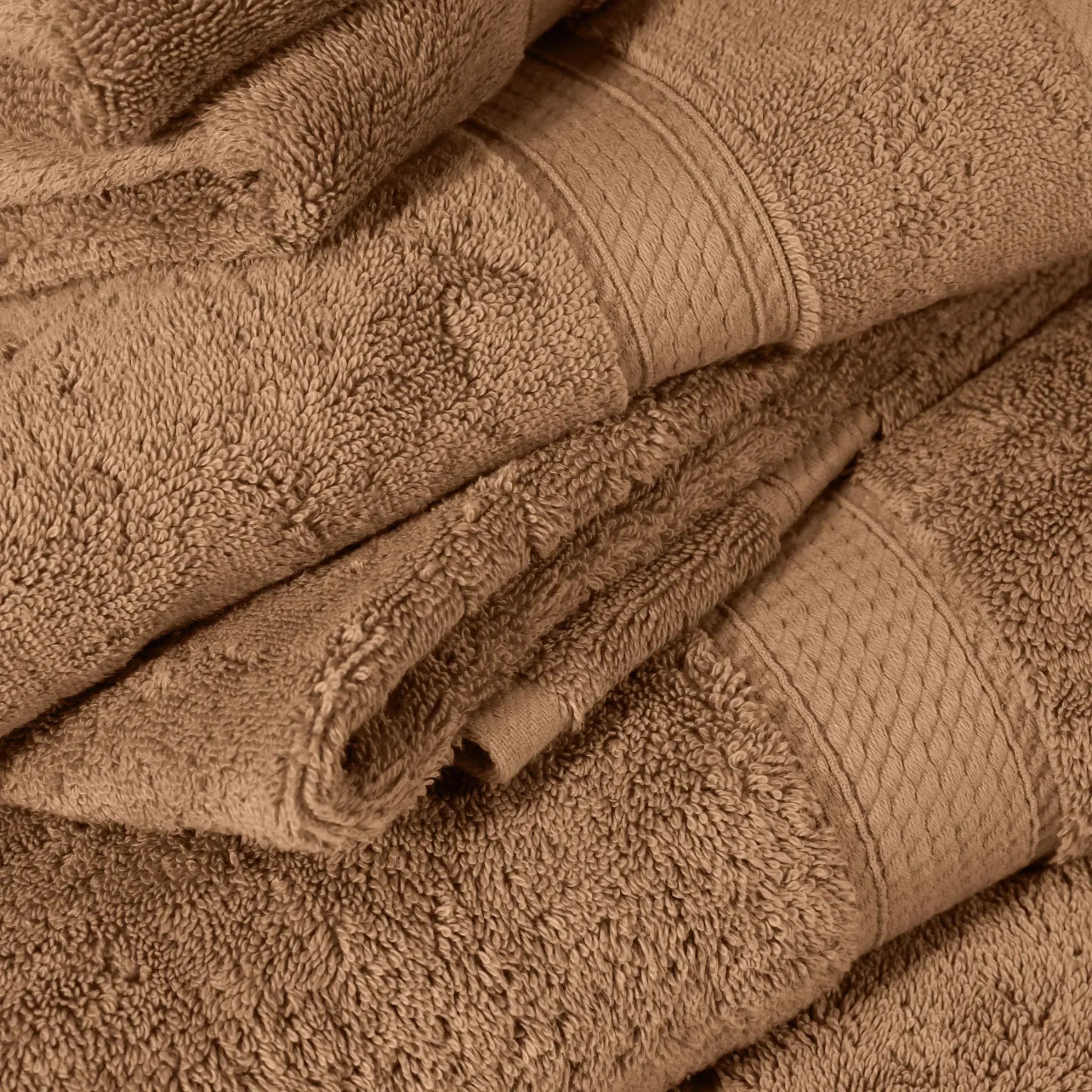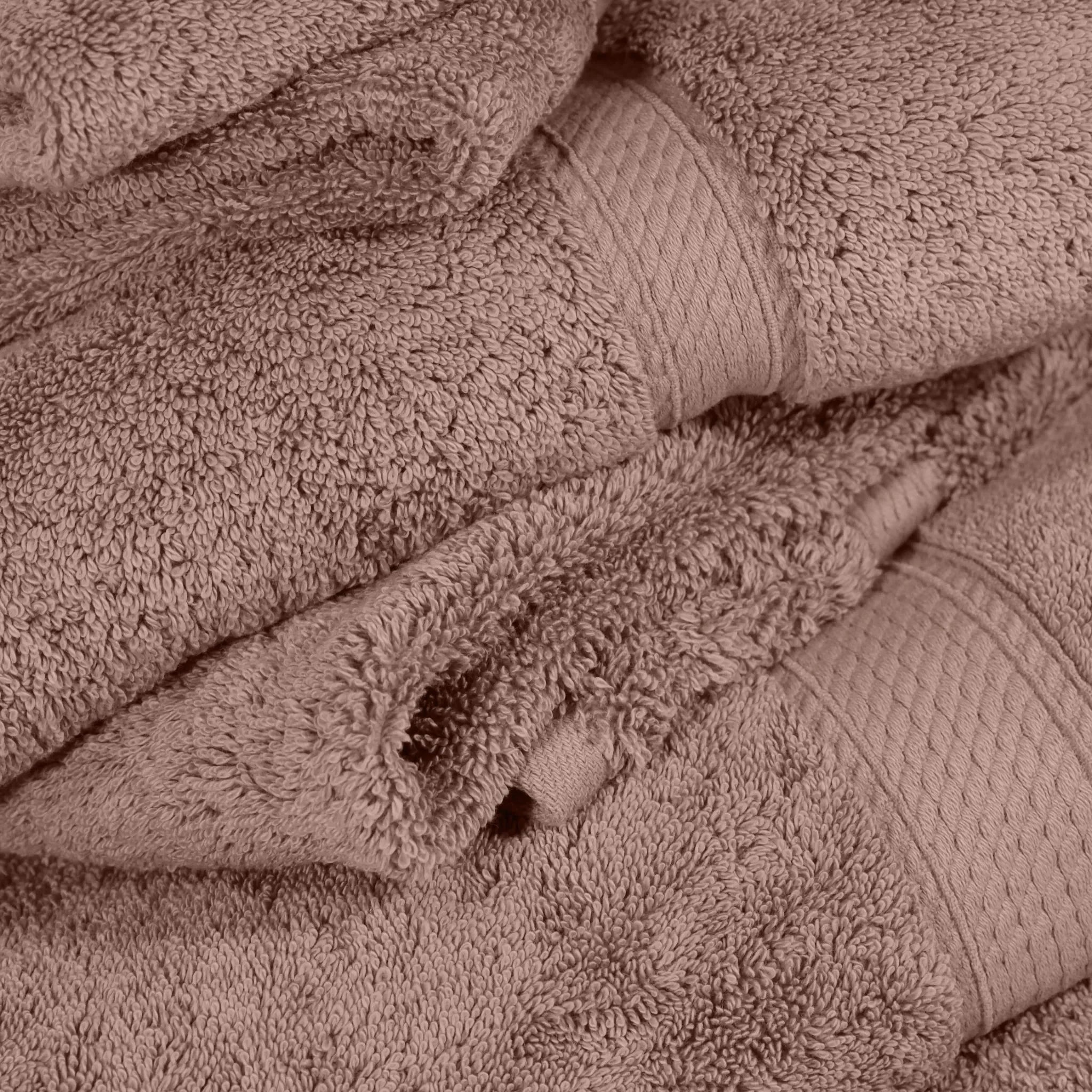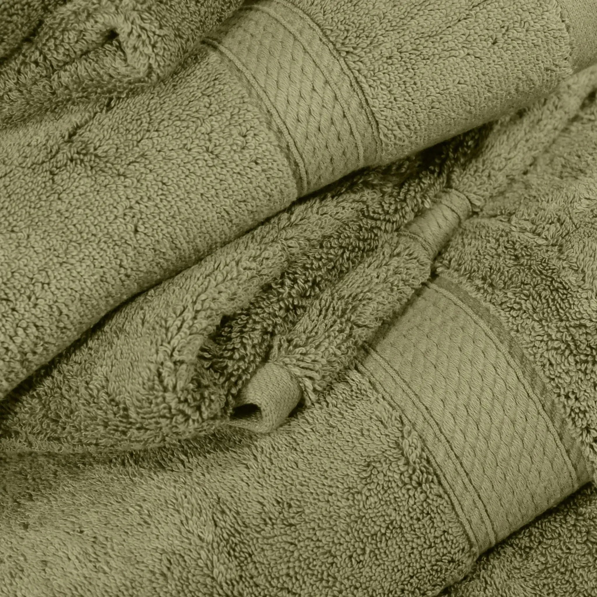 Crafted from densely woven Egyptian cotton, the luxury towel set delivers both strength and softness. The rich, textured finish and sleek solid design with a braided border make them an elegant addition to any bathroom, providing a hotel-quality feel at home.