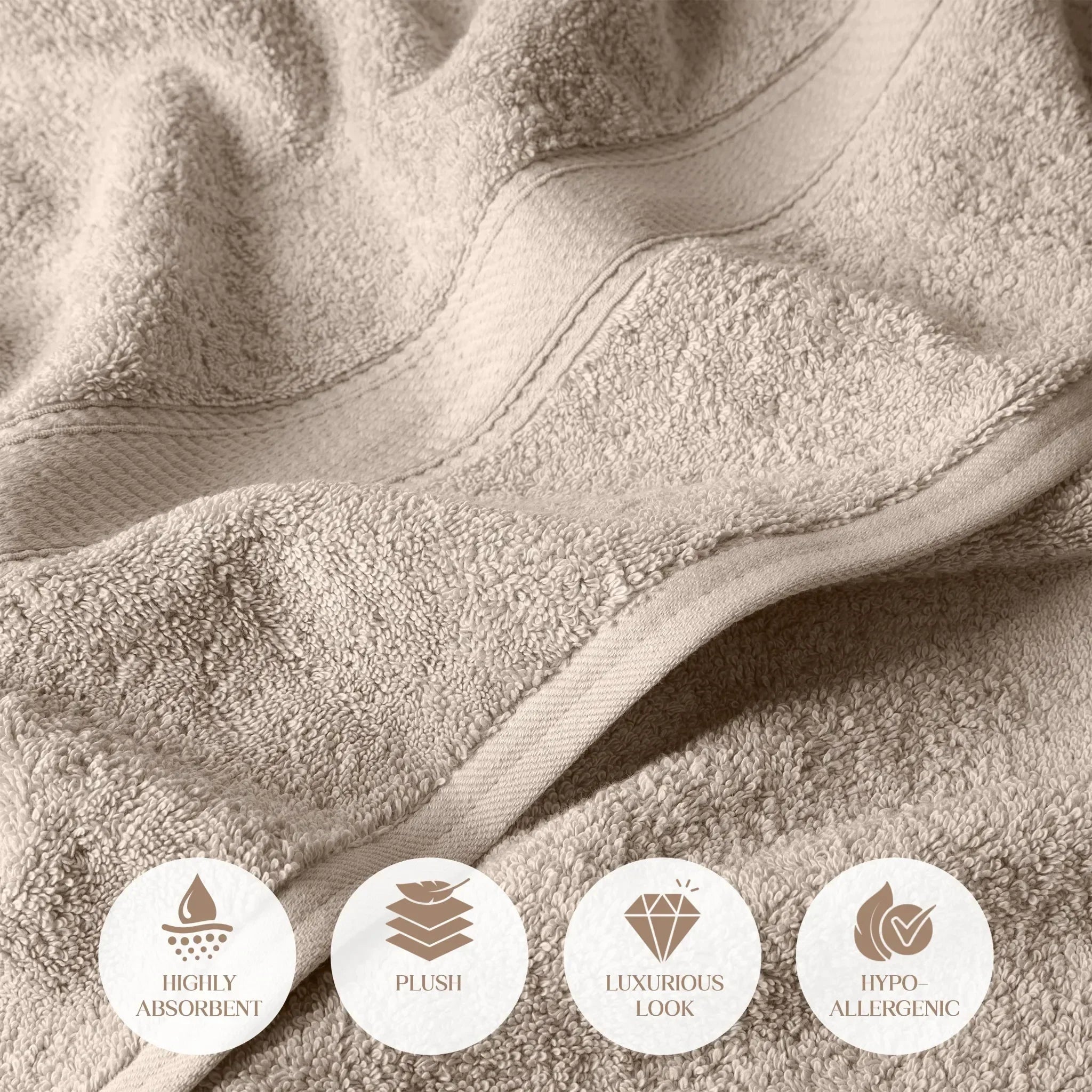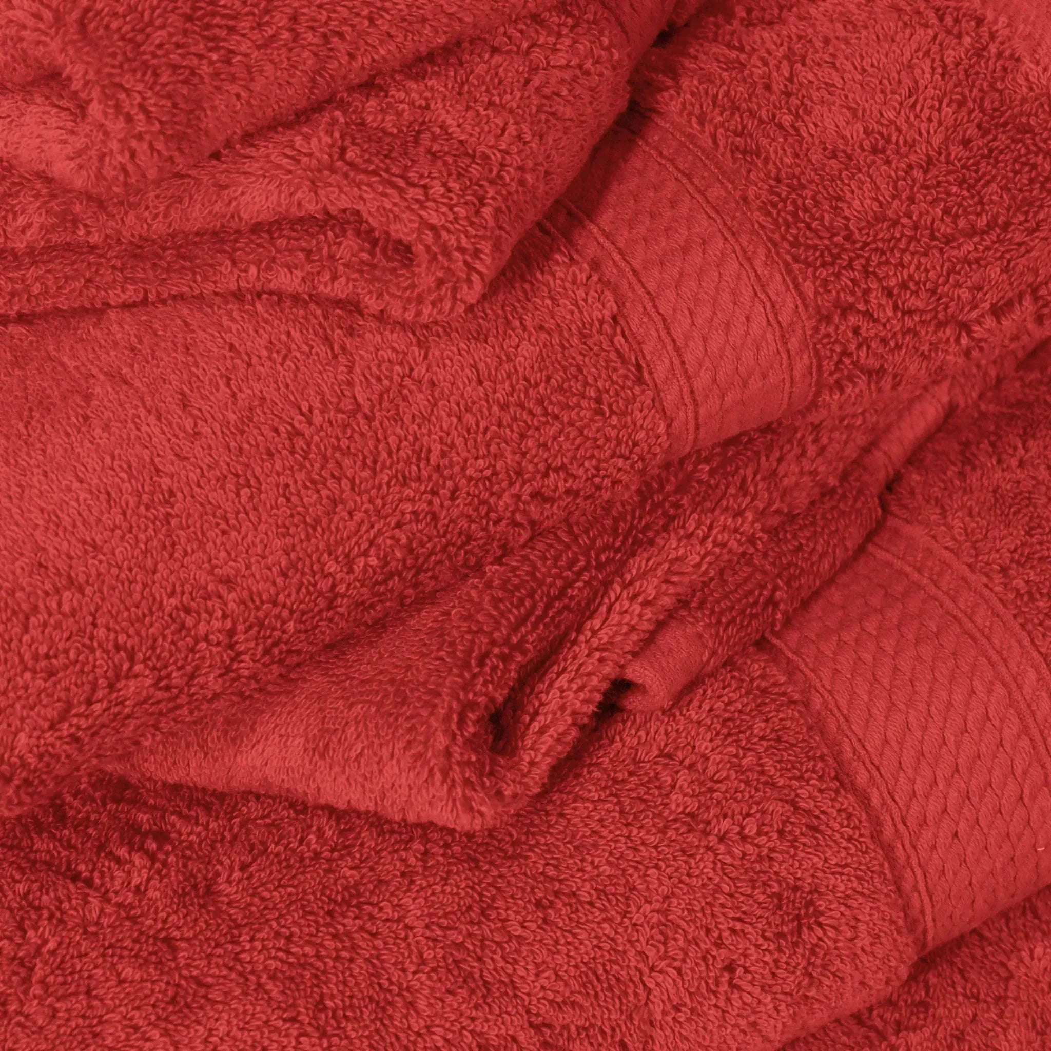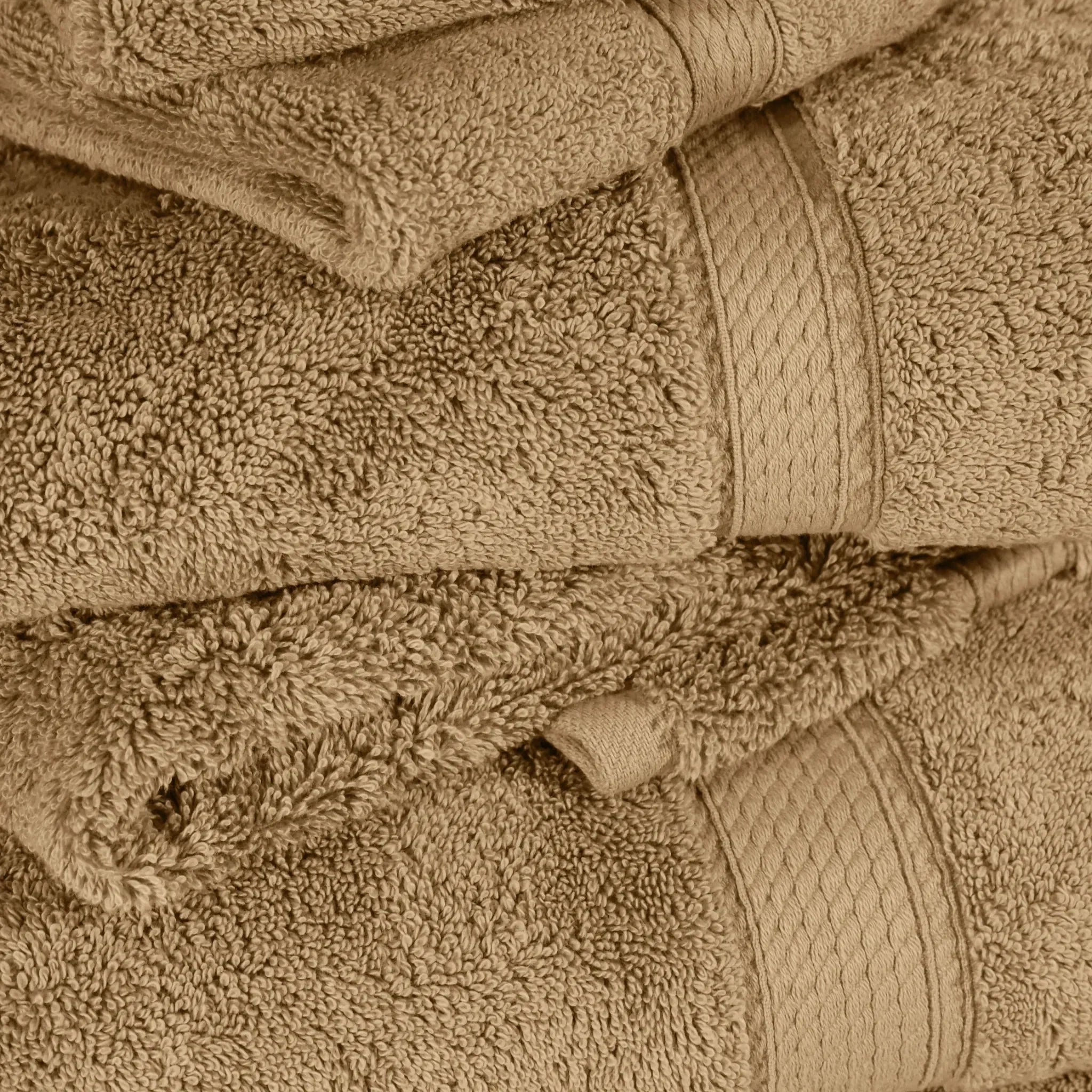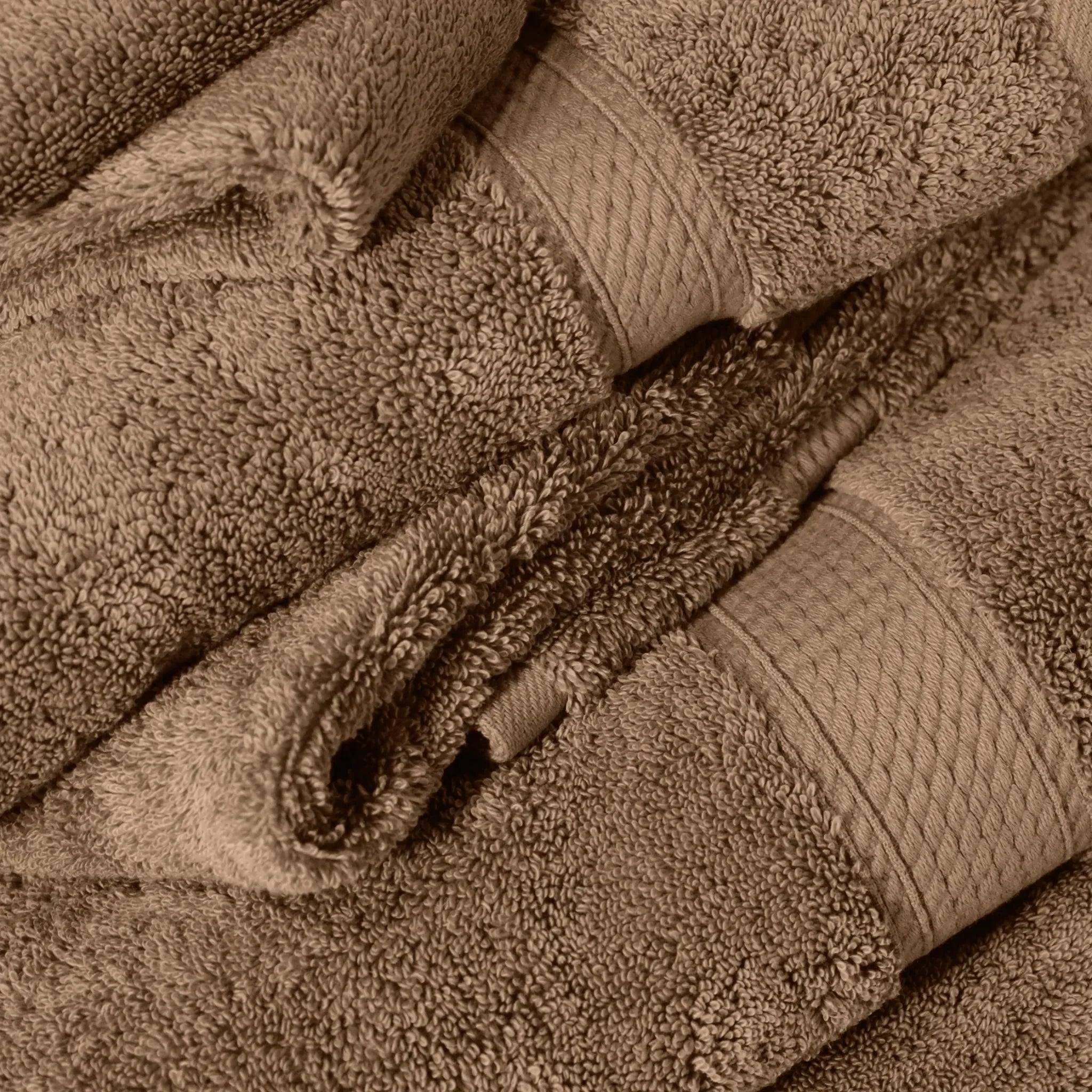 Crafted from densely woven Egyptian cotton, the luxury towel set delivers both strength and softness. The rich, textured finish and sleek solid design with a braided border make them an elegant addition to any bathroom, providing a hotel-quality feel at home.