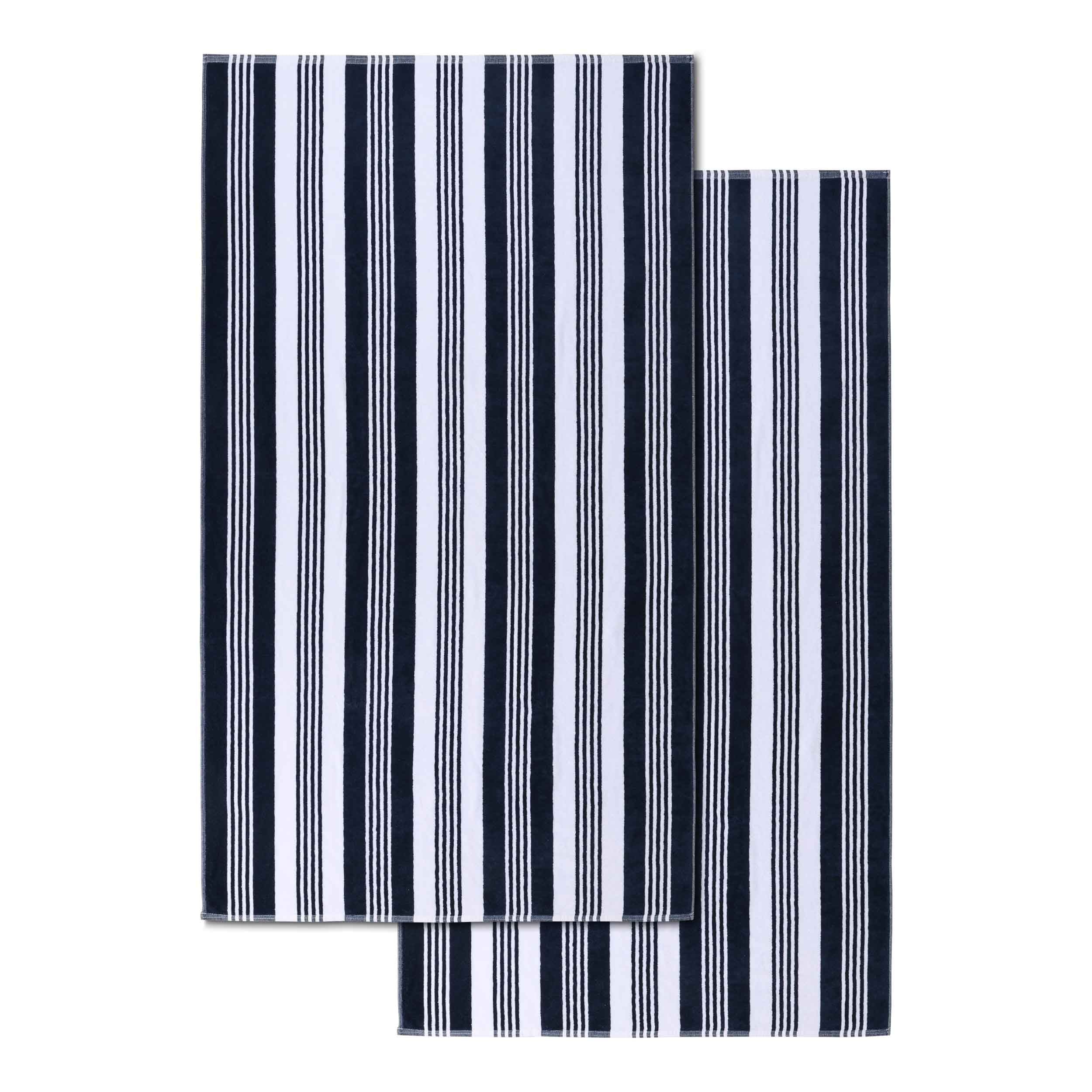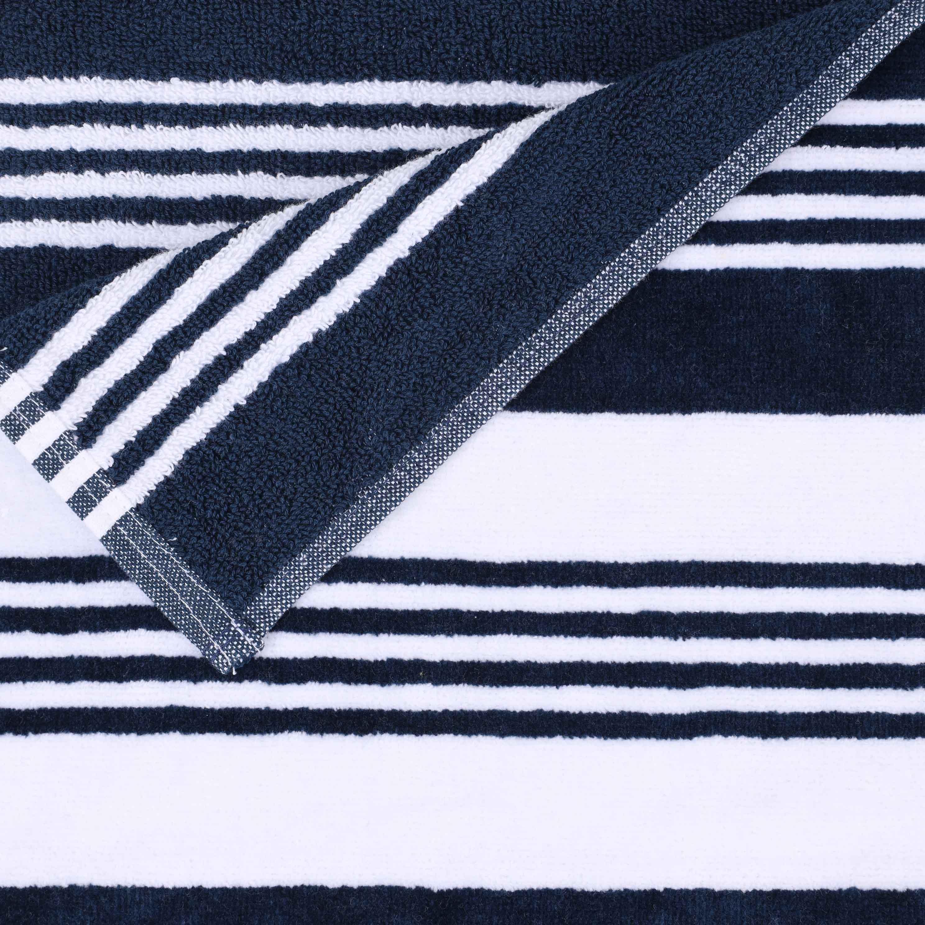 Dry off and stay comfortable all day with our Maui Striped Cotton Beach Towel. These premium cotton beach towels feature velvety soft velour on one side and highly-absorbent terry on the other. The naturally soft and quick drying material of these towels are cozy, durable and perfect for daily use. Reinforced edges and a generous size makes each towel ideal for lounging by the pool, at the beach or anywhere you want to relax and have fun. Displaying a wide striped pattern, relax in the sun in style with this beach towel set available in 1 piece, 2 piece, or 4 piece sets.