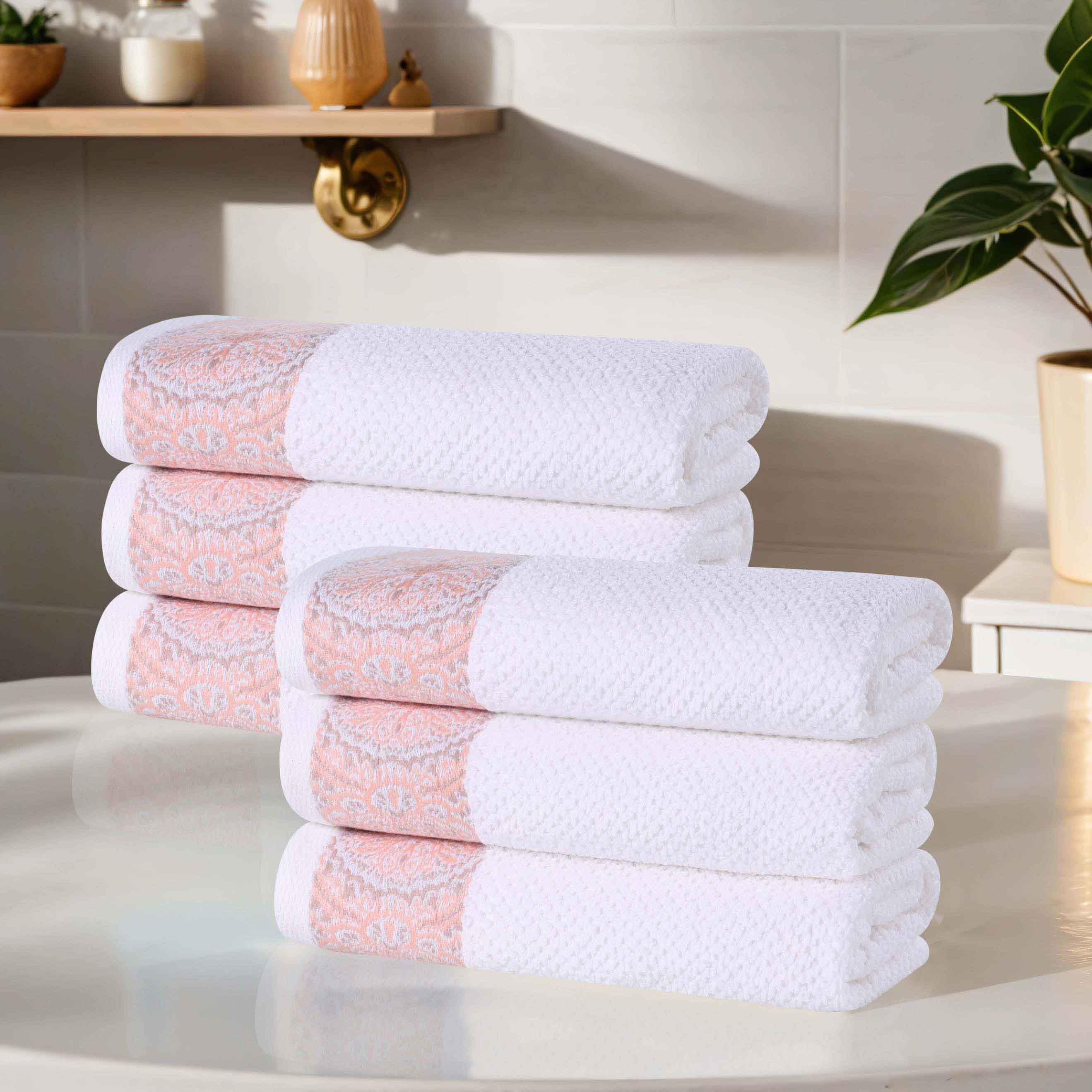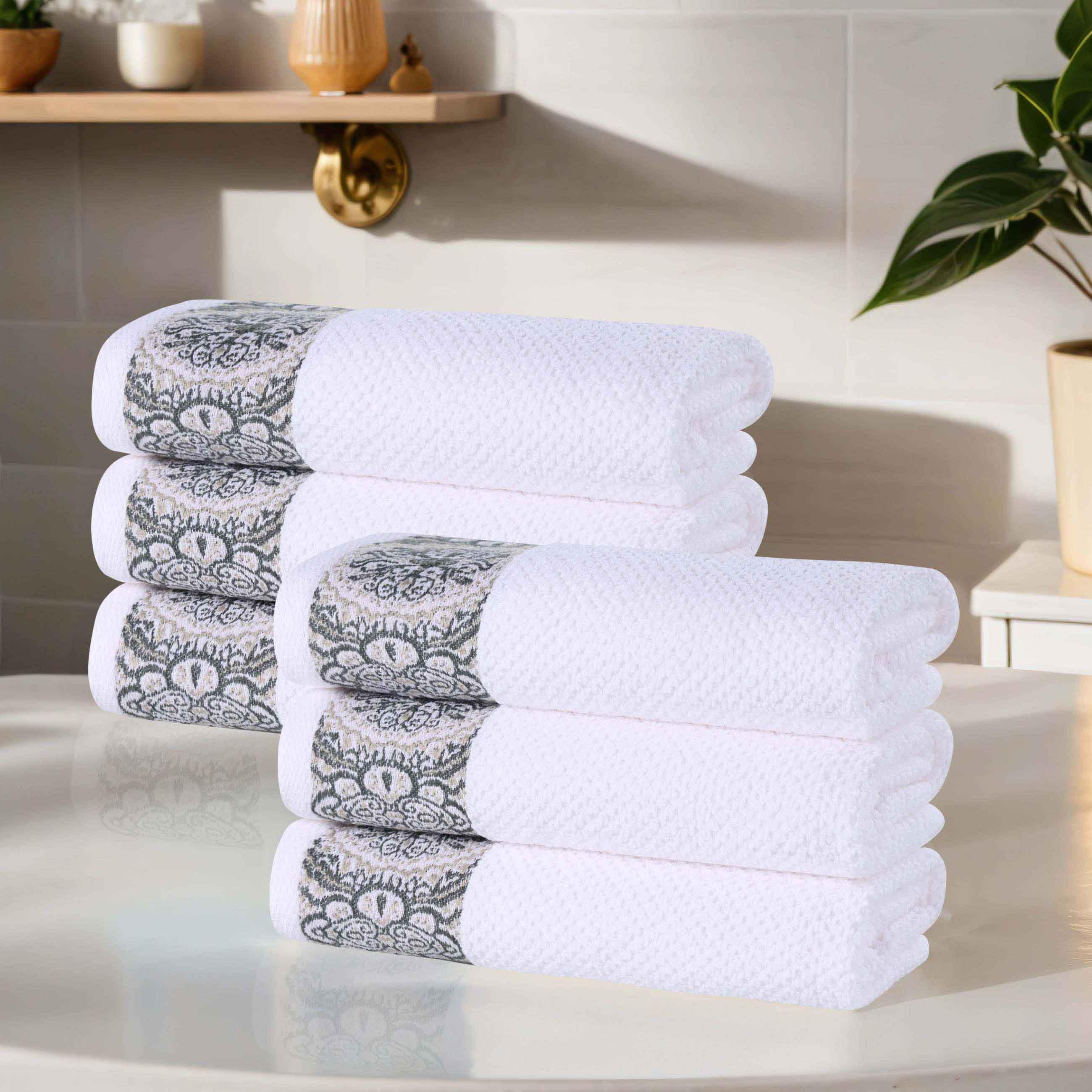 Bring irresistible comfort and traditional appeal to your bath or kitchen with our Medallion Cotton Jacquard Hand Towel Set. Crafted from naturally soft cotton, each towel is soft on your skin and highly absorbent to help you dry off quickly. The medium towel weight is versatile and perfect for unexpected messes or spills. Featuring a vibrant and traditional medallion border, these towels are quick drying and perfect for everyday use. Stylish and practical, this hand towel set is an everyday essential.