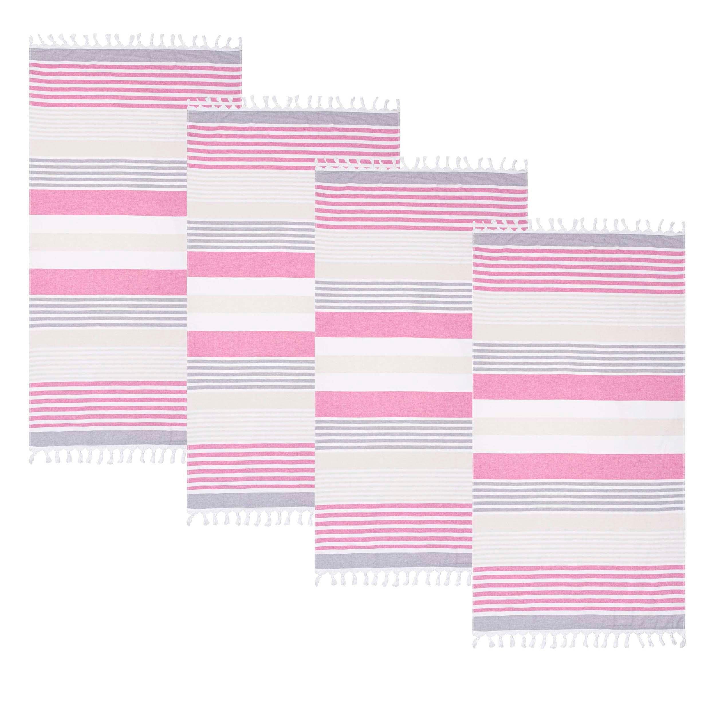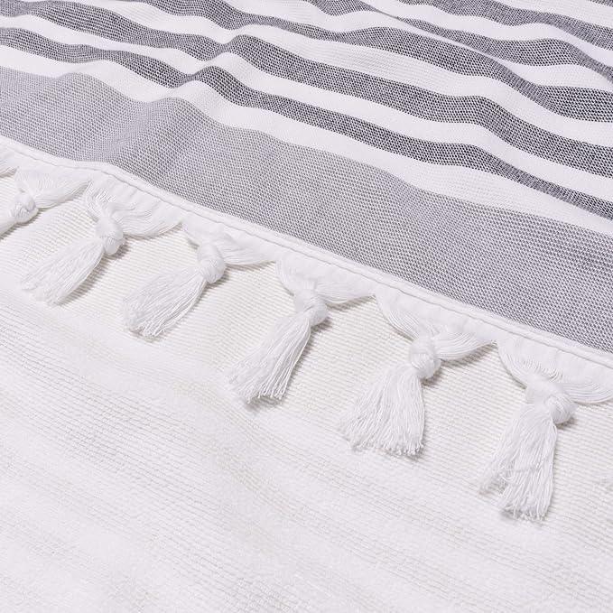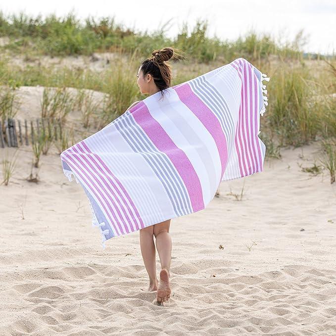 Enjoy some fun in the sun with the Meera Stripe Beach Towel. Crafted from Cotton, this lightweight towel is fast-drying to help get you dry quickly after a dip in the ocean, pool, or hot tub. This oversized towel features a woven texture that is soft to the touch on one side and a highly absorbent terry cotton construction on the other side. Enjoy instant relaxation when you lounge atop the varying stripe design which is featured in an array of bright, seasonable color options with tassel details on the ends for modern style. Wherever your aquatic adventures may take you, this lightweight towel folds up compactly to fit into any beach bag or suitcase.