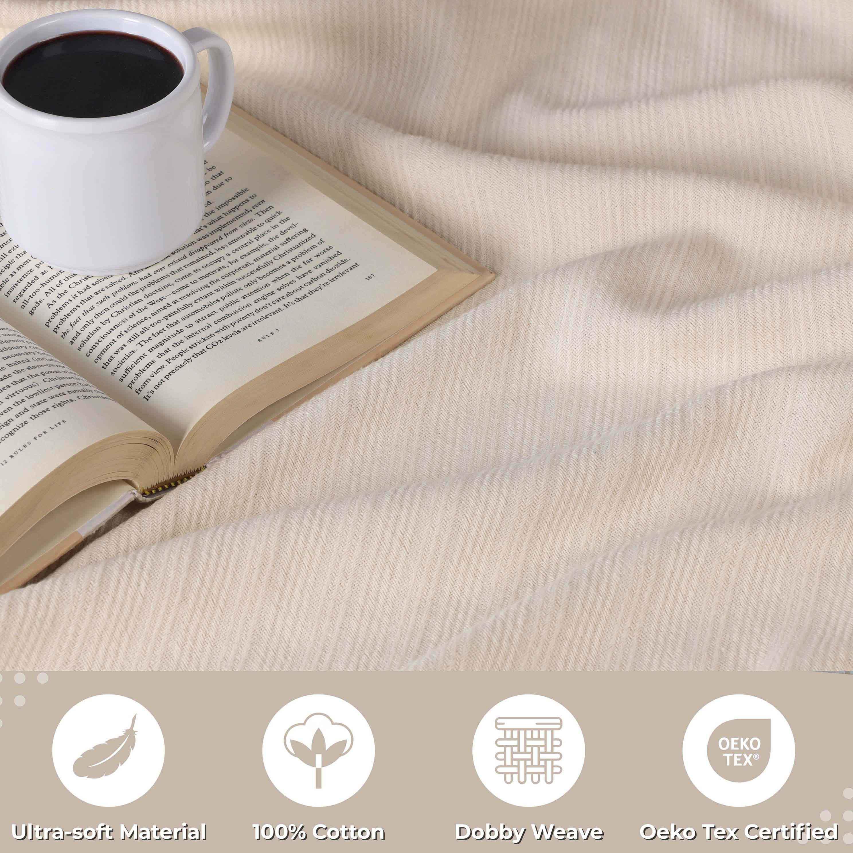 Milan Cotton Textured Jacquard Striped Lightweight Woven Blanket